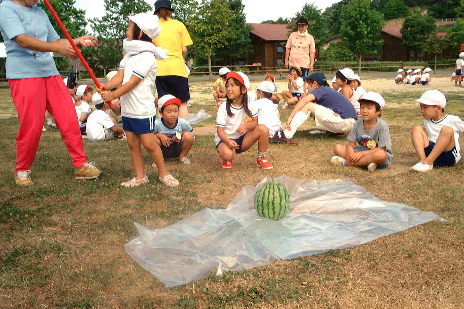 朝食後は、スイカ割りなど楽しみました。