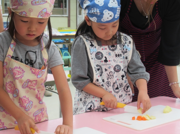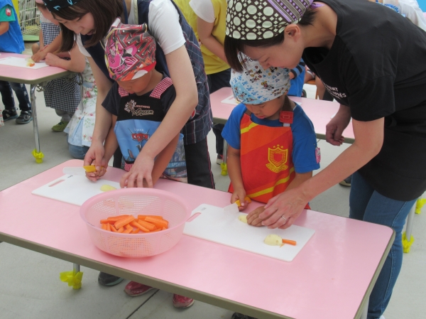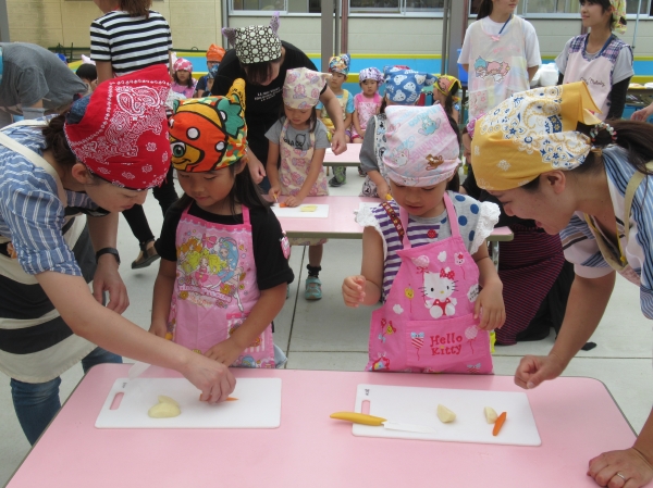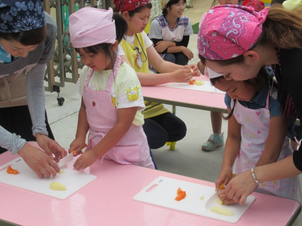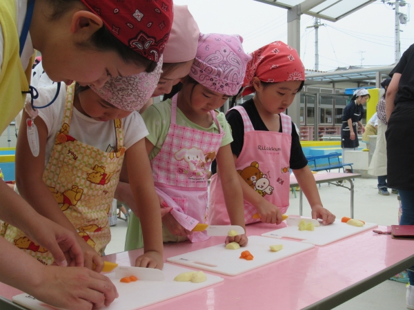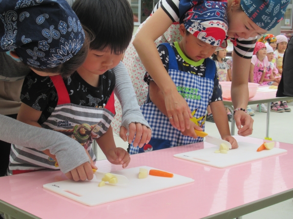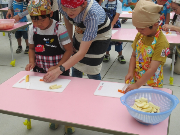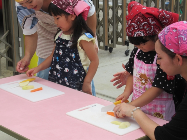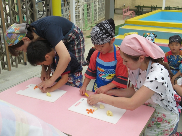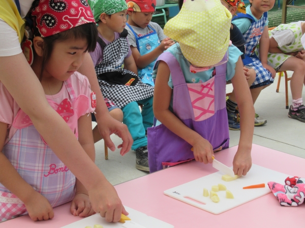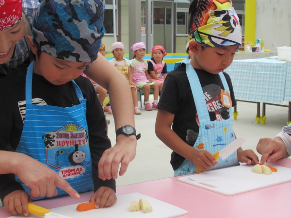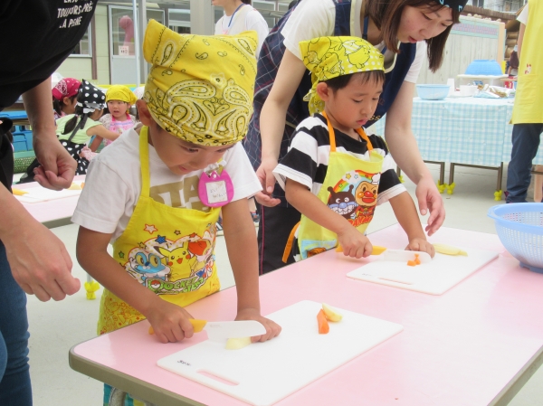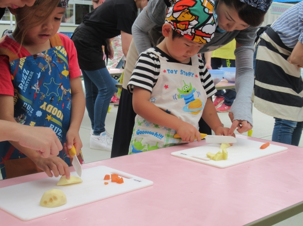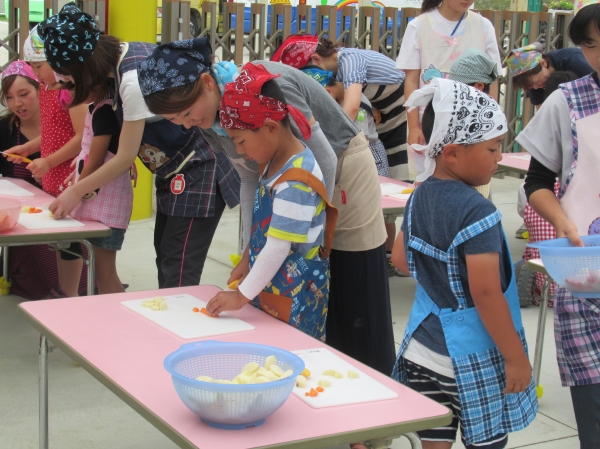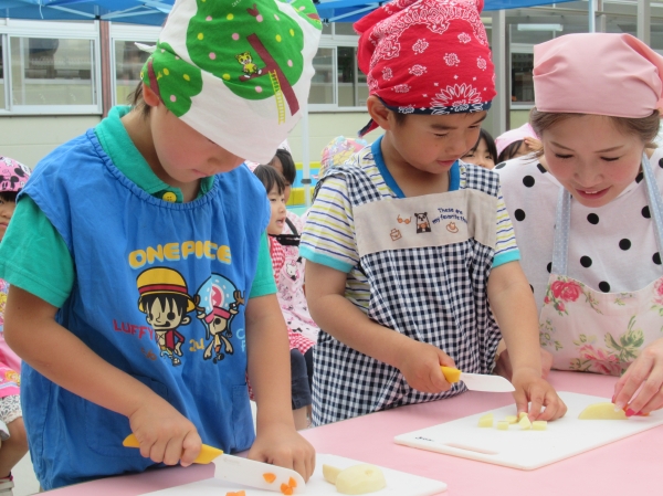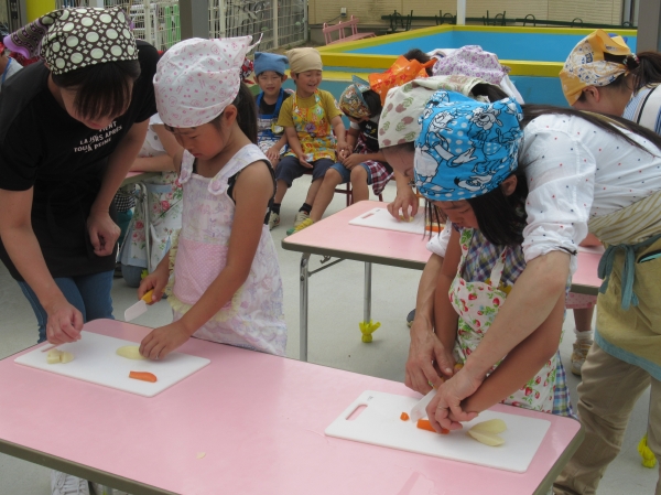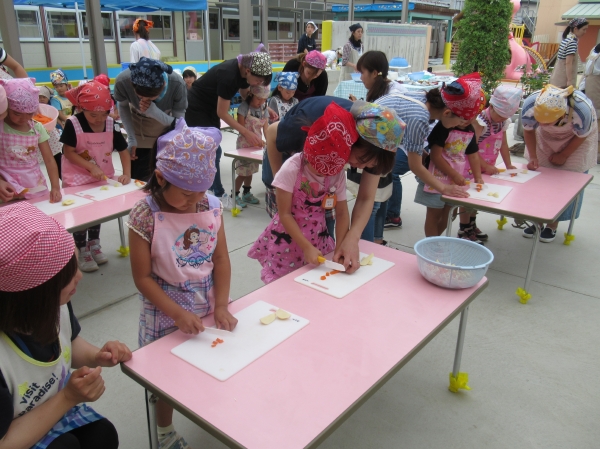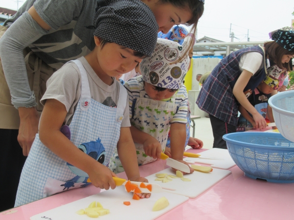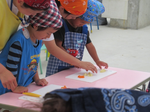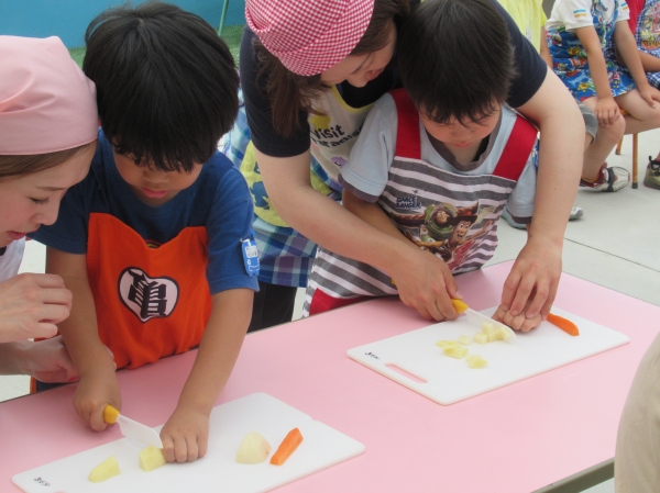 農園で収穫した野菜などを使ってカレーを作りました。みんなで食べておいしかった!