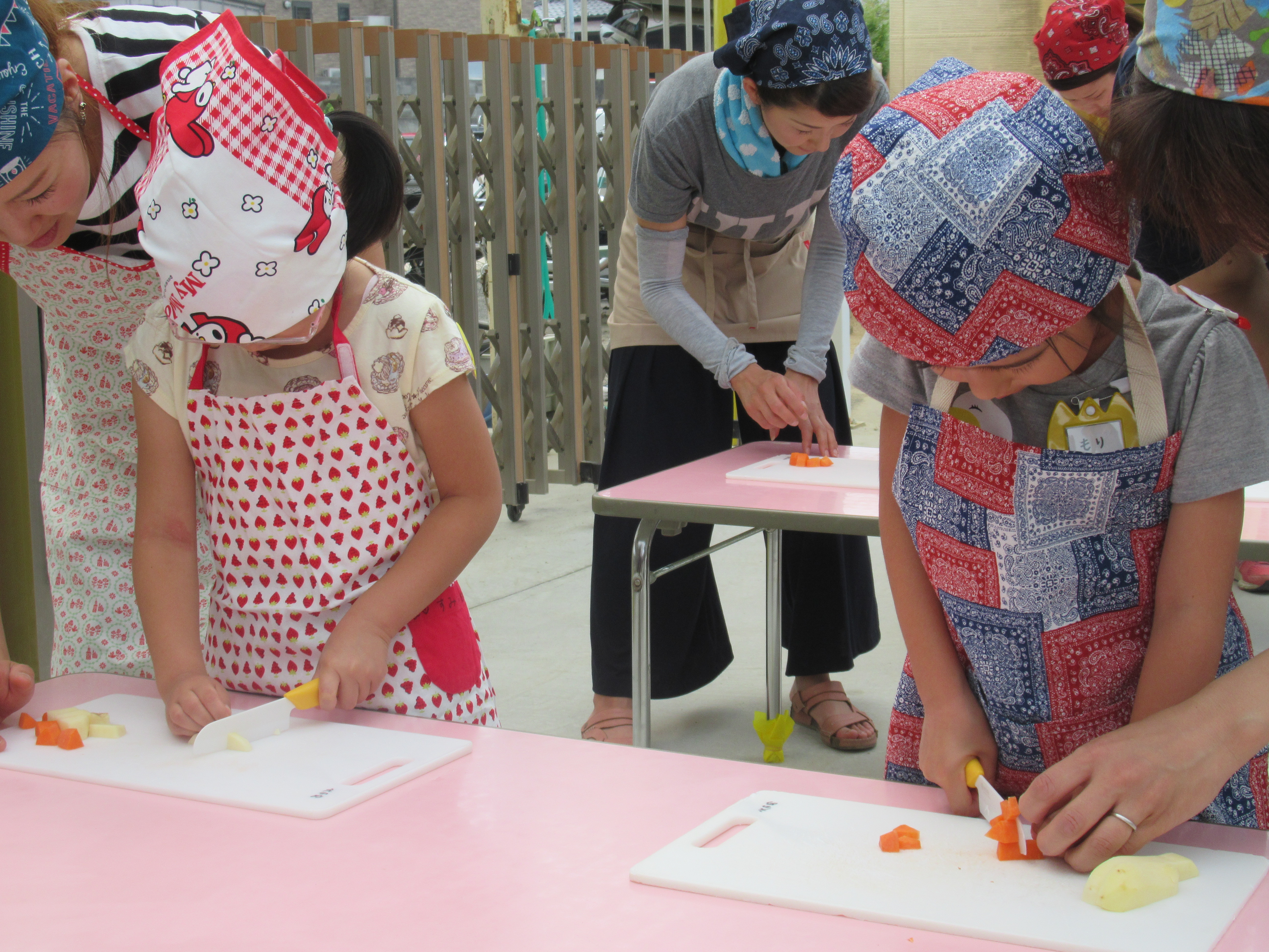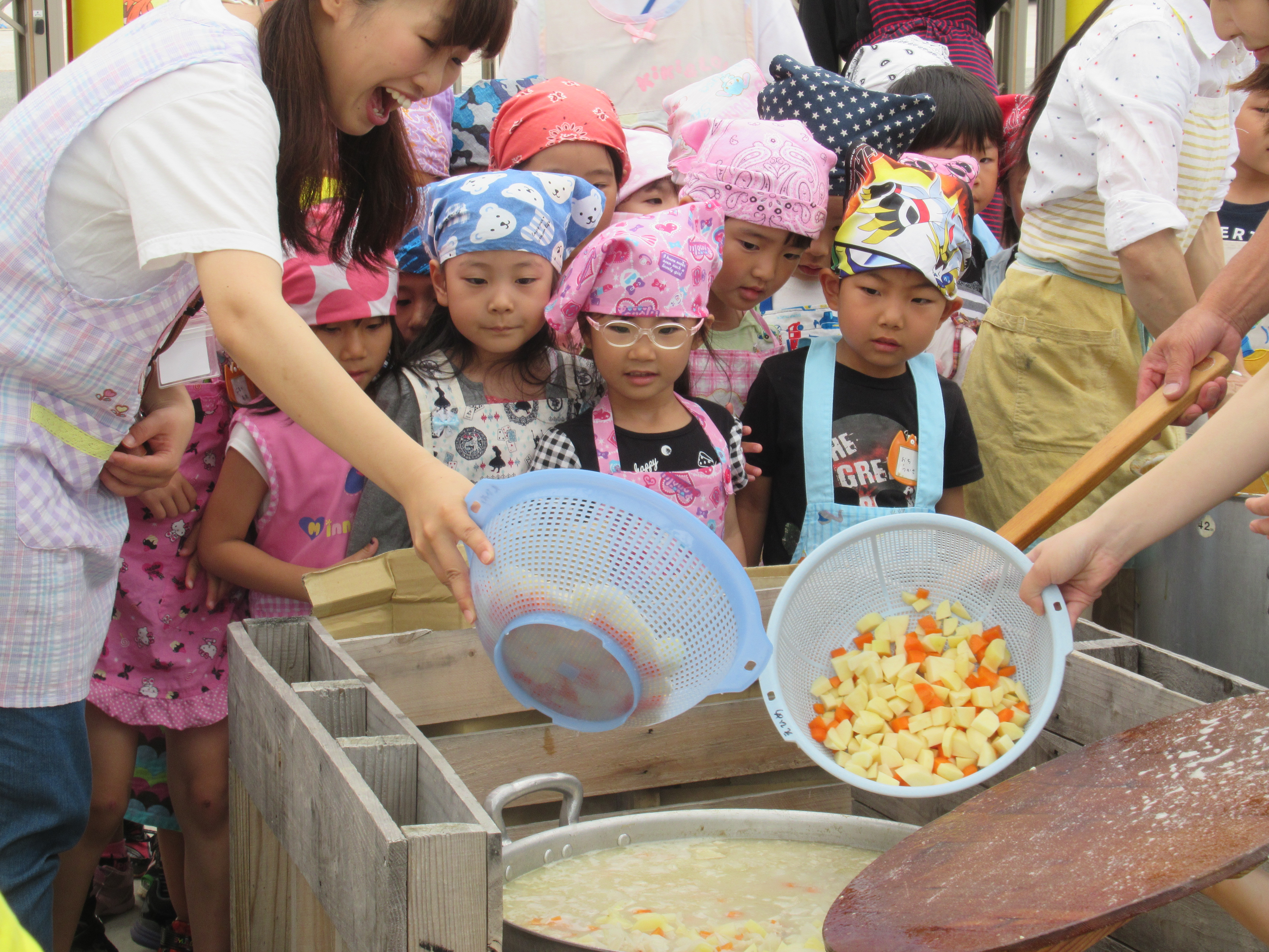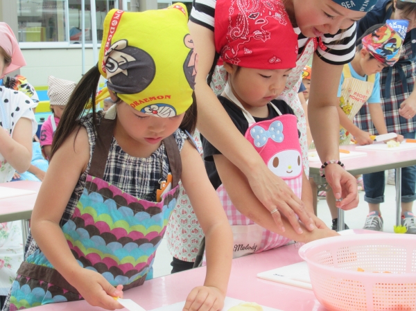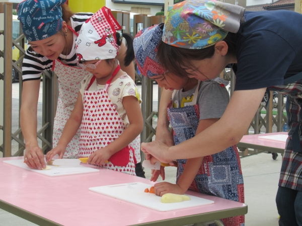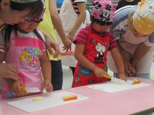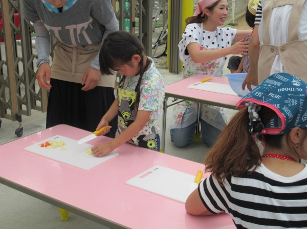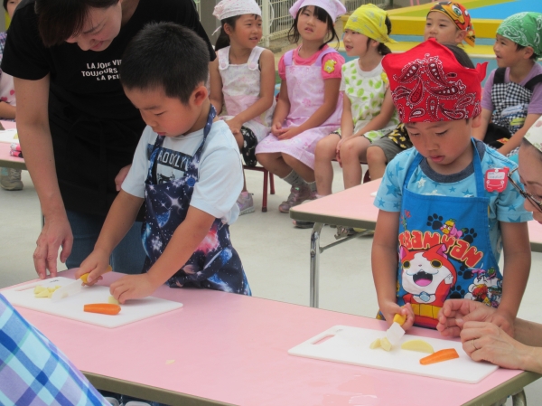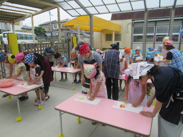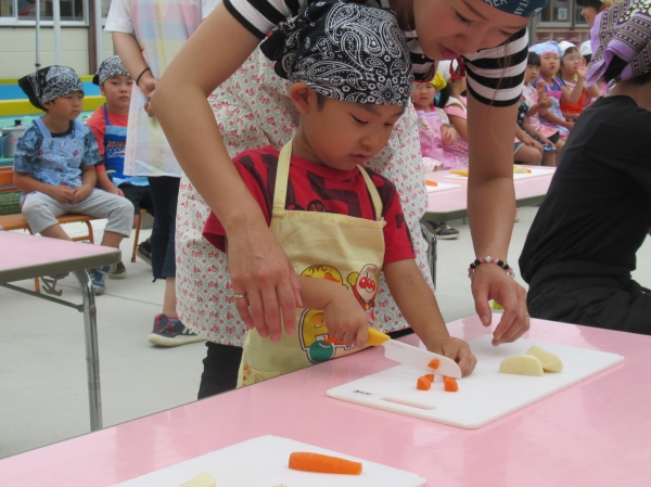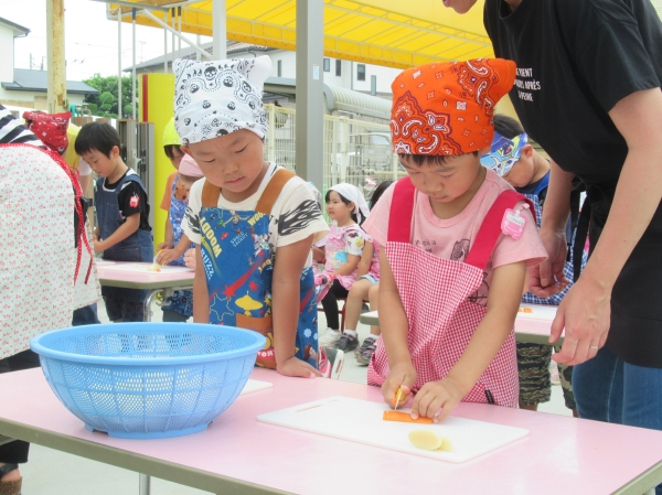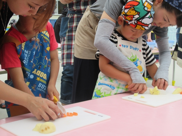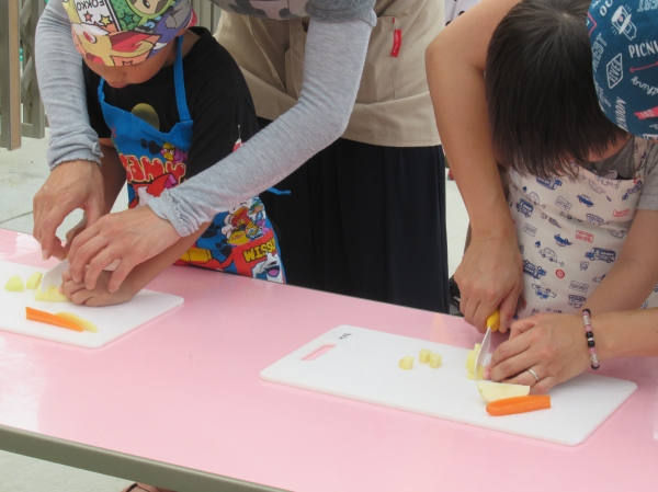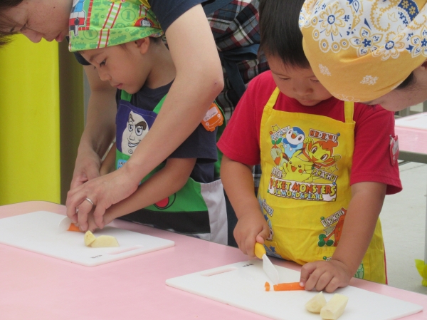 農園で収穫した野菜などを使ってカレーを作りました。みんなで食べておいしかった!