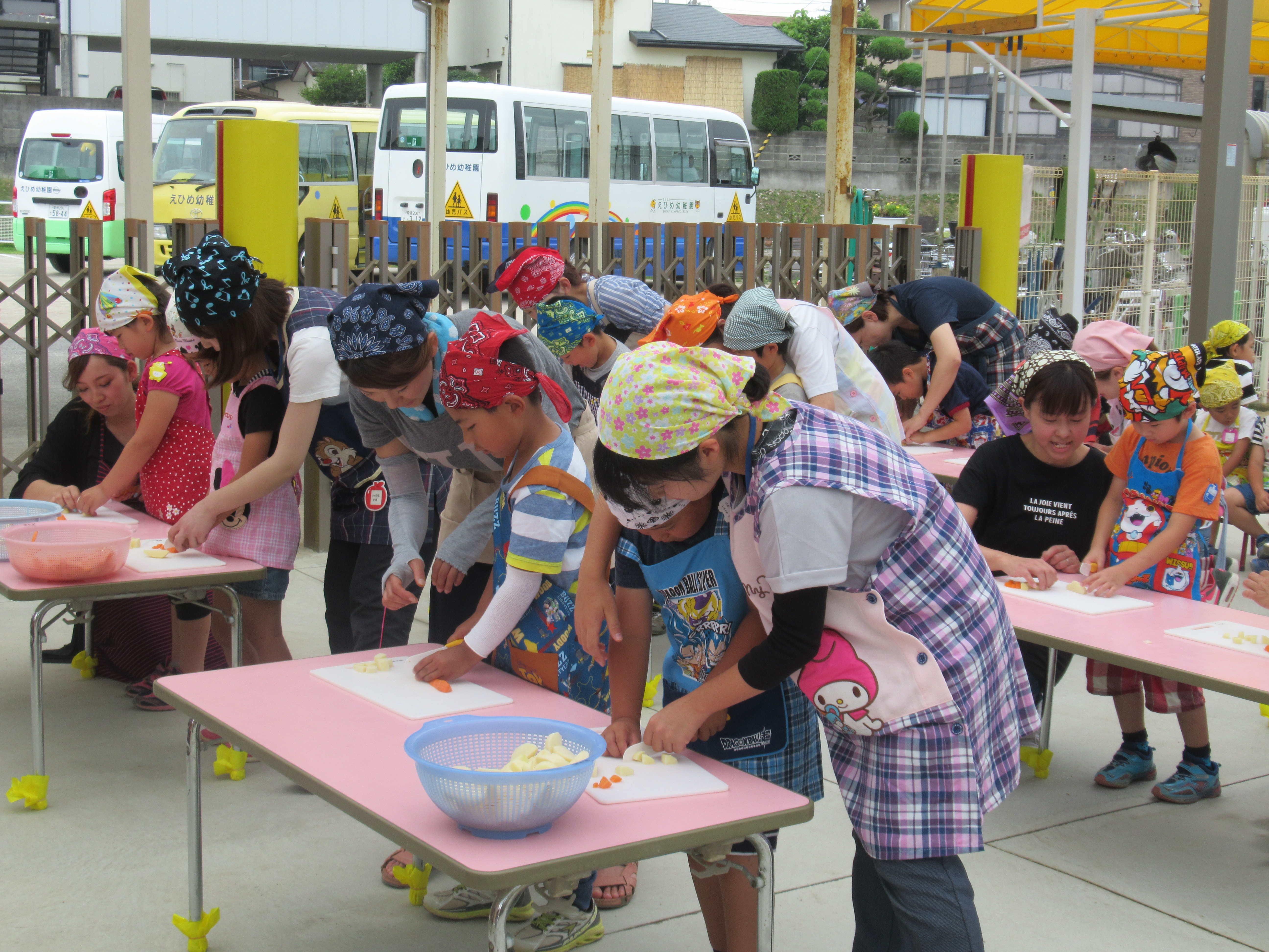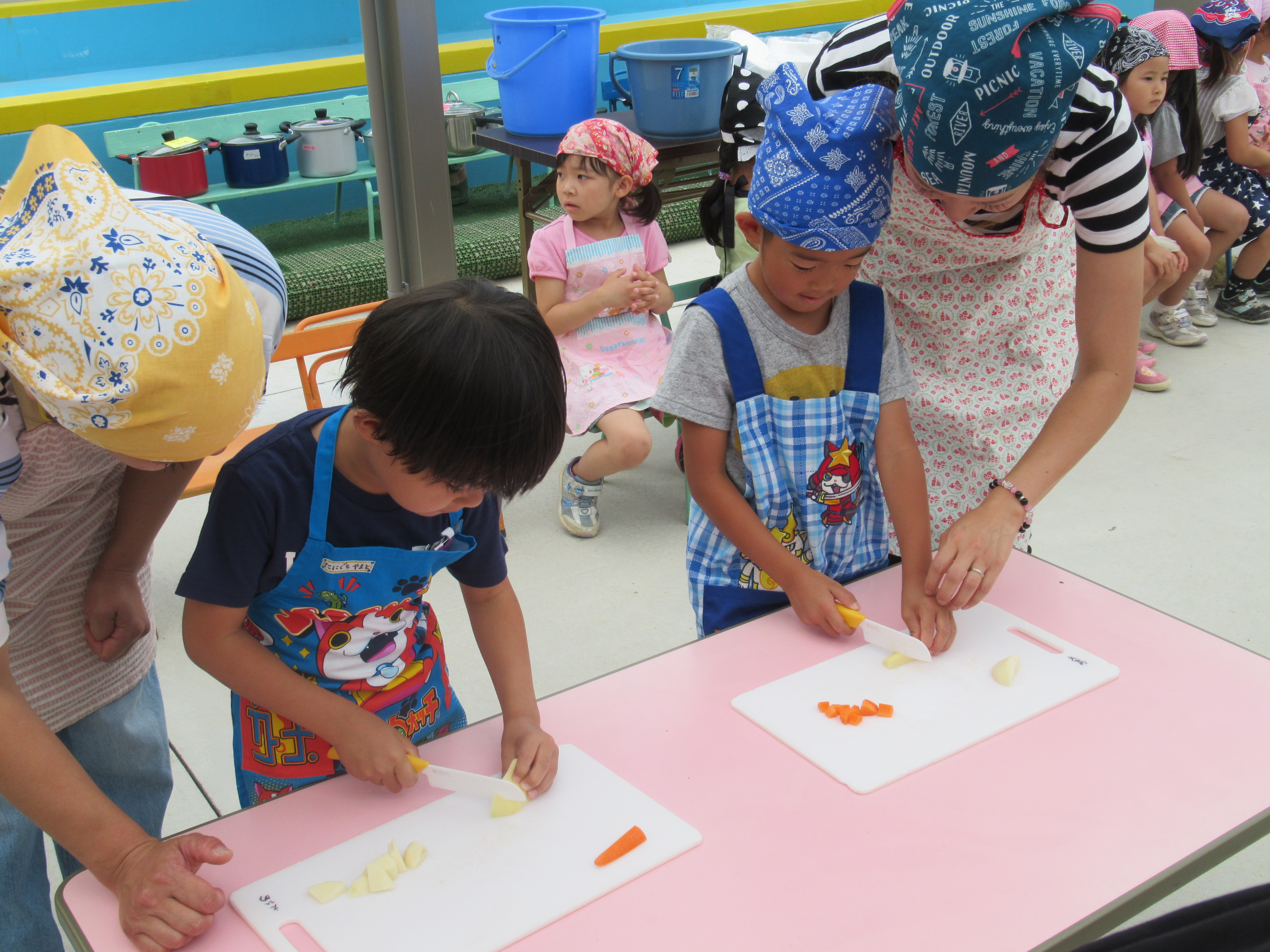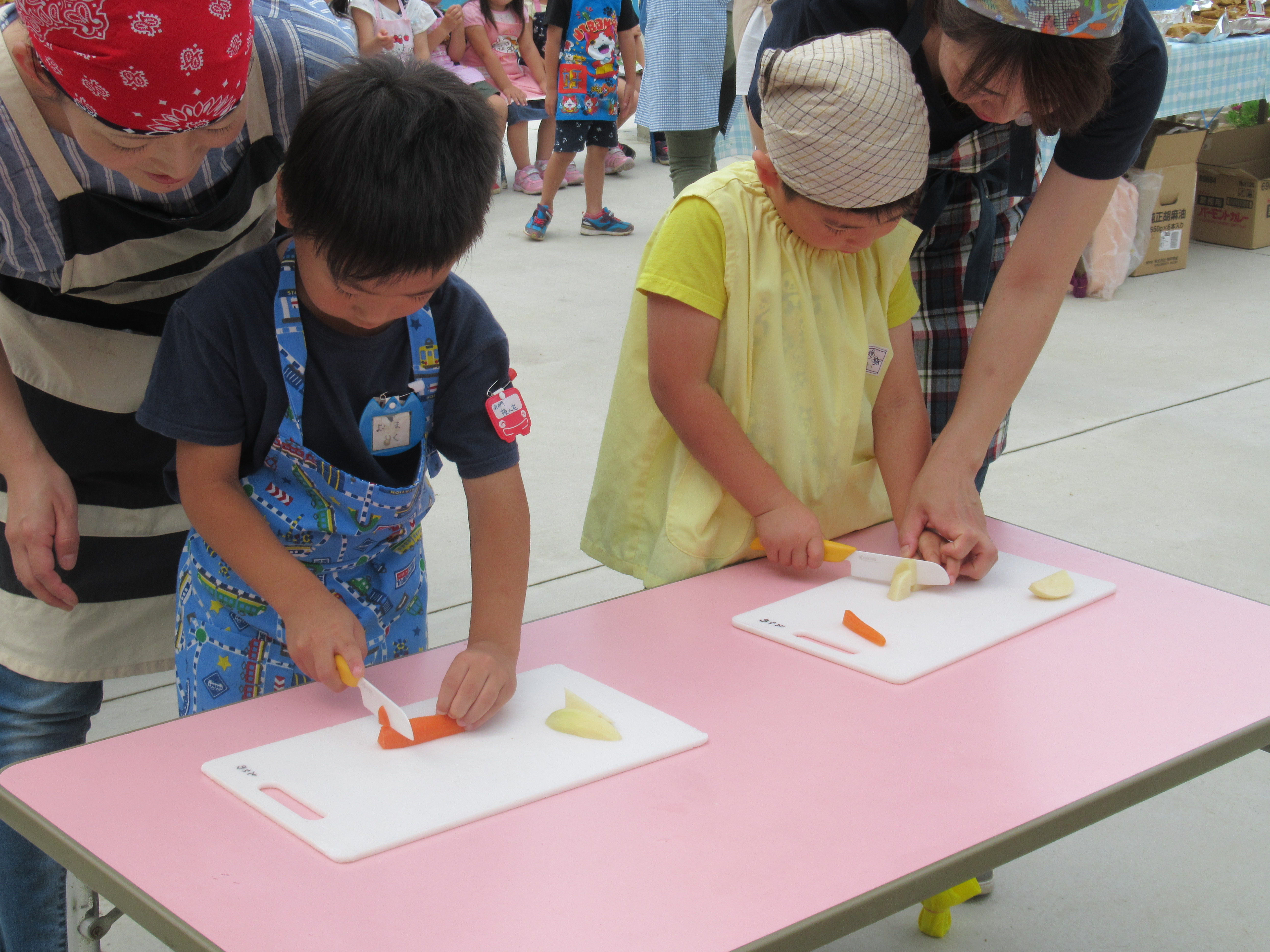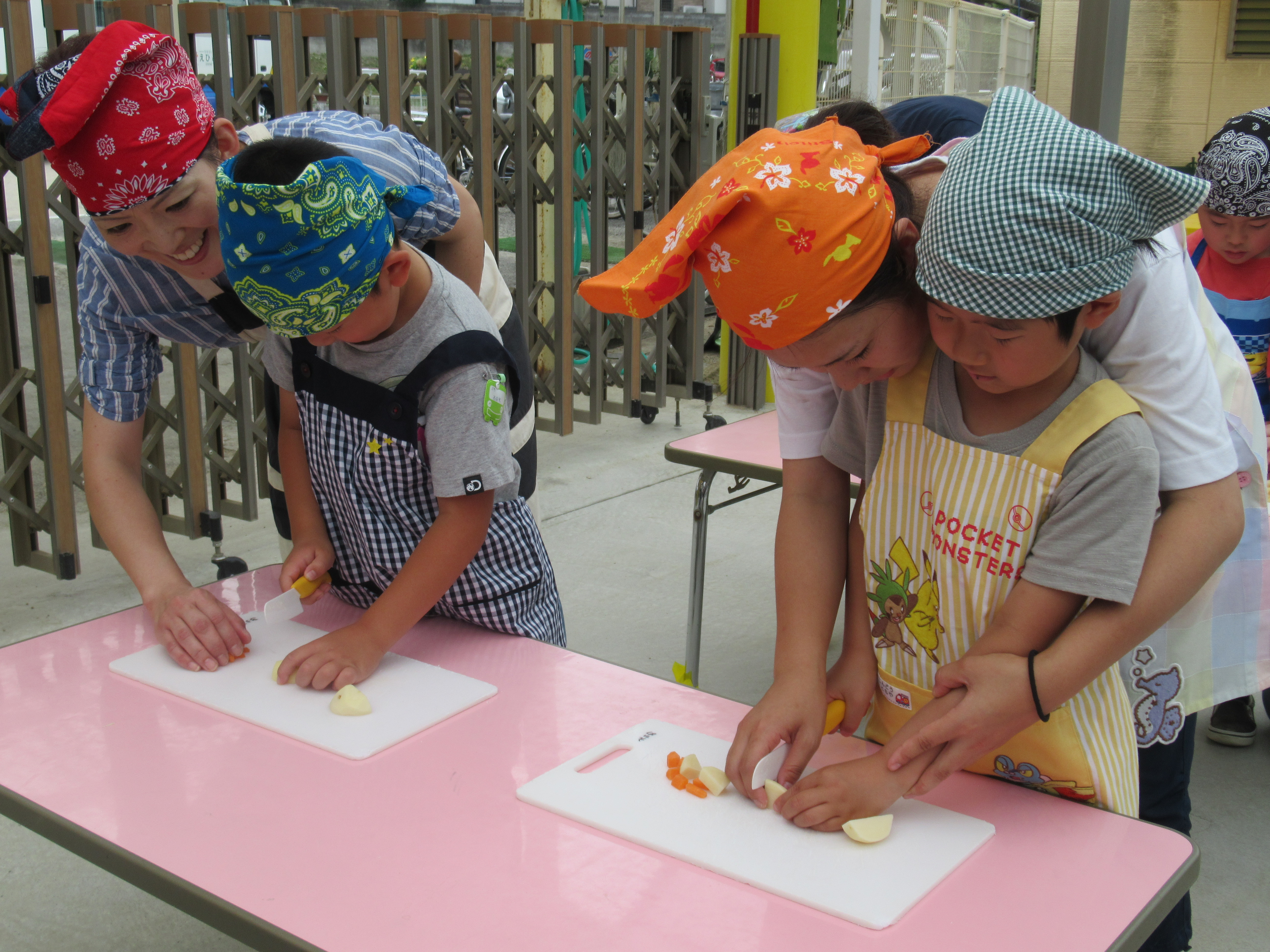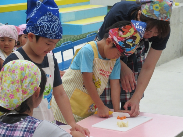 農園で収穫した野菜などを使ってカレーを作りました。みんなで食べておいしかった!