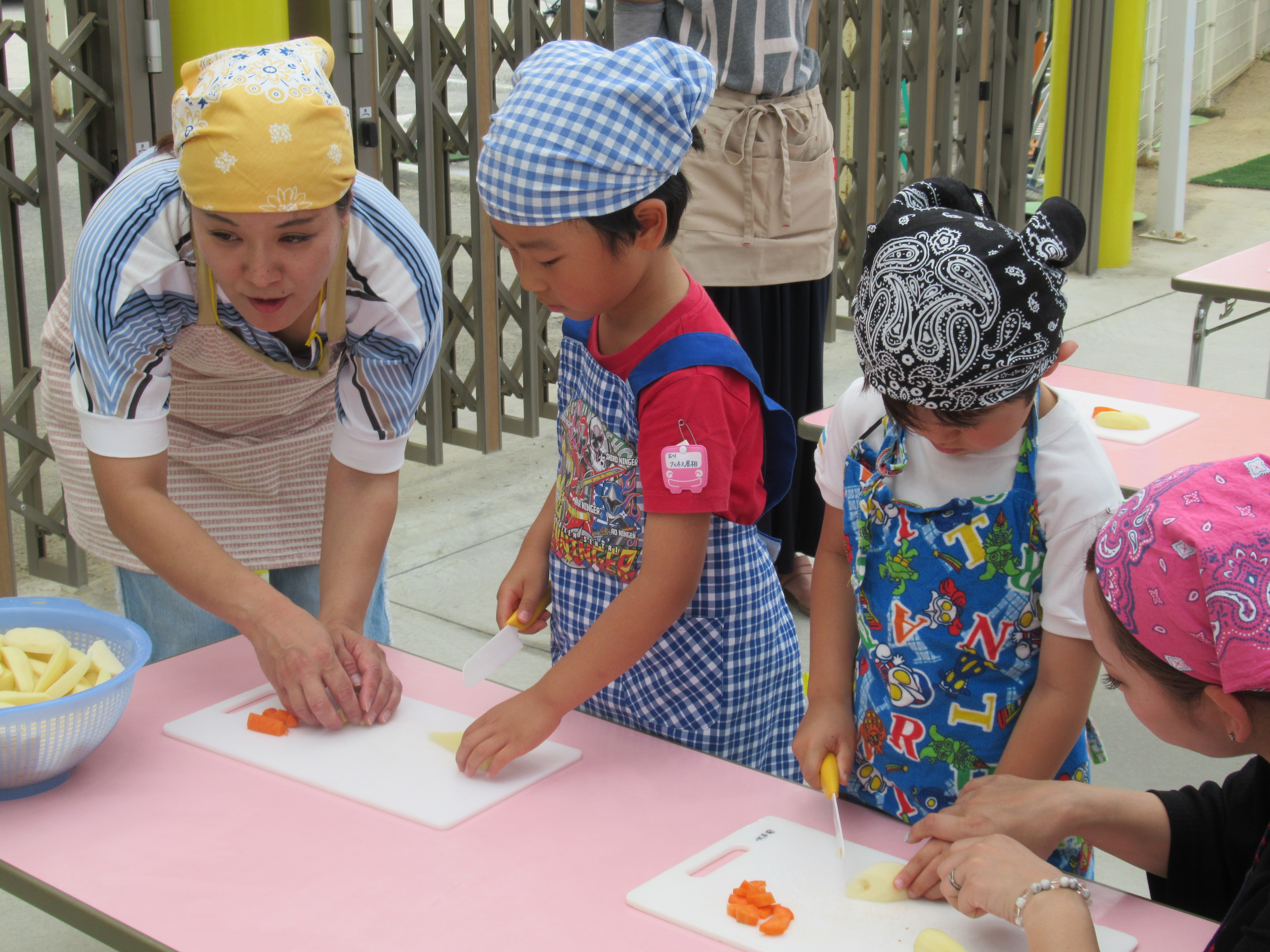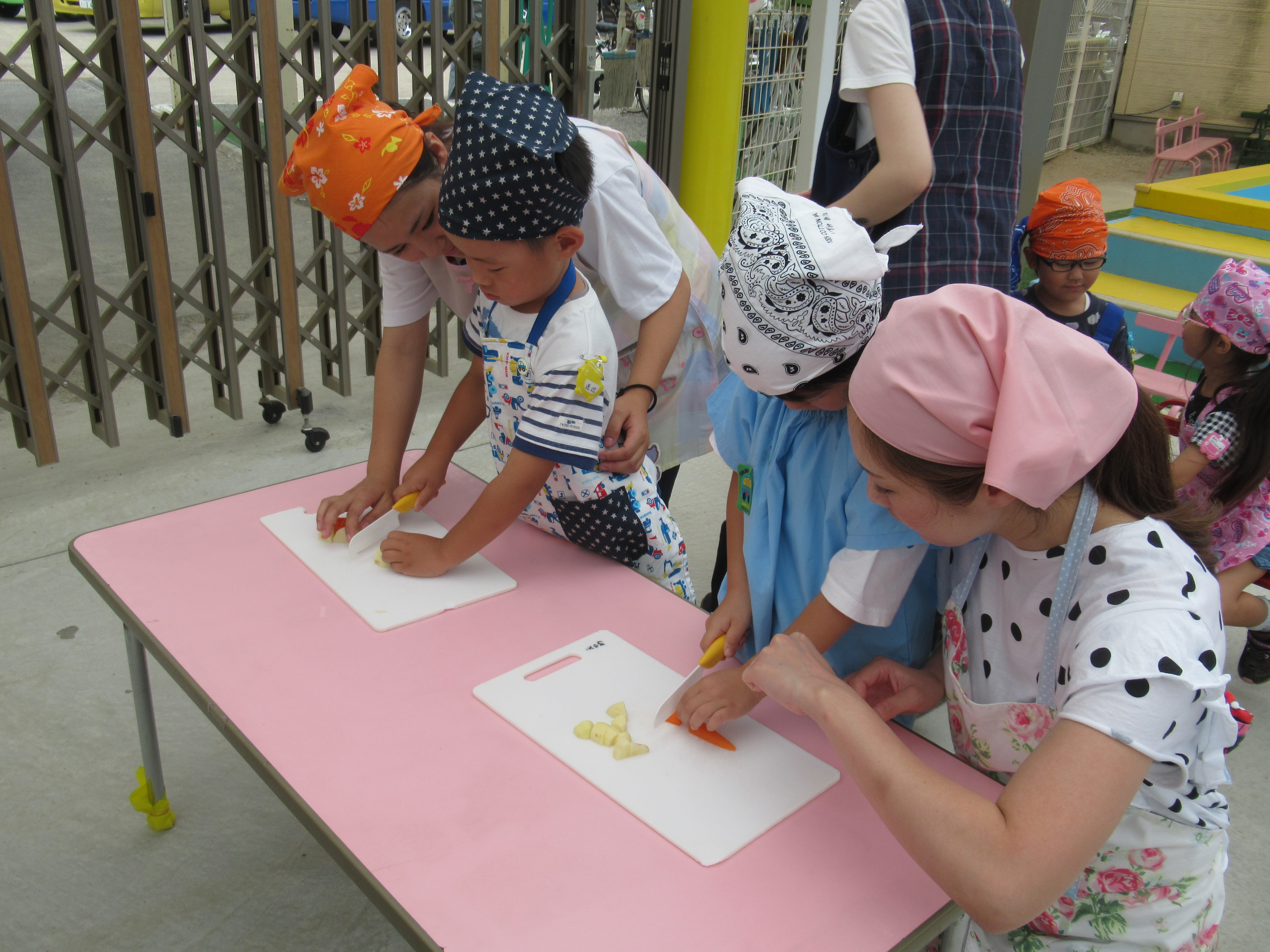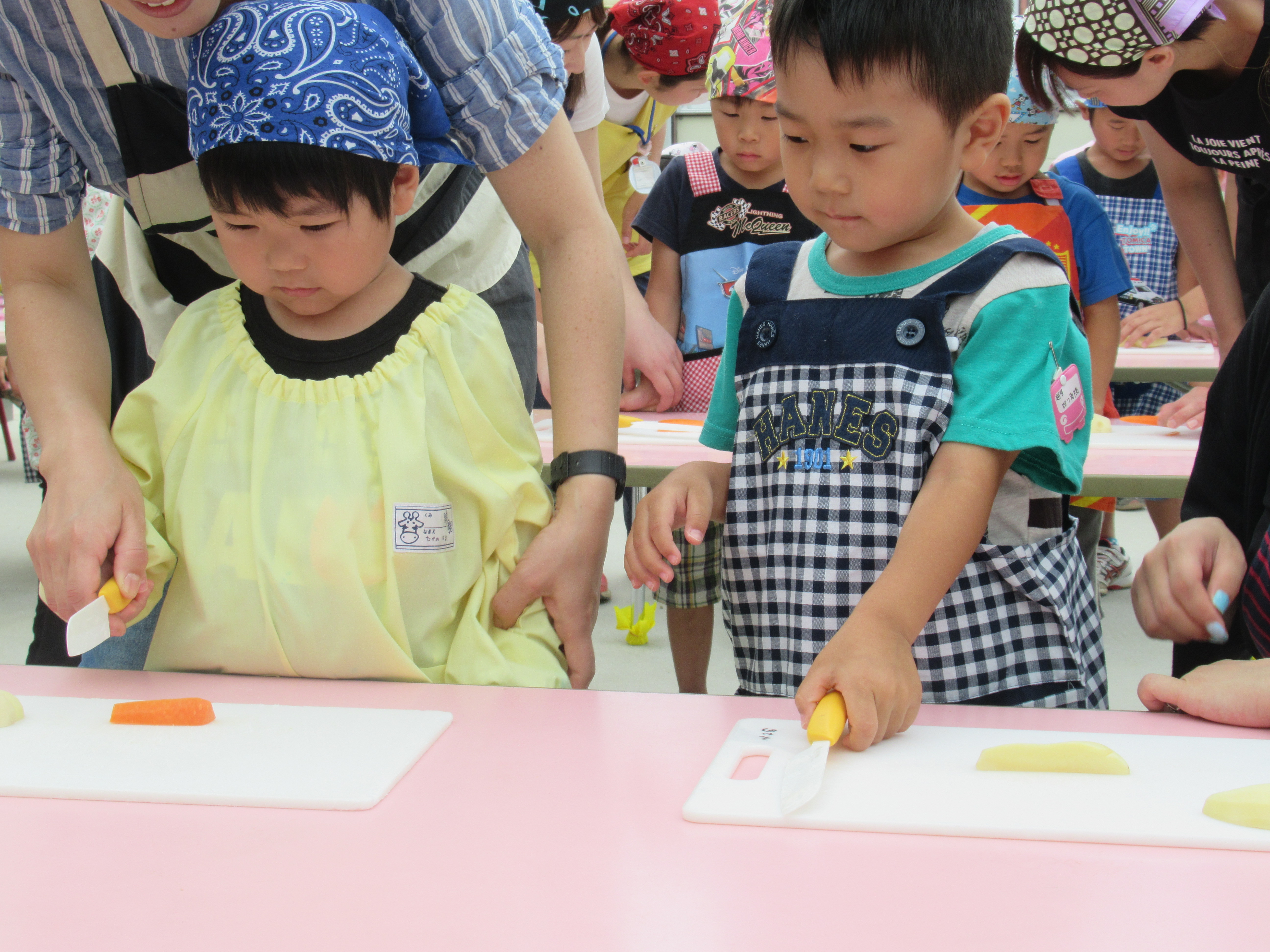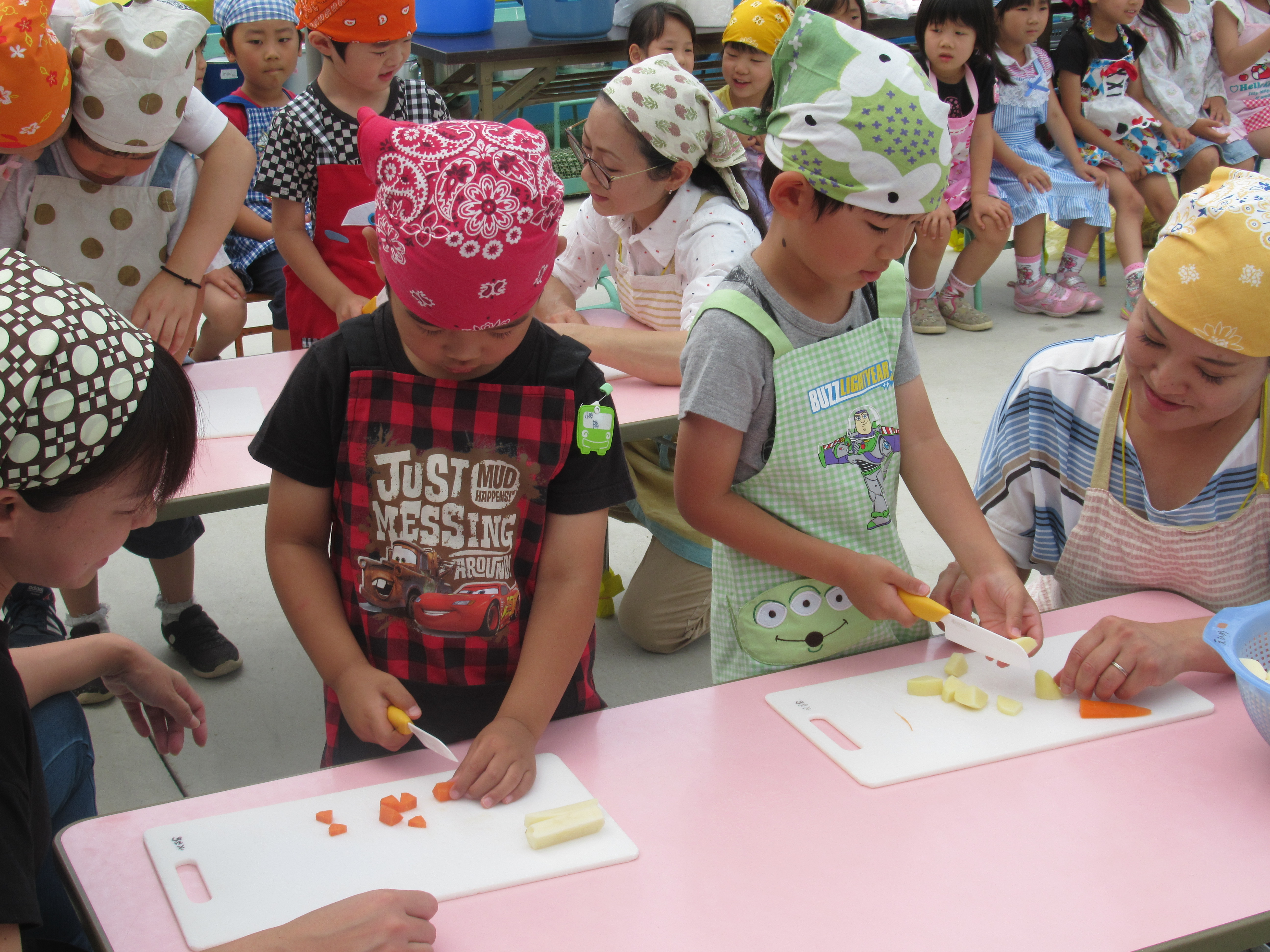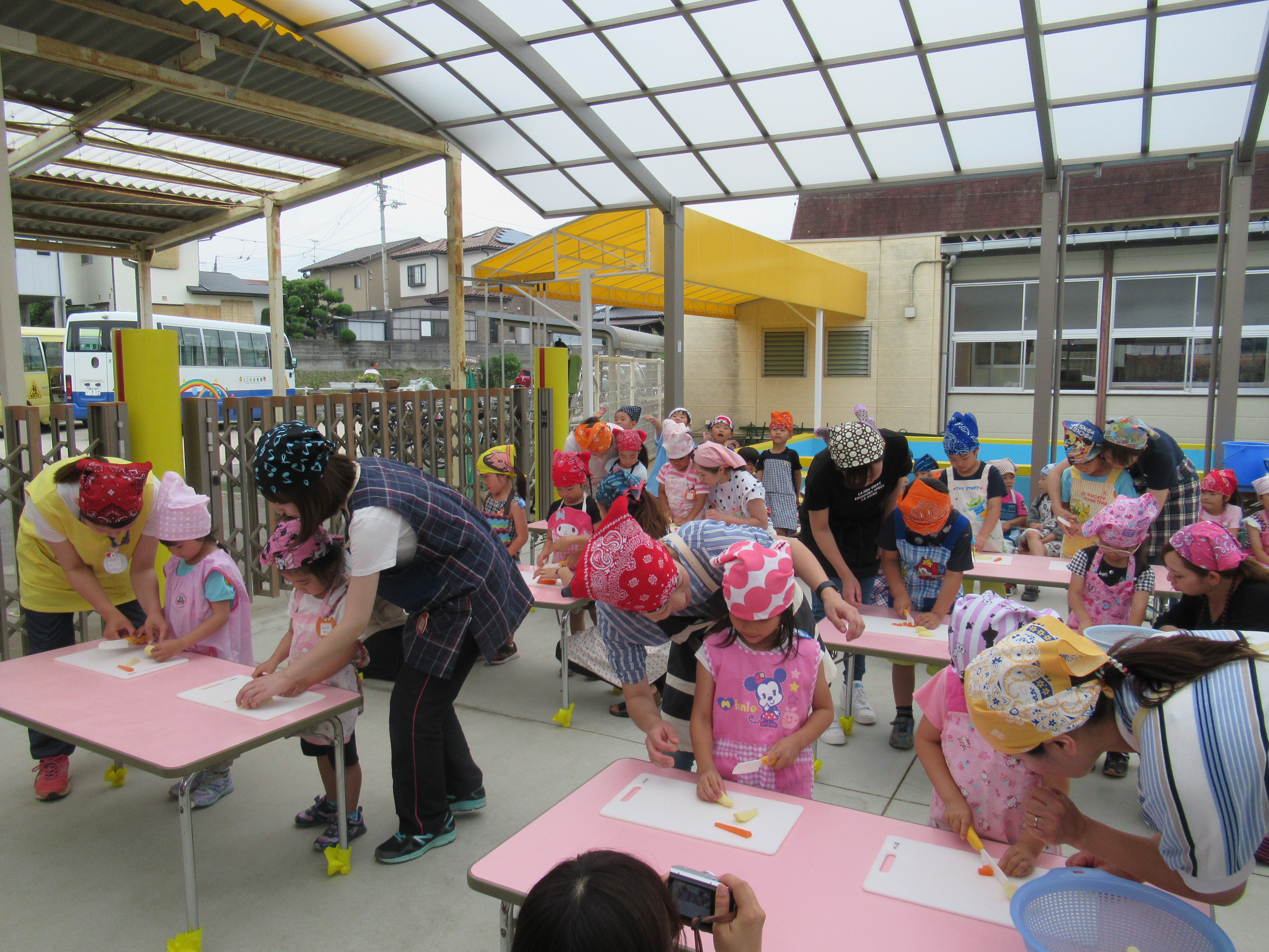 農園で収穫した野菜などを使ってカレーを作りました。みんなで食べておいしかった!