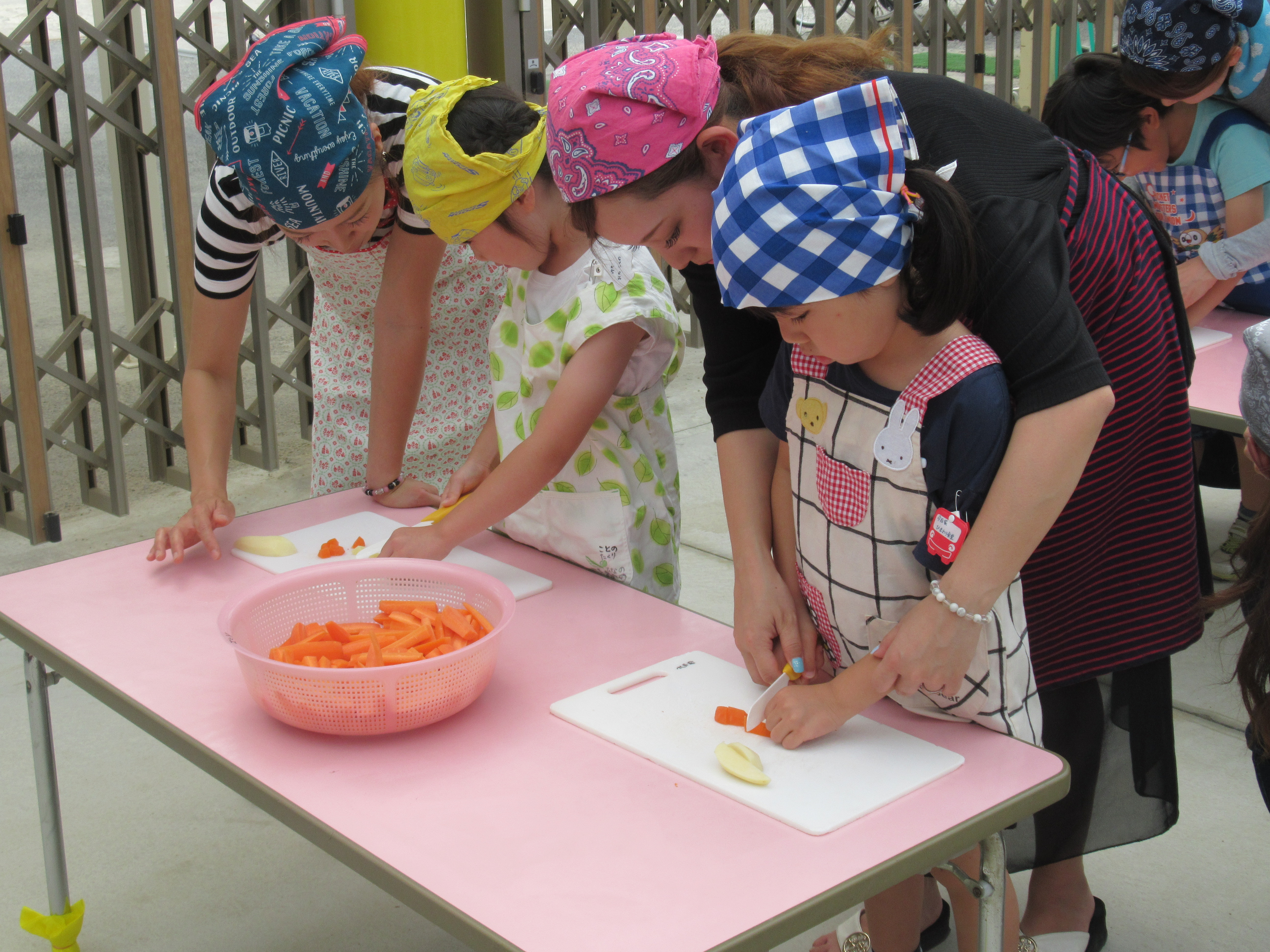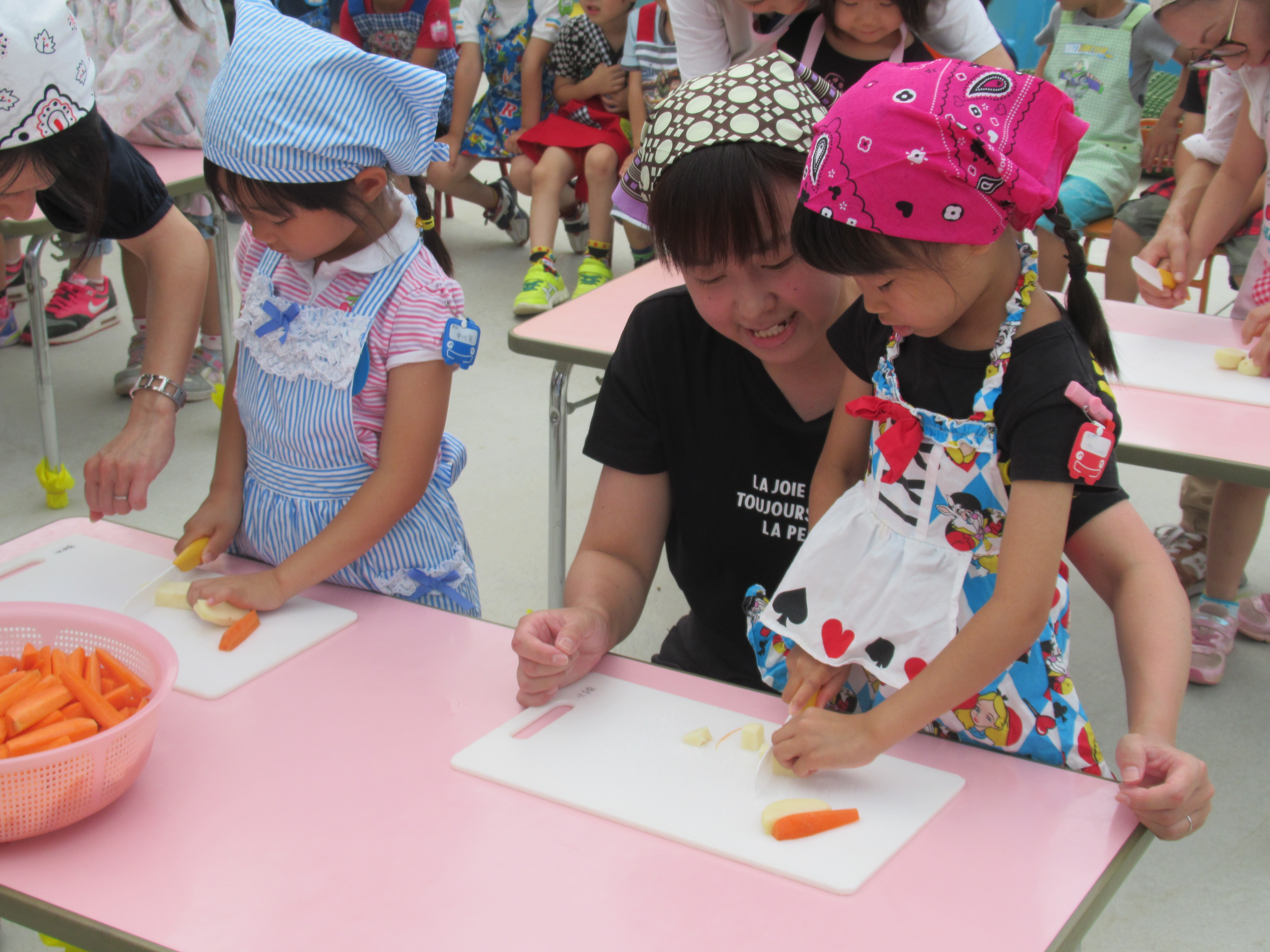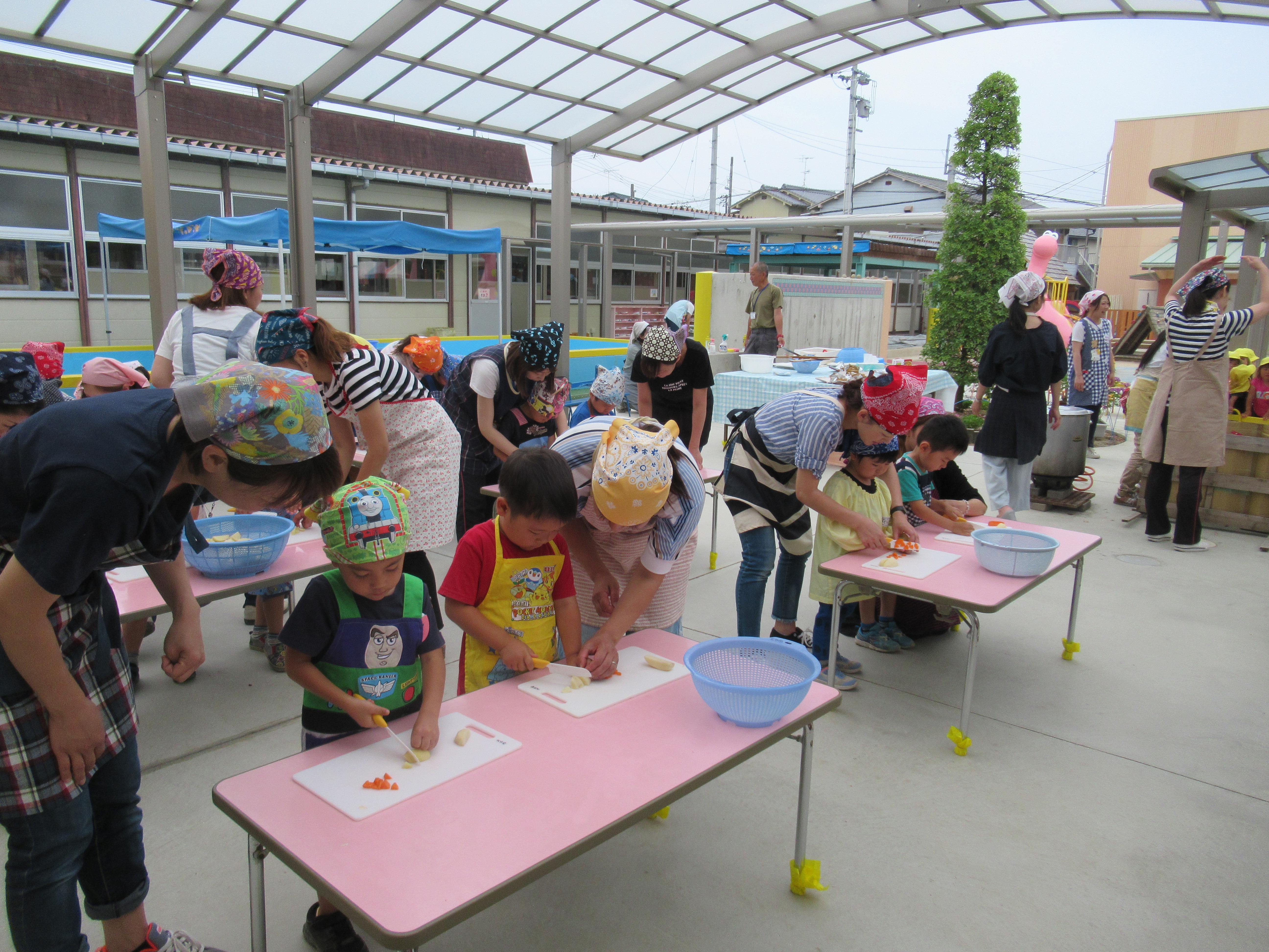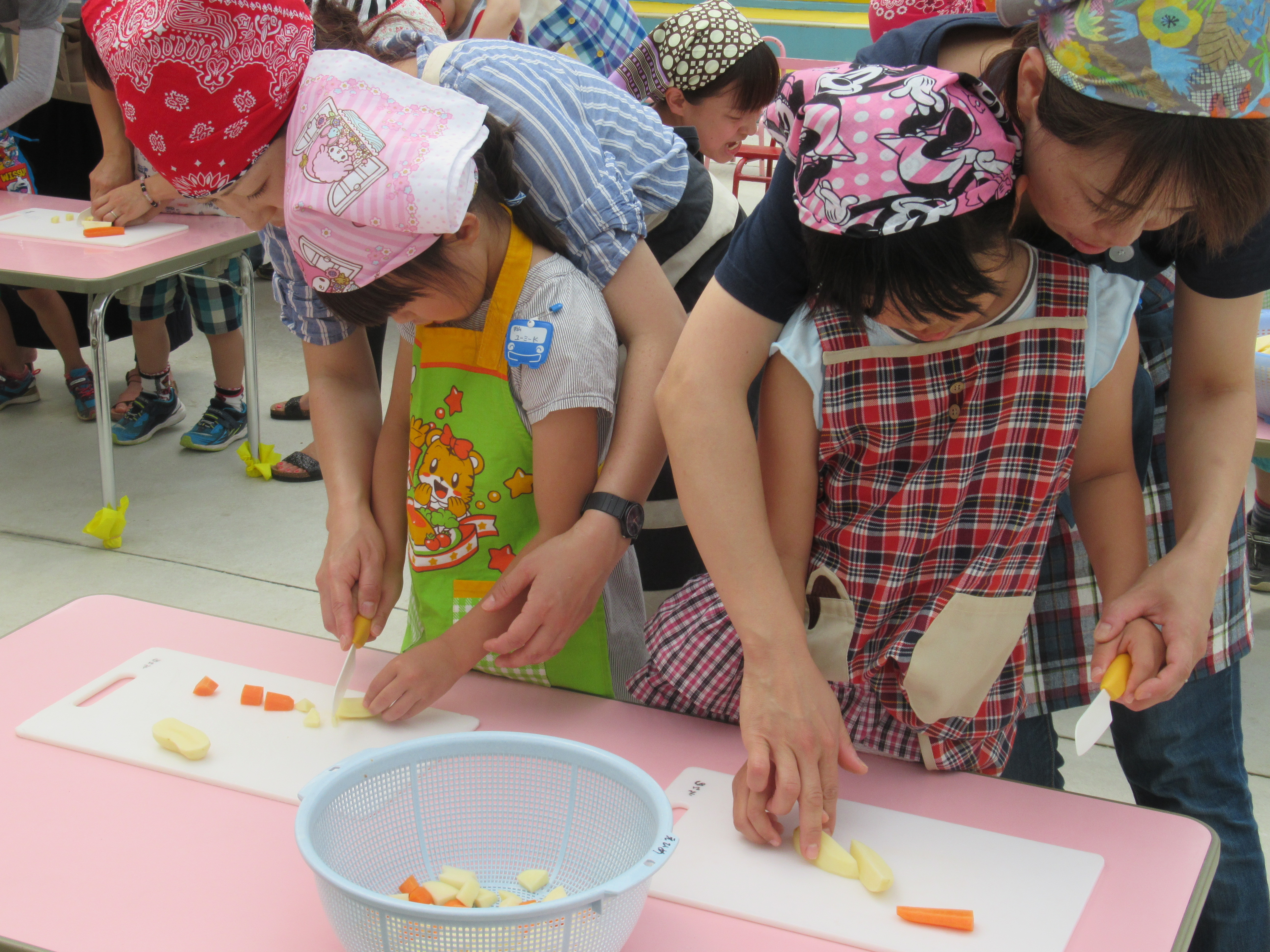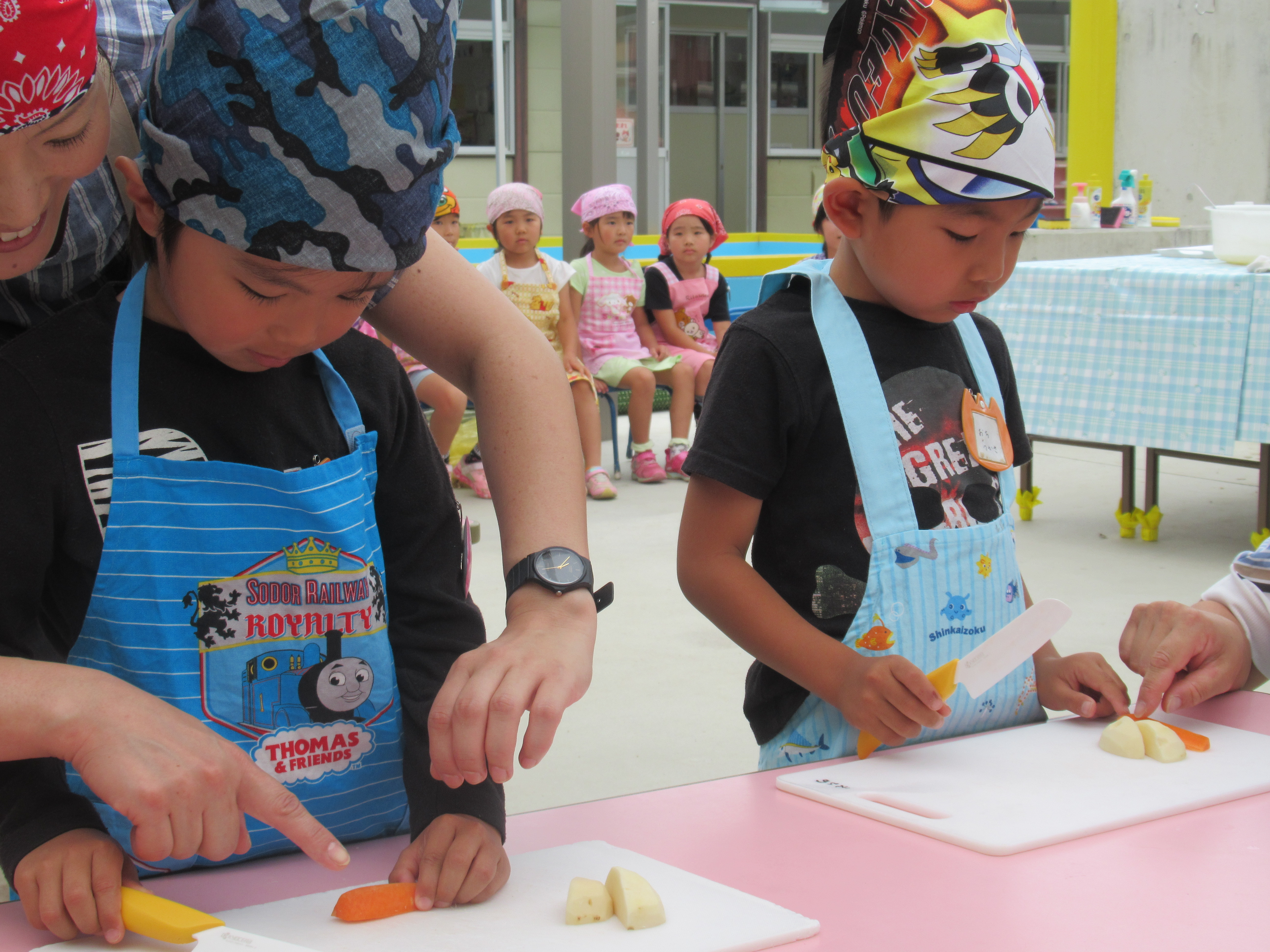 農園で収穫した野菜などを使ってカレーを作りました。みんなで食べておいしかった!