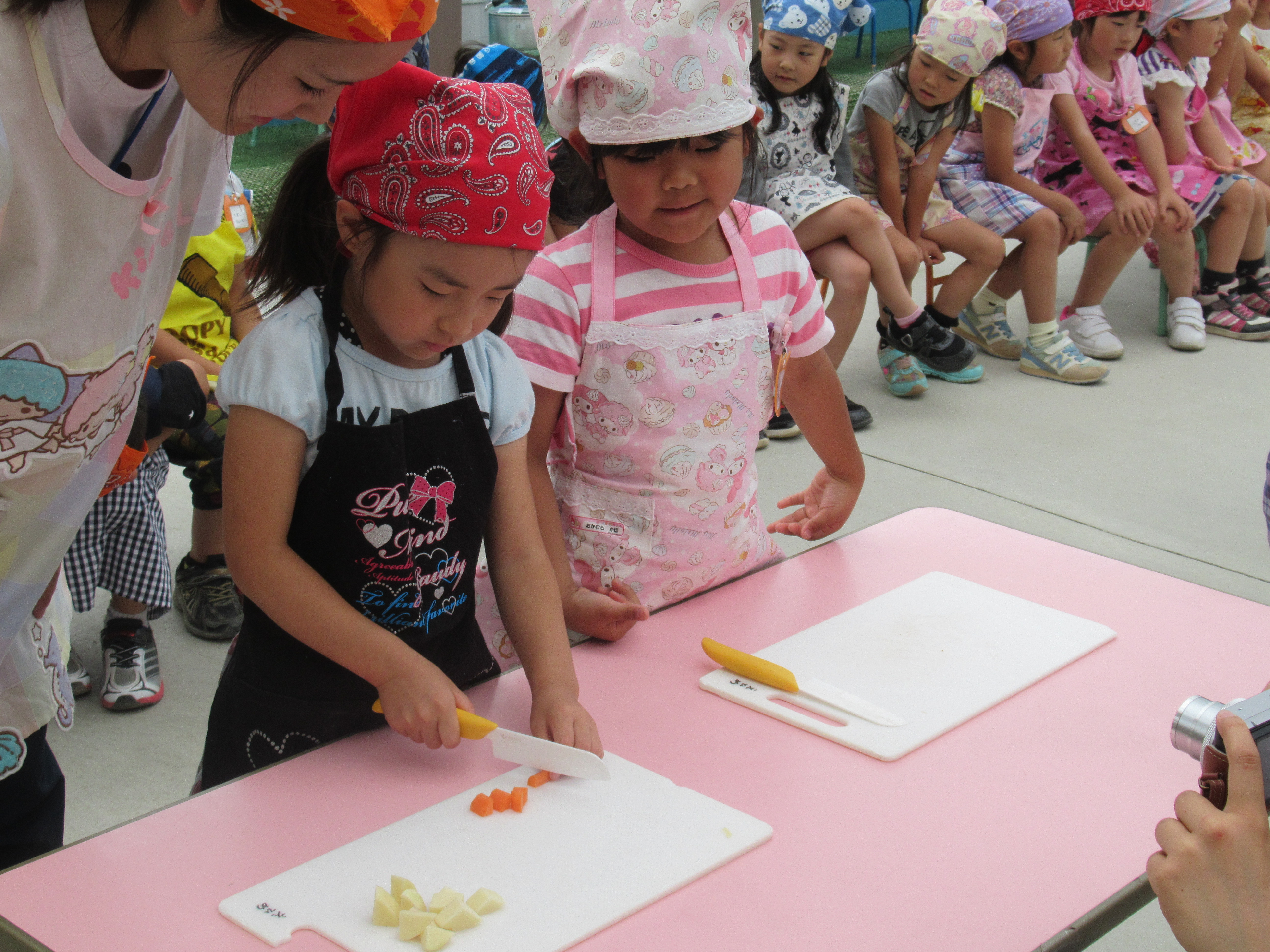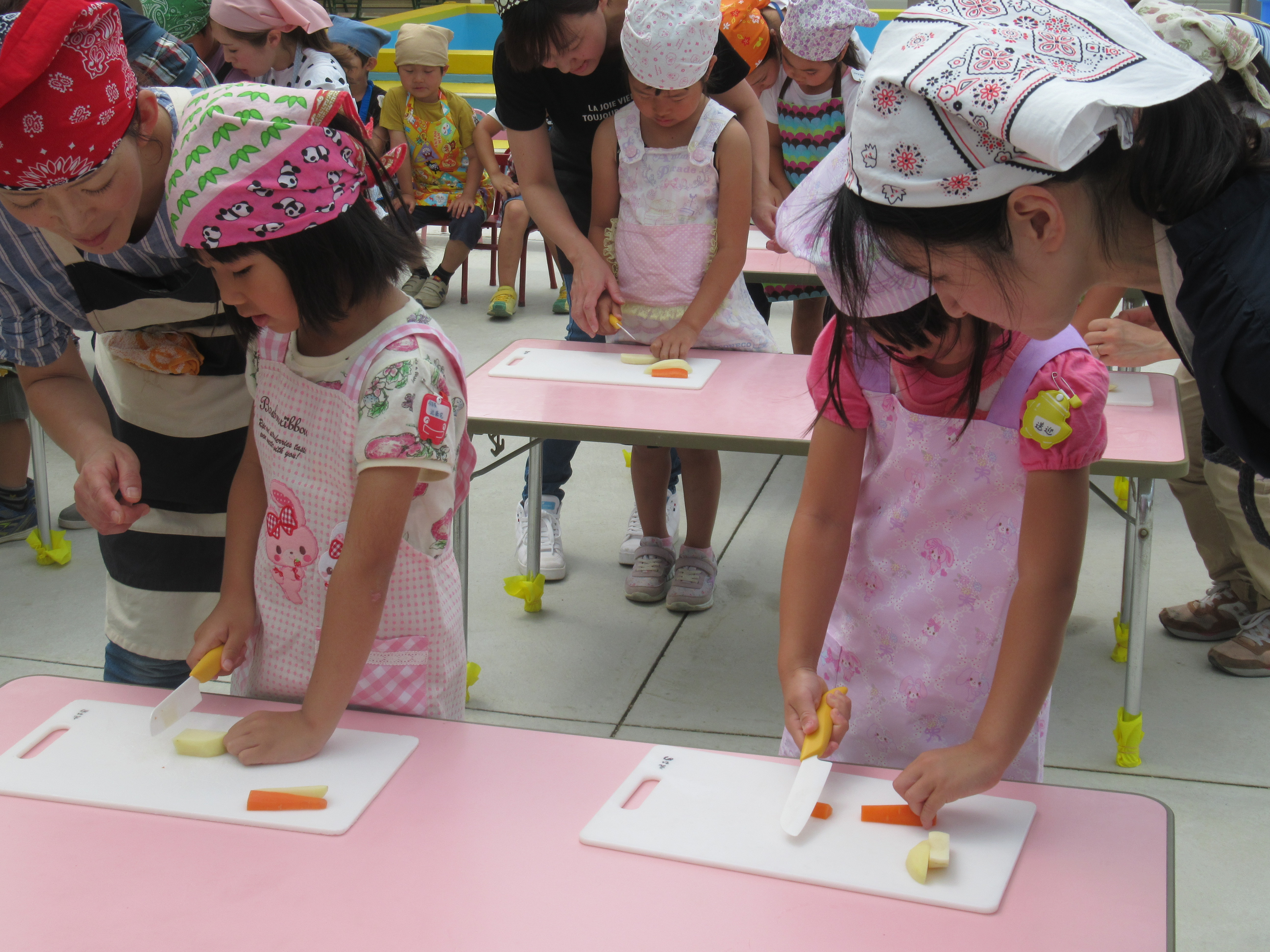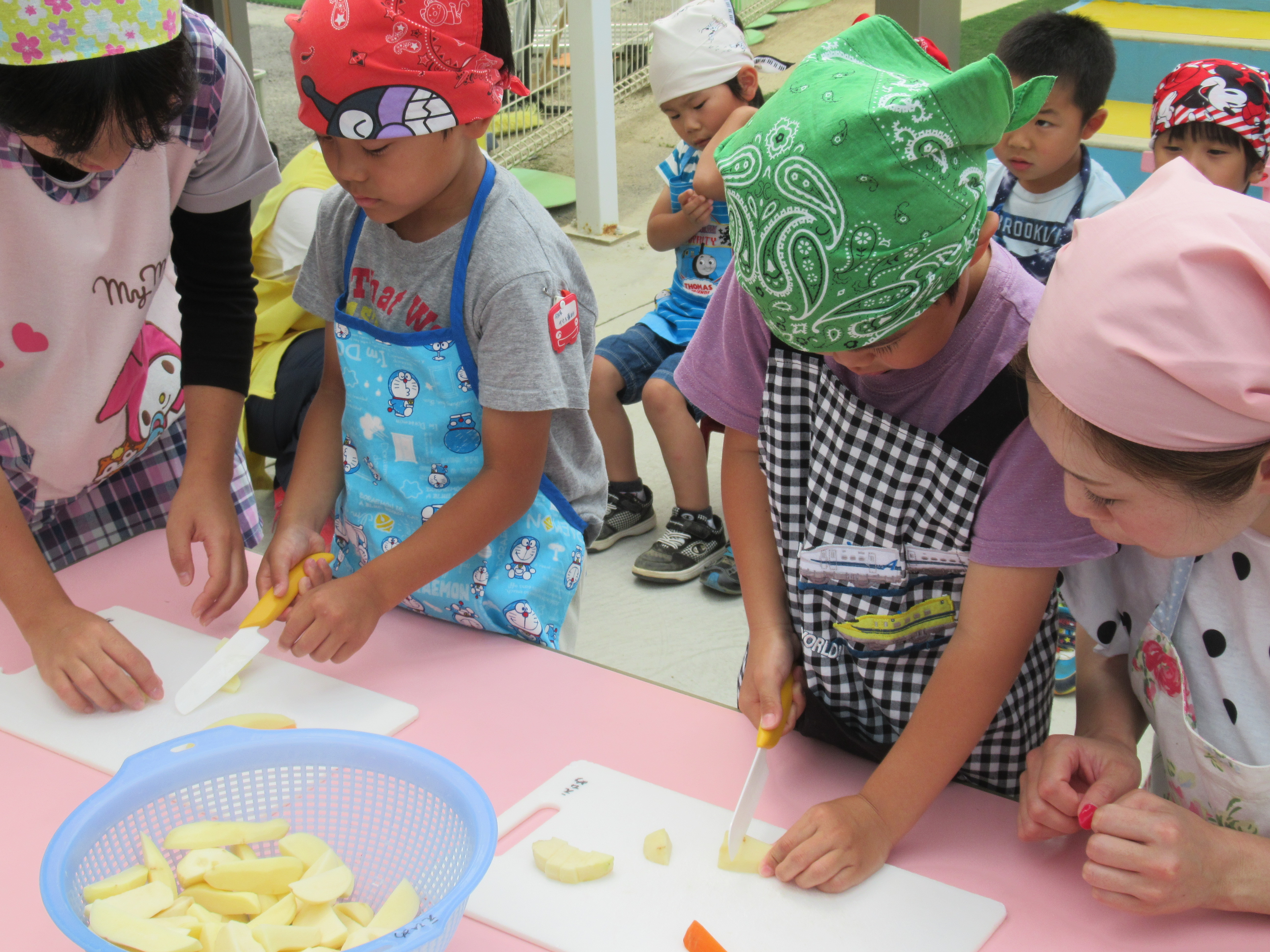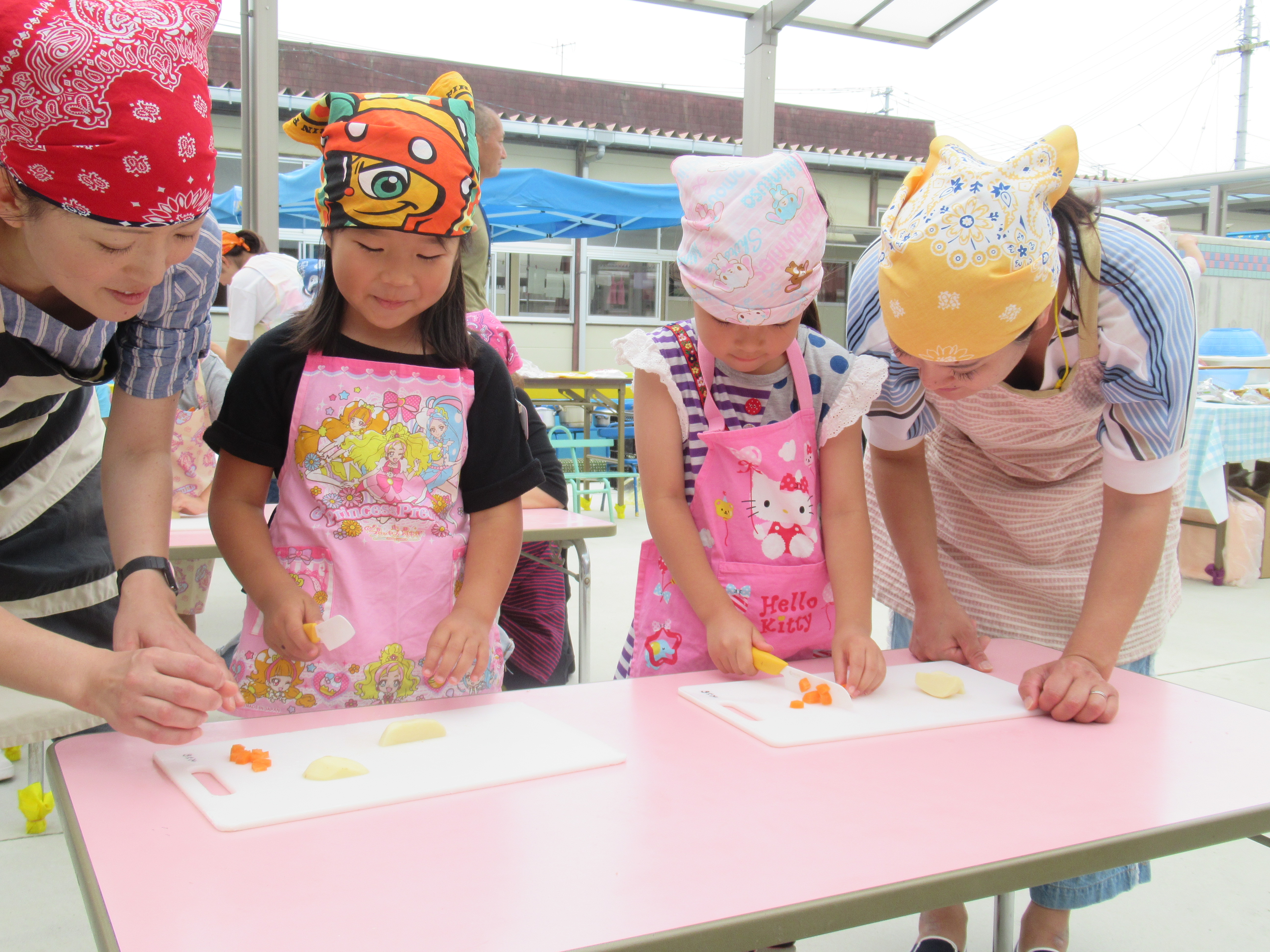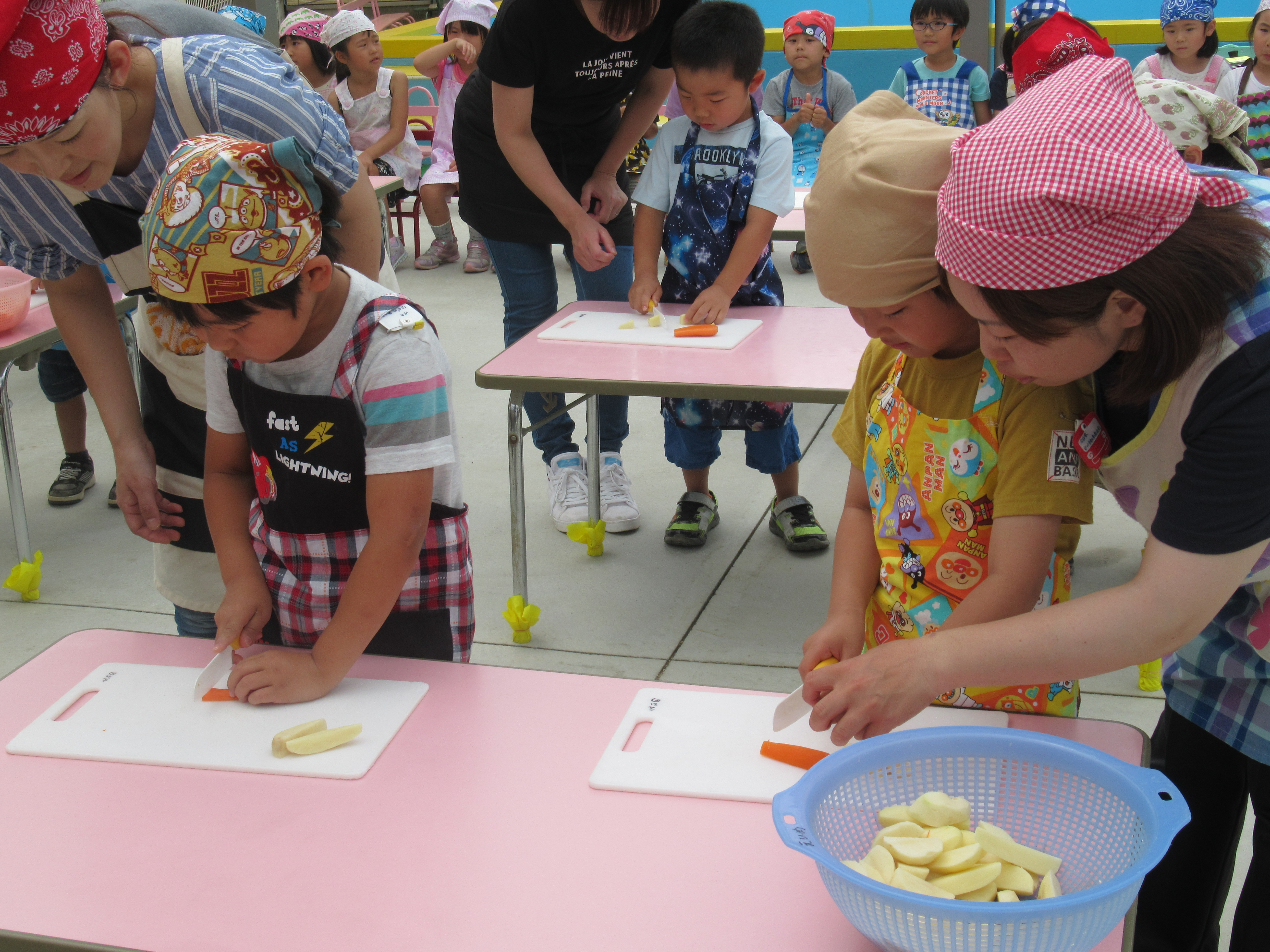 農園で収穫した野菜などを使ってカレーを作りました。みんなで食べておいしかった!