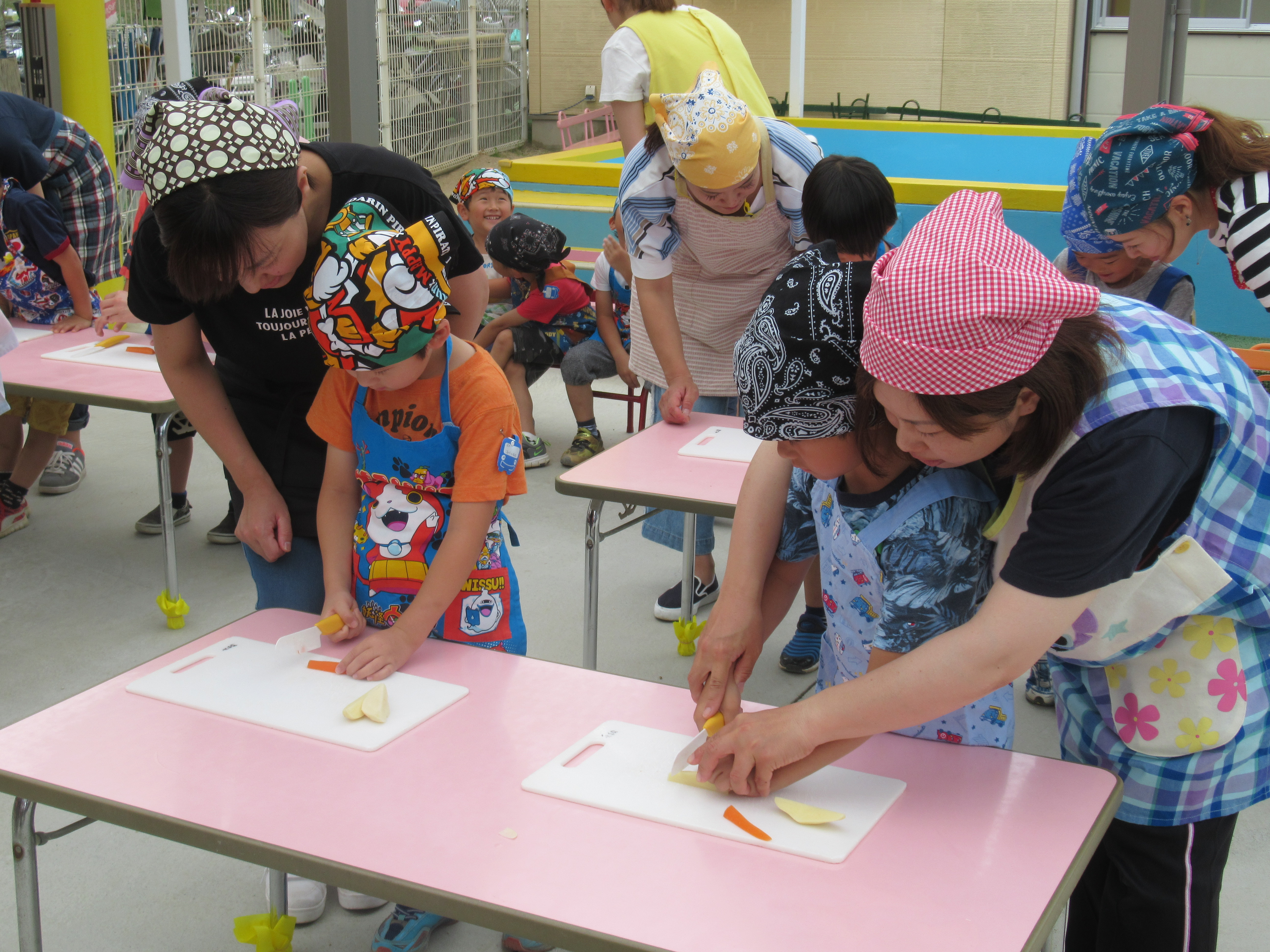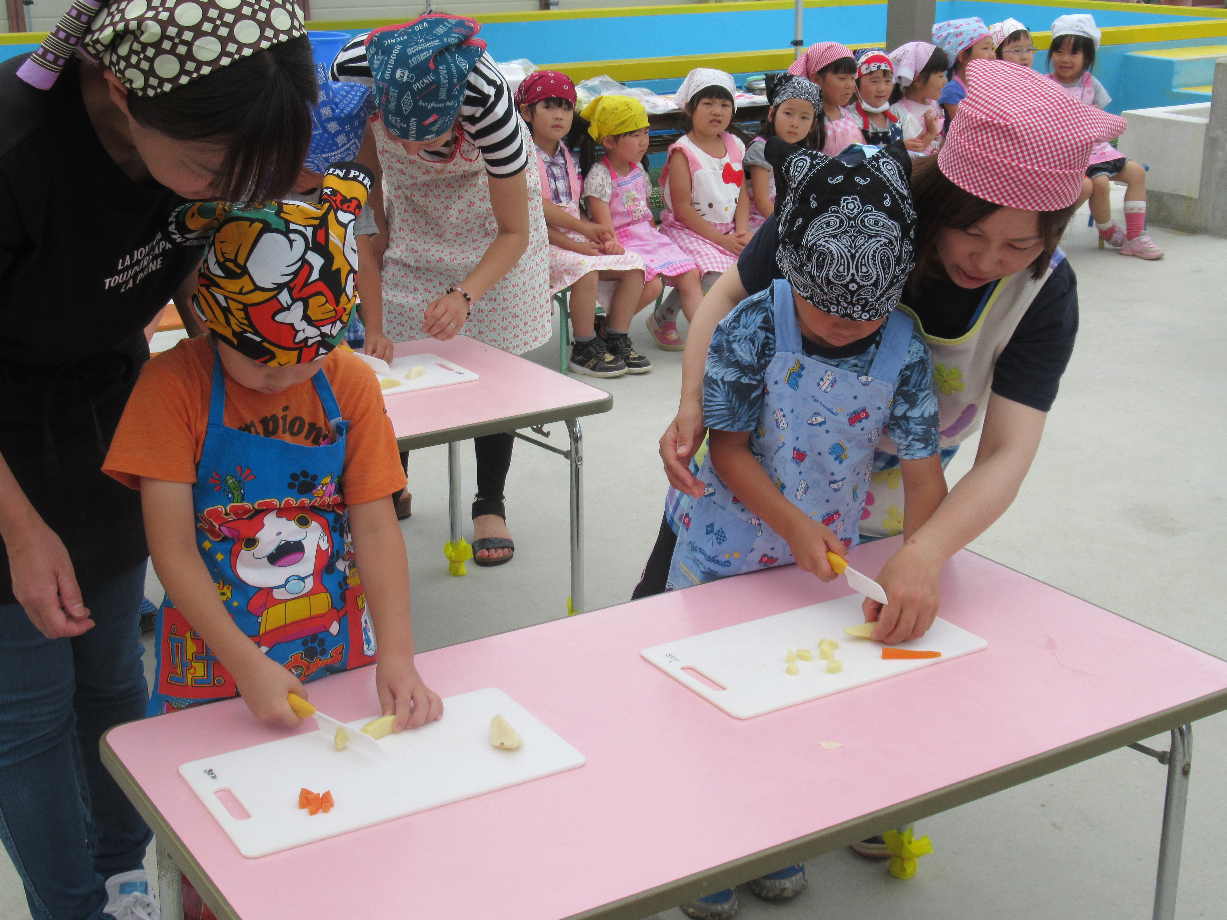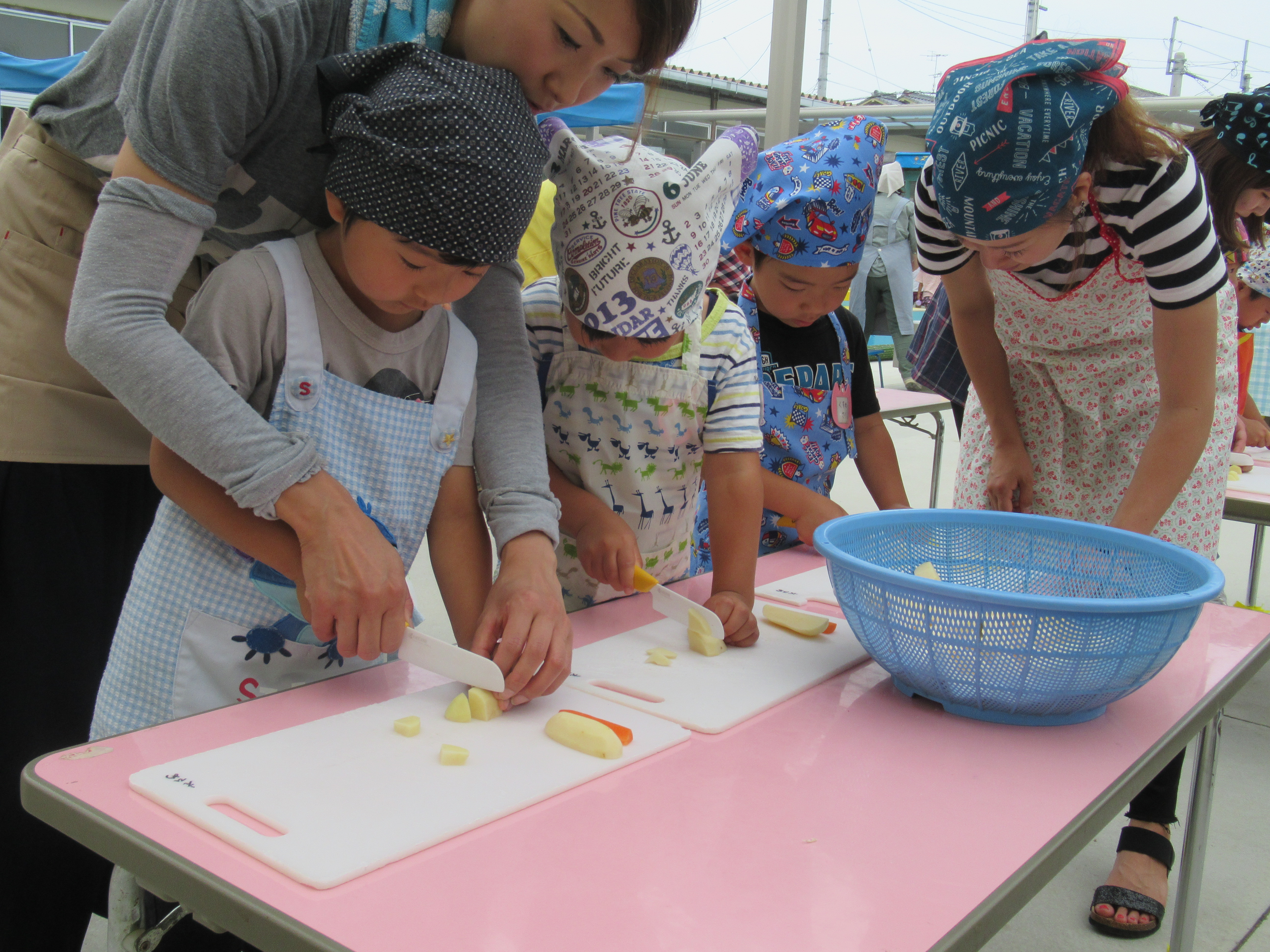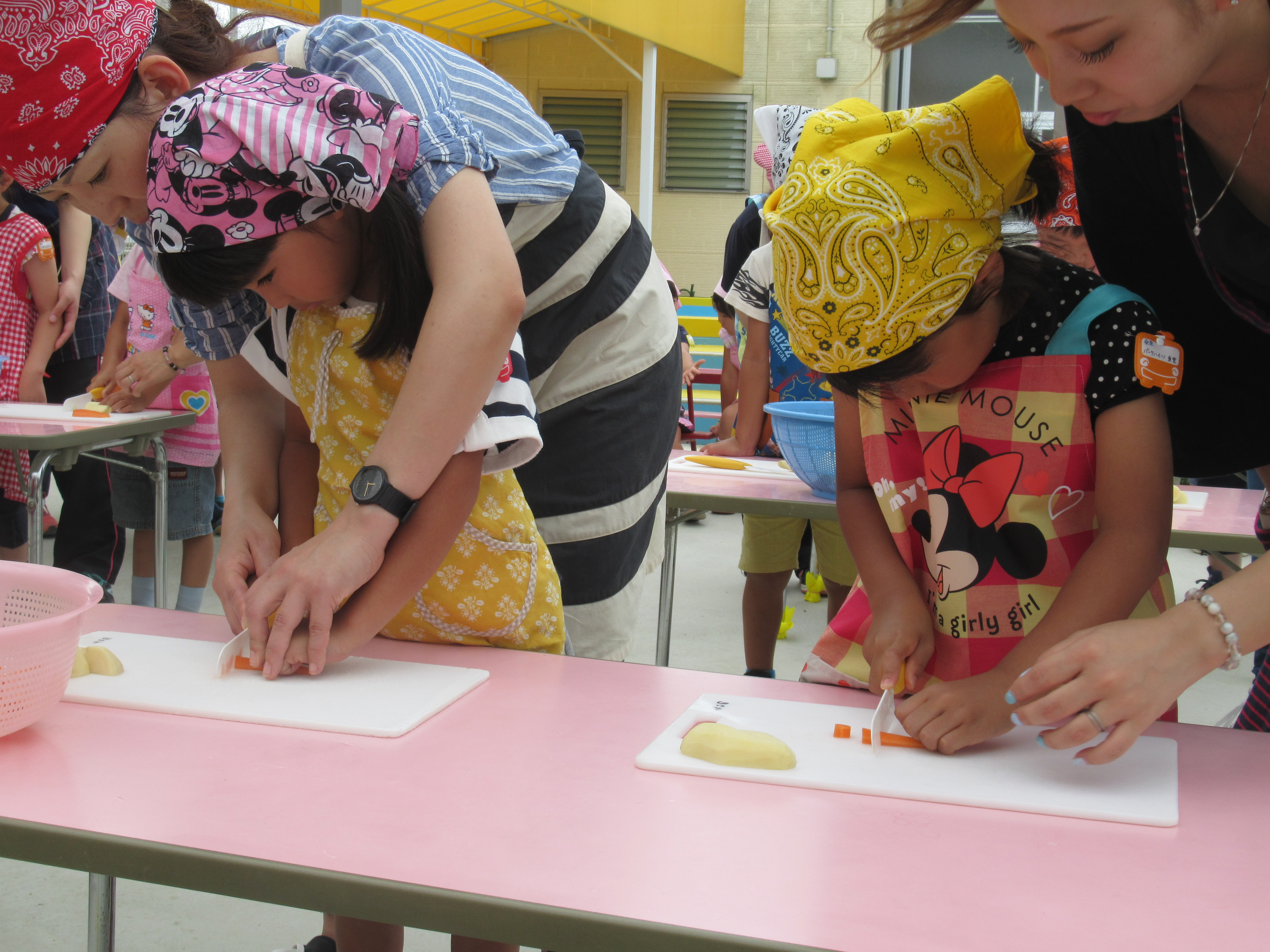 農園で収穫した野菜などを使ってカレーを作りました。みんなで食べておいしかった!