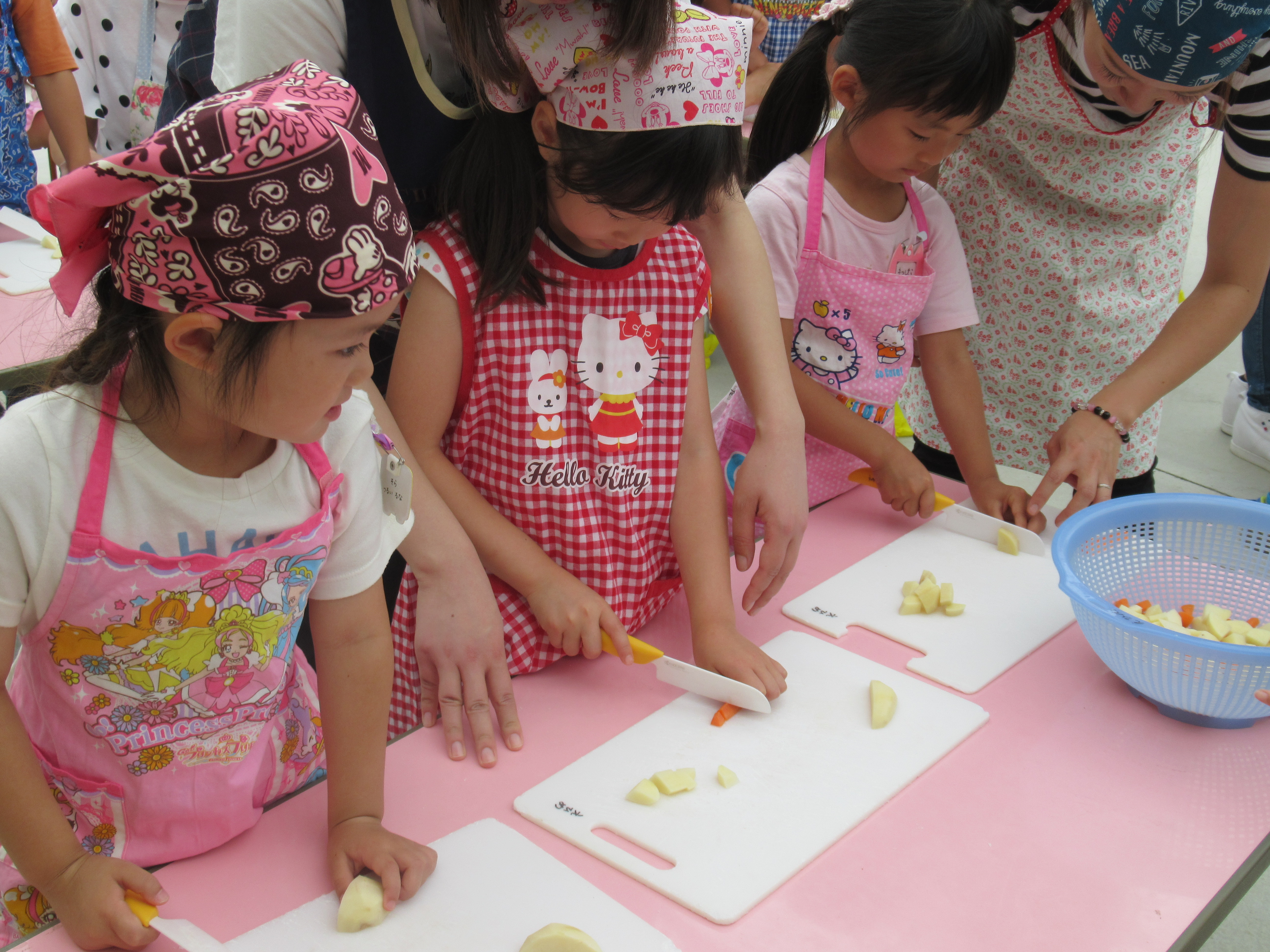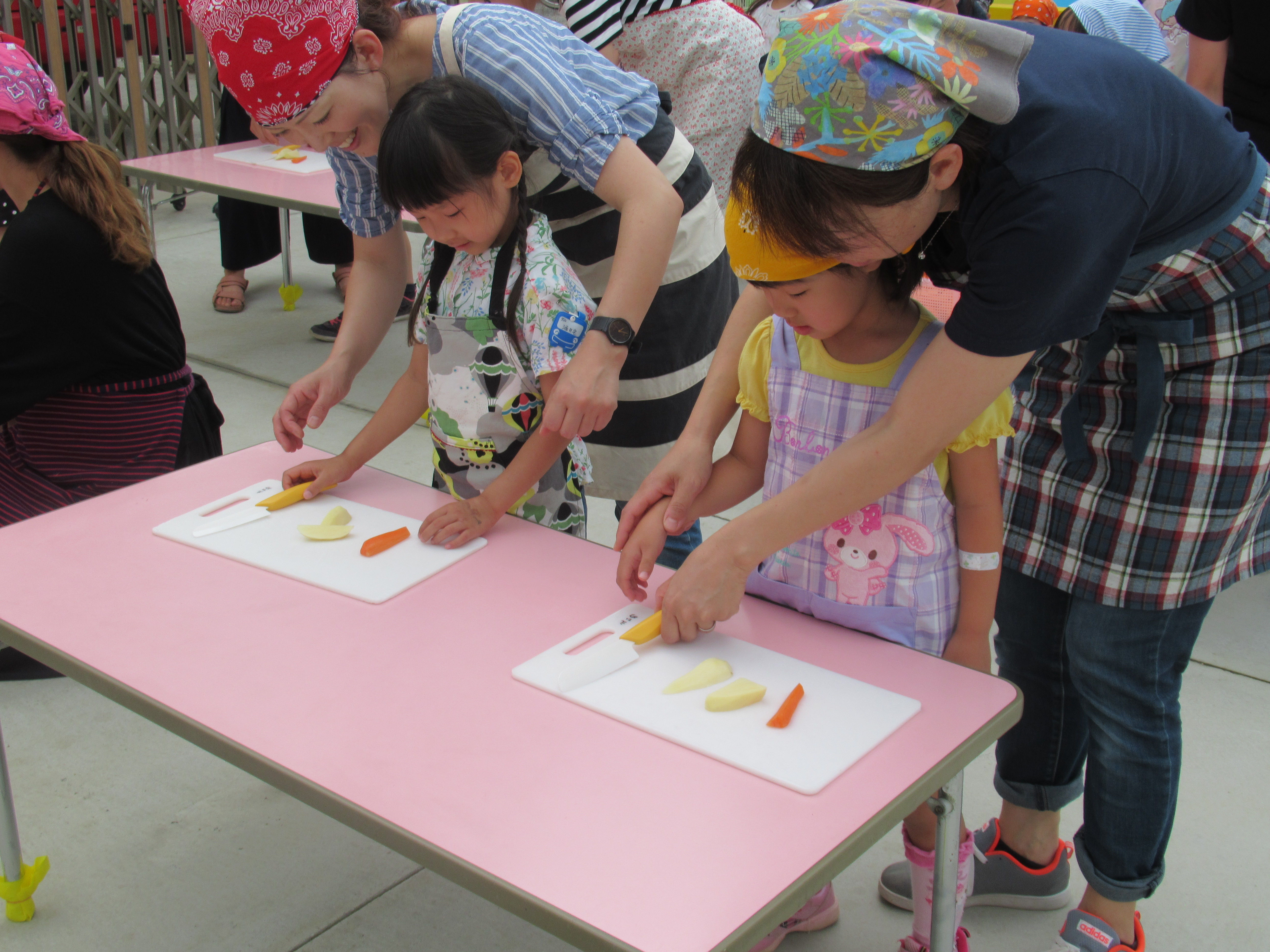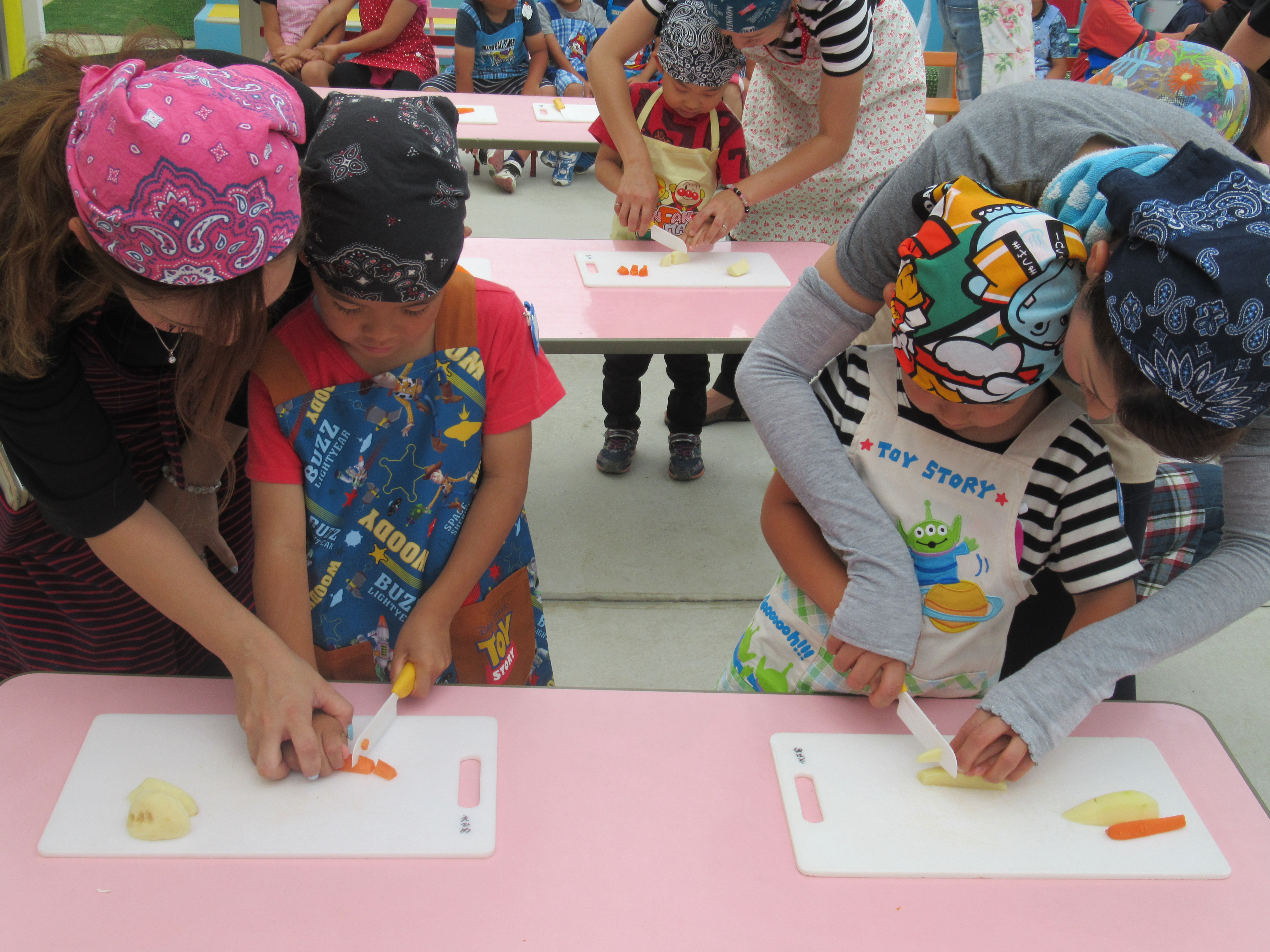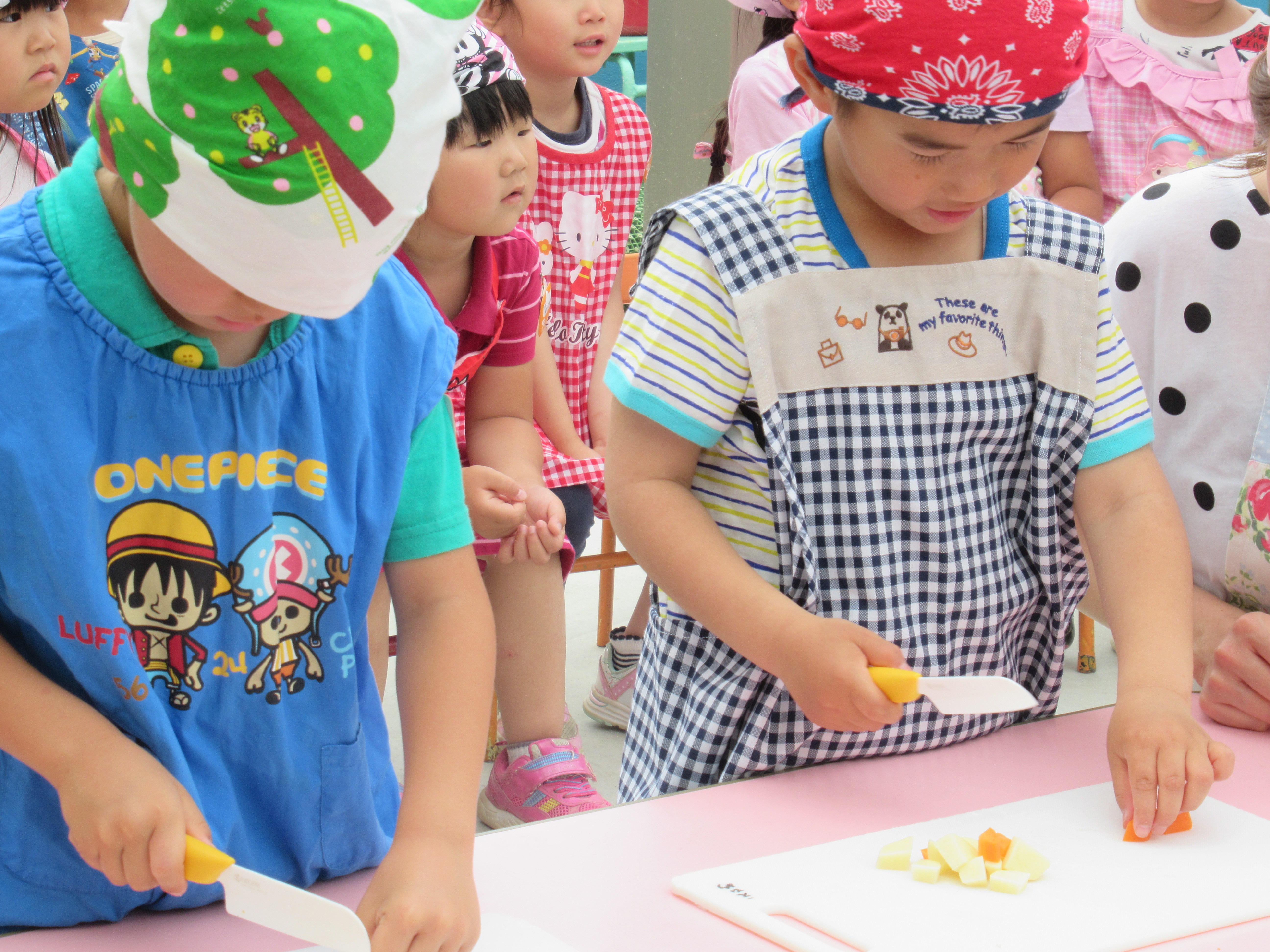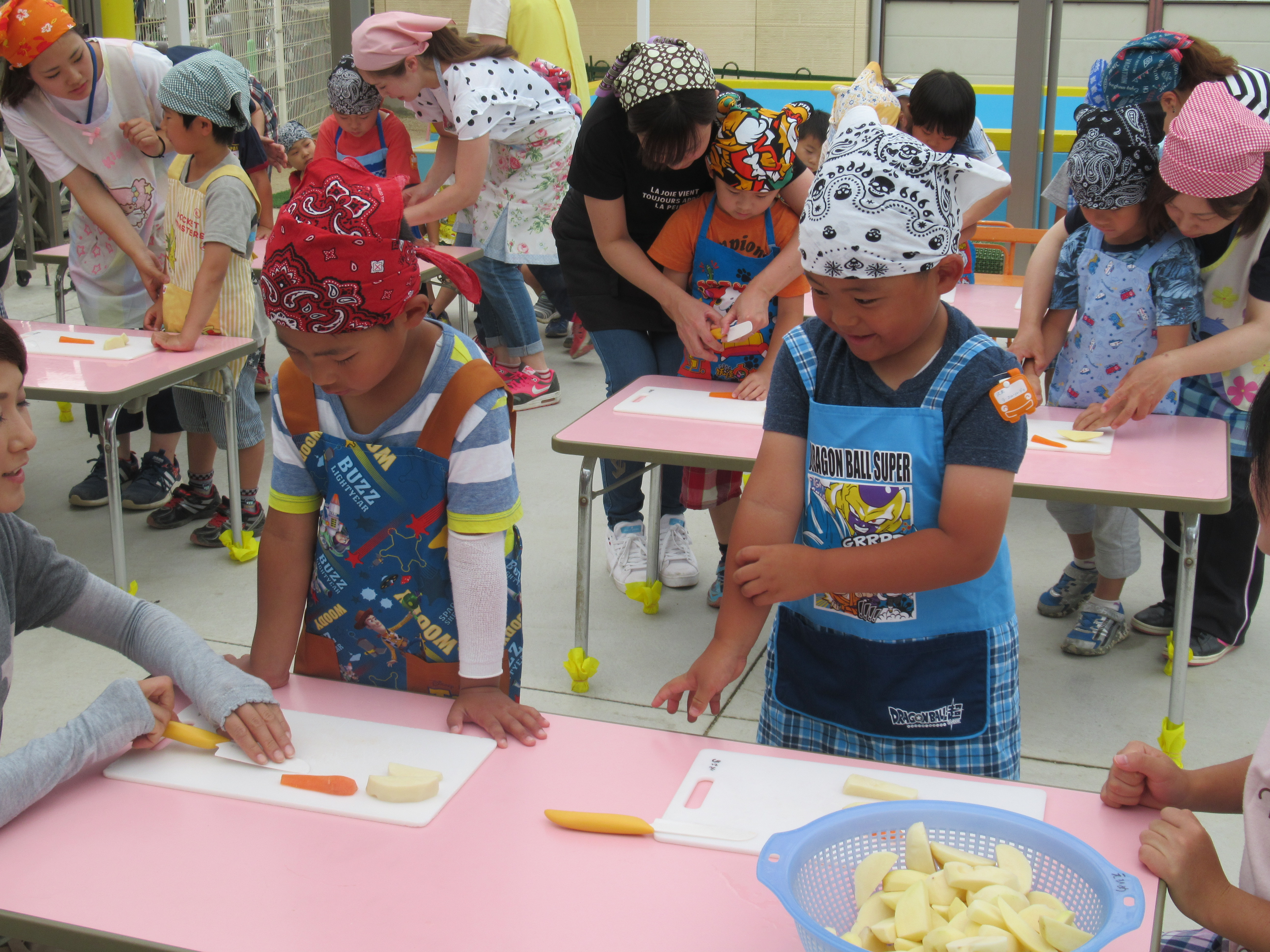 農園で収穫した野菜などを使ってカレーを作りました。みんなで食べておいしかった!