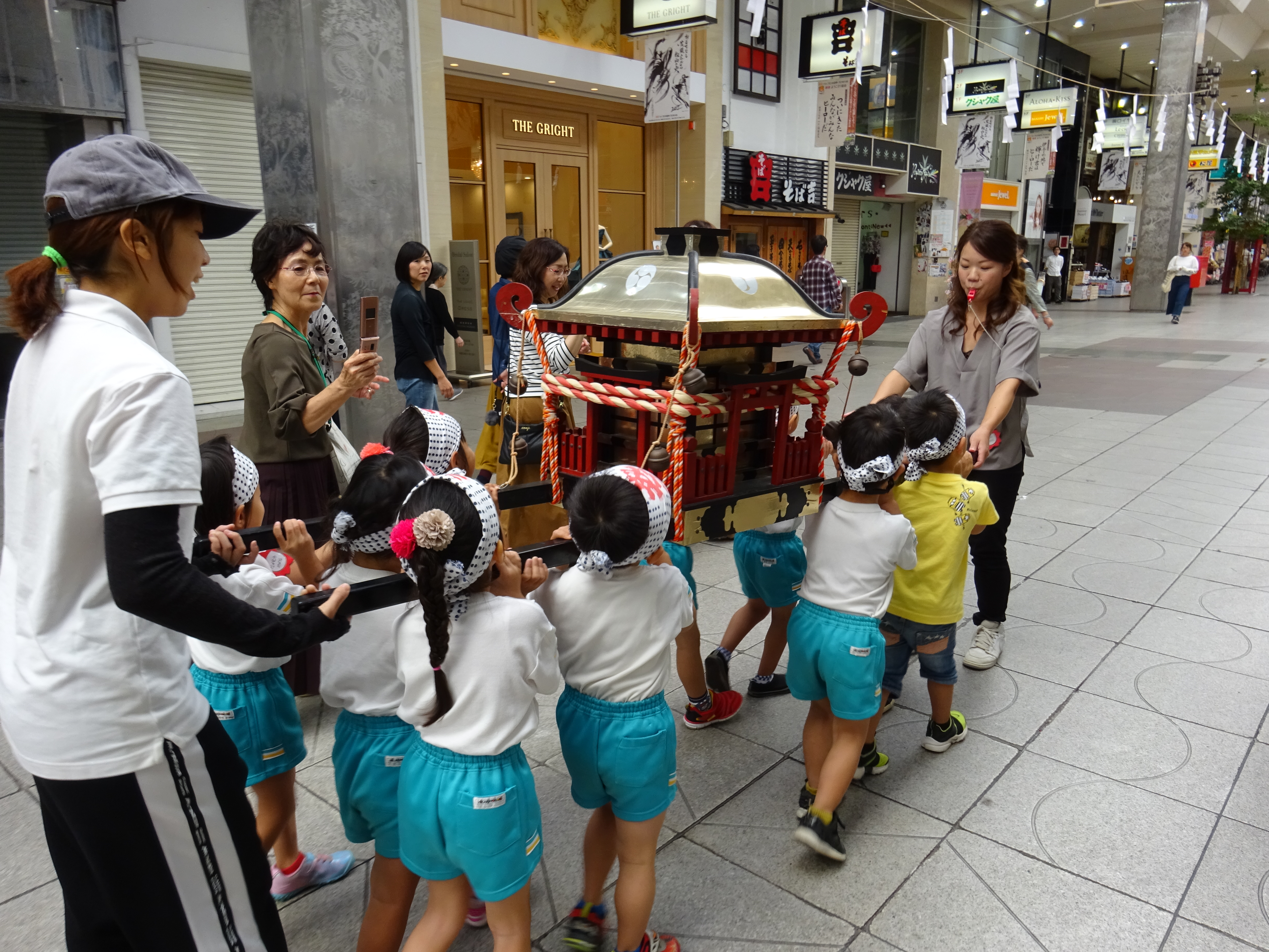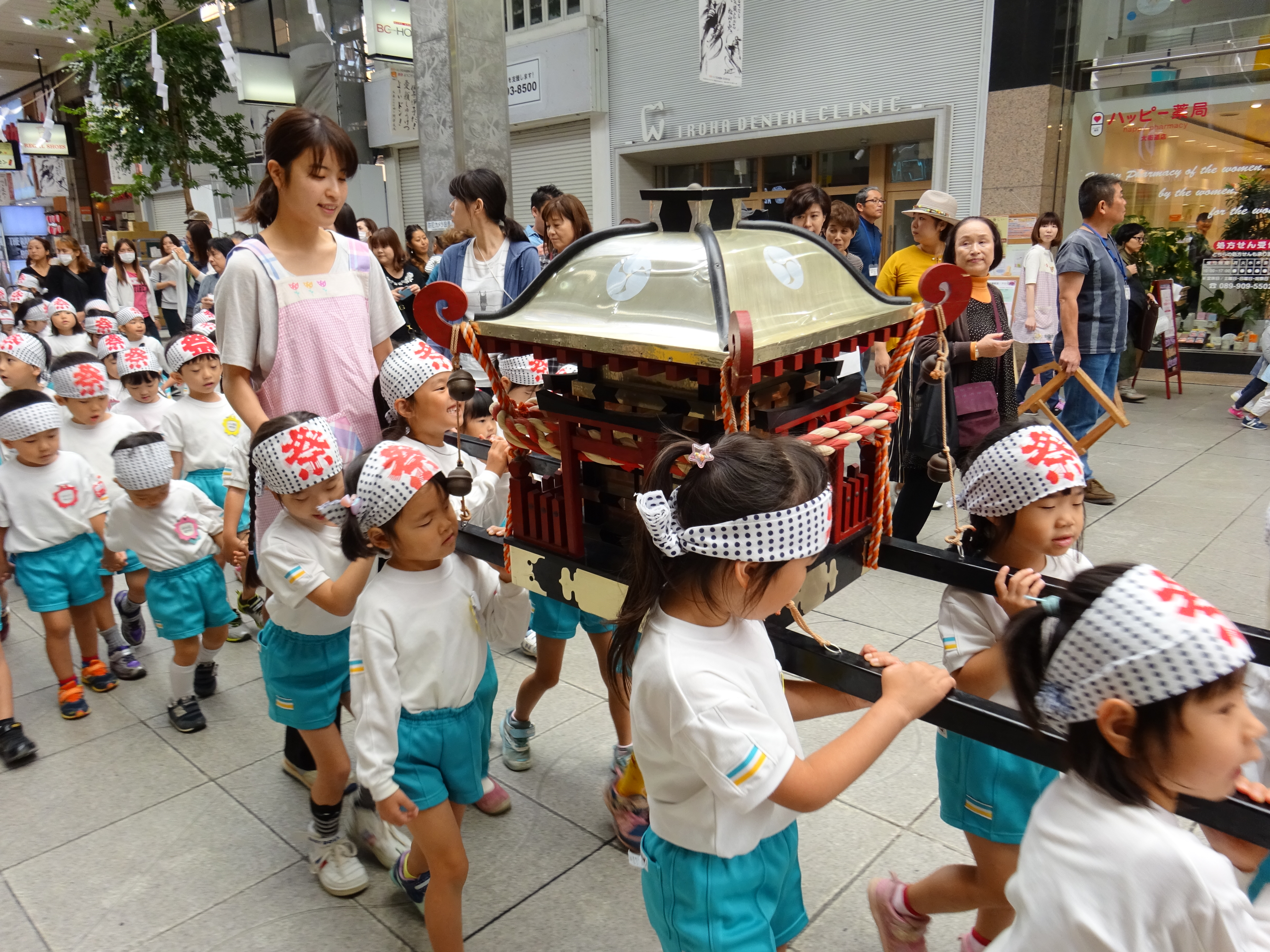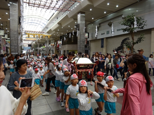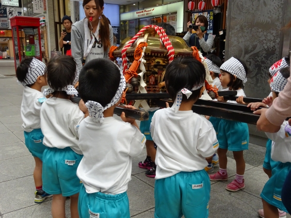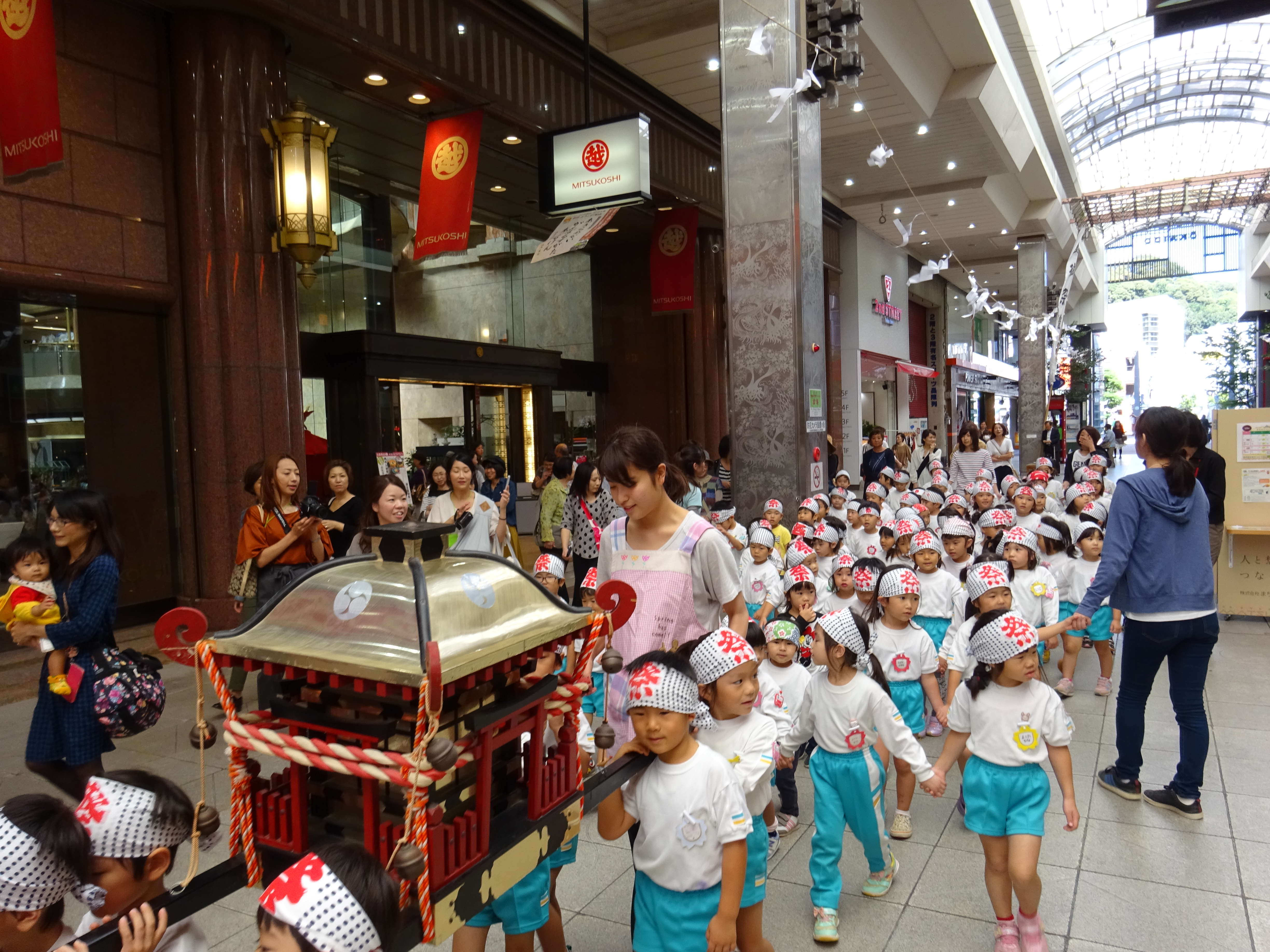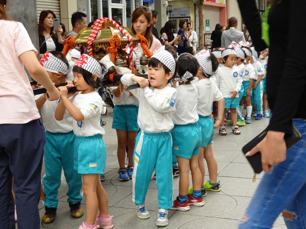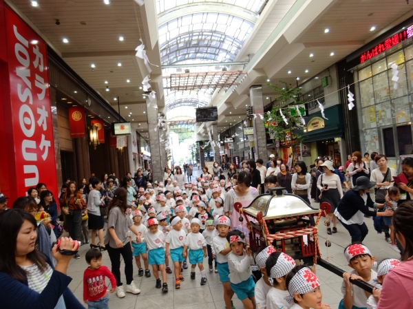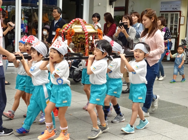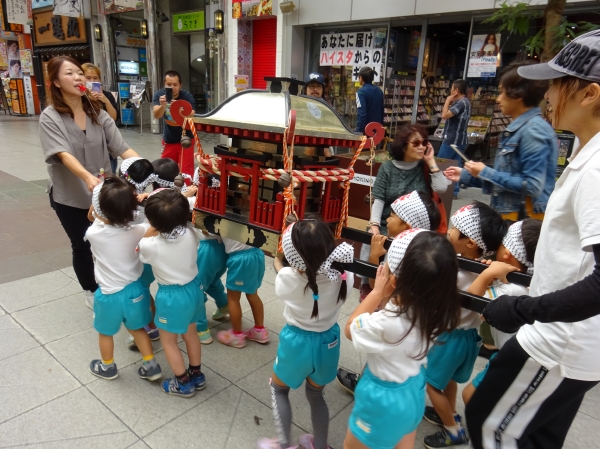 わっしょいわっしょい、園内と大街道をおみこしかついでわっしょい!