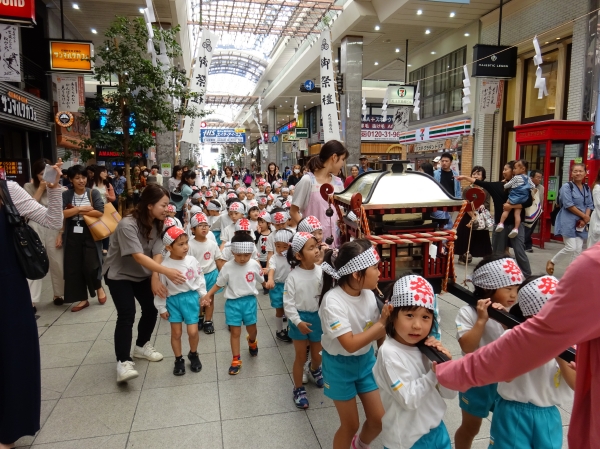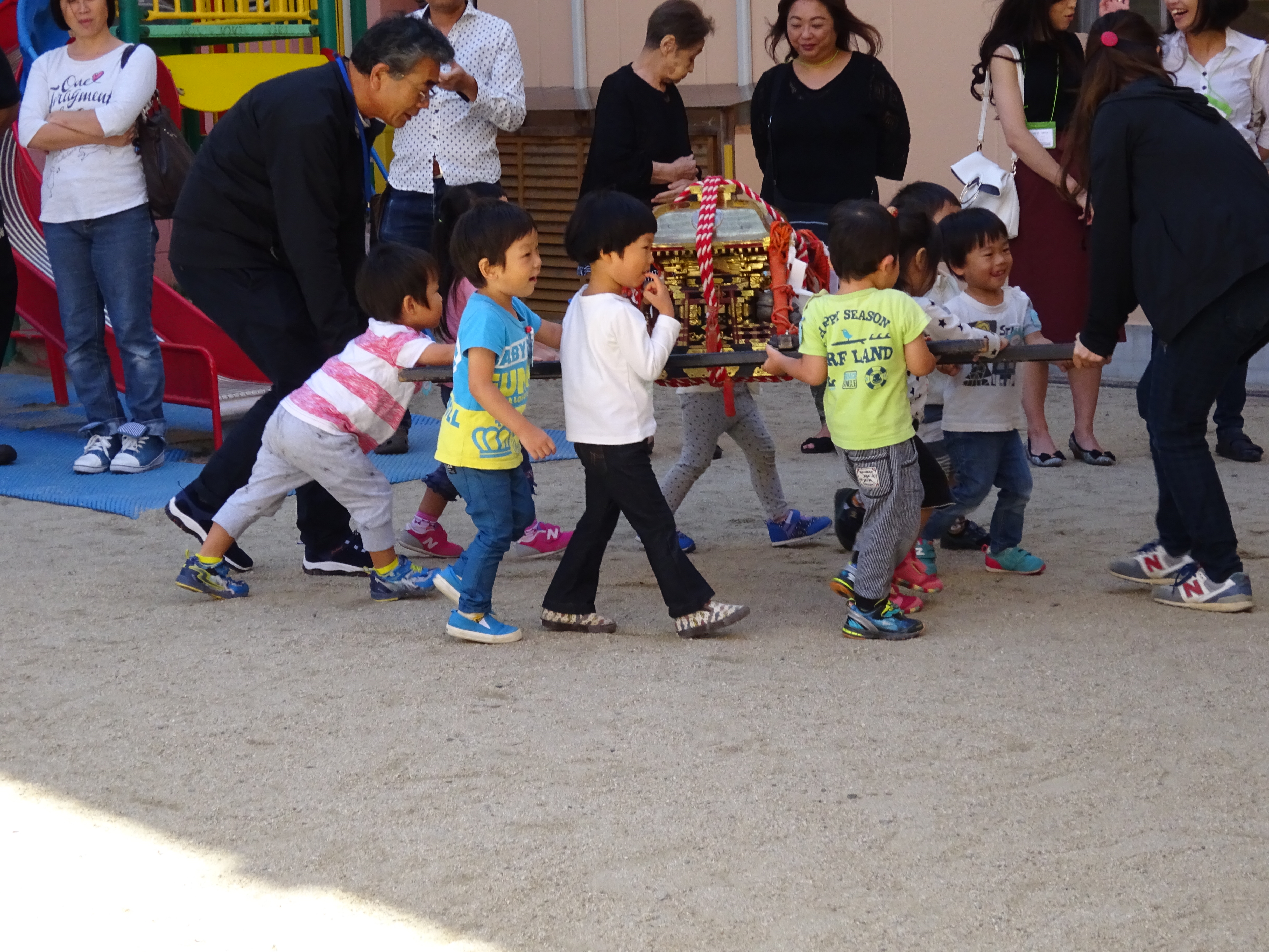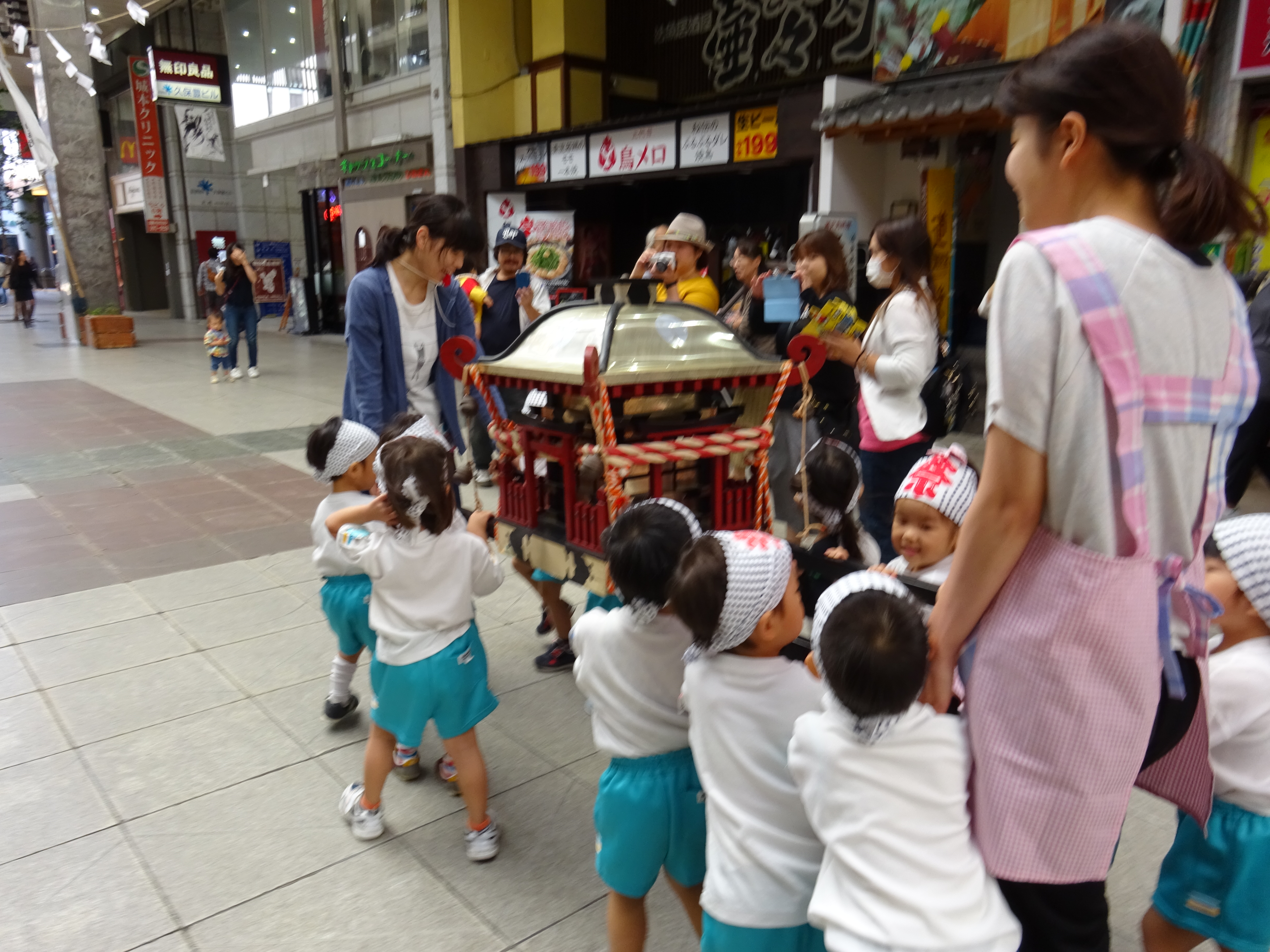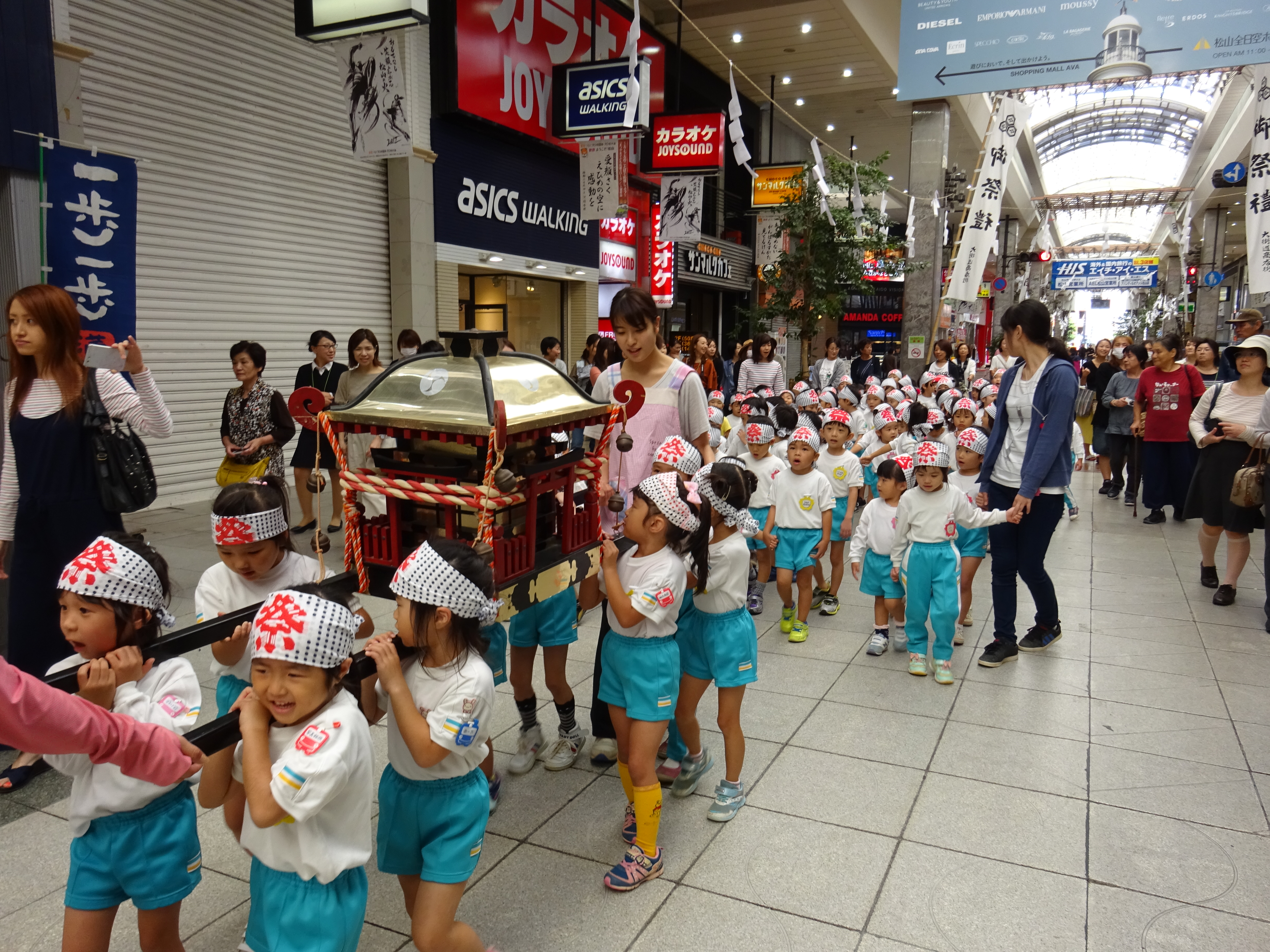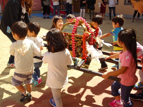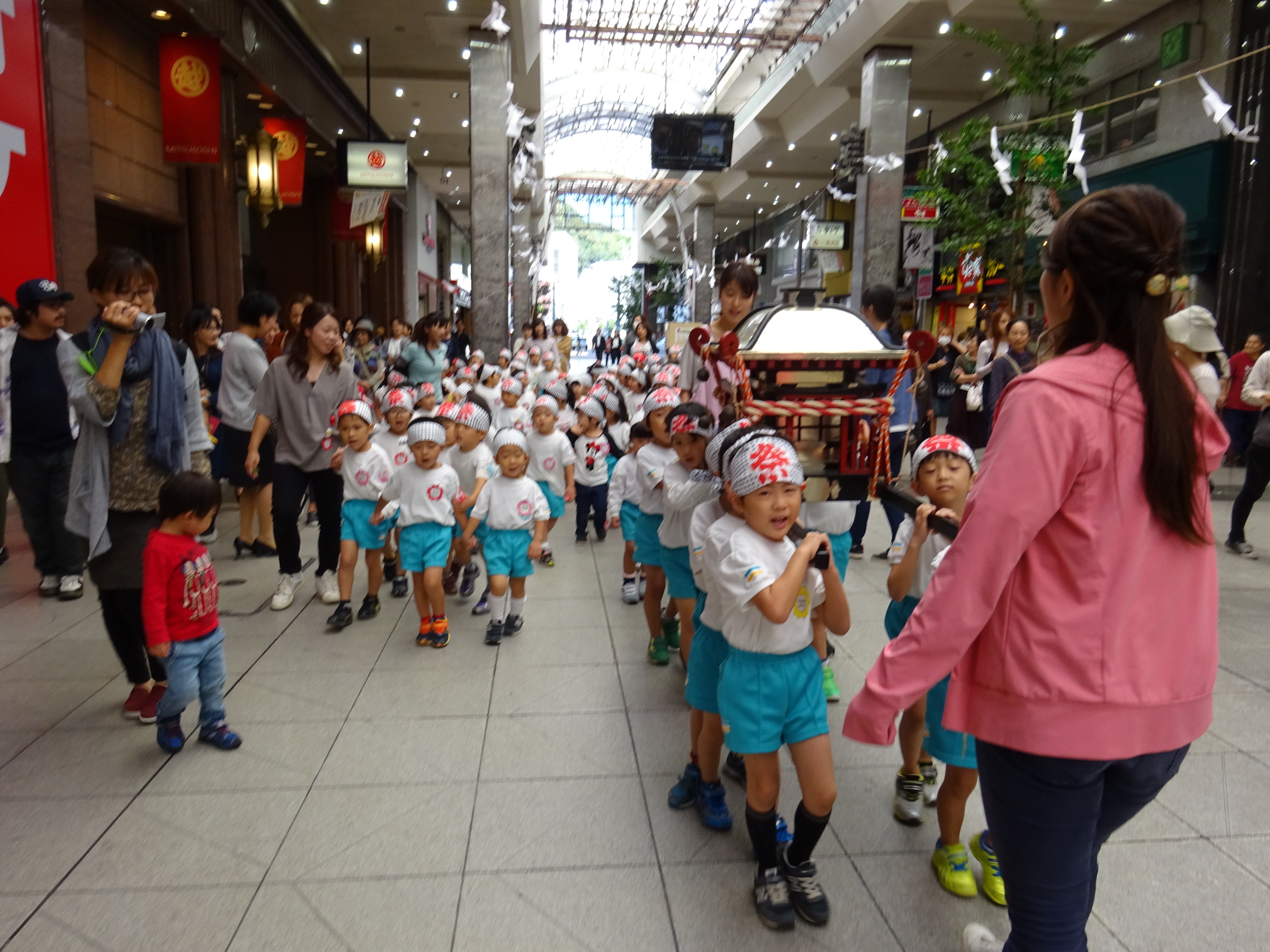 わっしょいわっしょい、園内と大街道をおみこしかついでわっしょい!