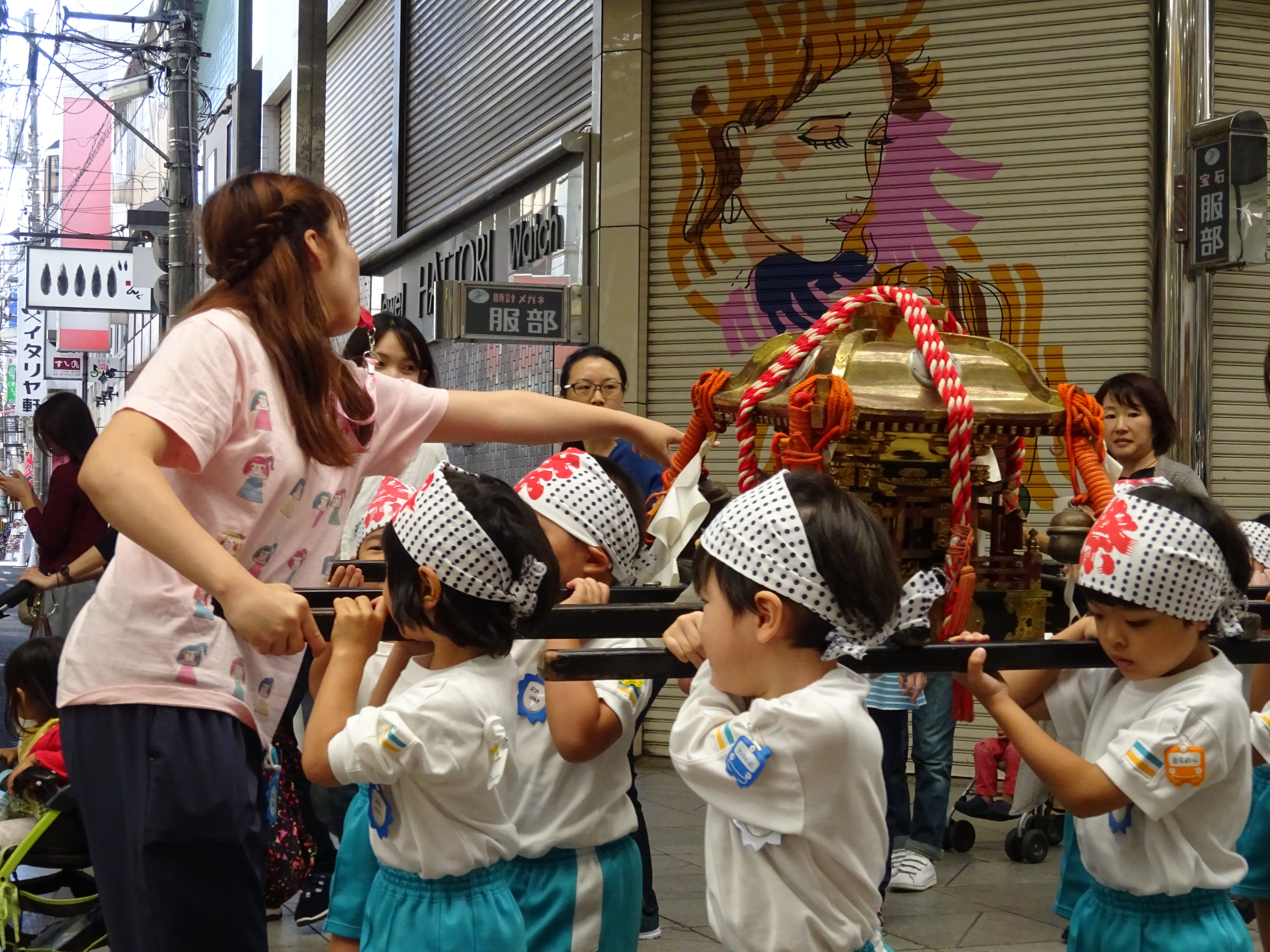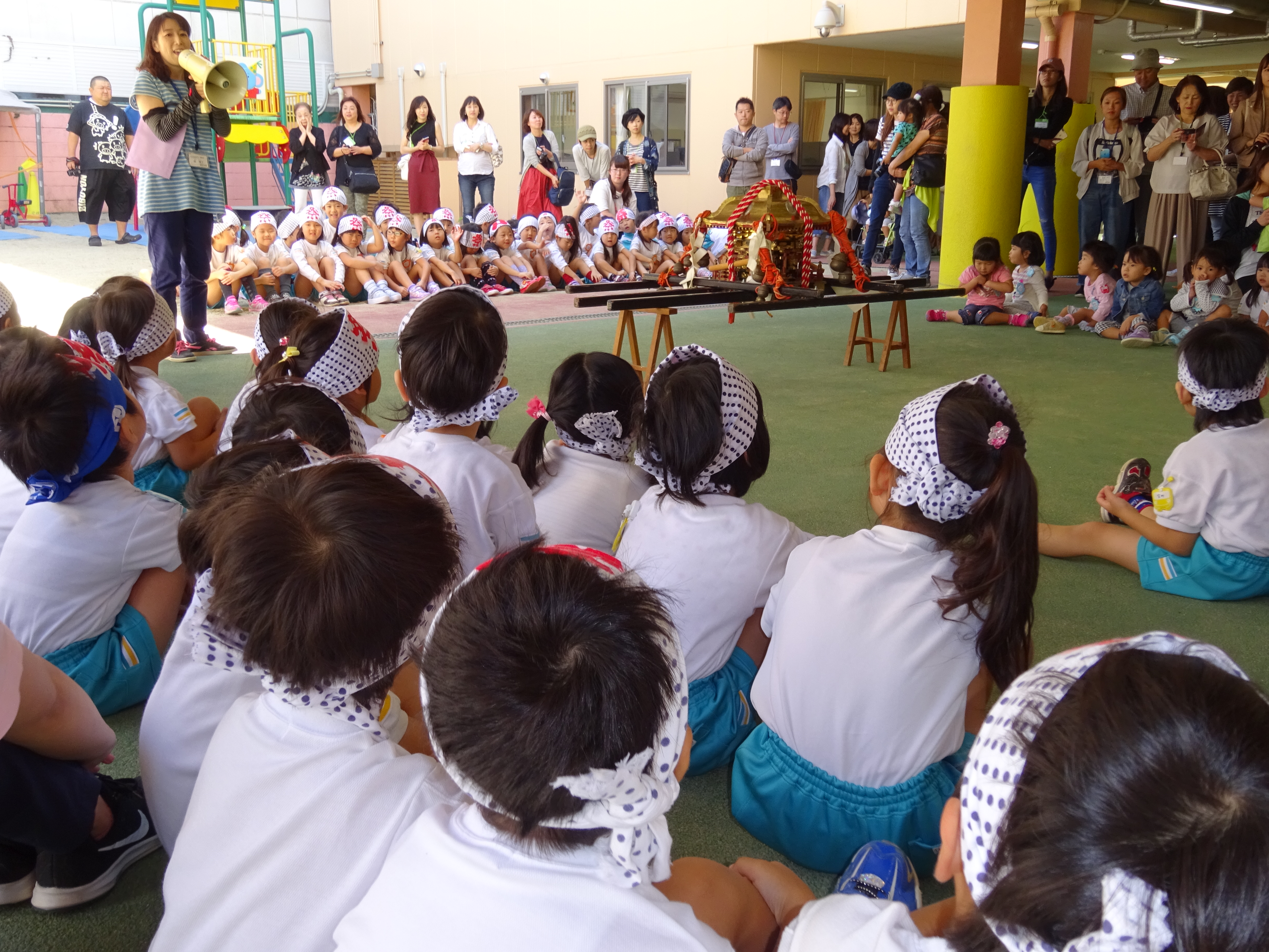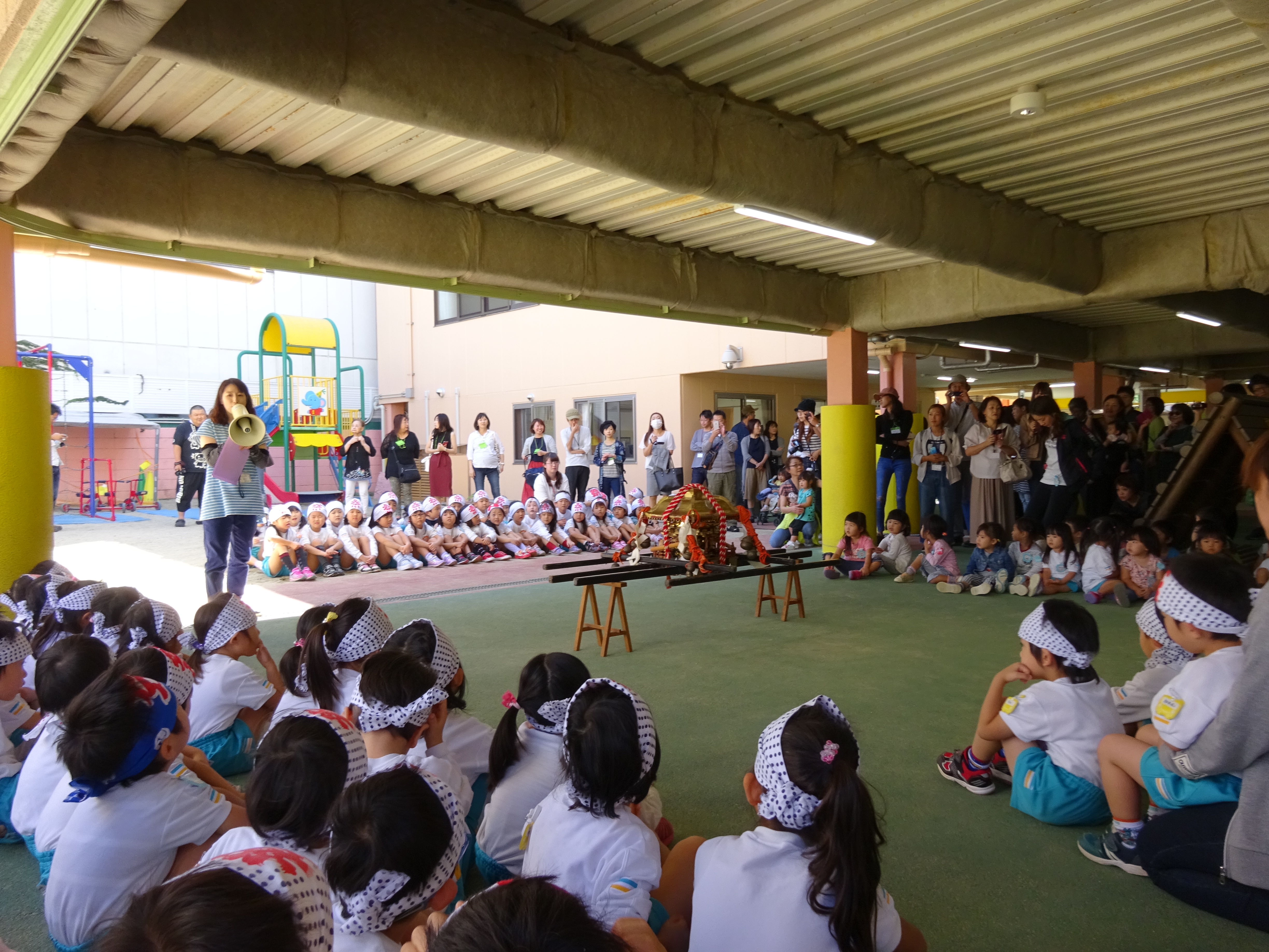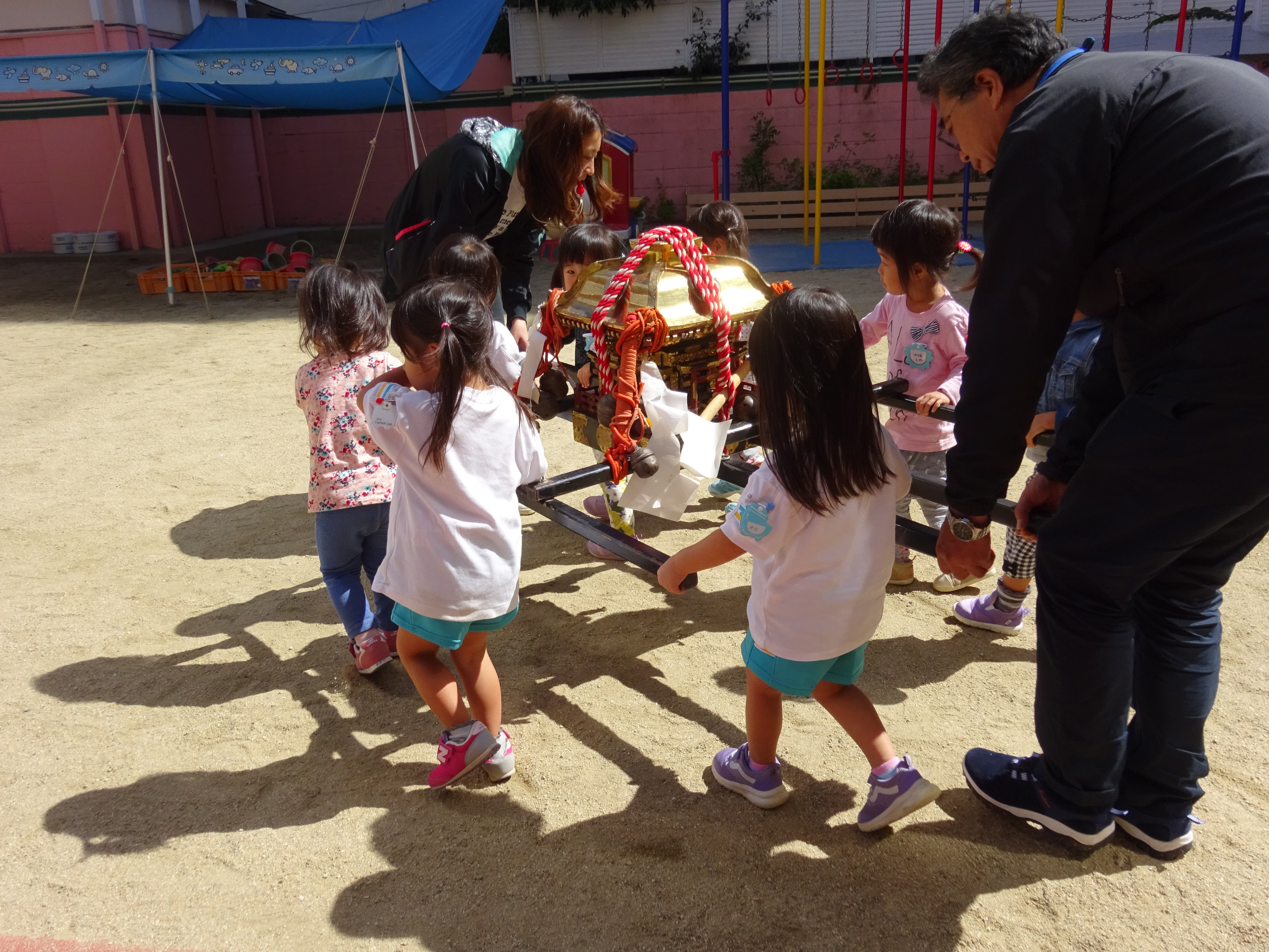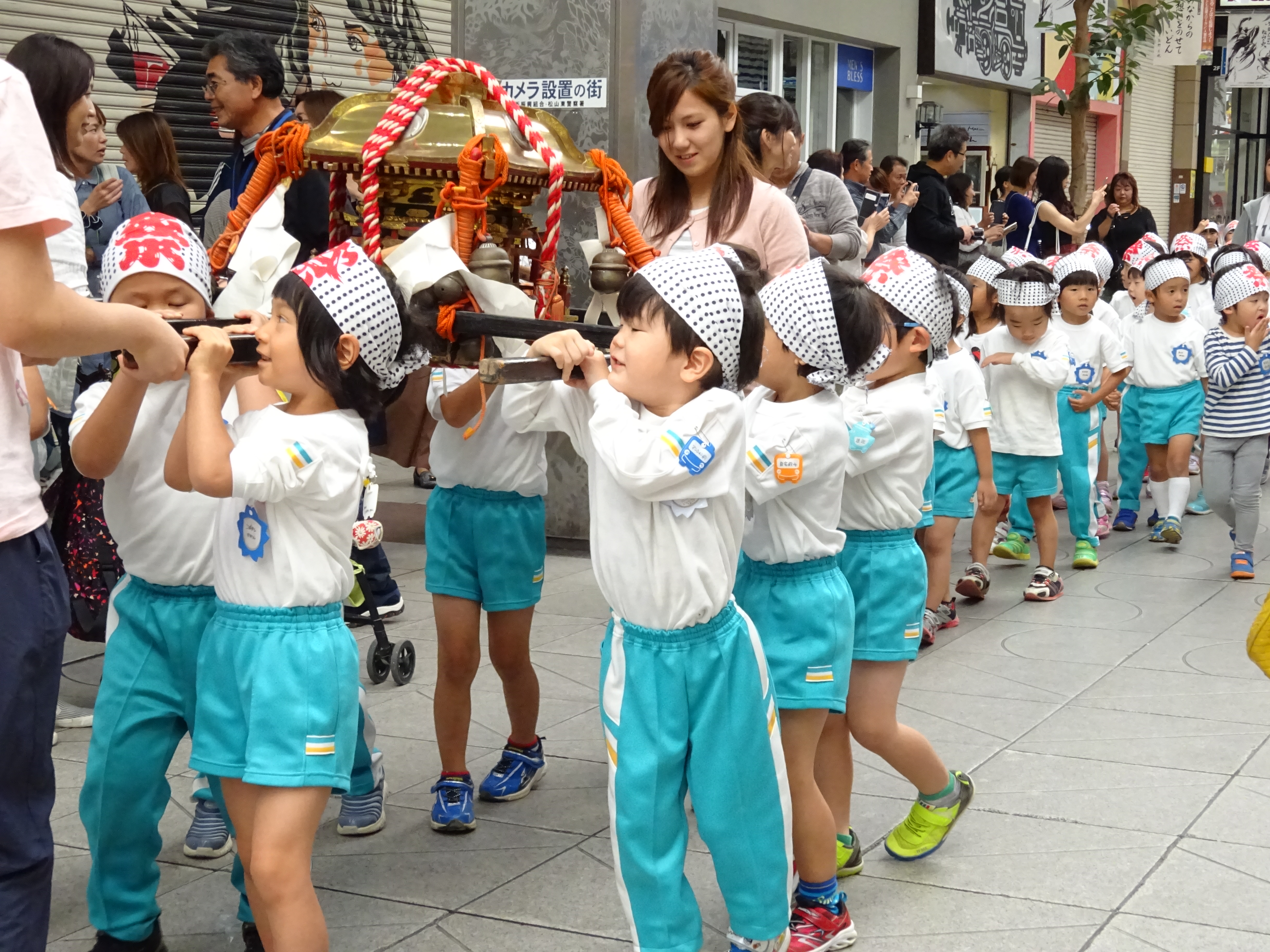 わっしょいわっしょい、園内と大街道をおみこしかついでわっしょい!
