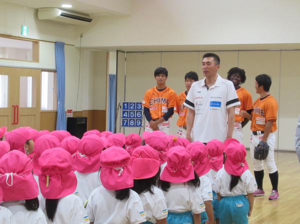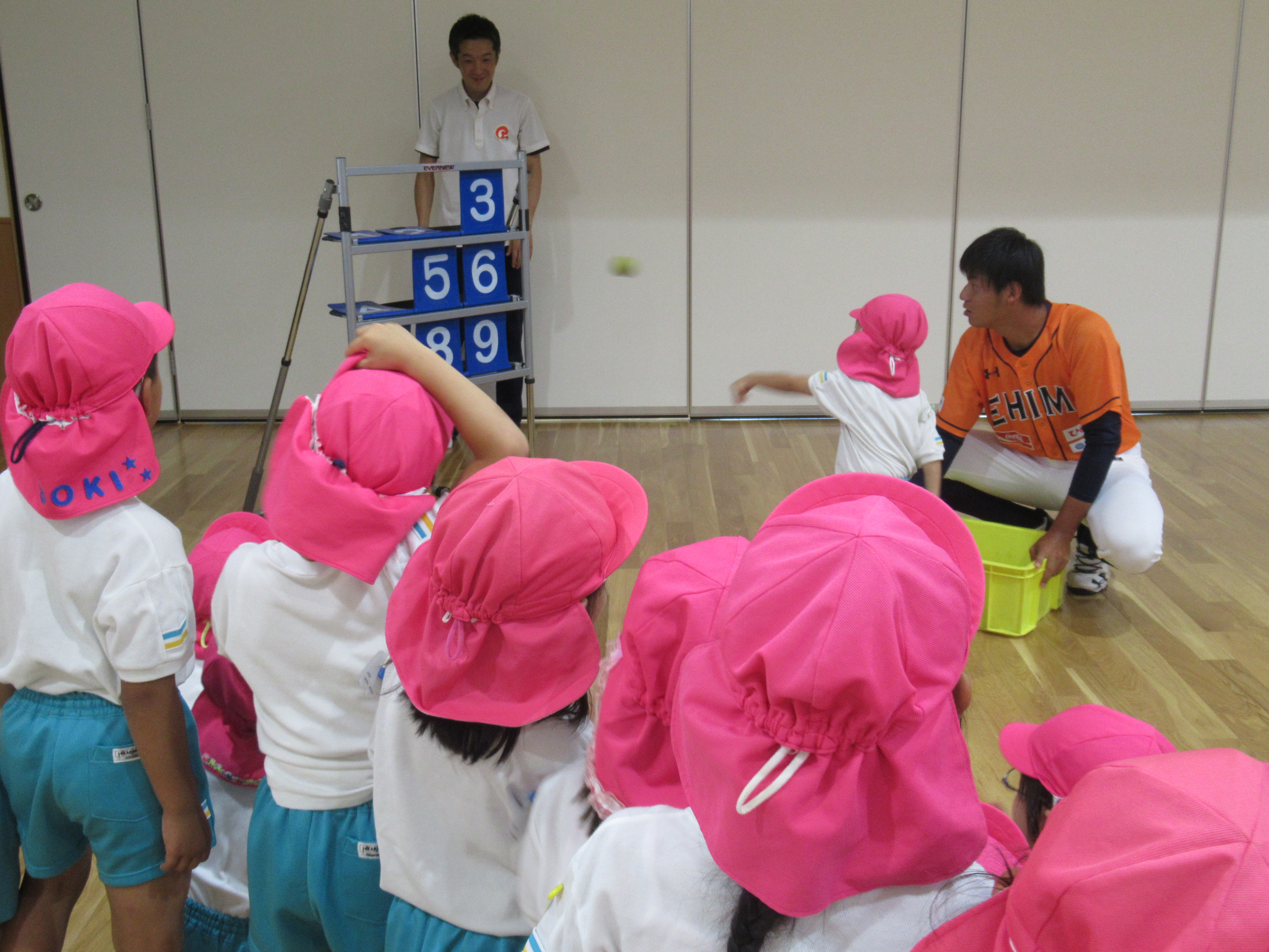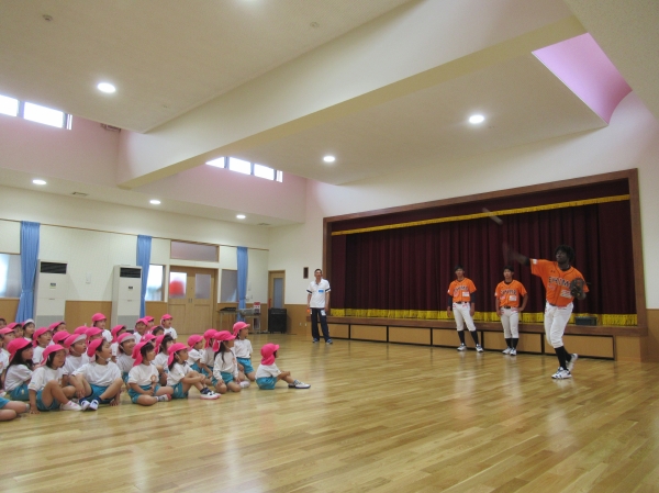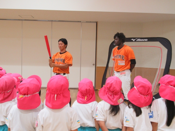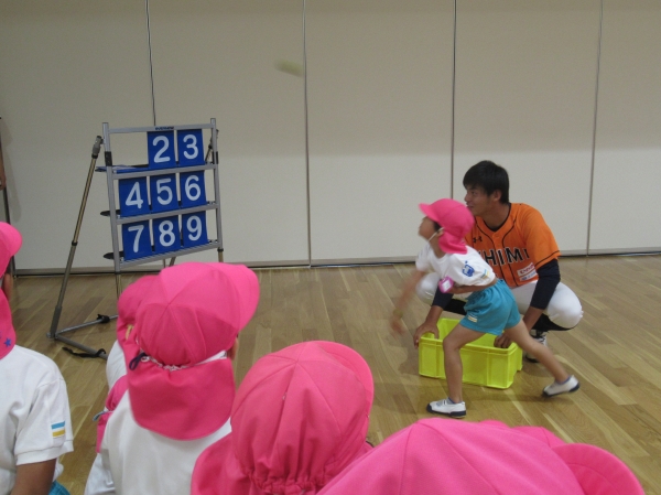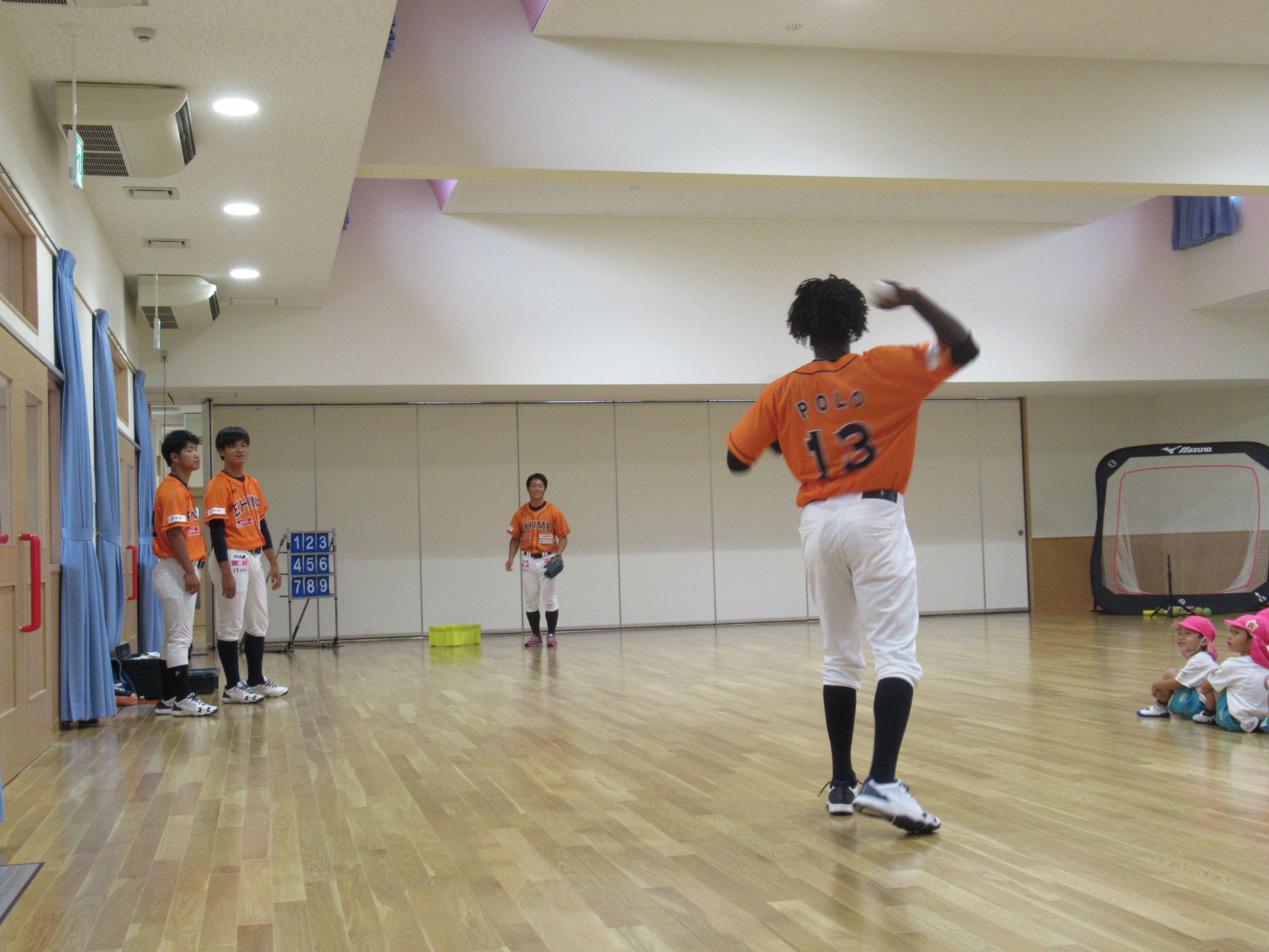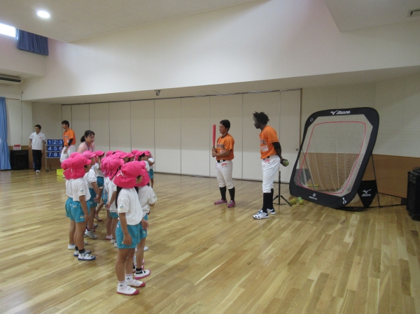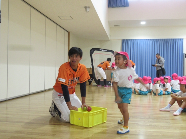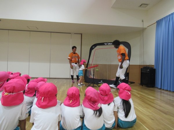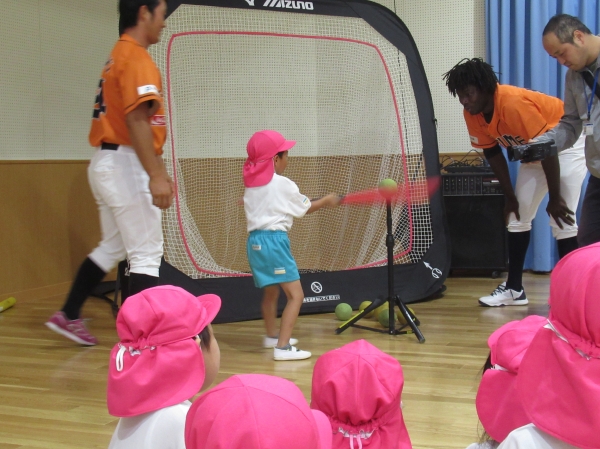 マンダリンパイレーツの選手に野球を教えてもらいました。河原選手みたいなピッチャーになれるかな?