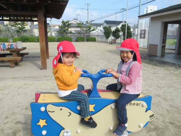 秋の良い季節に公園に園外保育に行きました。楽しかった!