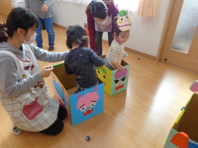 鬼さんが少し怖かったけど、豆まき楽しかったね!