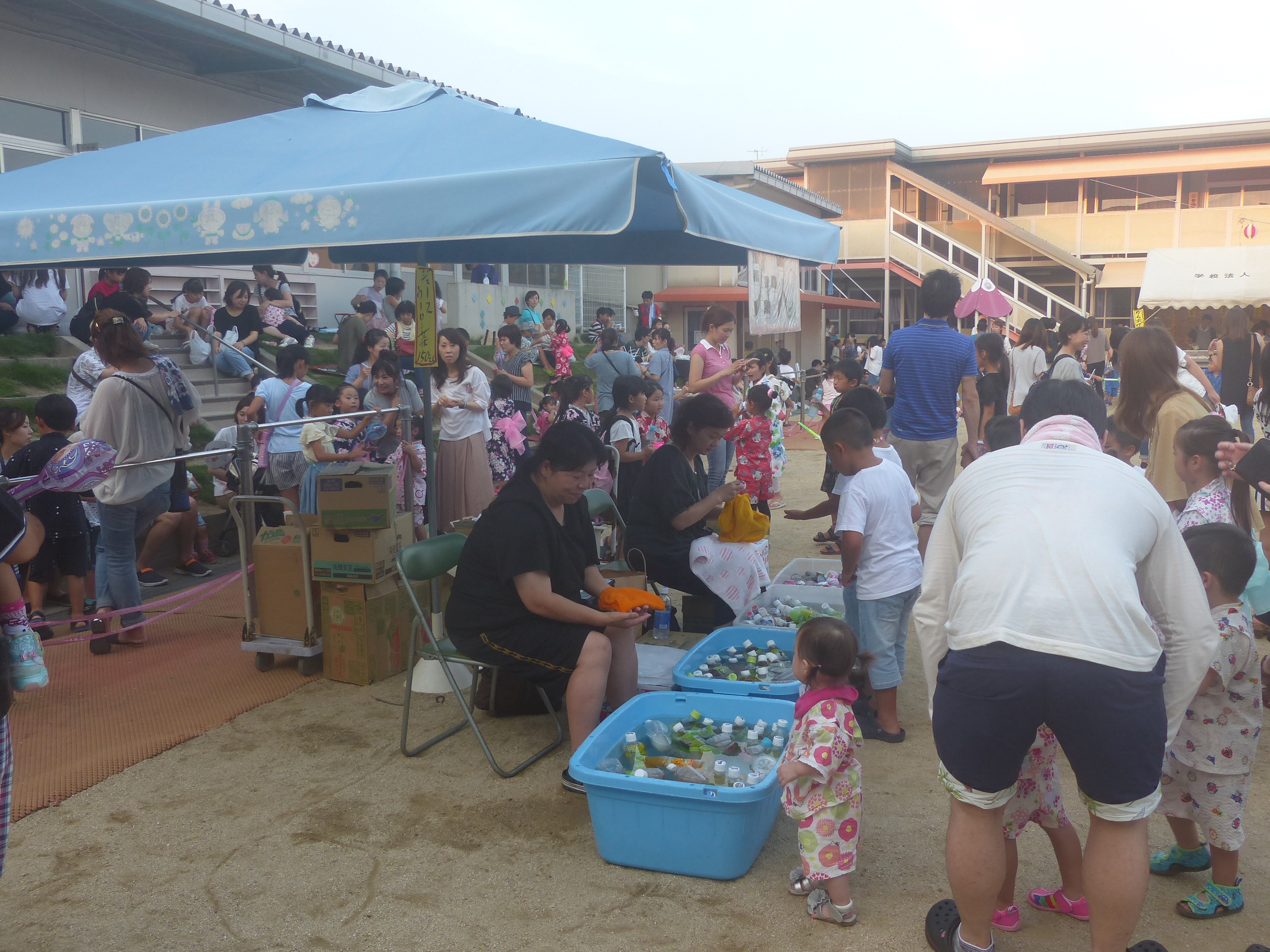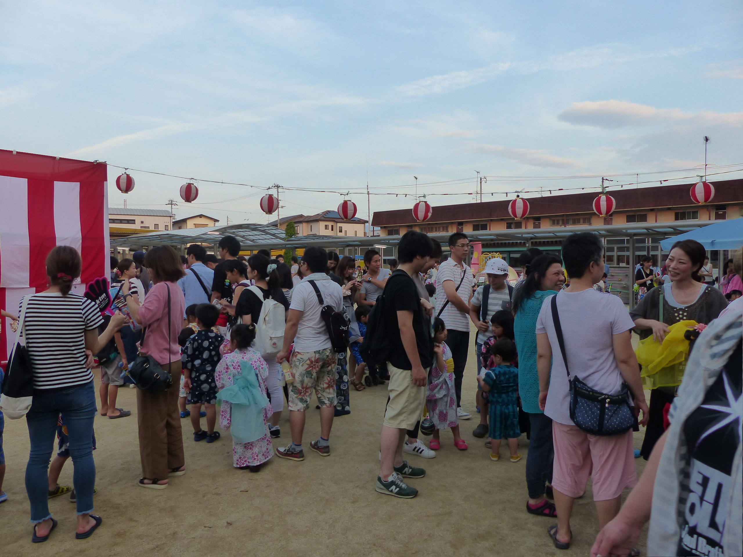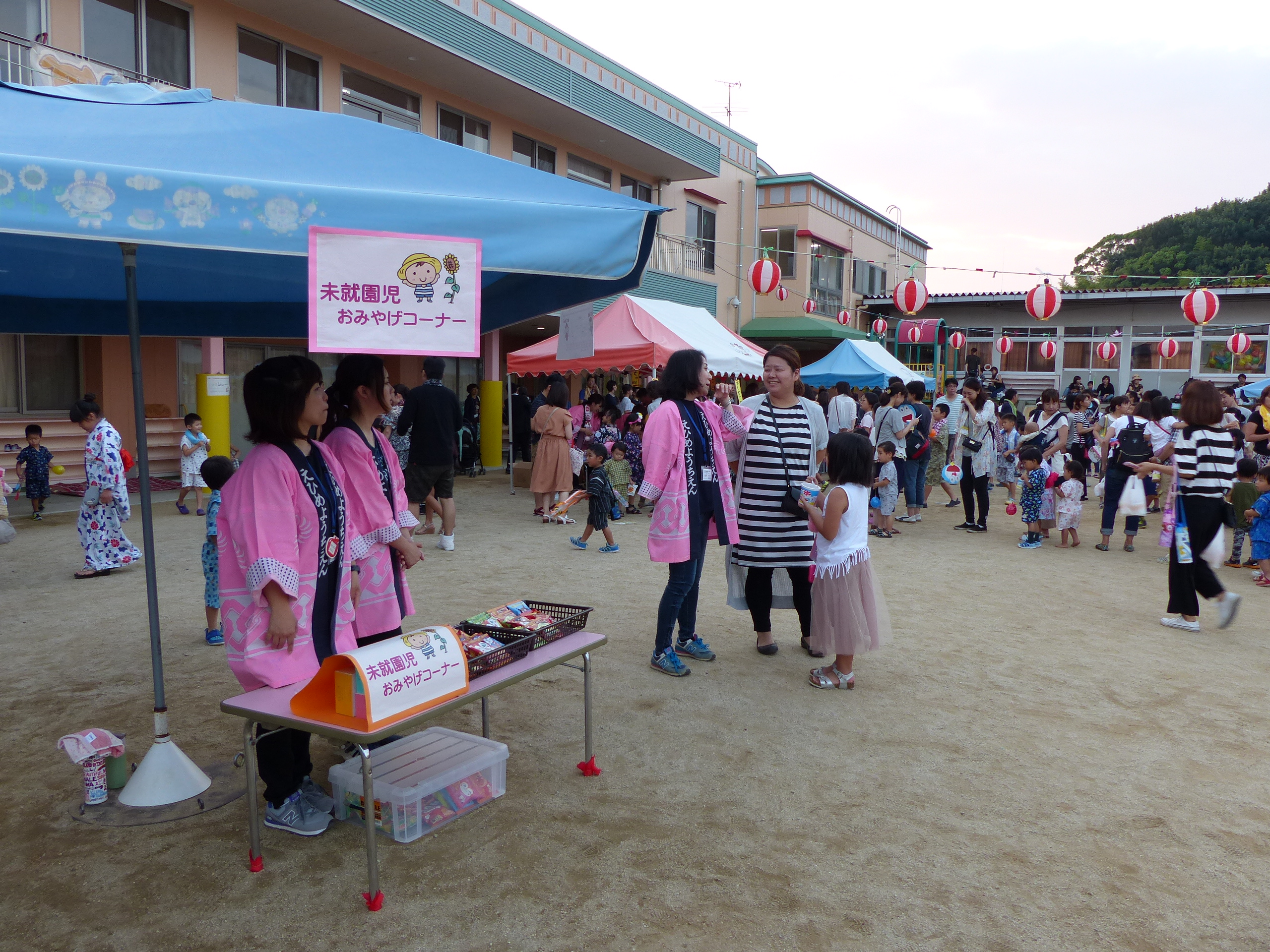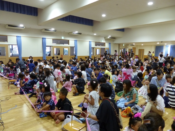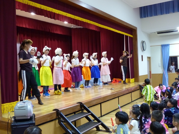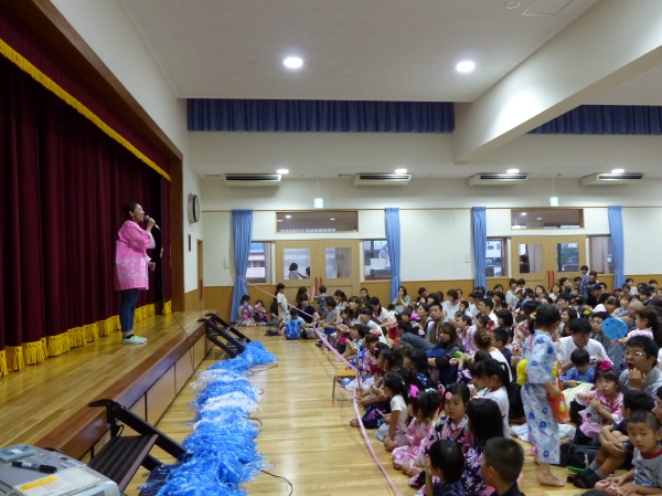 たこ焼きにジュースにおもちゃ、先生の劇、提灯の下で盆踊りと、夏の夕べを楽しみました!