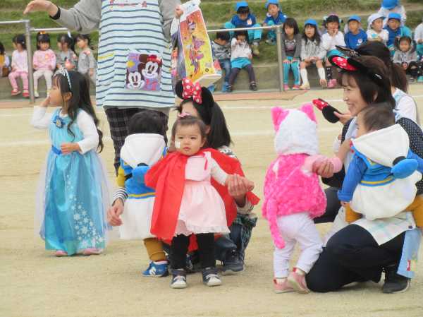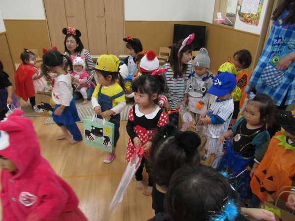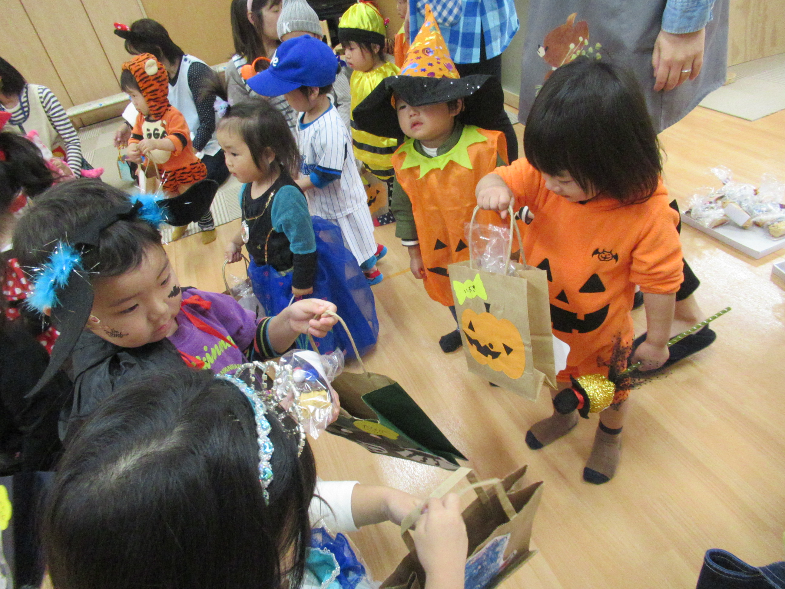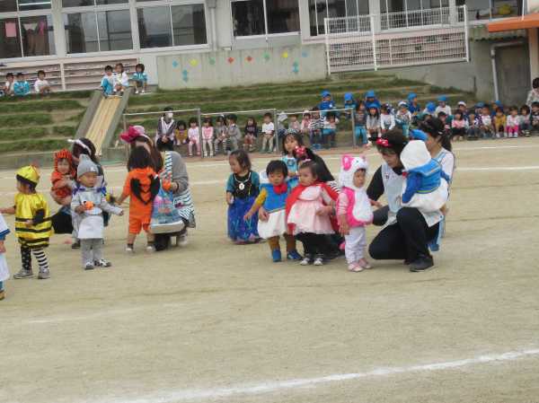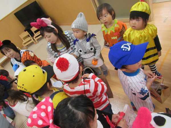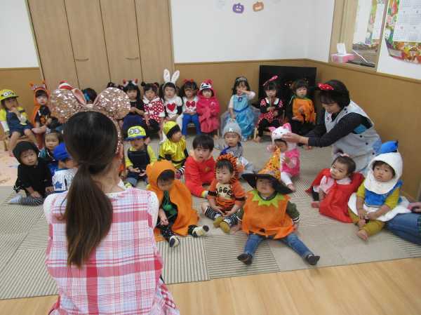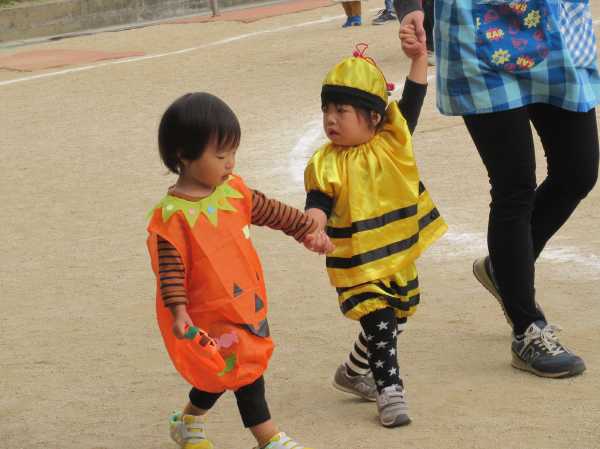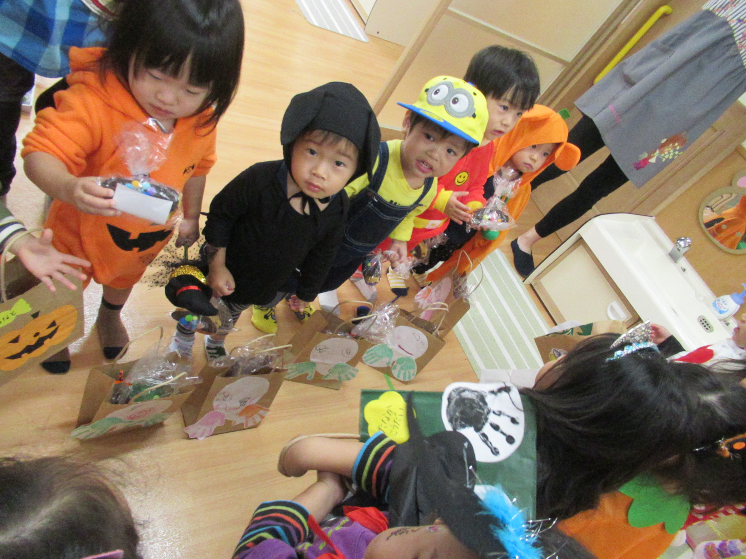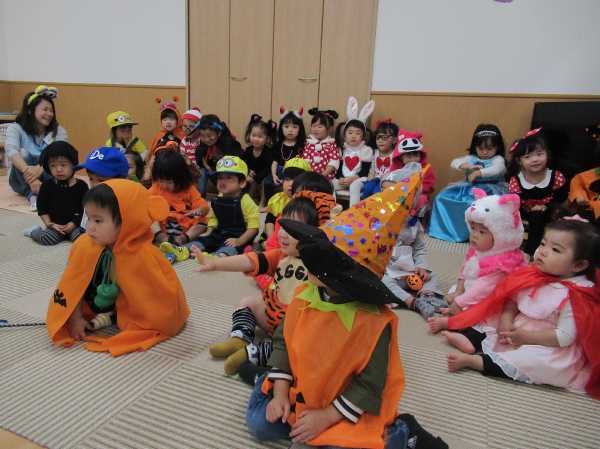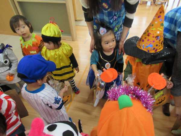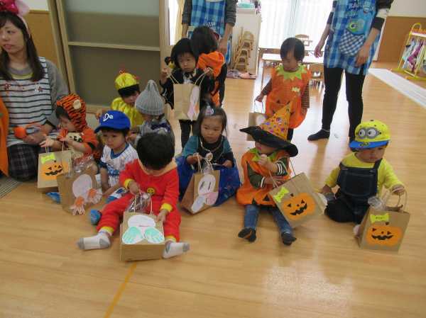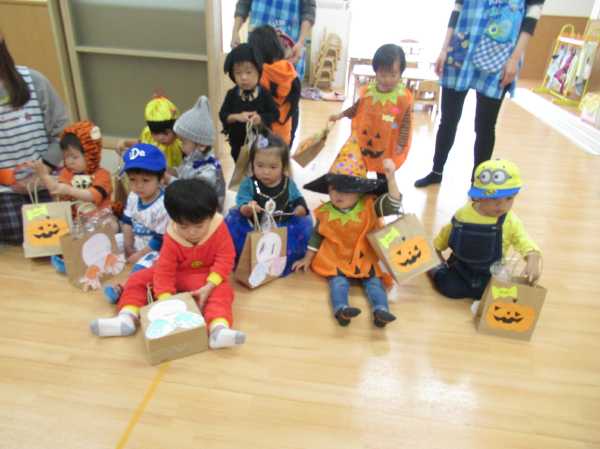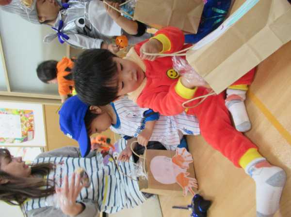 0〜2歳児さんのハロウィン仮装です。お姉さん、お兄さんに見てもらってよかったね!