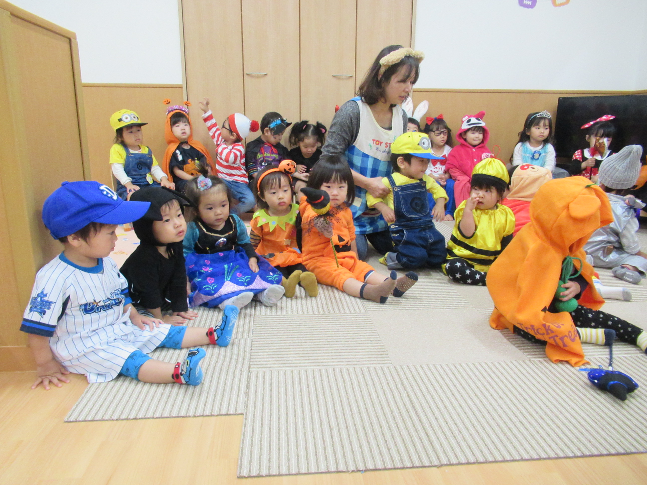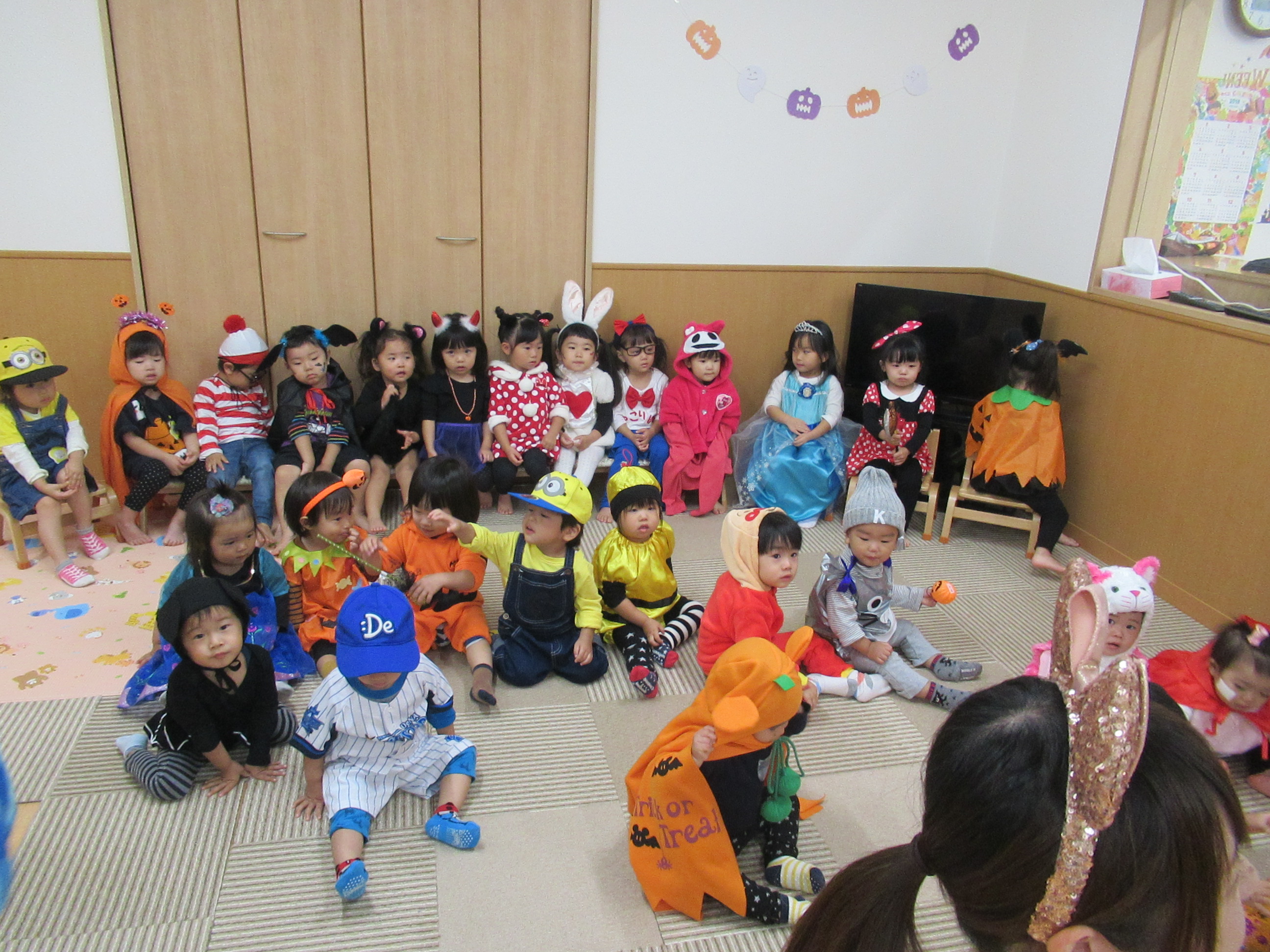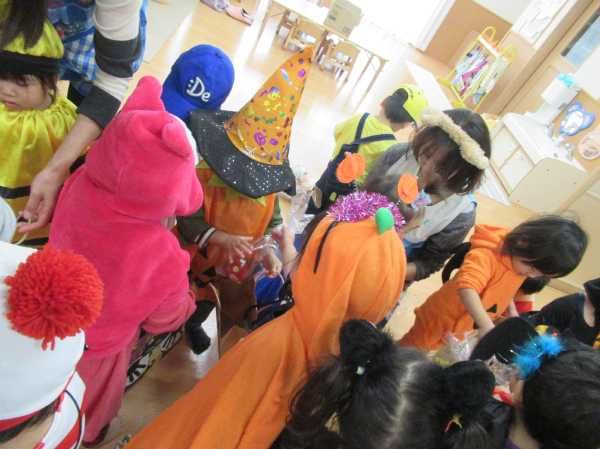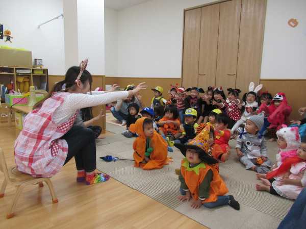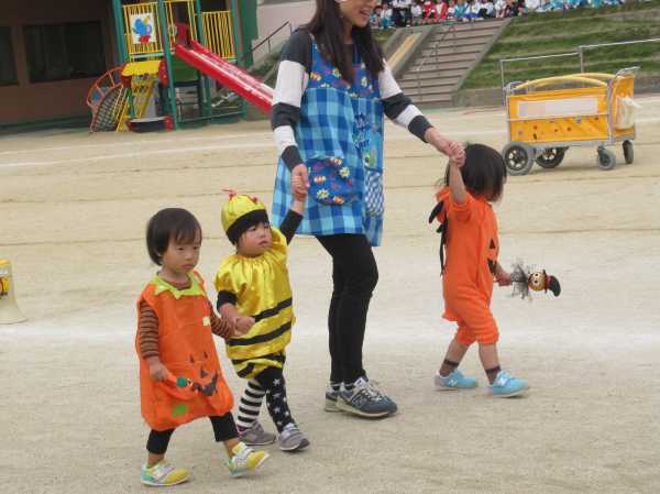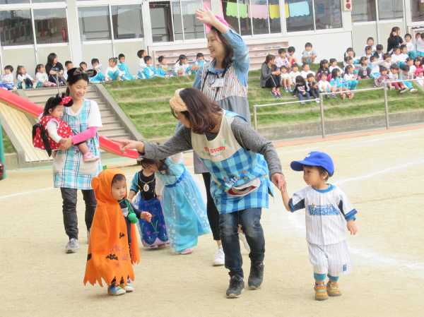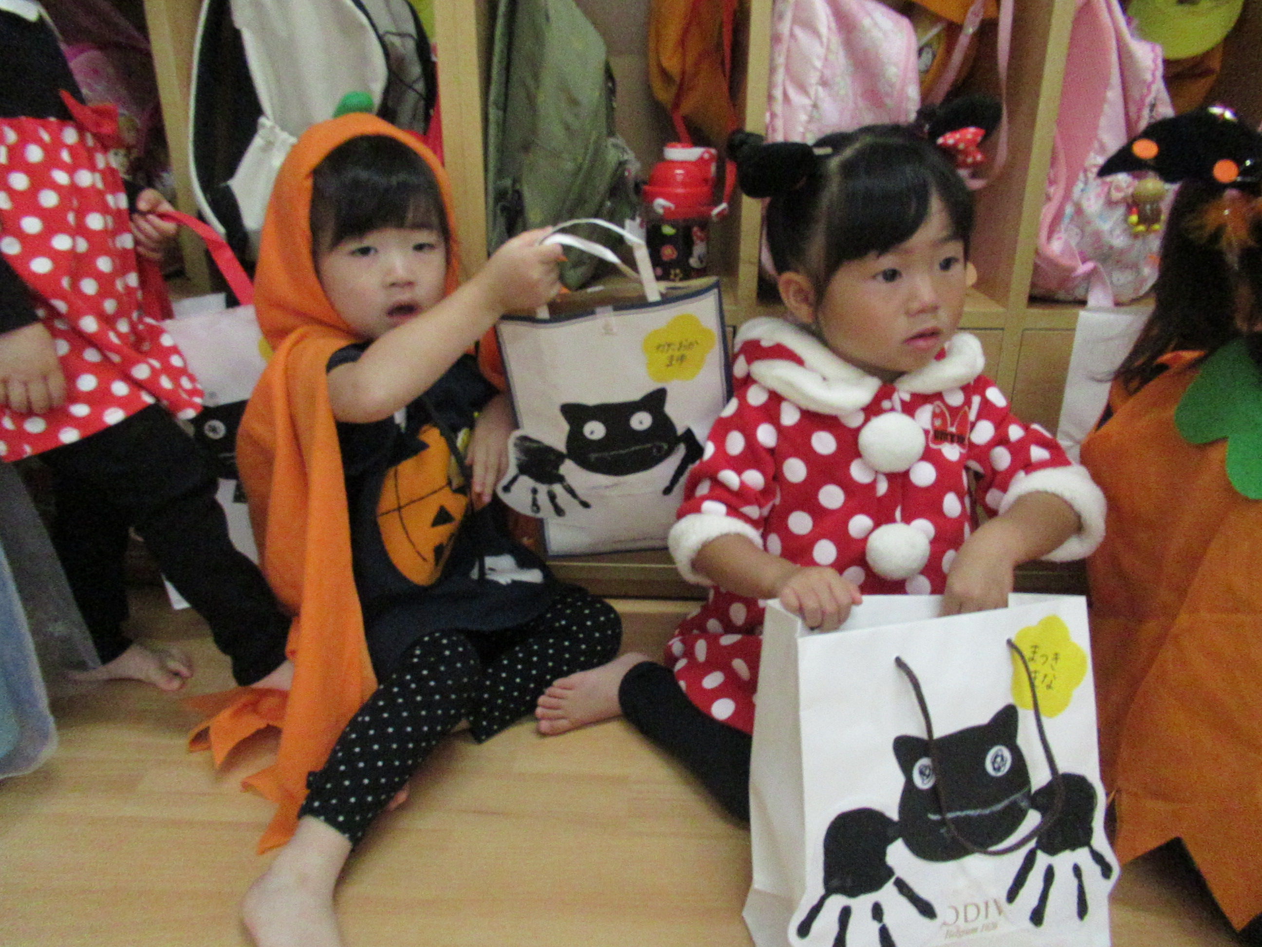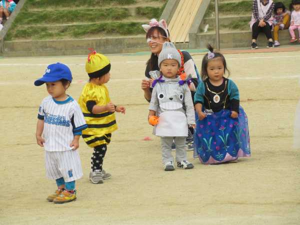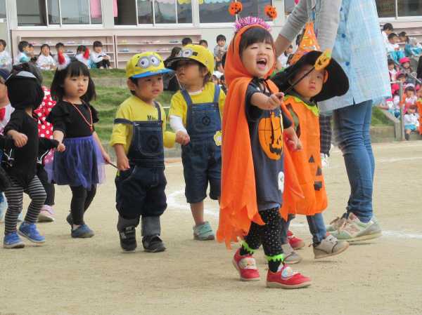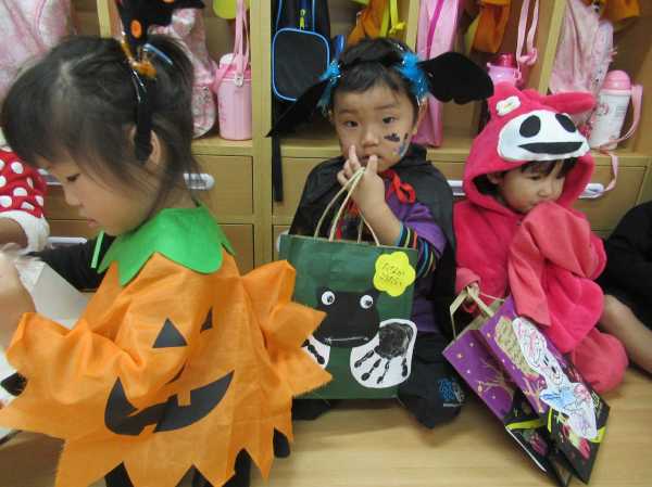 0〜2歳児さんのハロウィン仮装です。お姉さん、お兄さんに見てもらってよかったね!