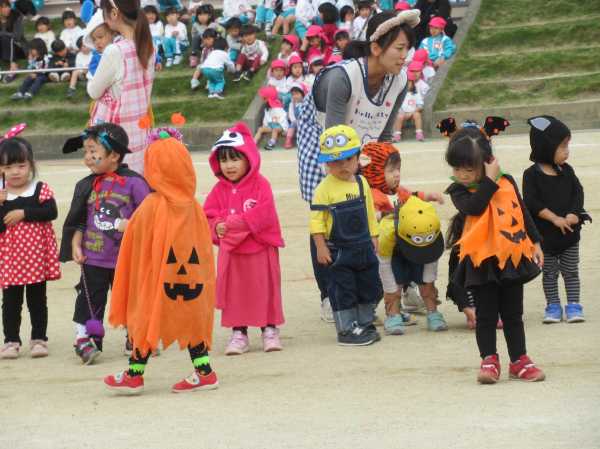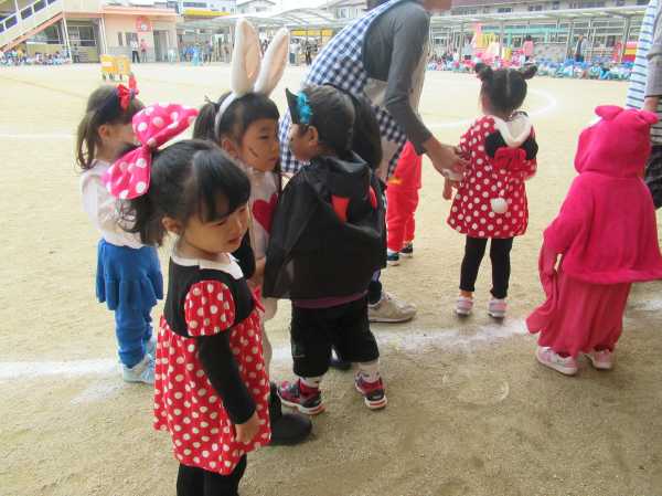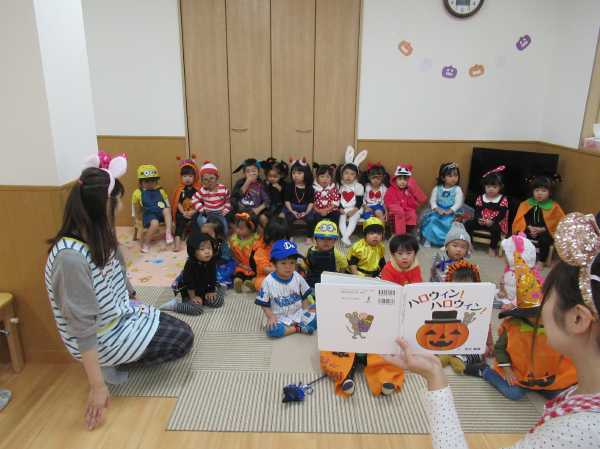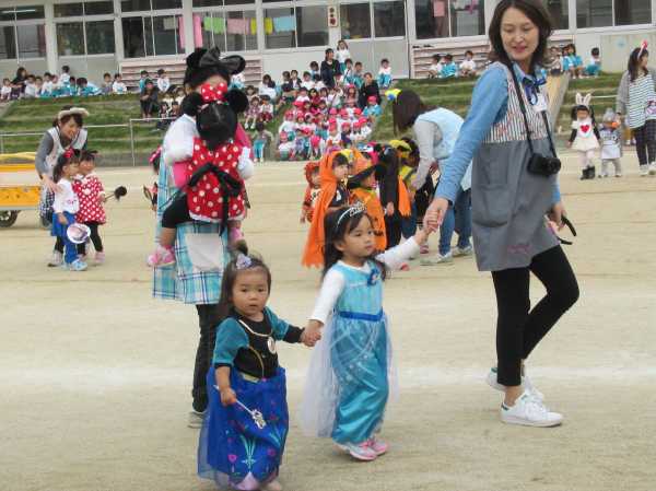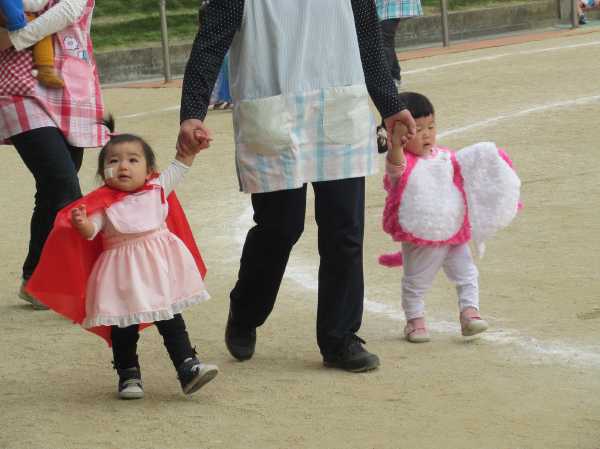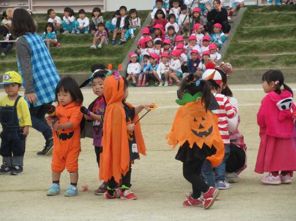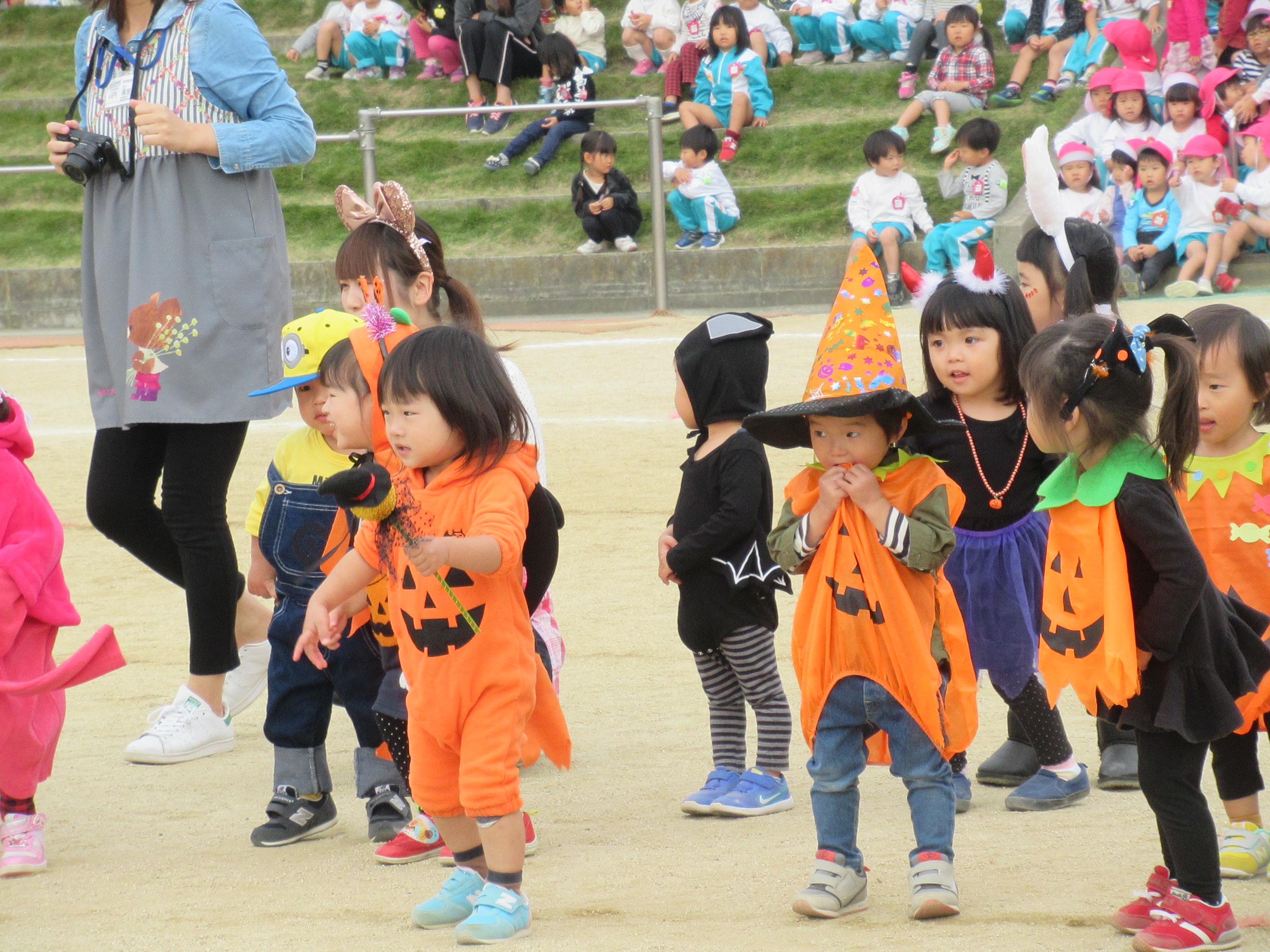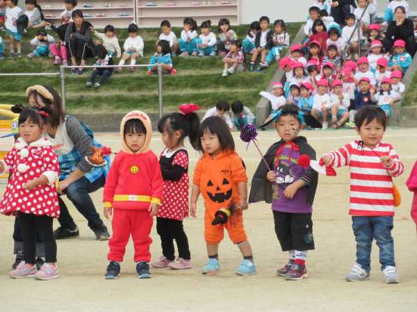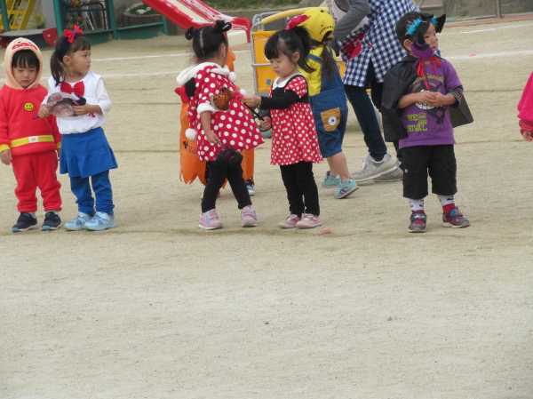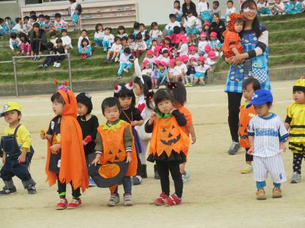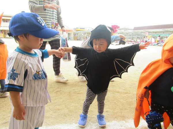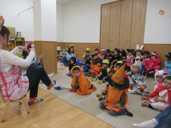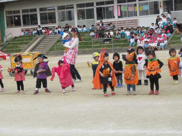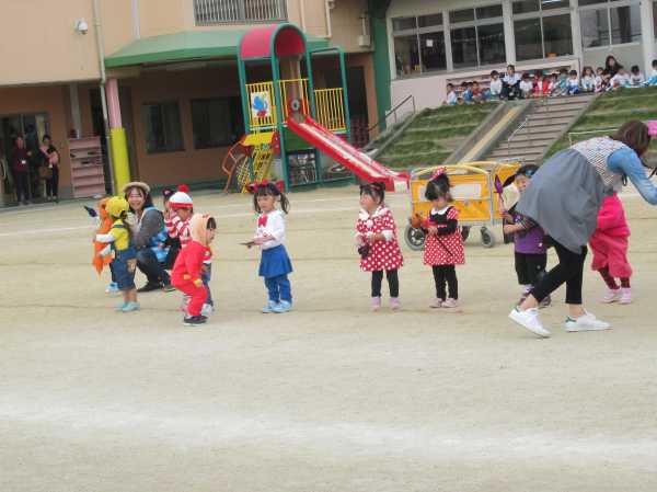 0〜2歳児さんのハロウィン仮装です。お姉さん、お兄さんに見てもらってよかったね!