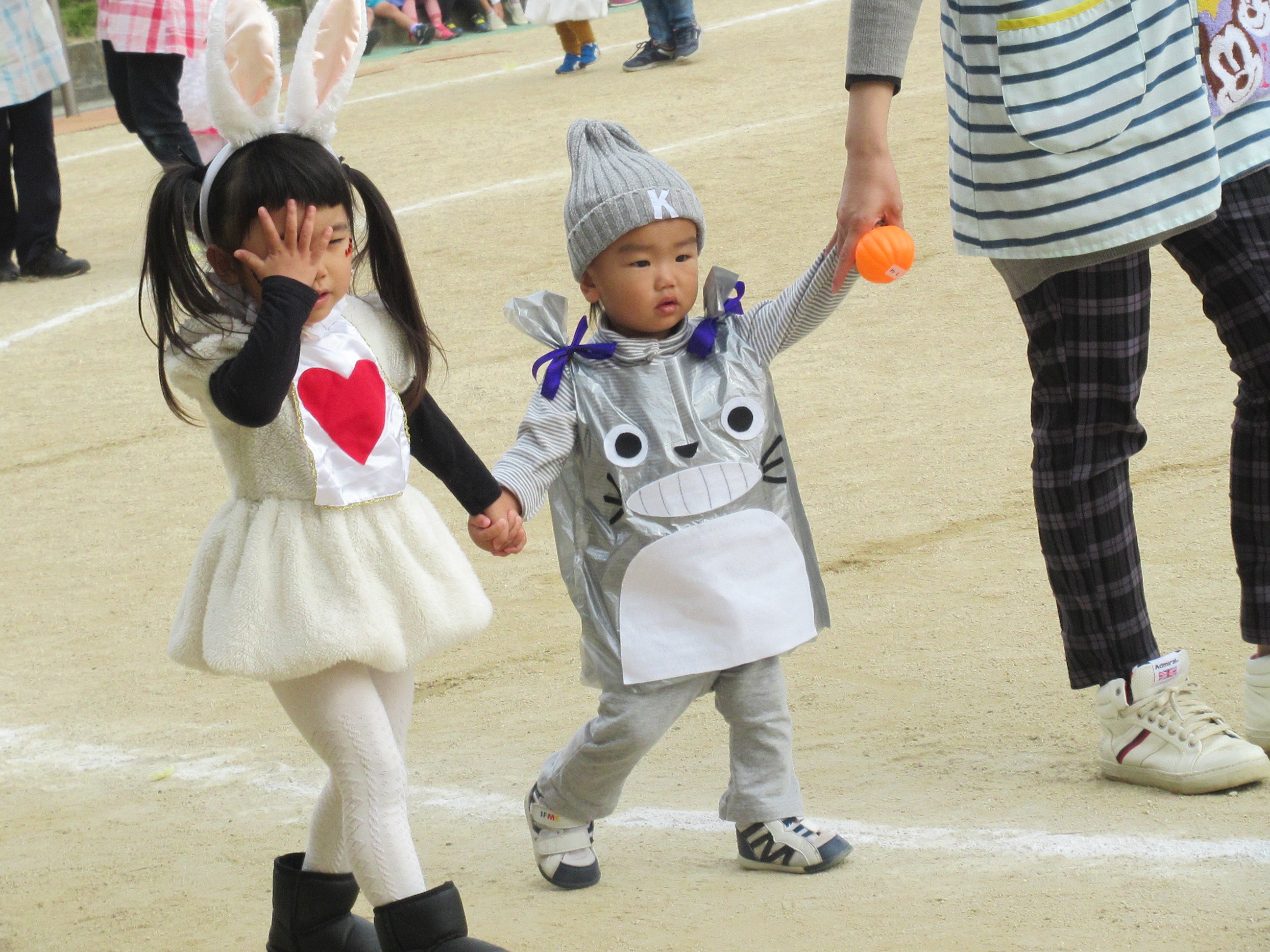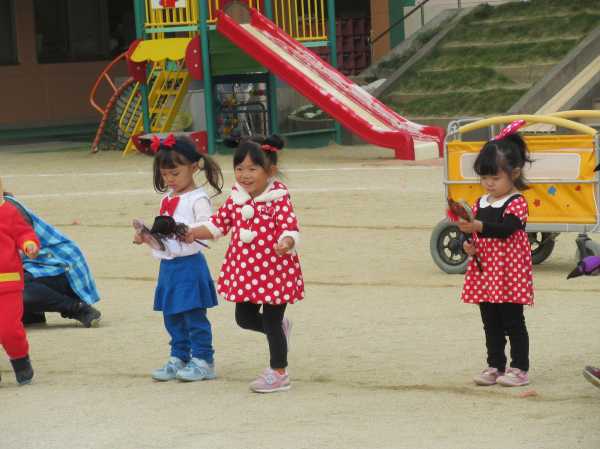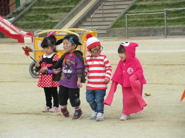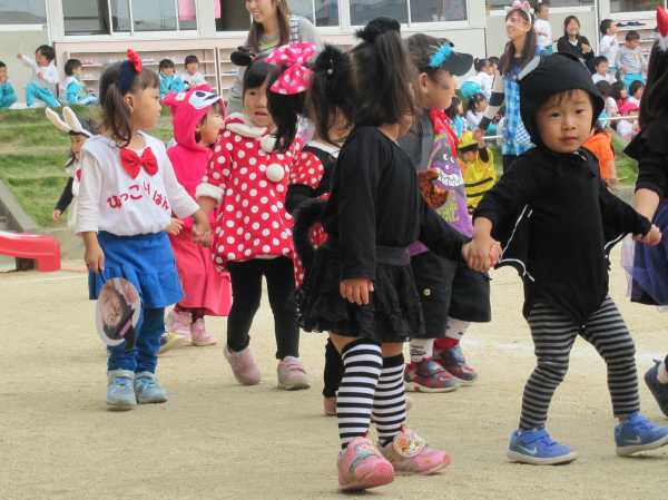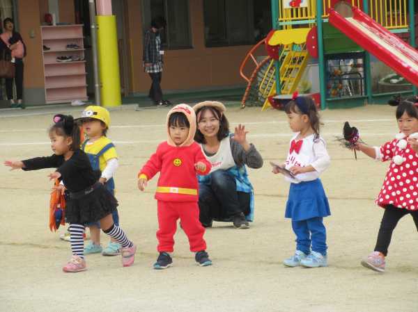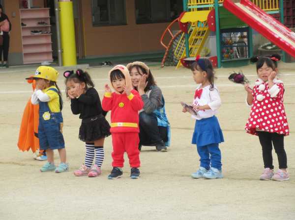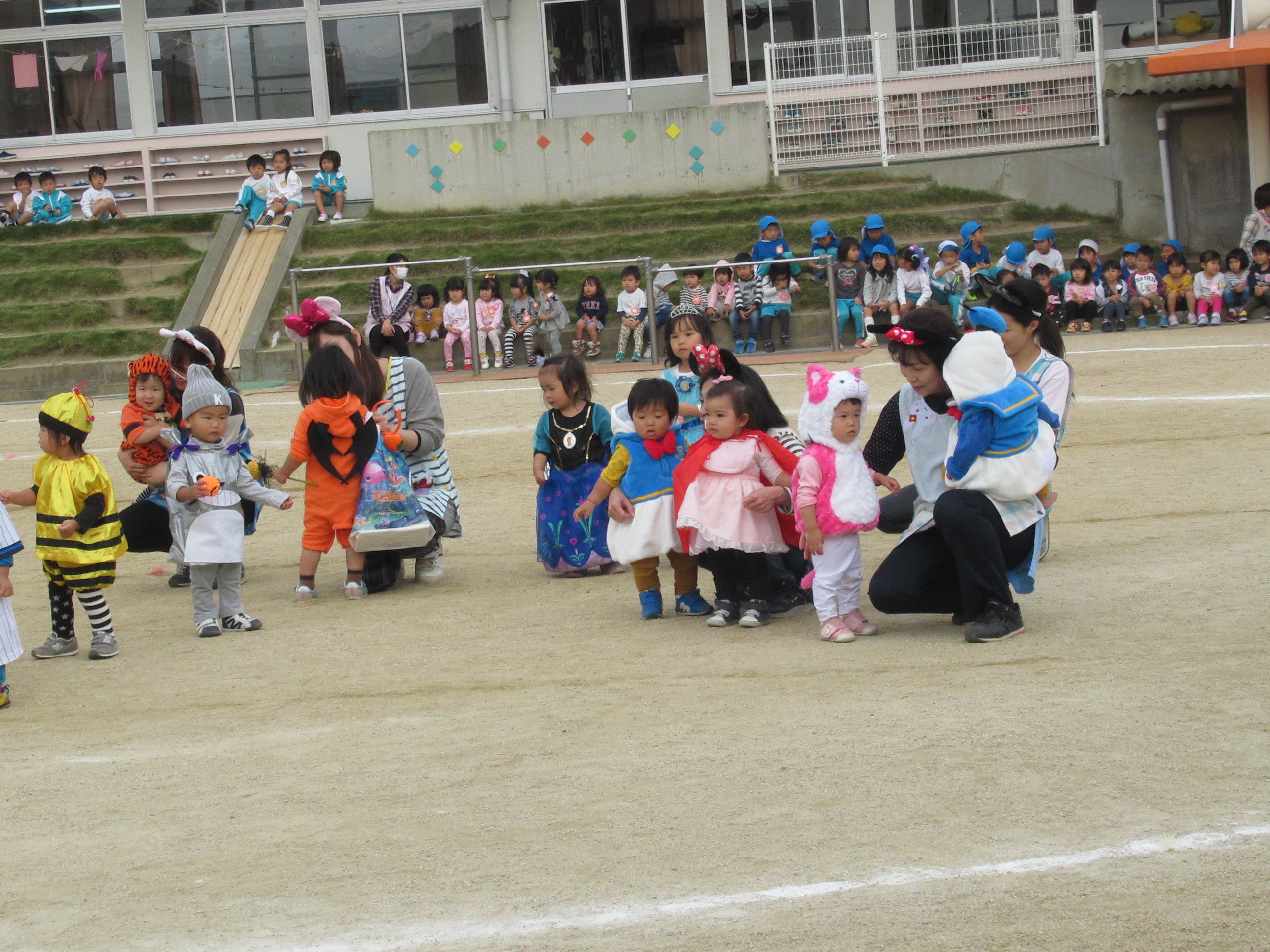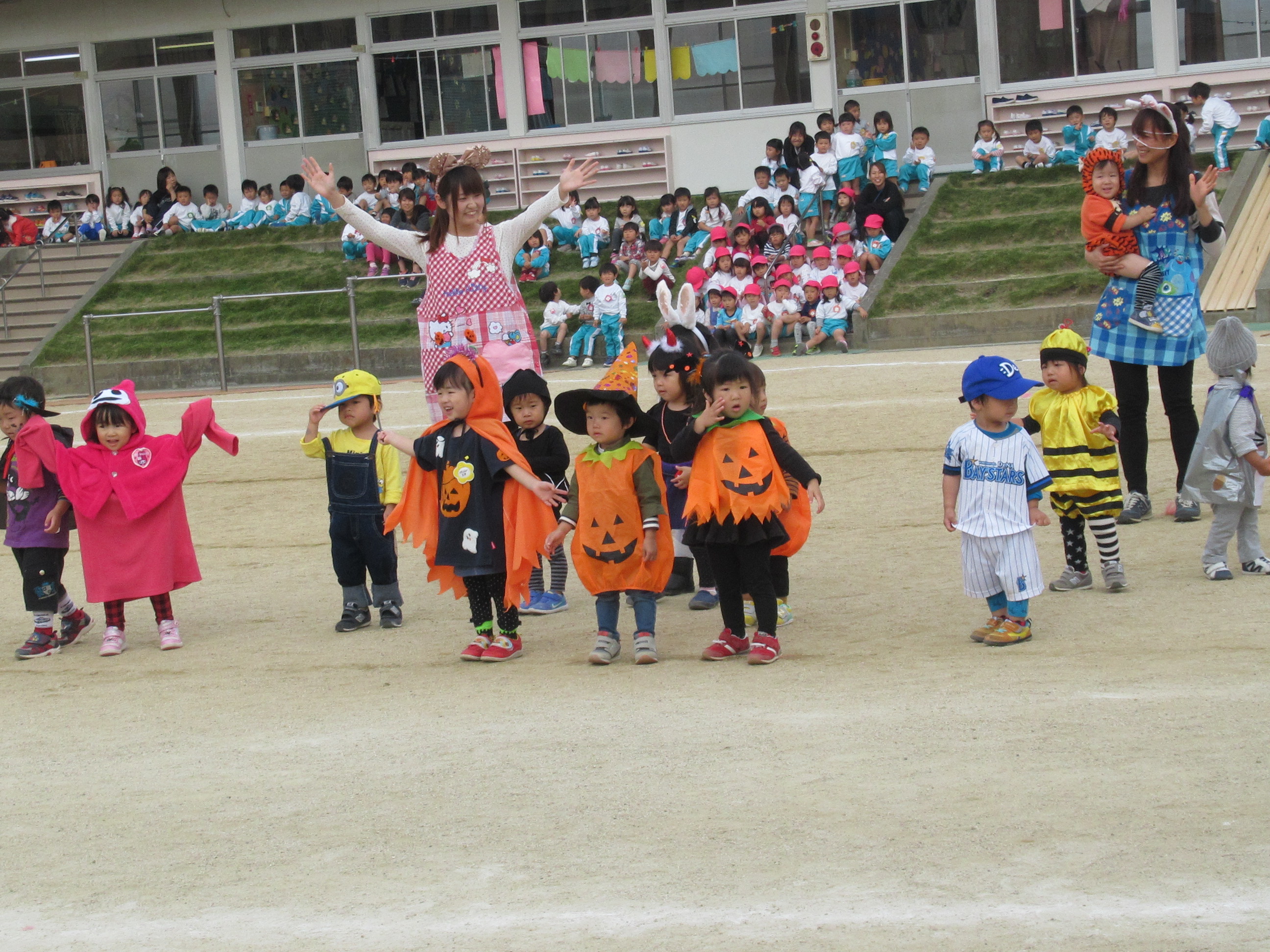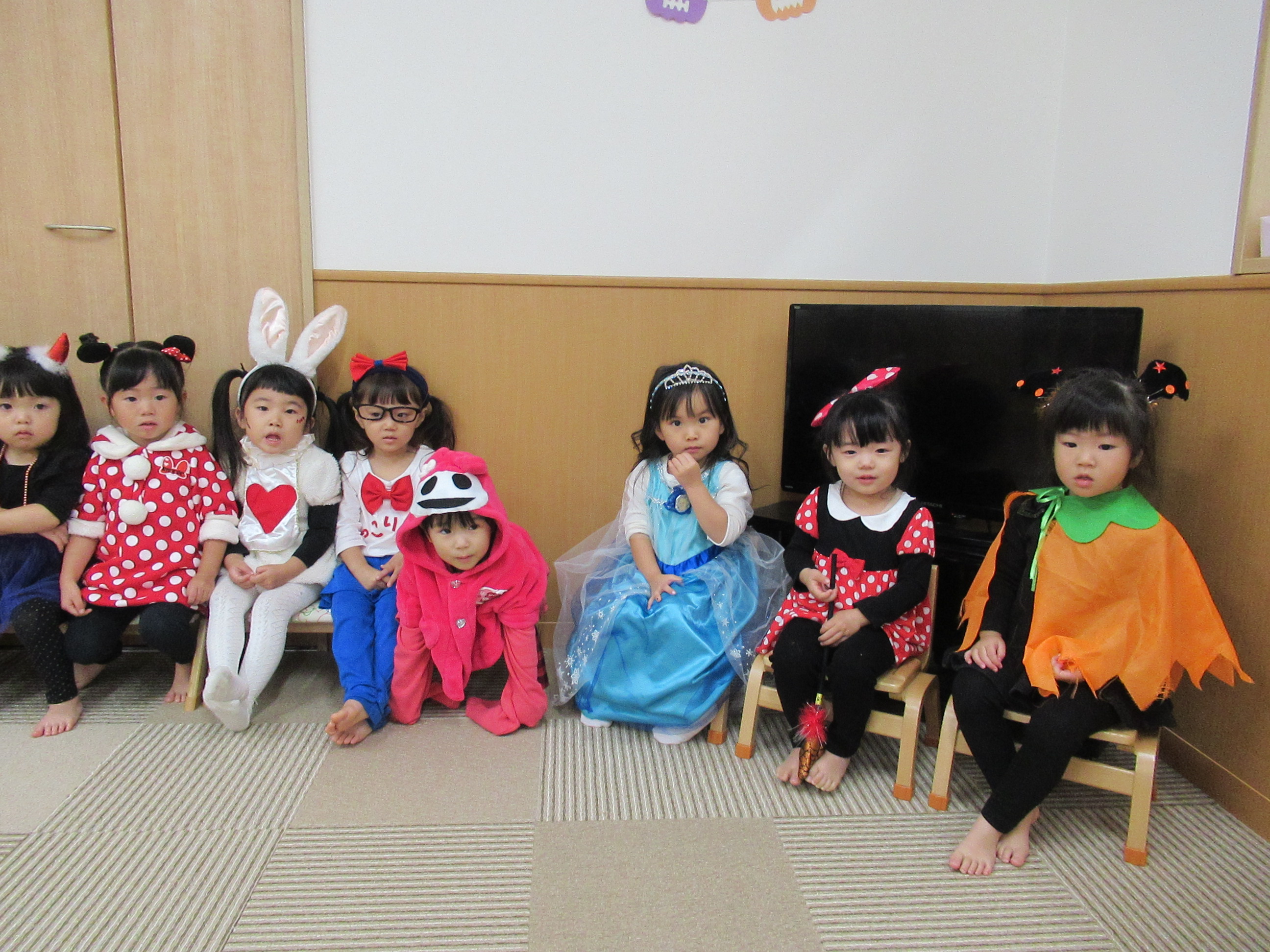 0〜2歳児さんのハロウィン仮装です。お姉さん、お兄さんに見てもらってよかったね!