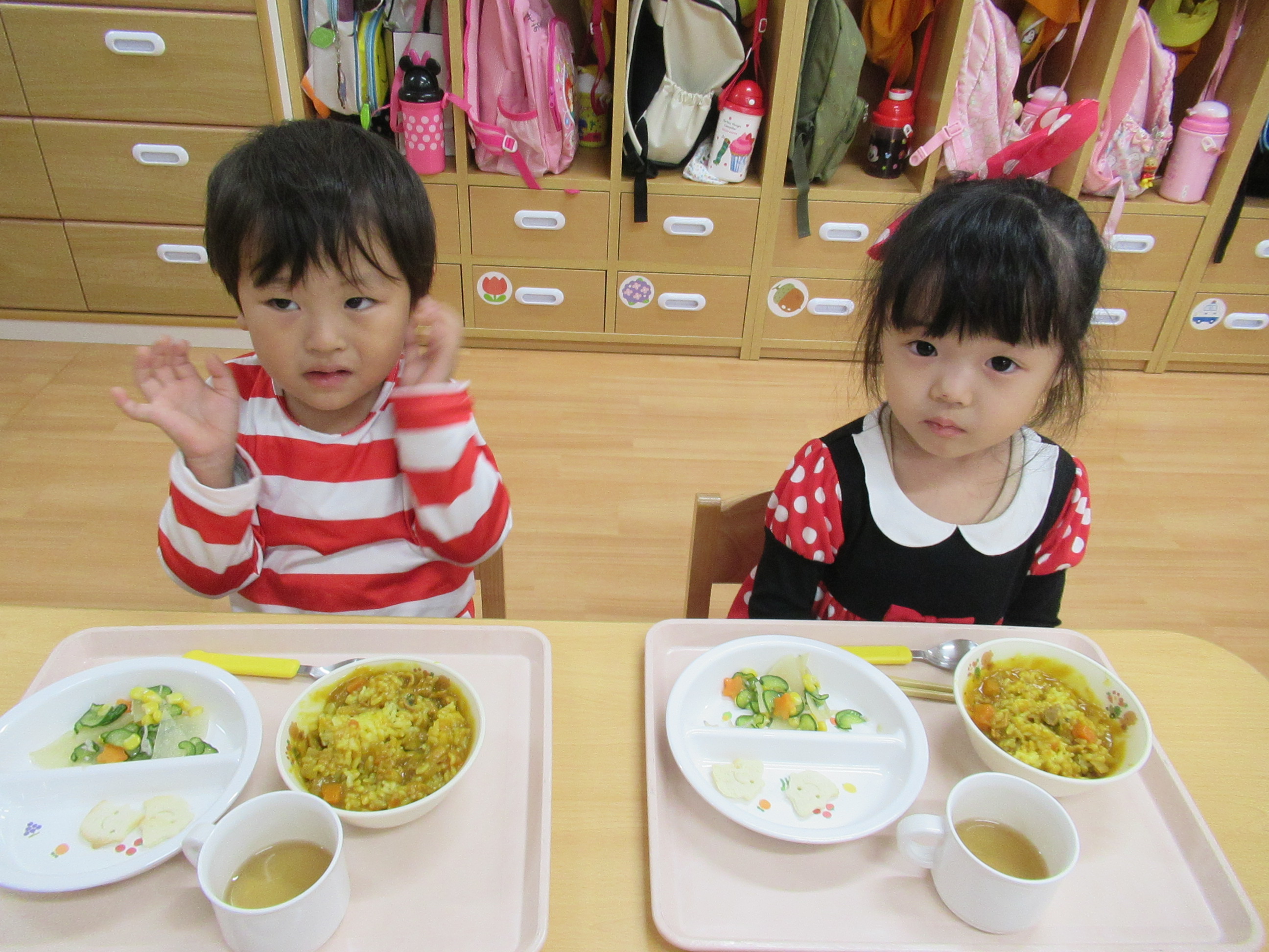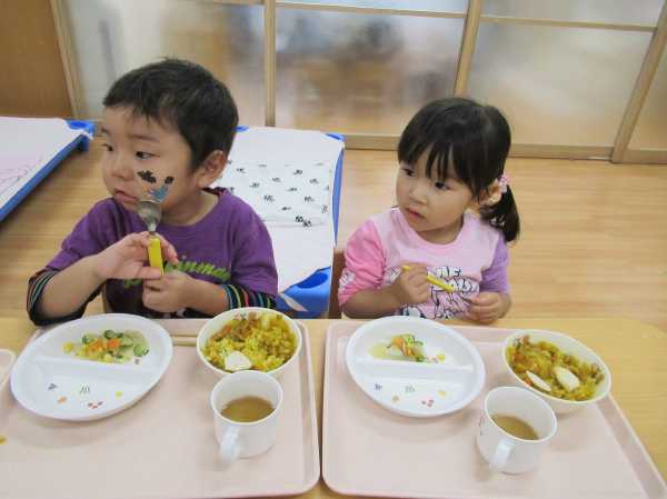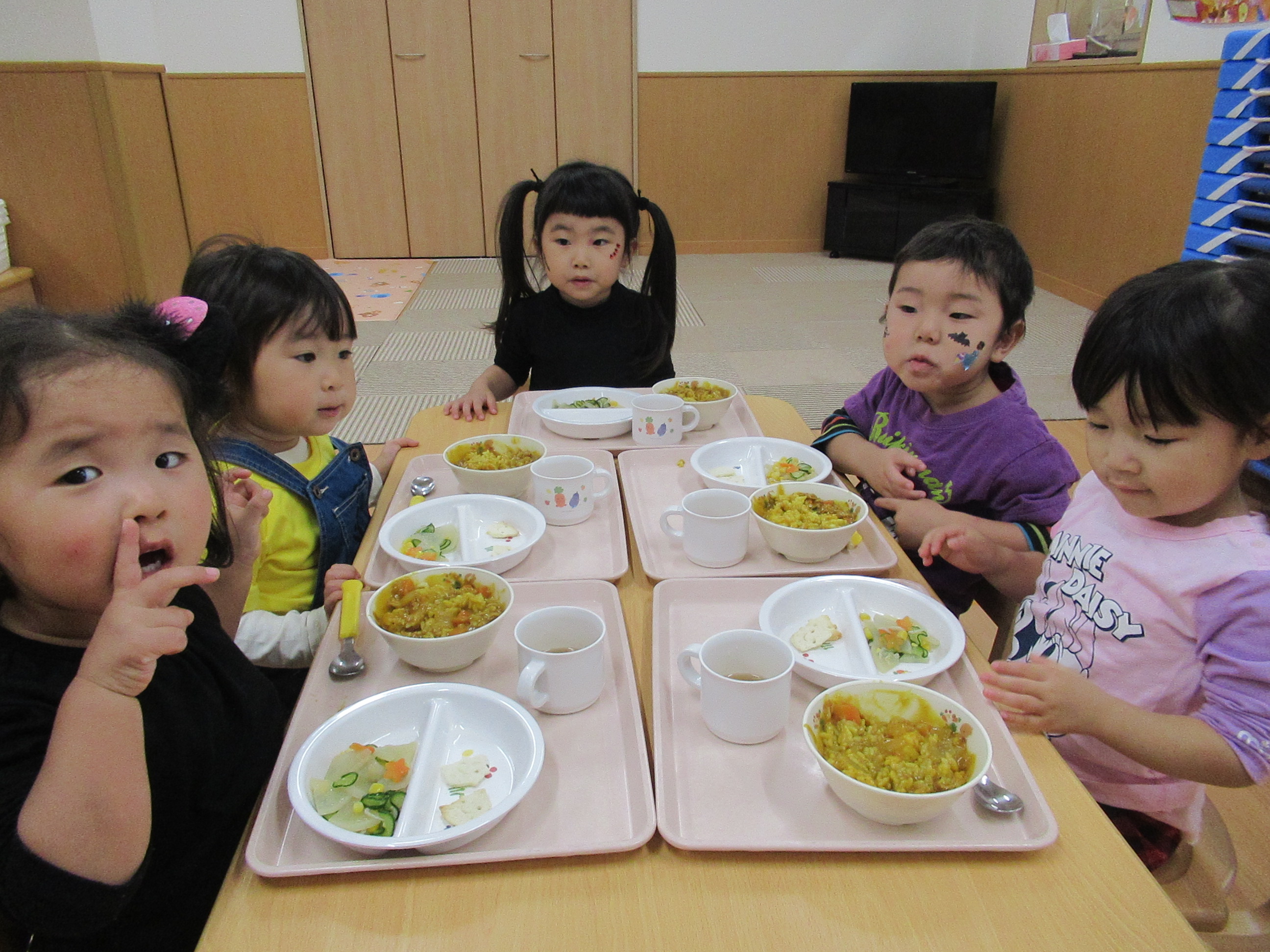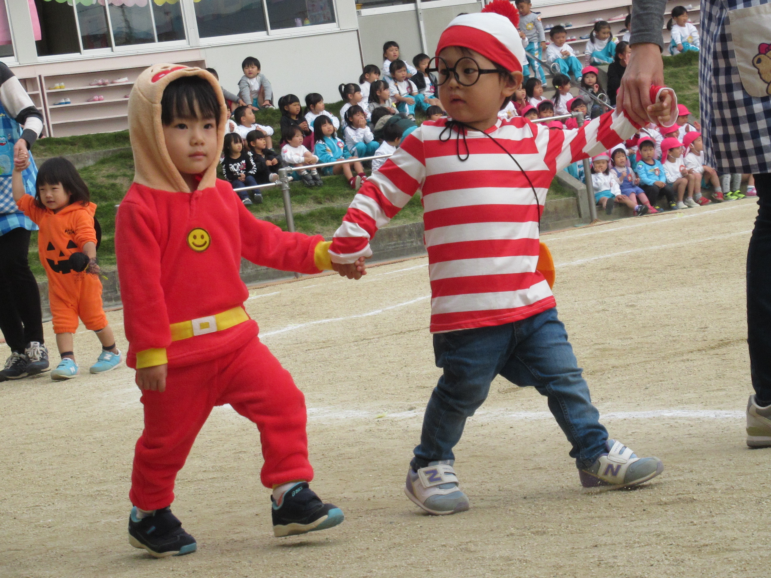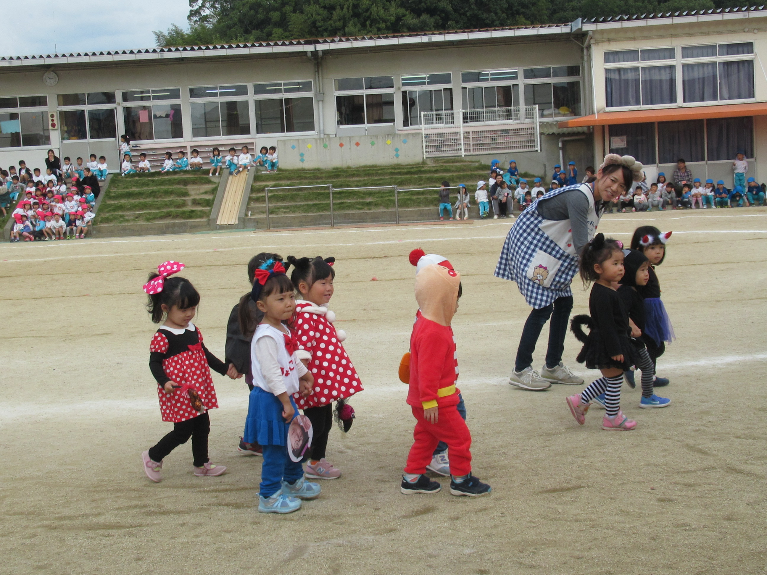 0〜2歳児さんのハロウィン仮装です。お姉さん、お兄さんに見てもらってよかったね!