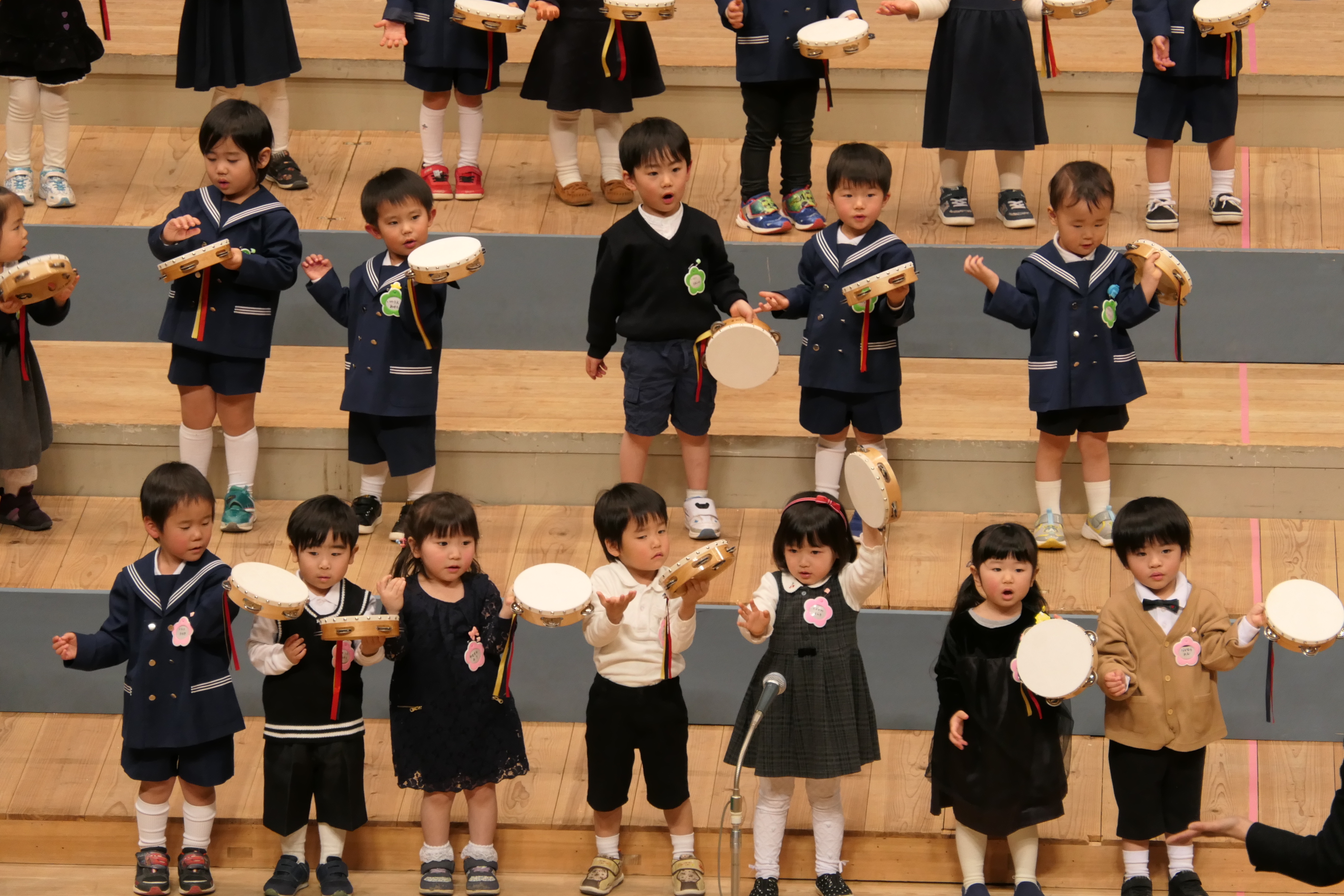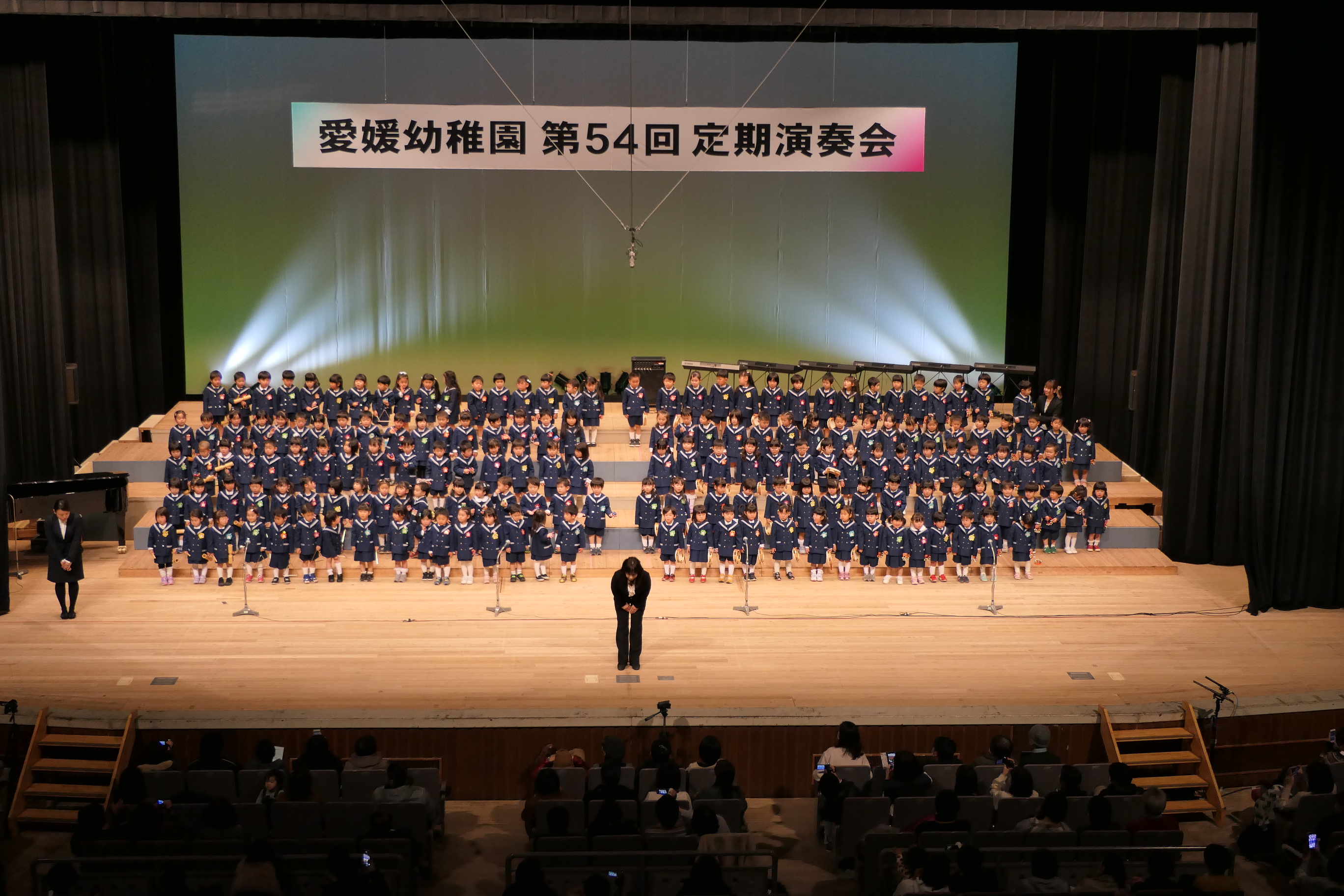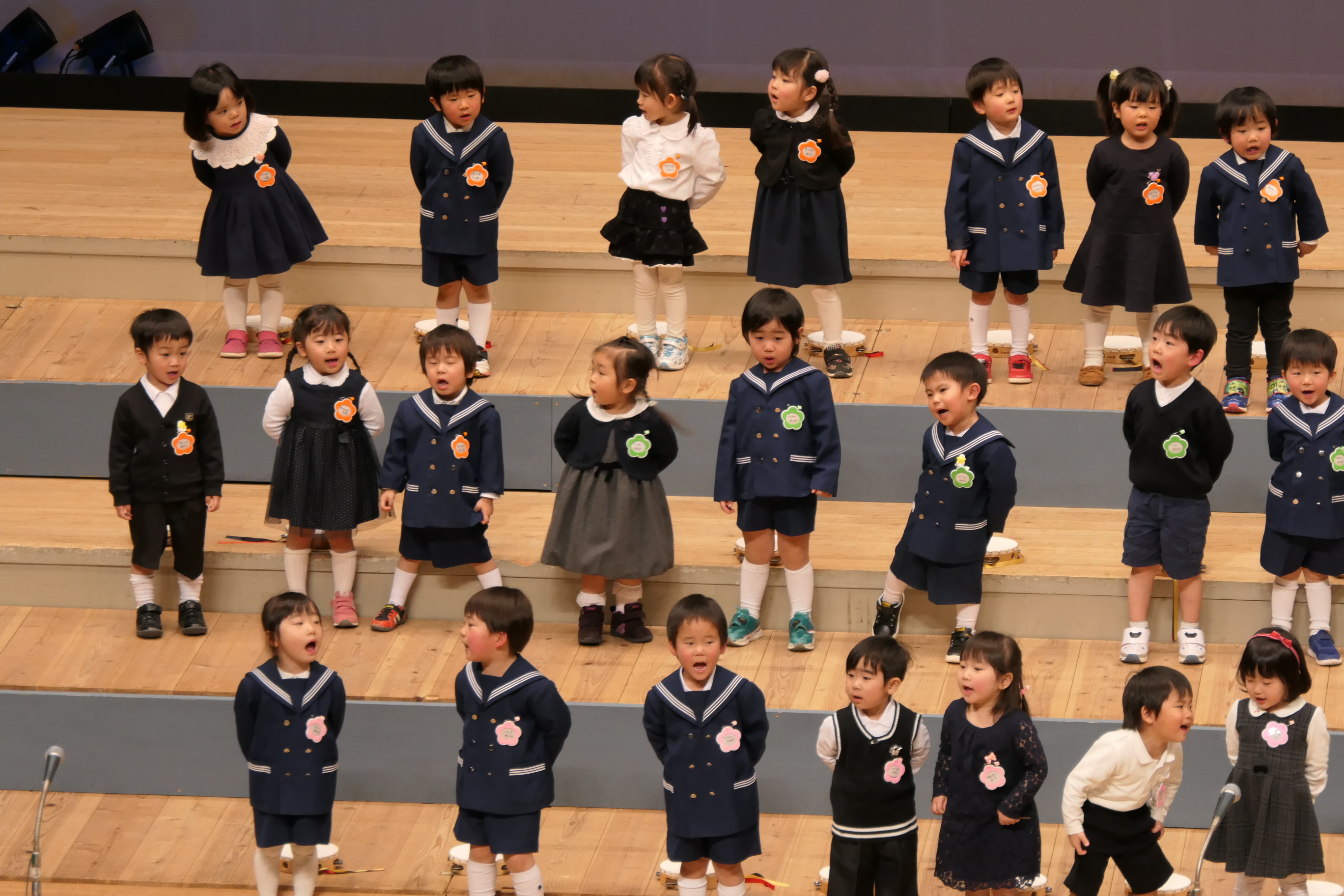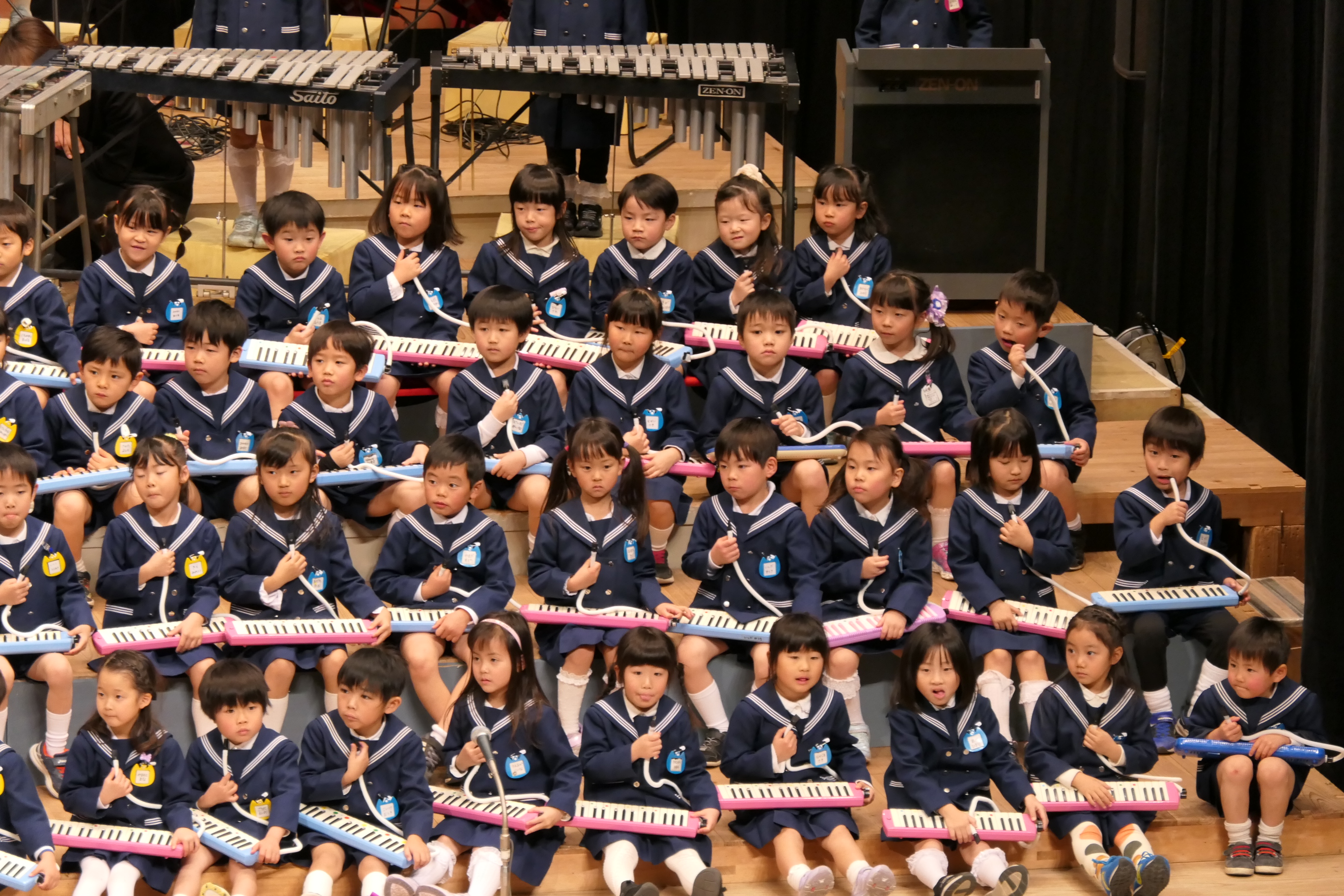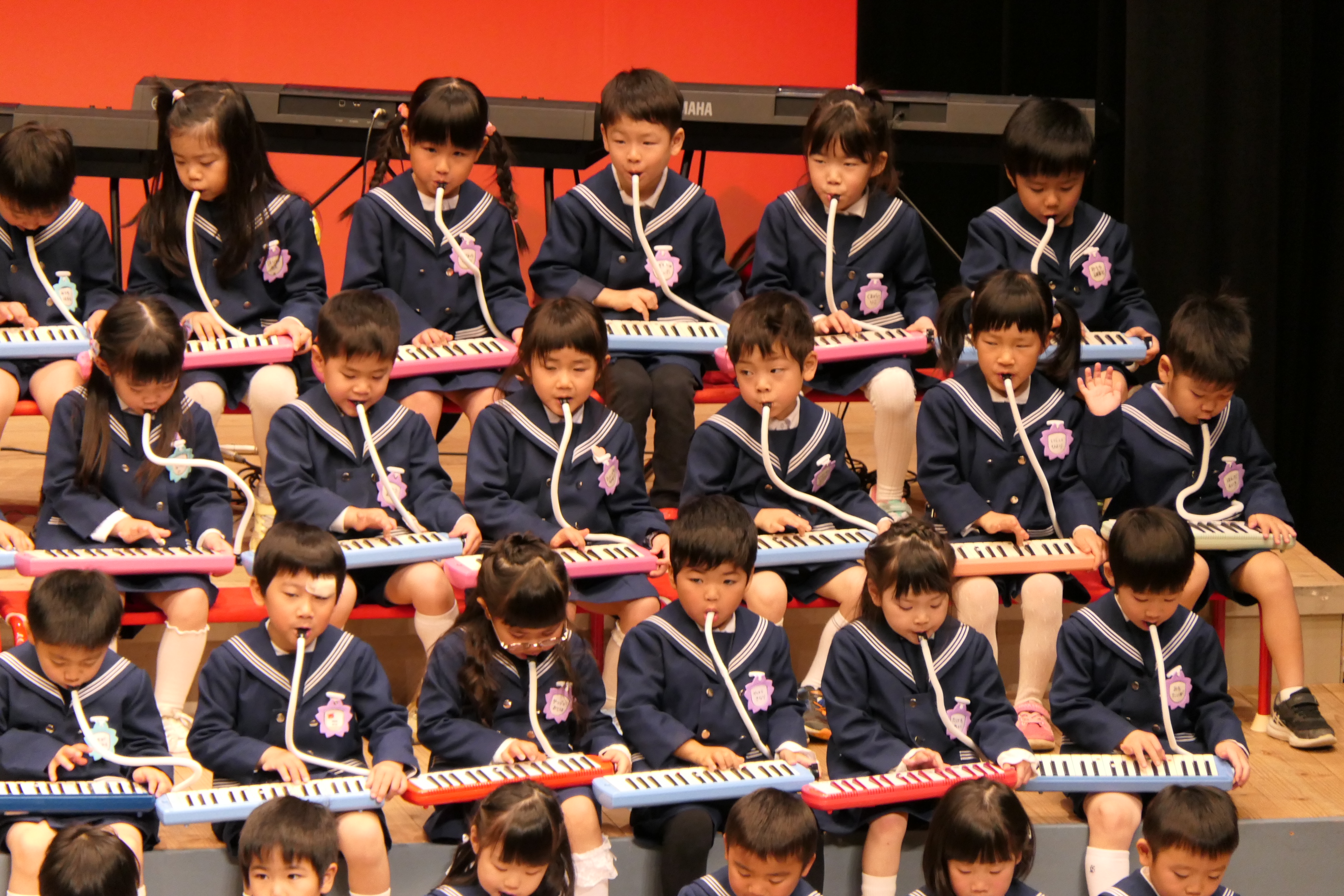 市民会館の大ホールで、みんな元気いっぱい歌い、リズムをとり、楽器を演奏しました。ちょっぴり緊張したけど、楽しかった!