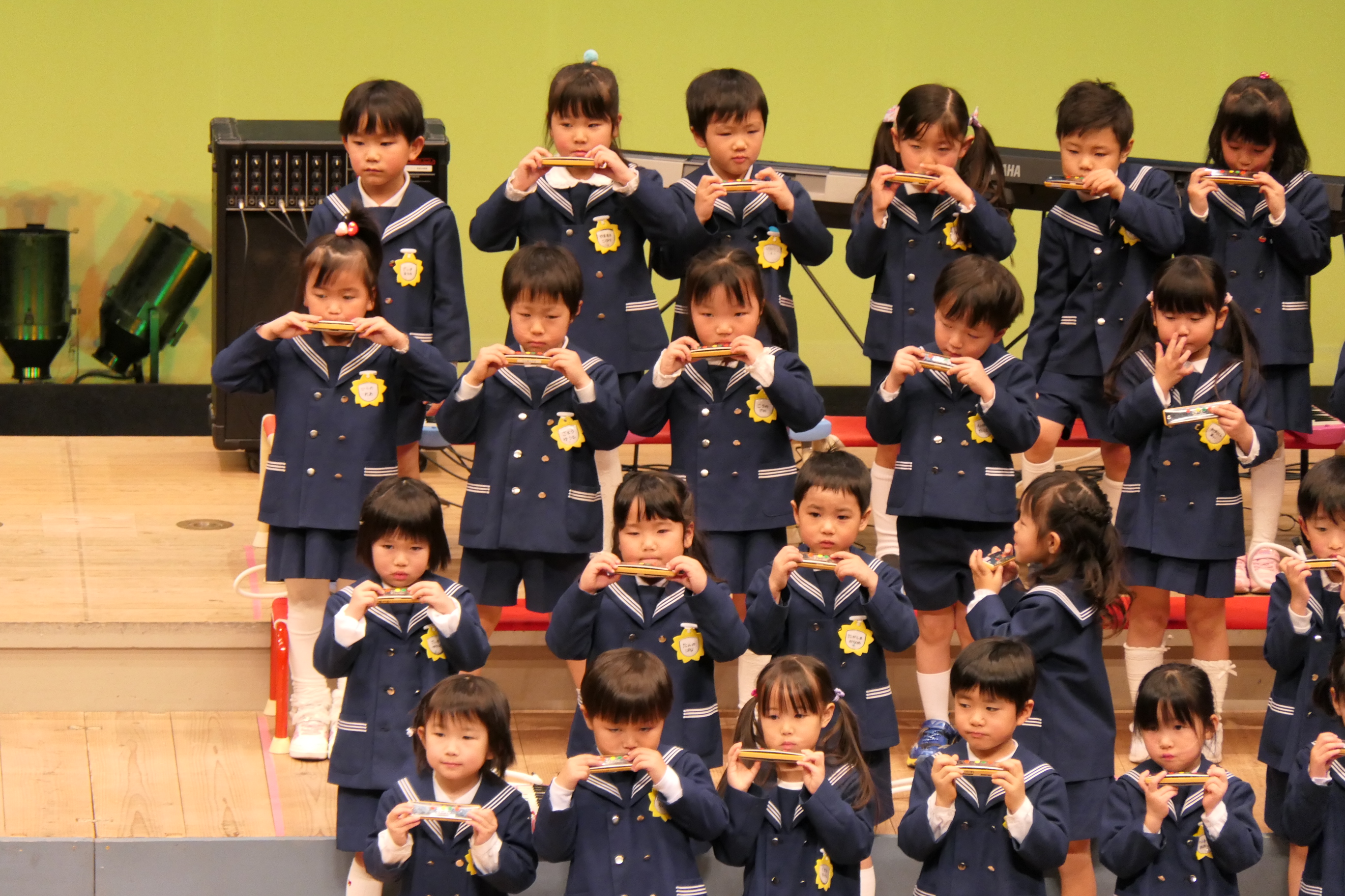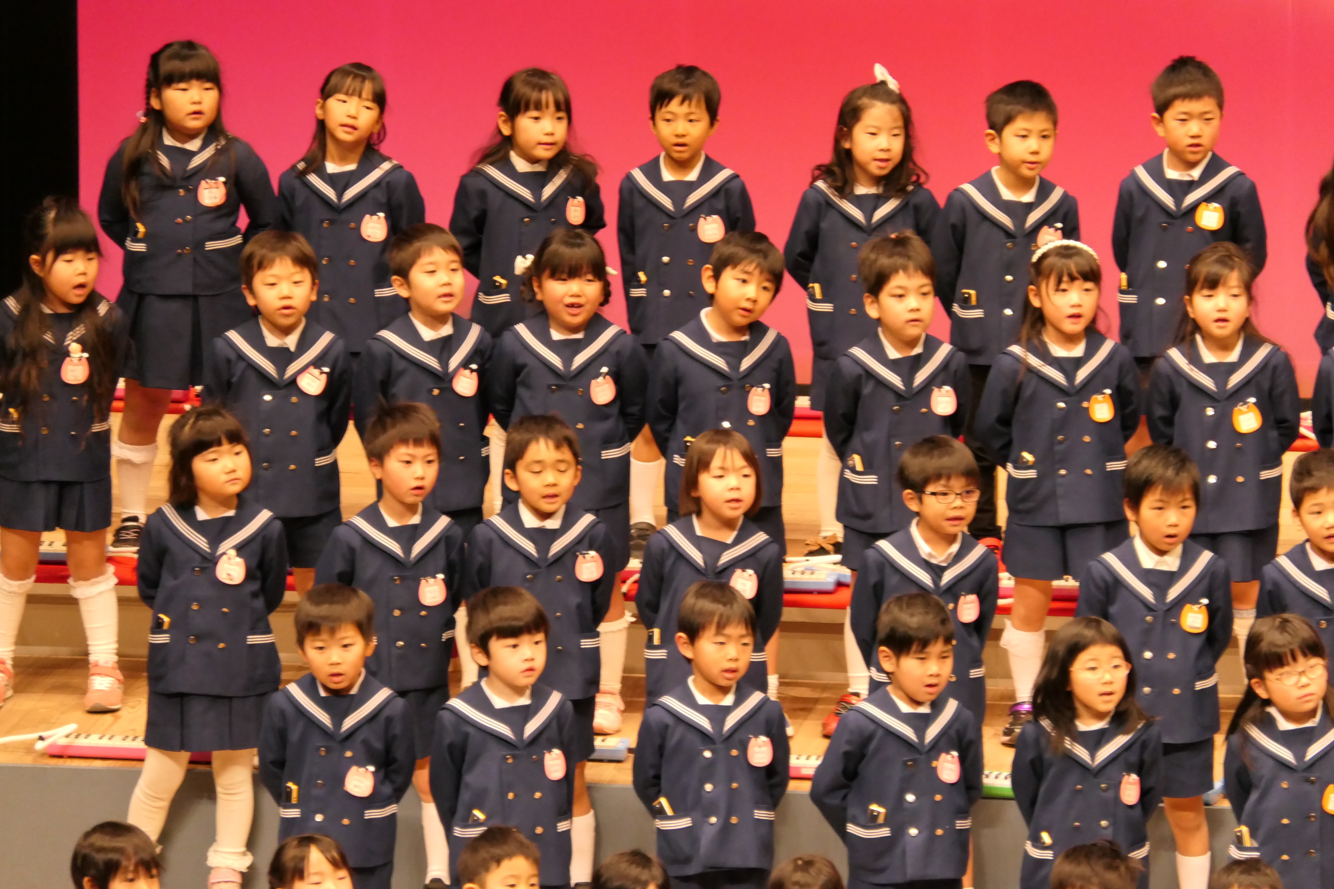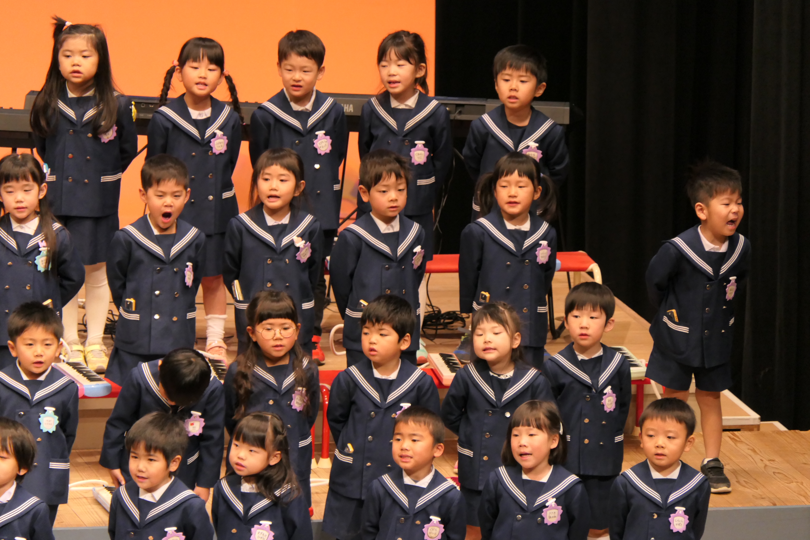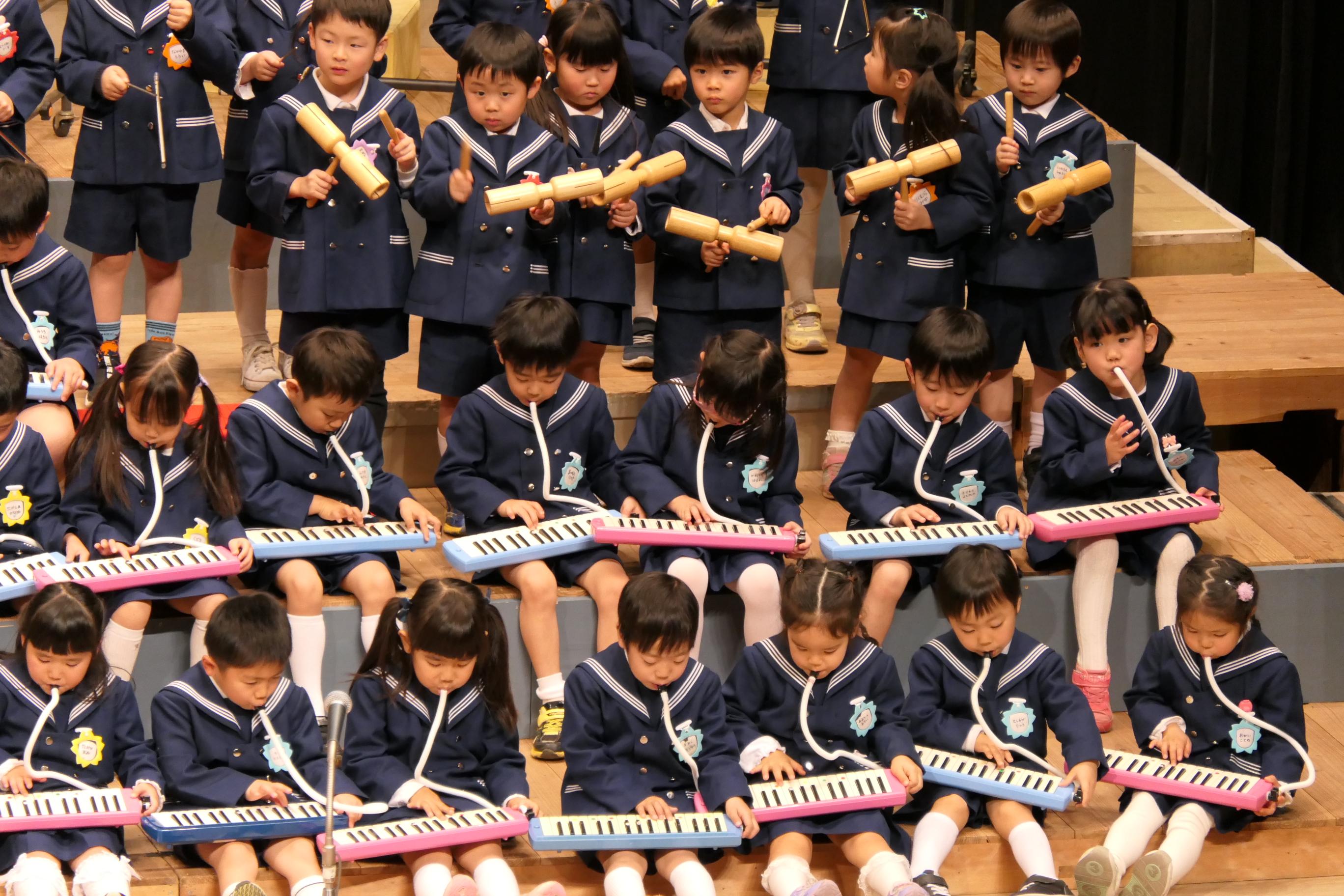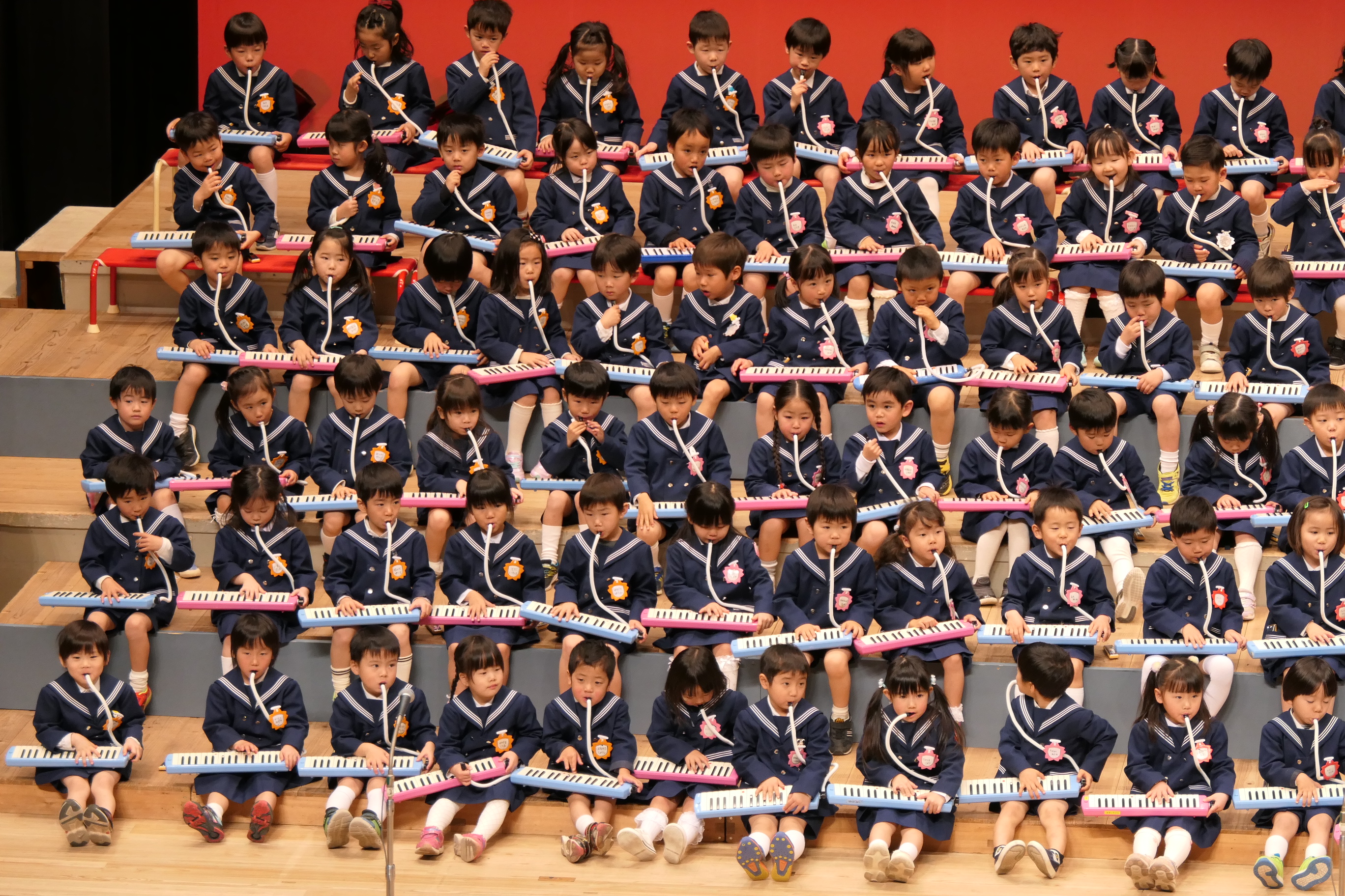 市民会館の大ホールで、みんな元気いっぱい歌い、リズムをとり、楽器を演奏しました。ちょっぴり緊張したけど、楽しかった!