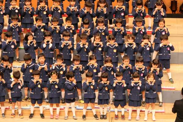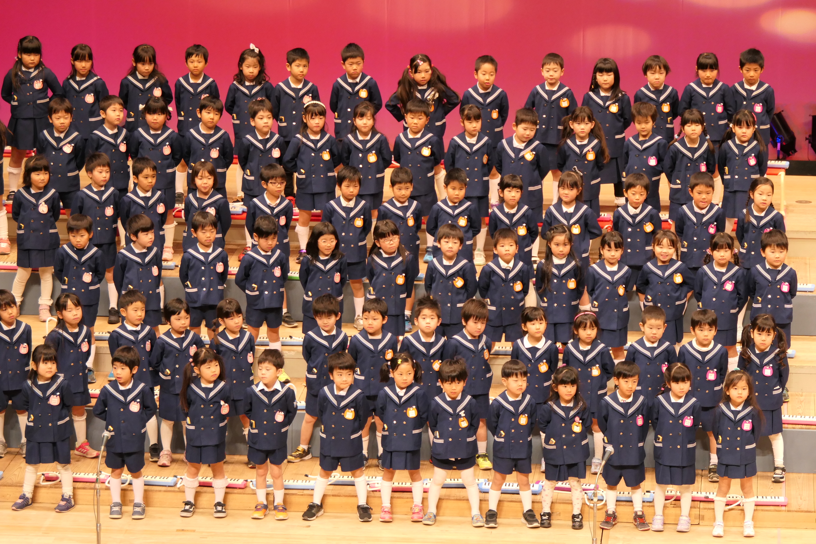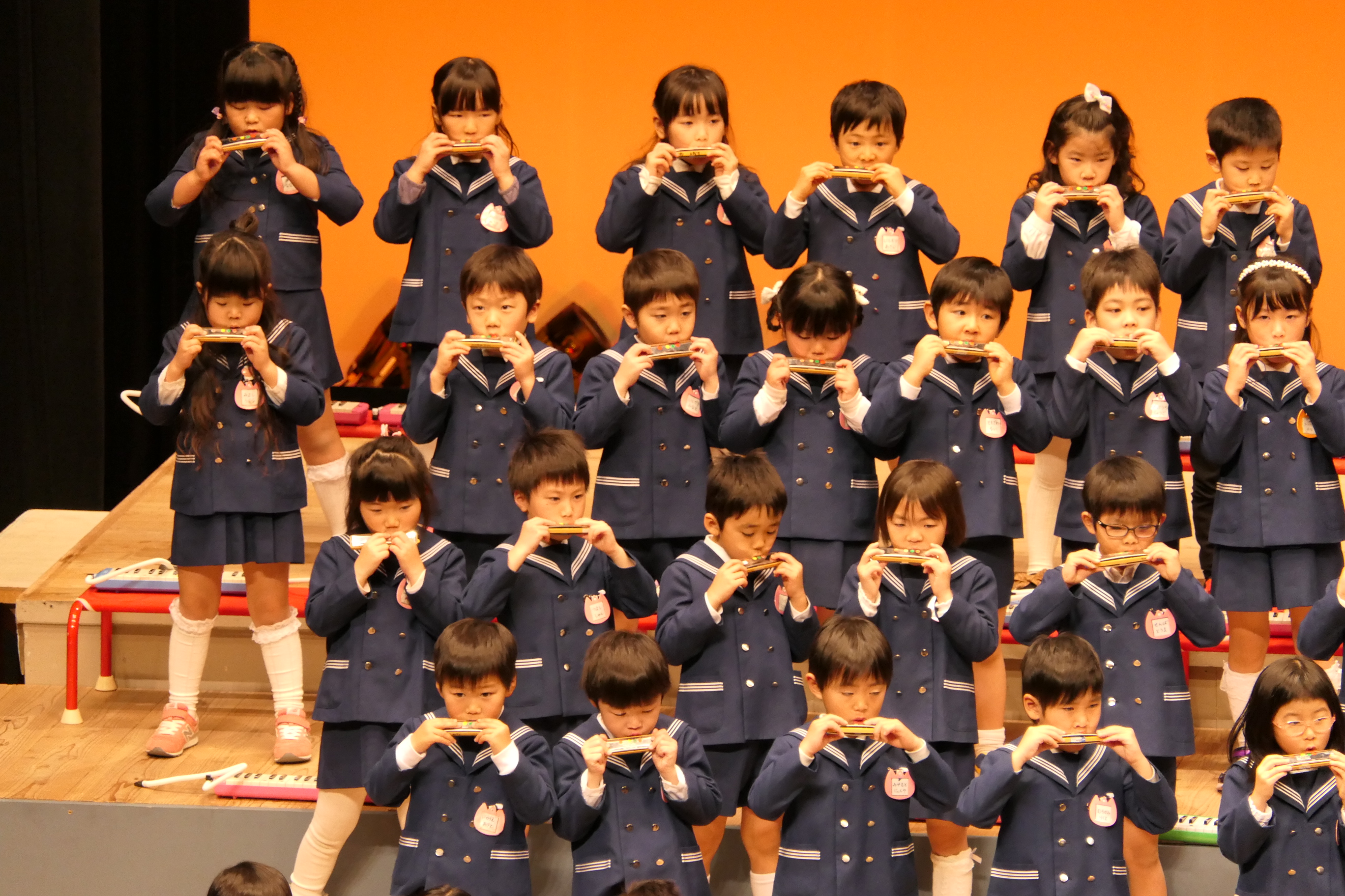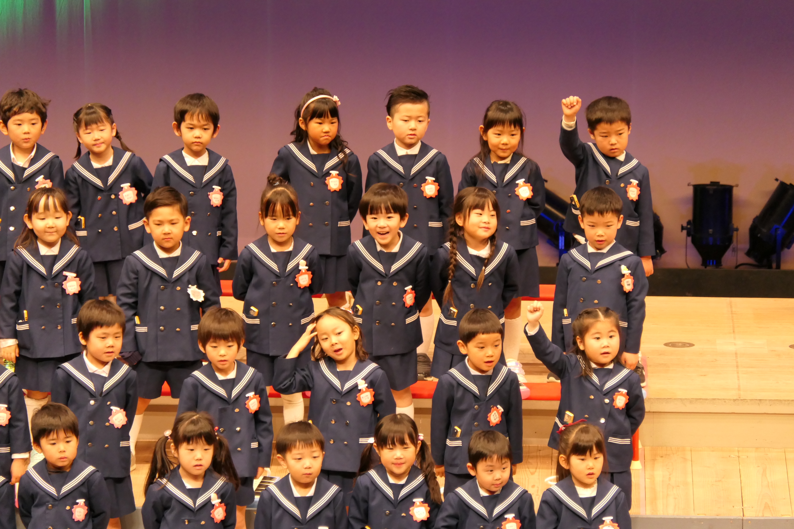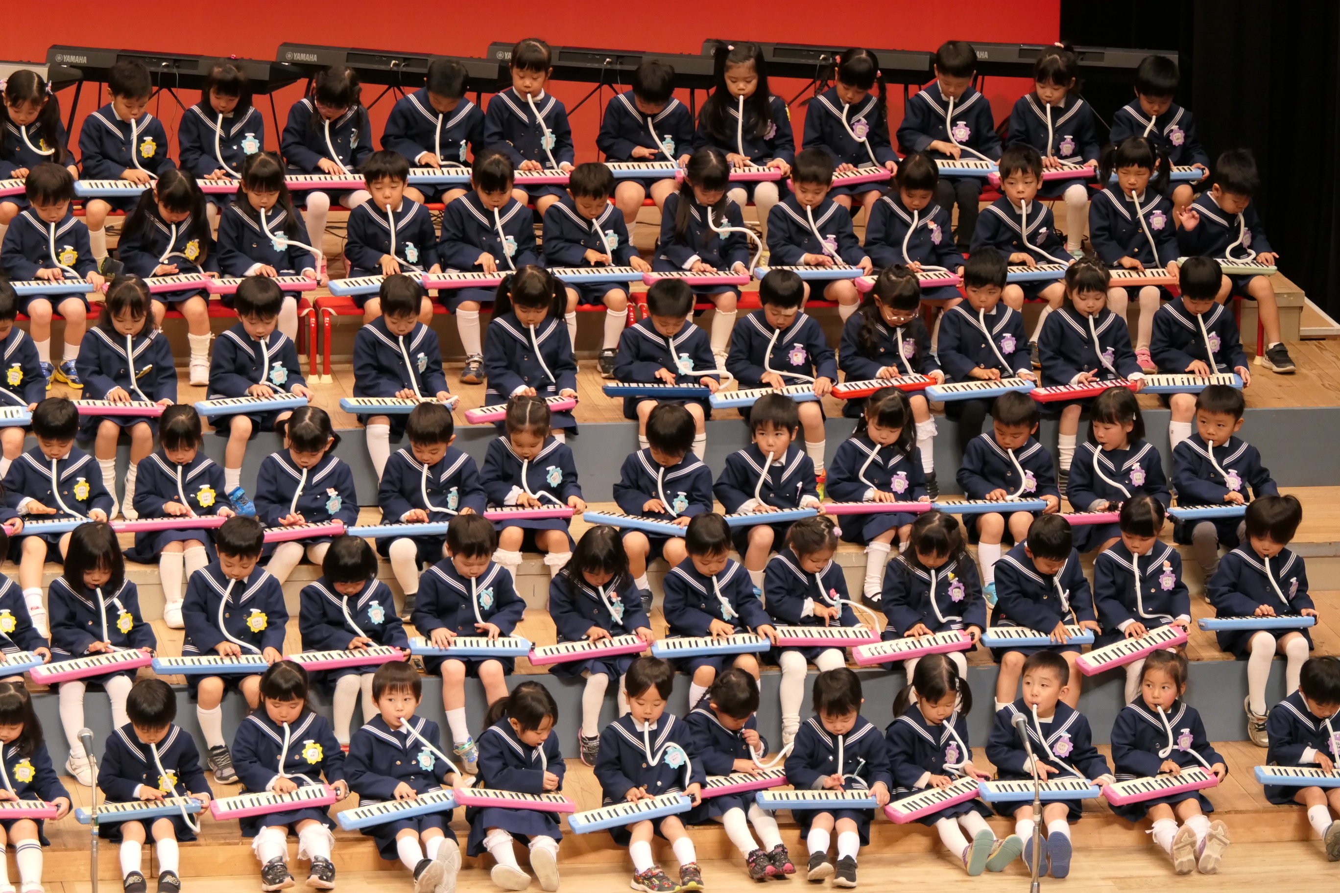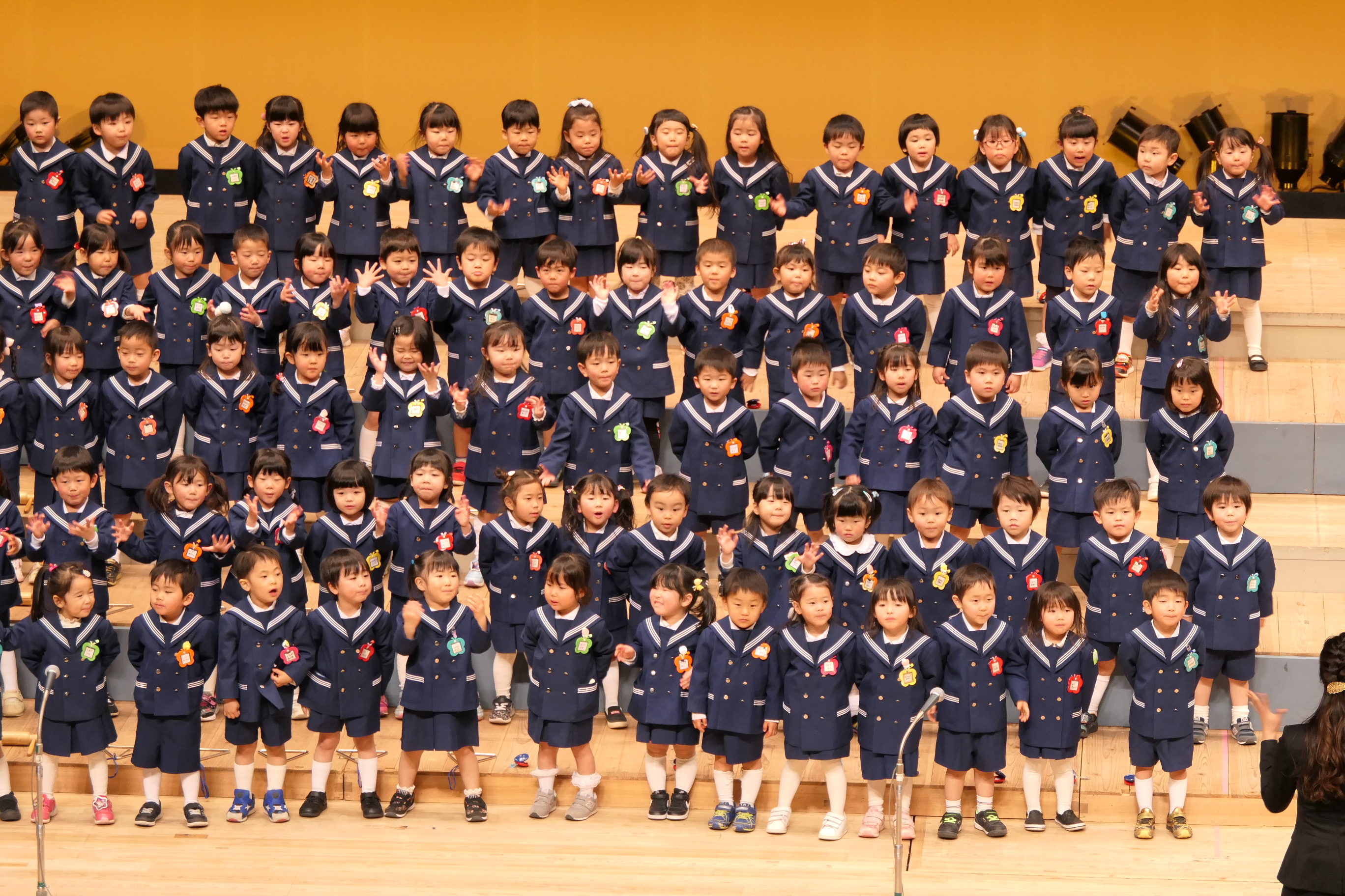 市民会館の大ホールで、みんな元気いっぱい歌い、リズムをとり、楽器を演奏しました。ちょっぴり緊張したけど、楽しかった!