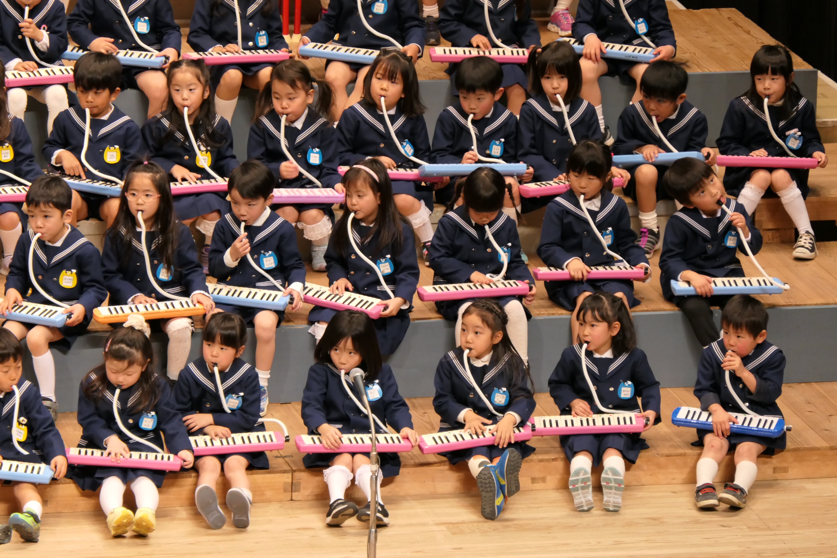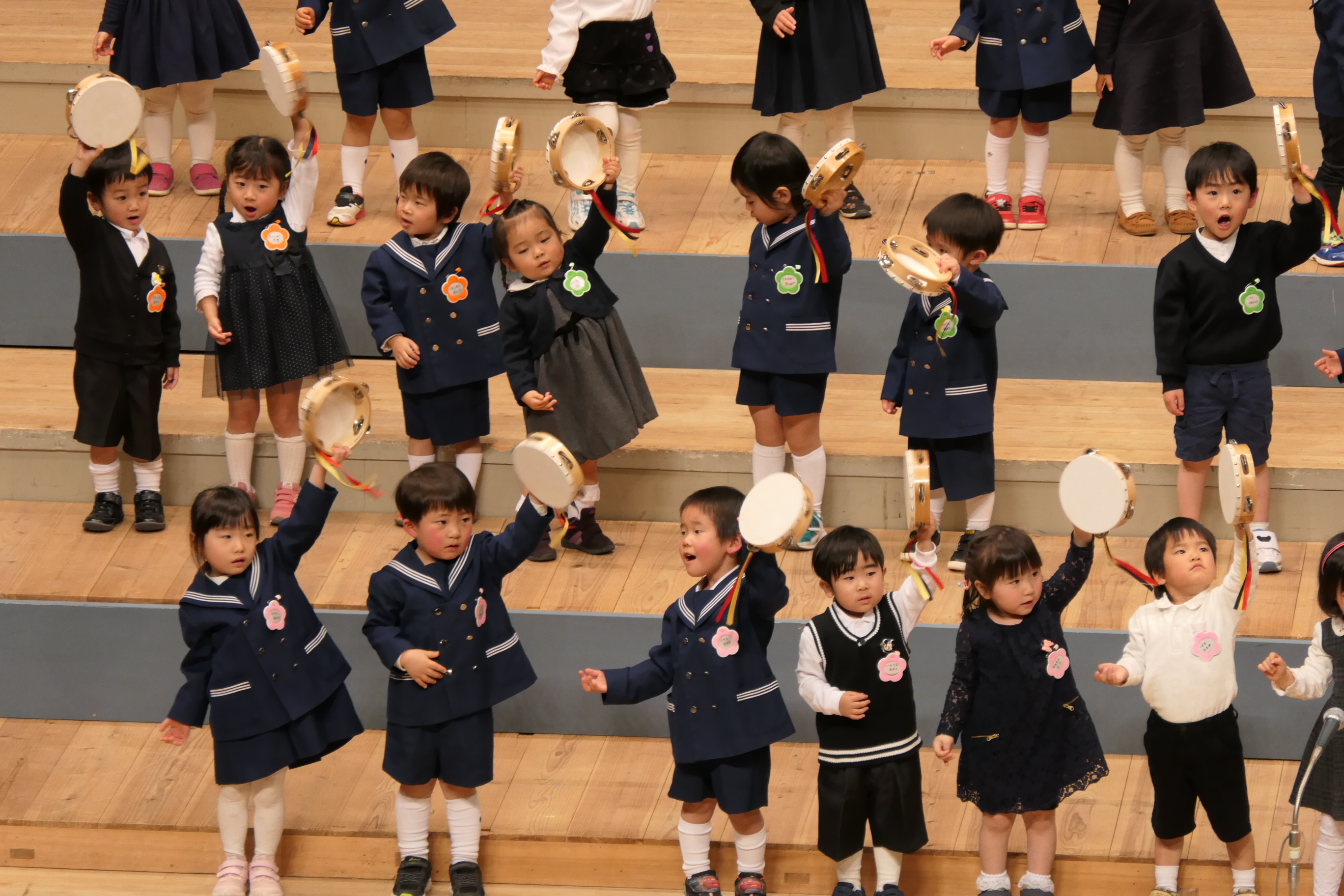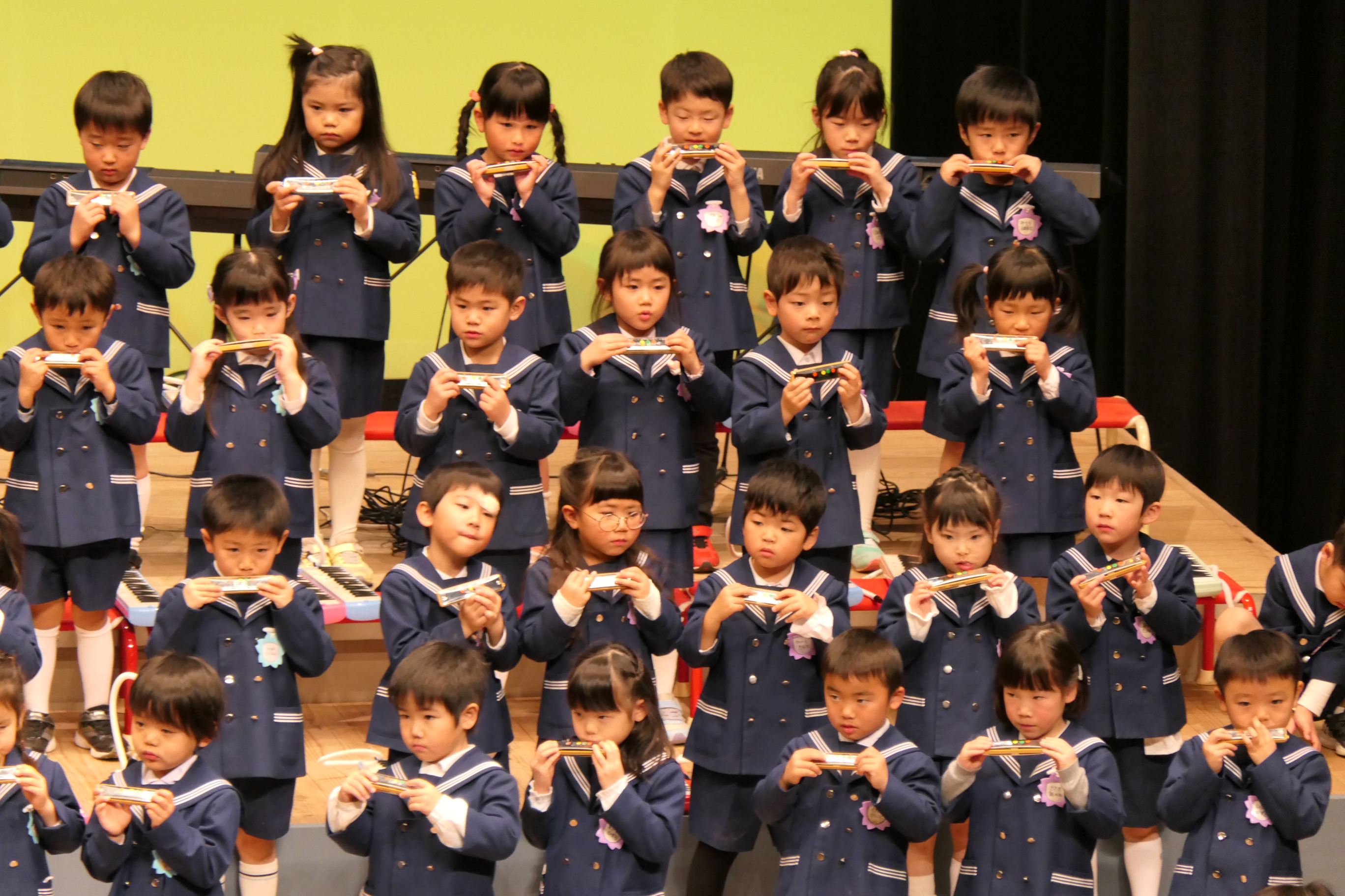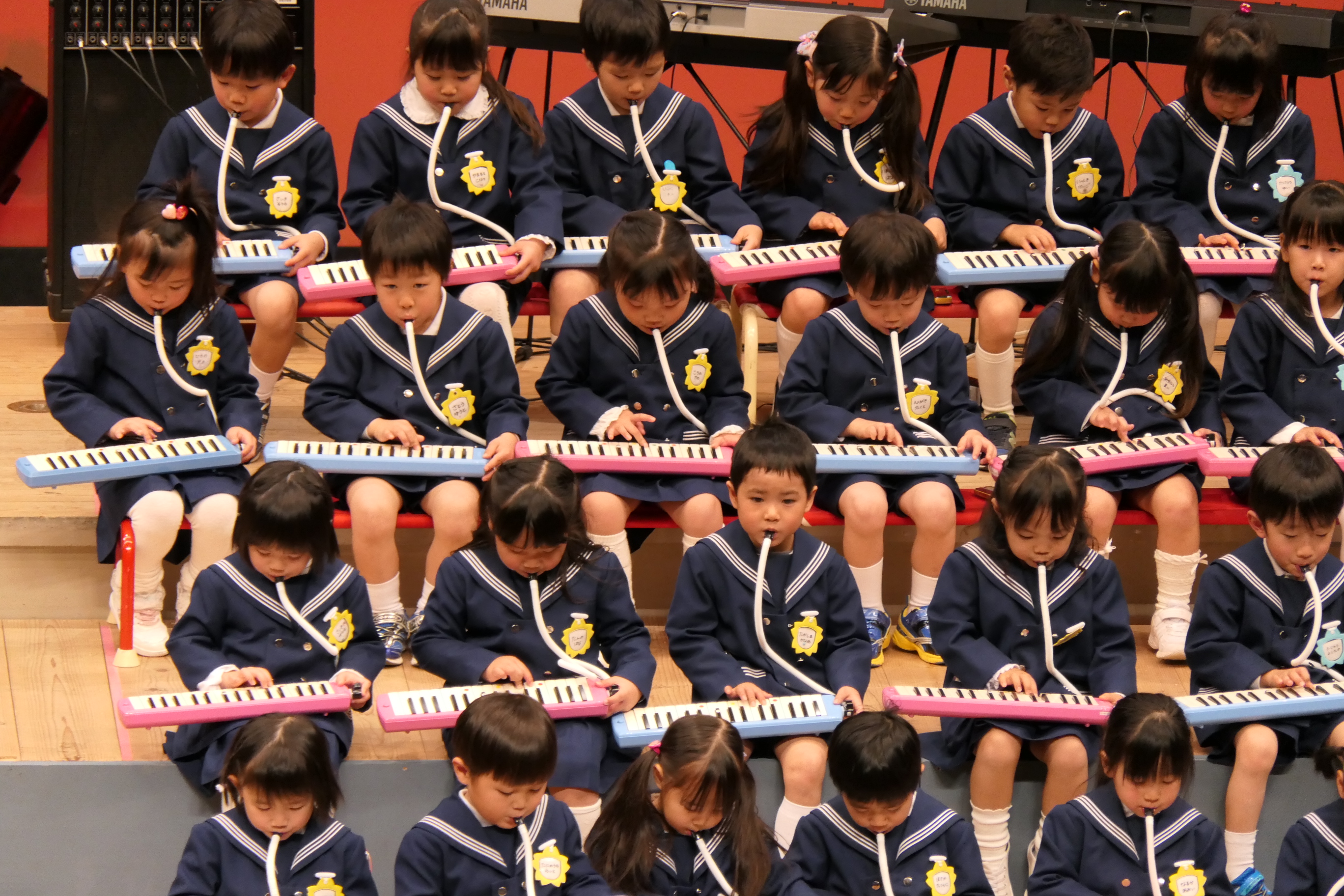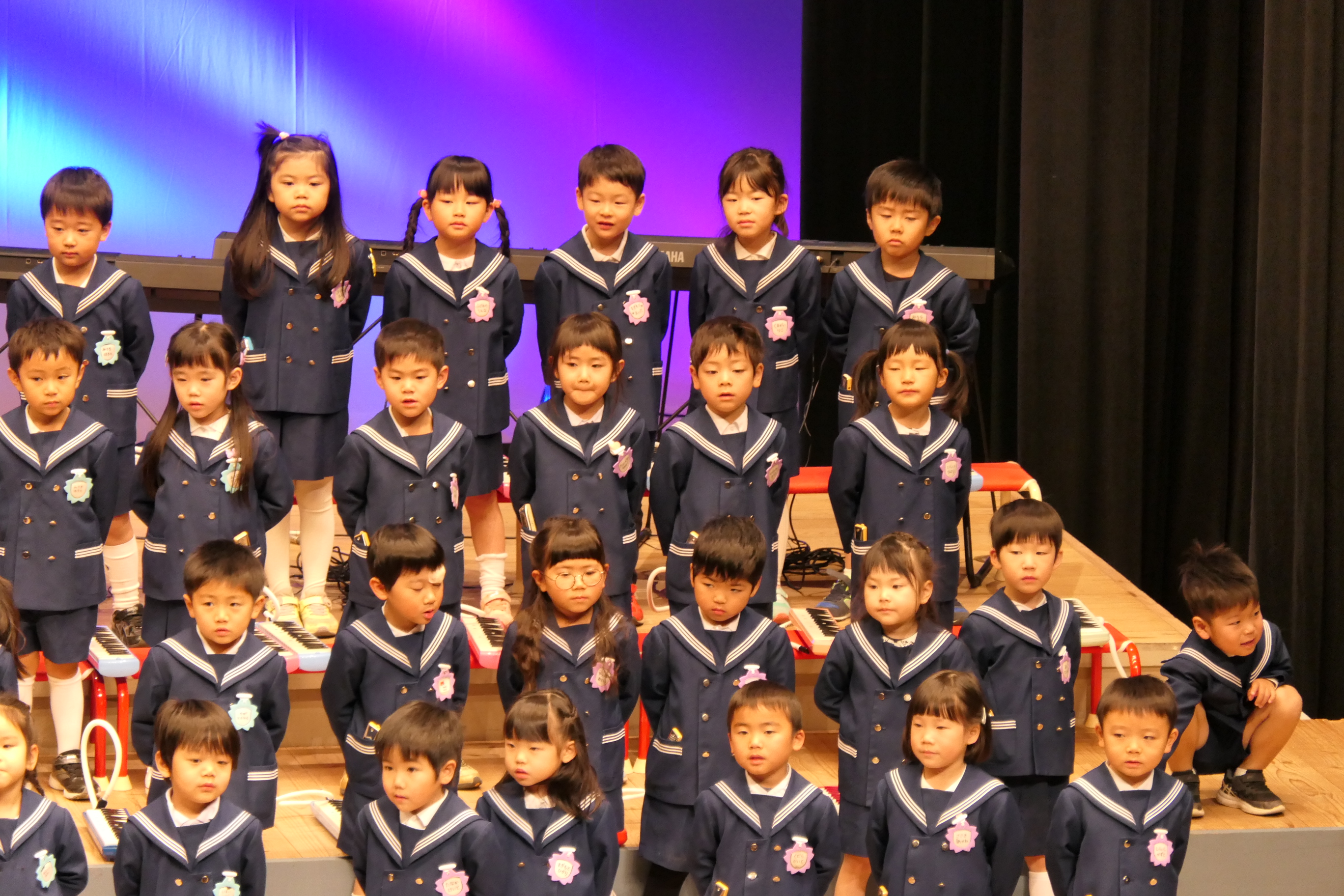市民会館の大ホールで、みんな元気いっぱい歌い、リズムをとり、楽器を演奏しました。ちょっぴり緊張したけど、楽しかった!
