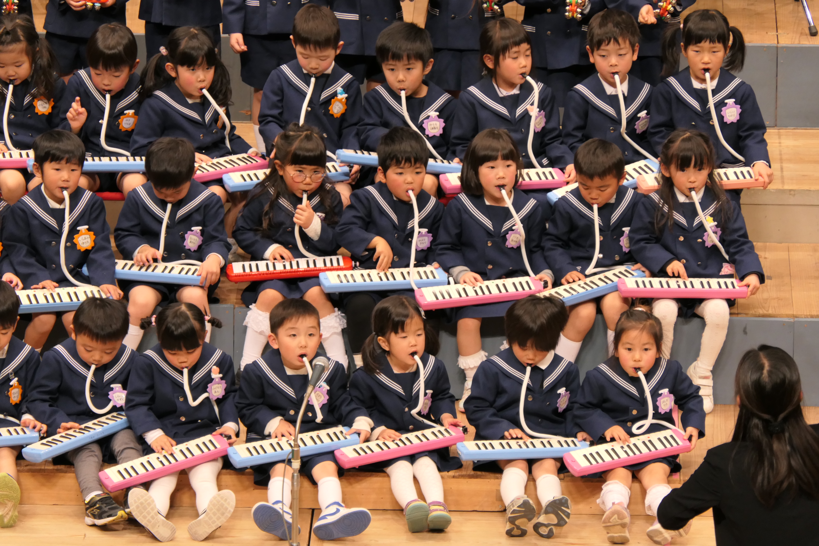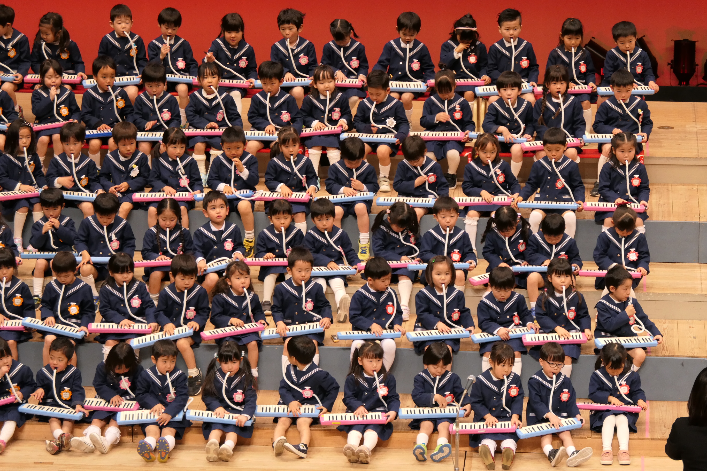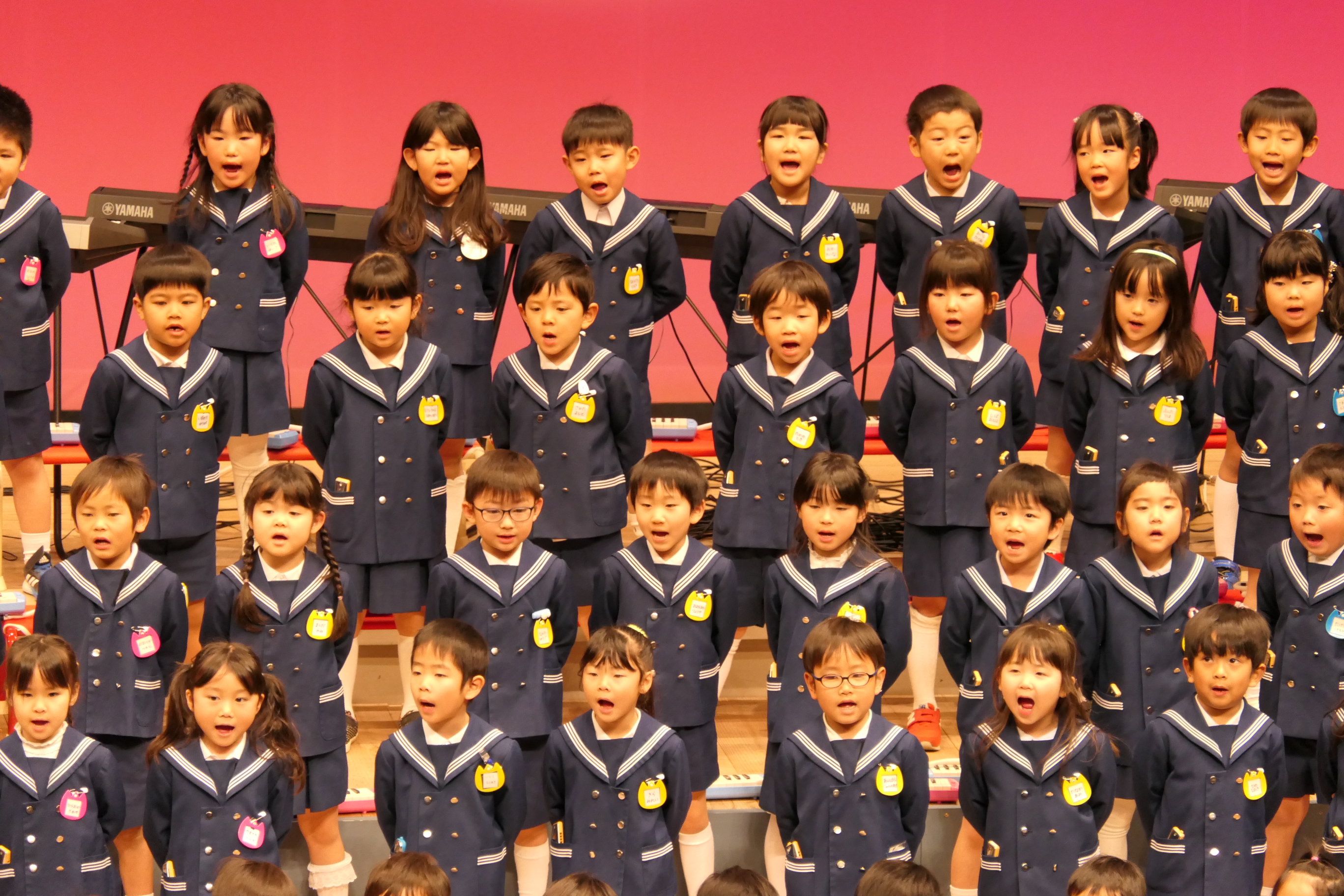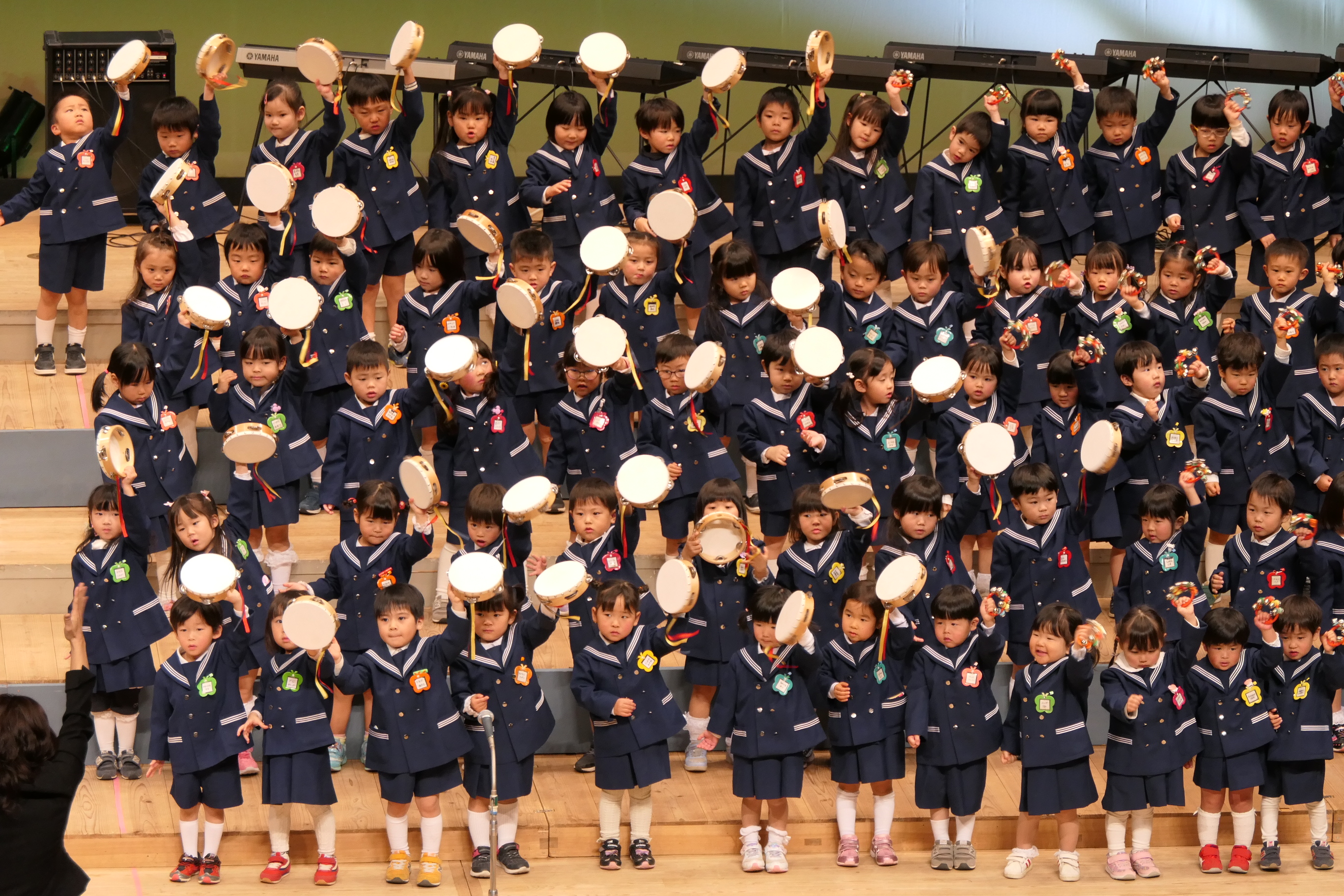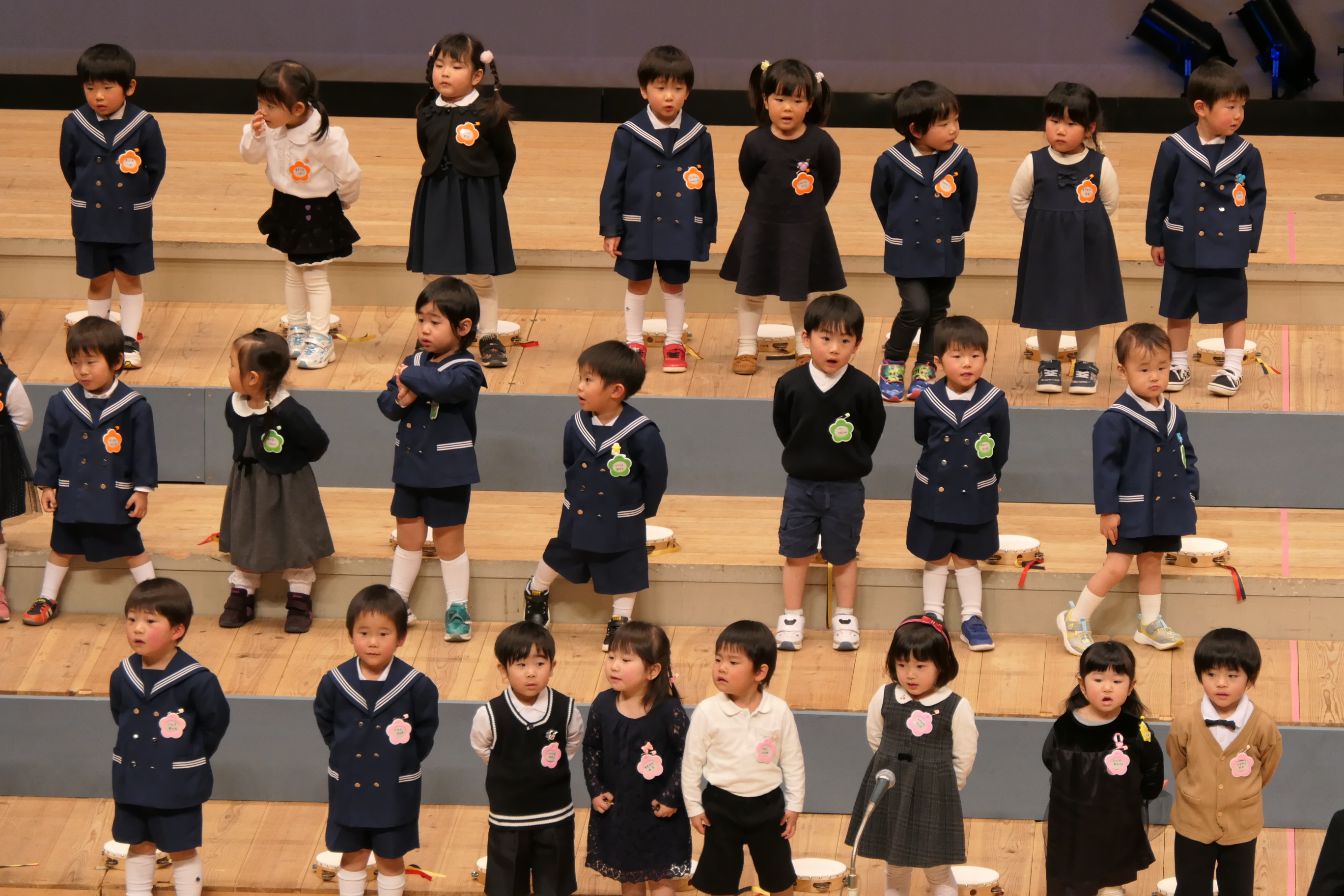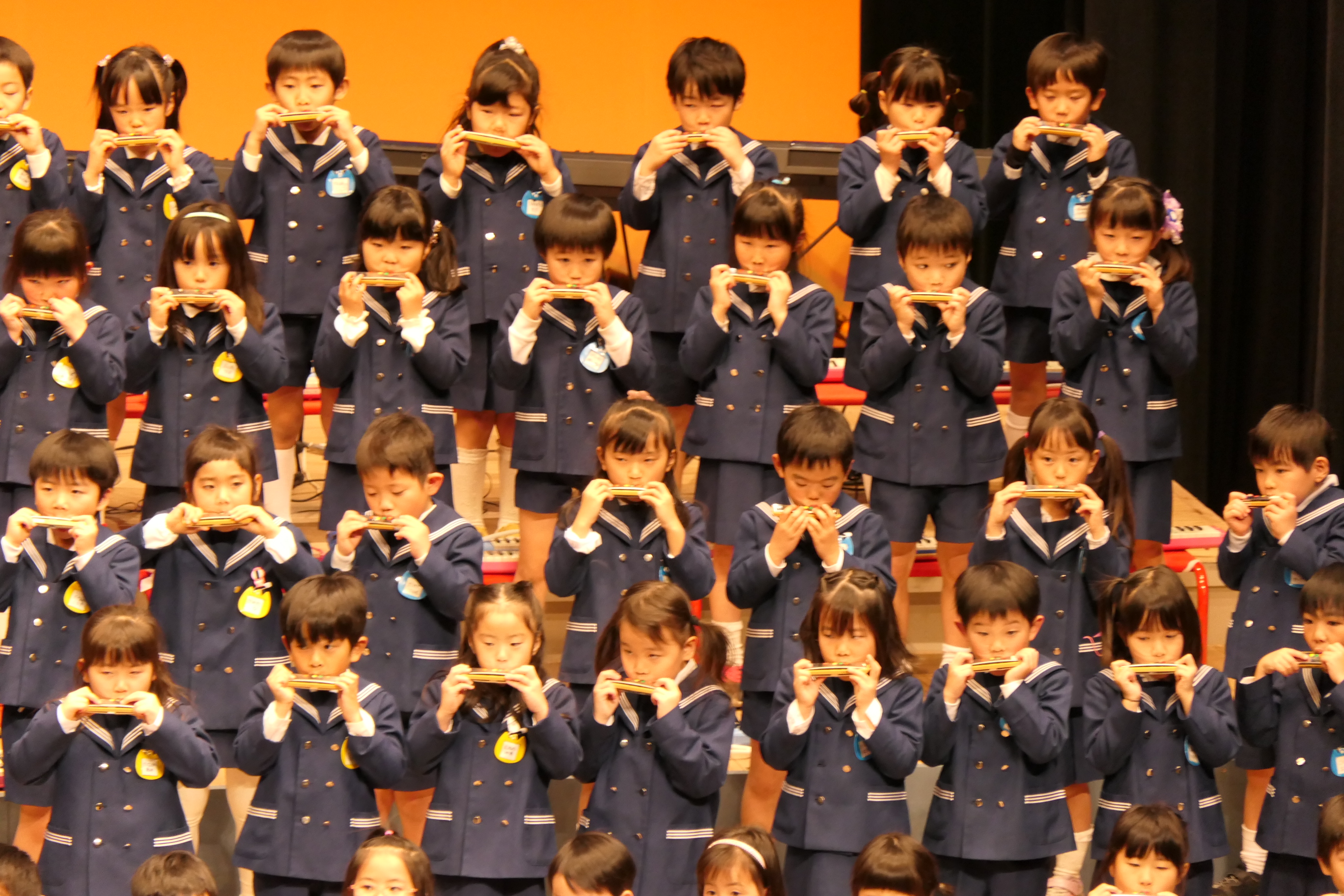 市民会館の大ホールで、みんな元気いっぱい歌い、リズムをとり、楽器を演奏しました。ちょっぴり緊張したけど、楽しかった!
