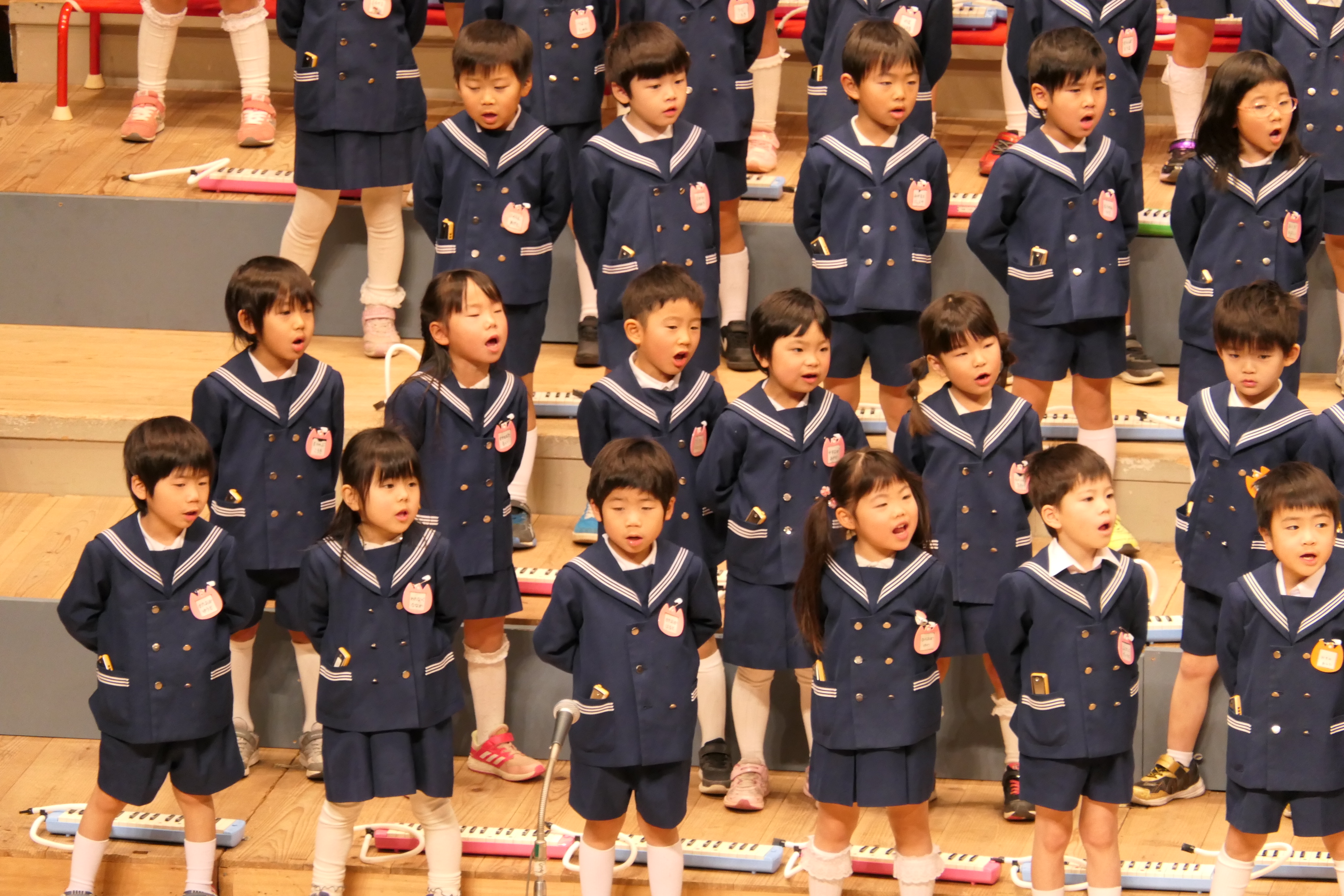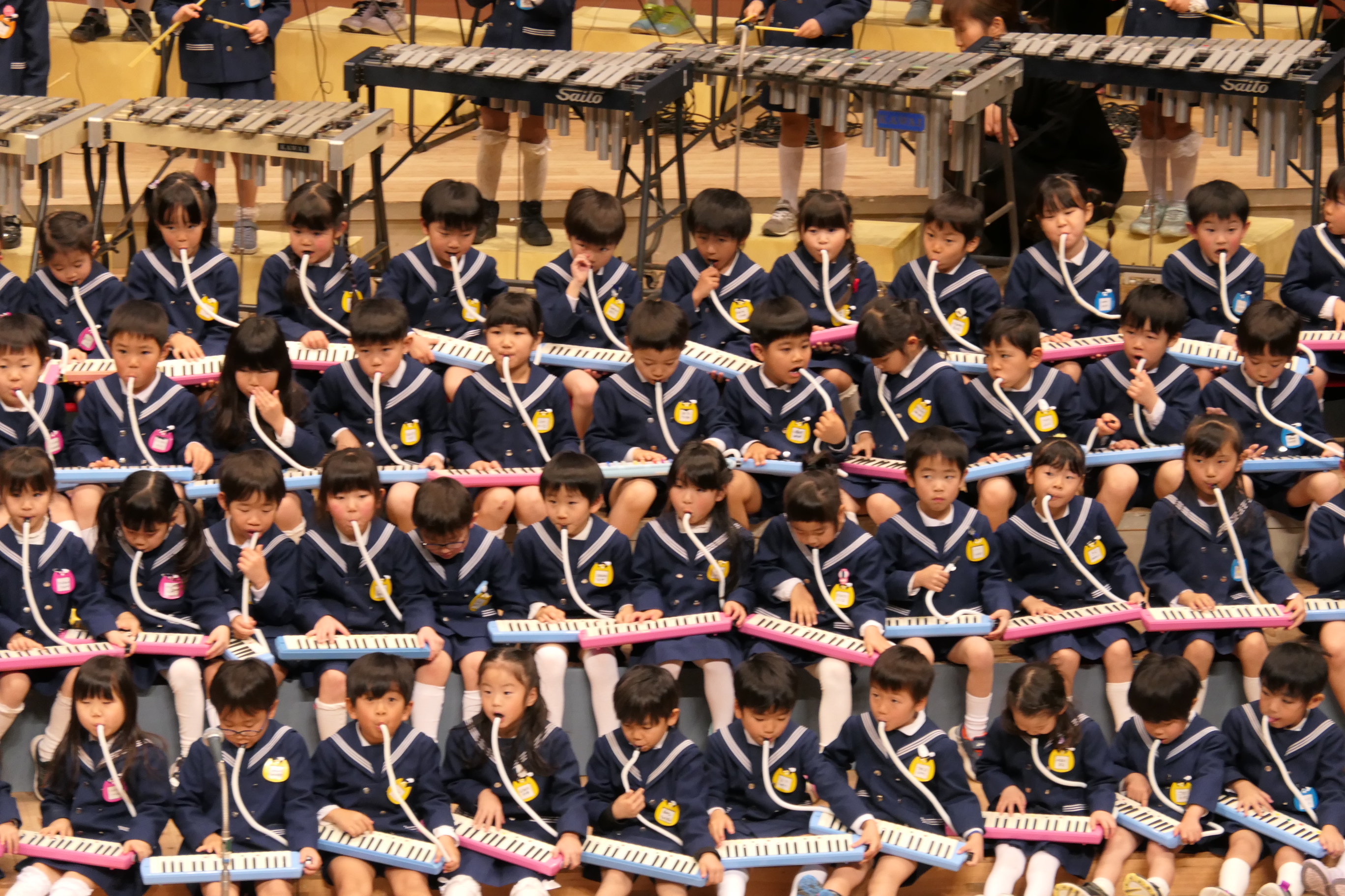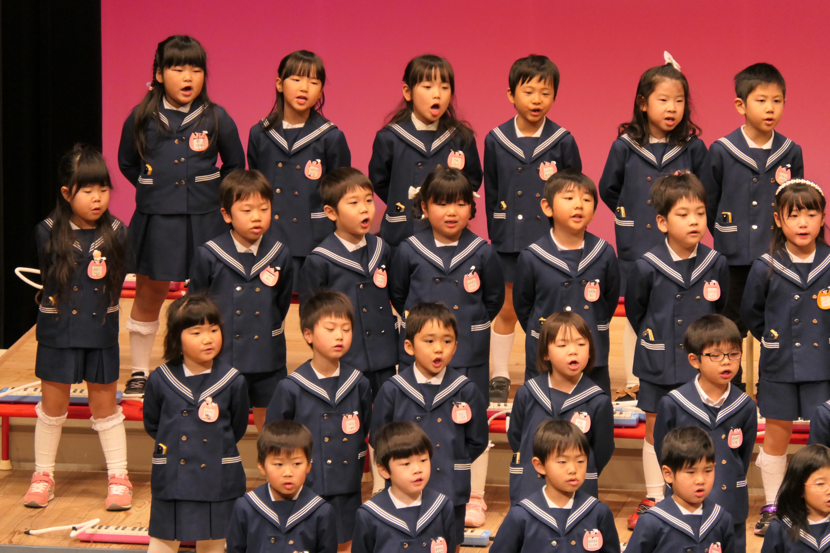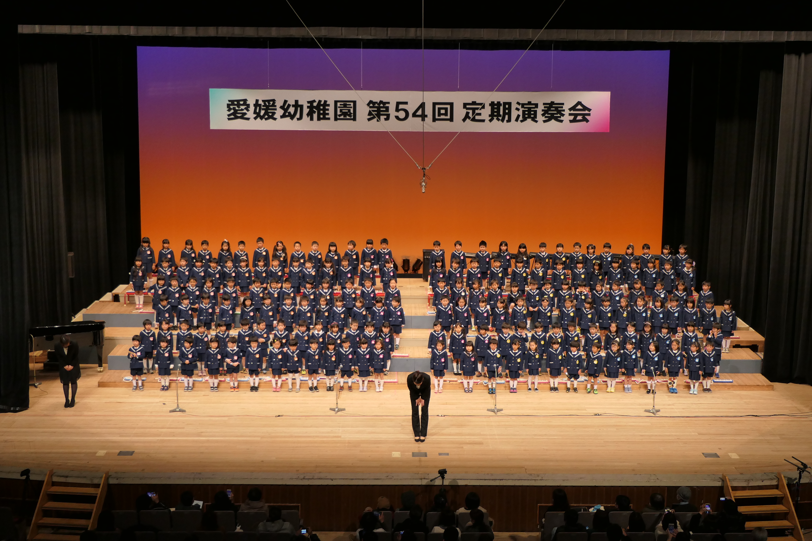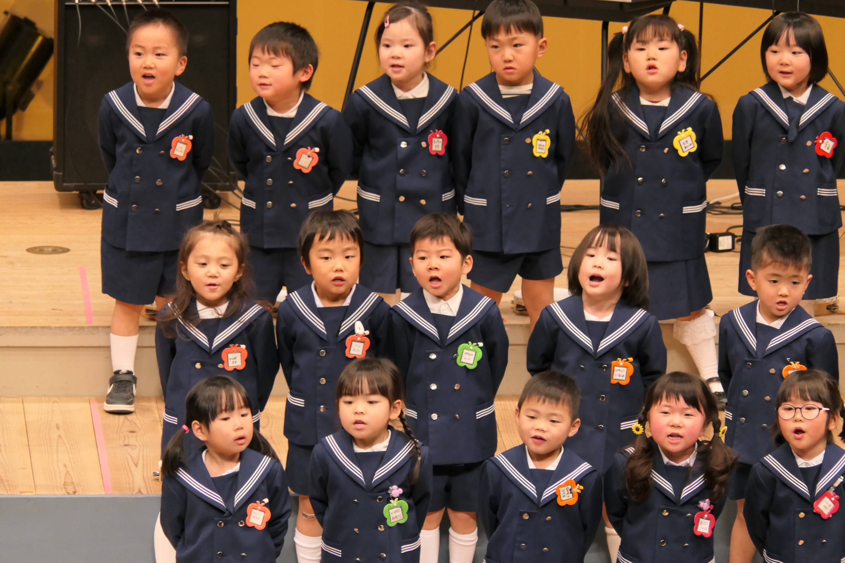 市民会館の大ホールで、みんな元気いっぱい歌い、リズムをとり、楽器を演奏しました。ちょっぴり緊張したけど、楽しかった!