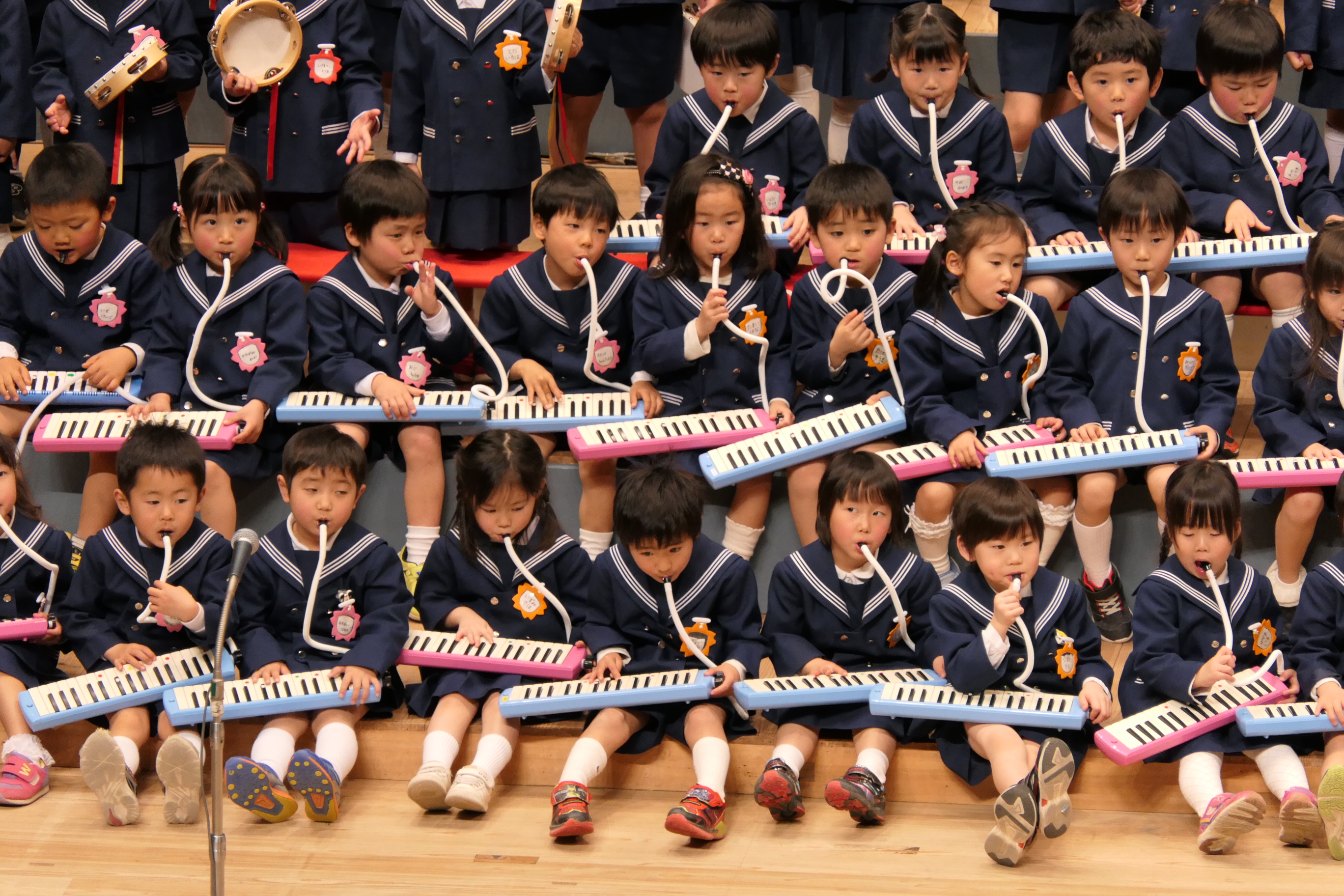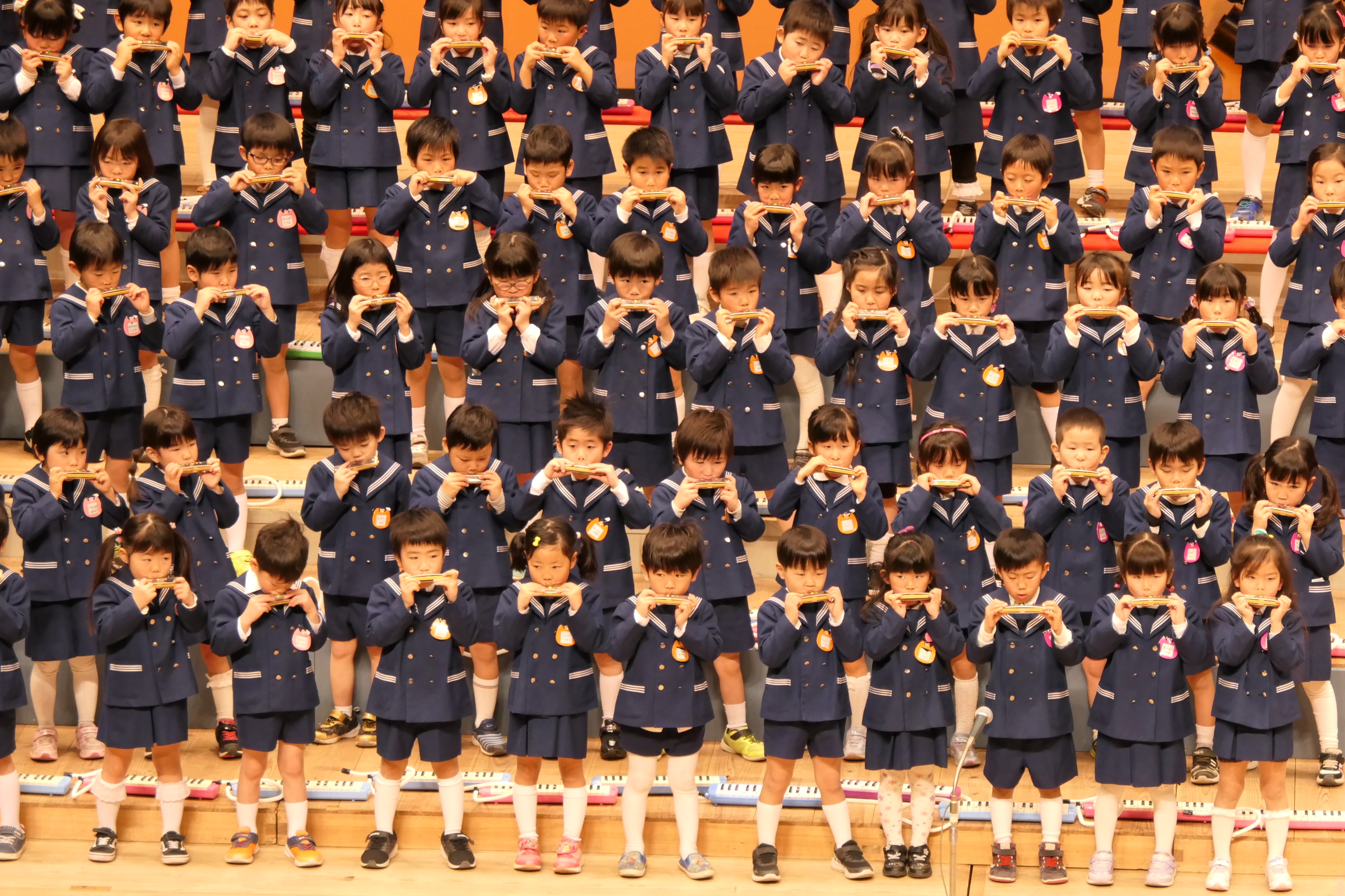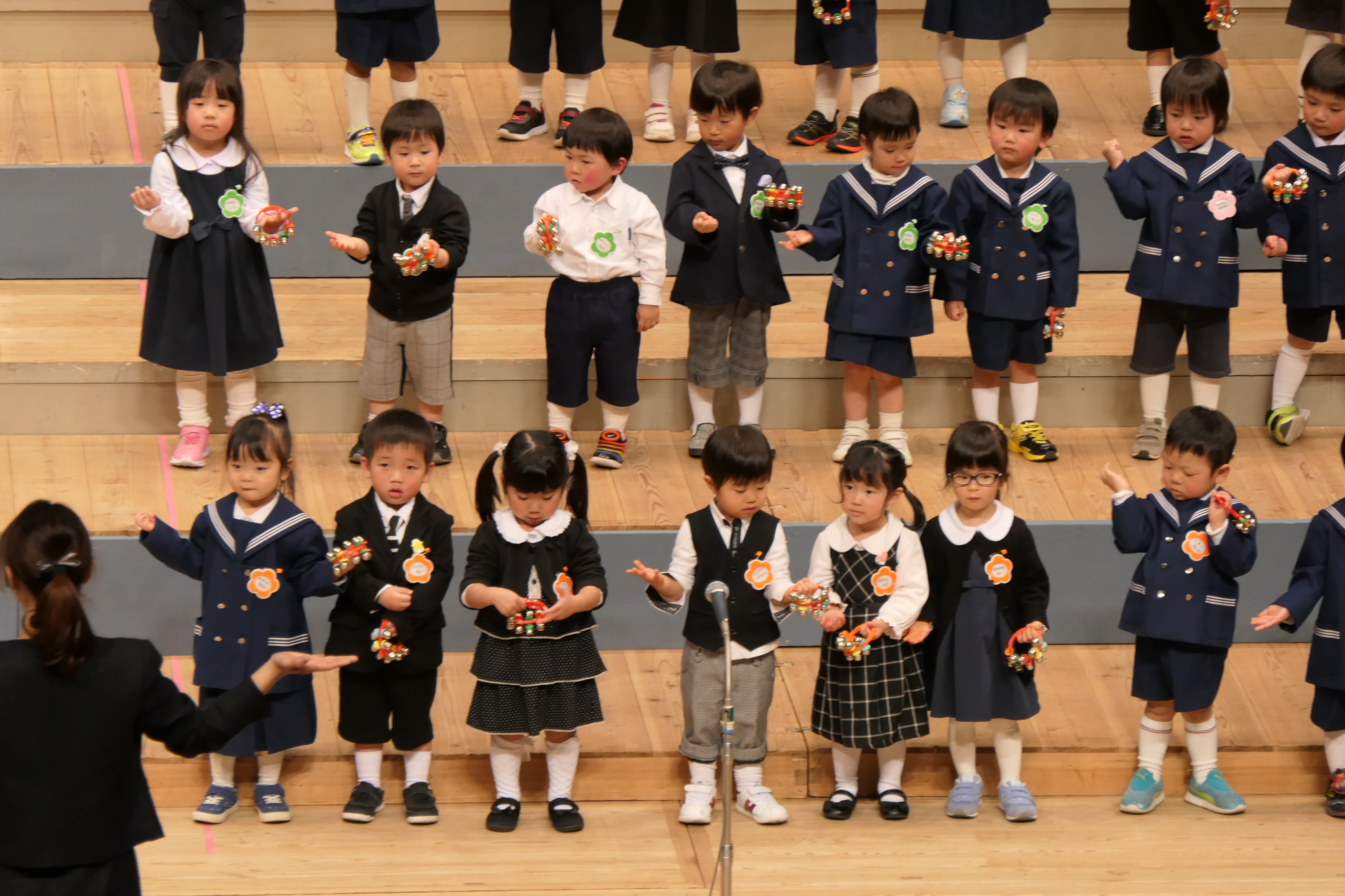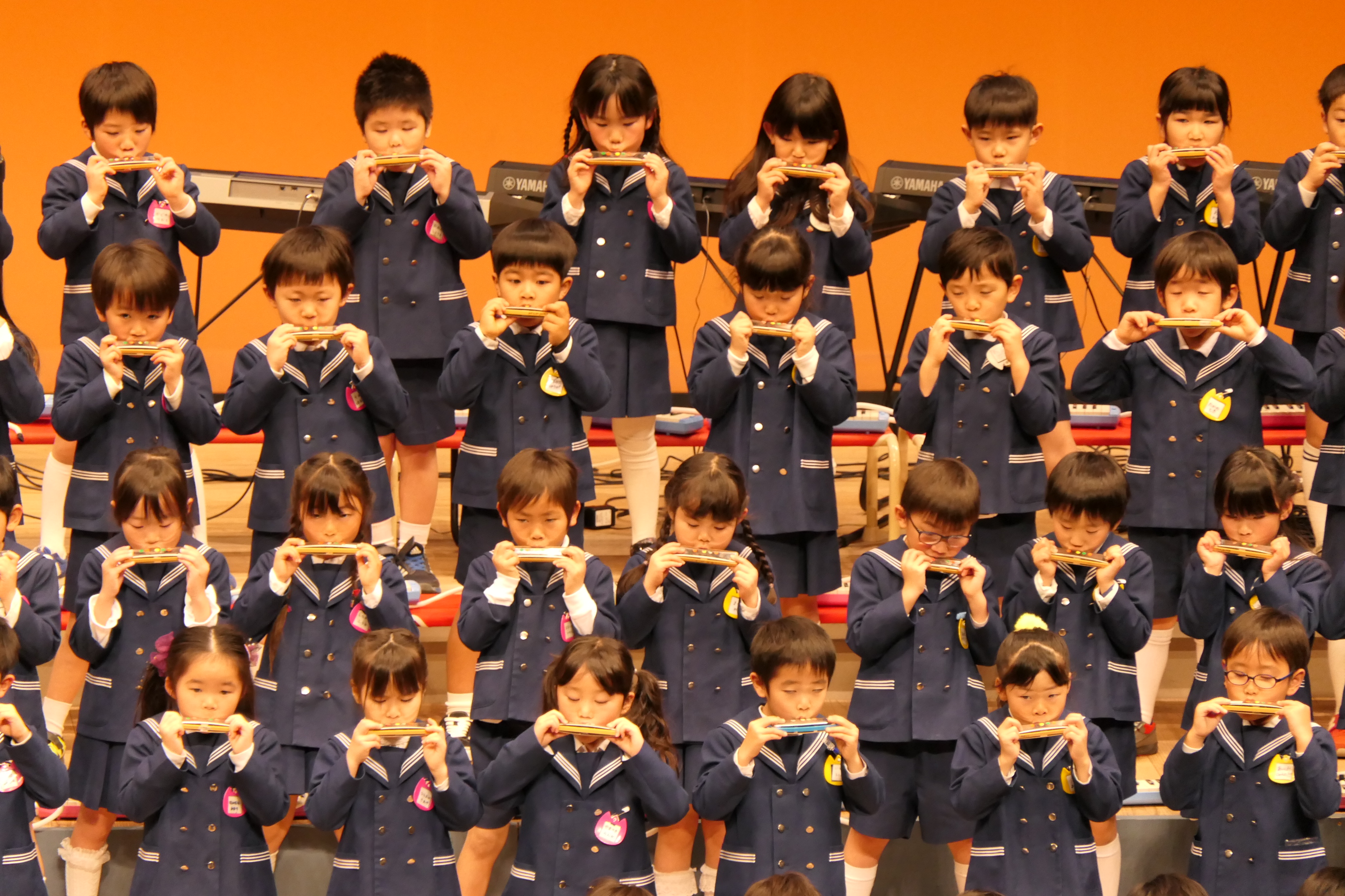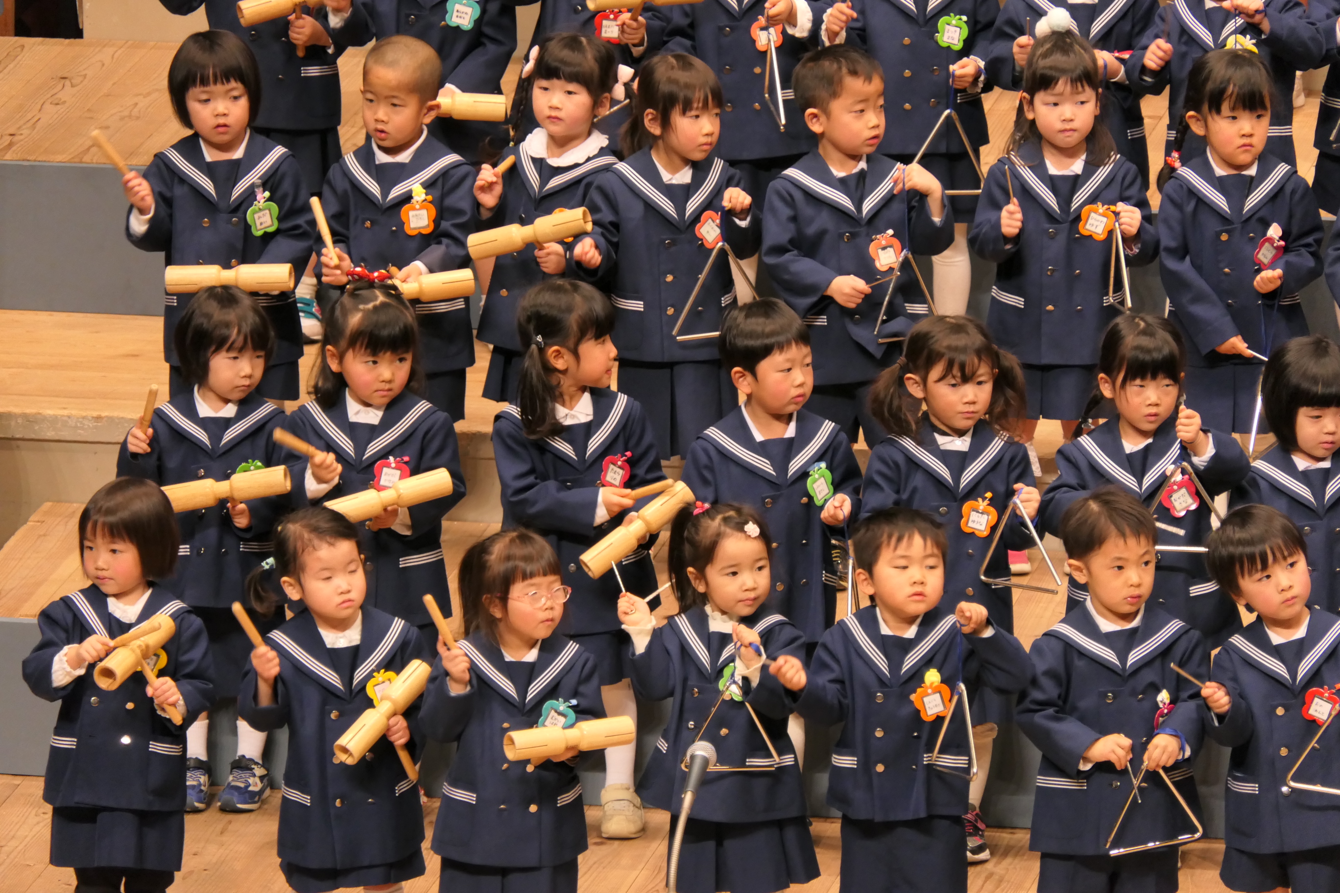 市民会館の大ホールで、みんな元気いっぱい歌い、リズムをとり、楽器を演奏しました。ちょっぴり緊張したけど、楽しかった!