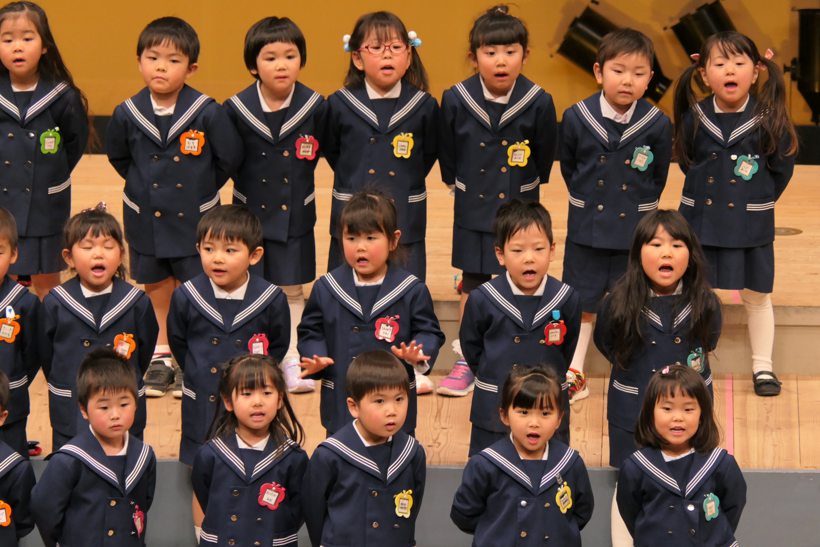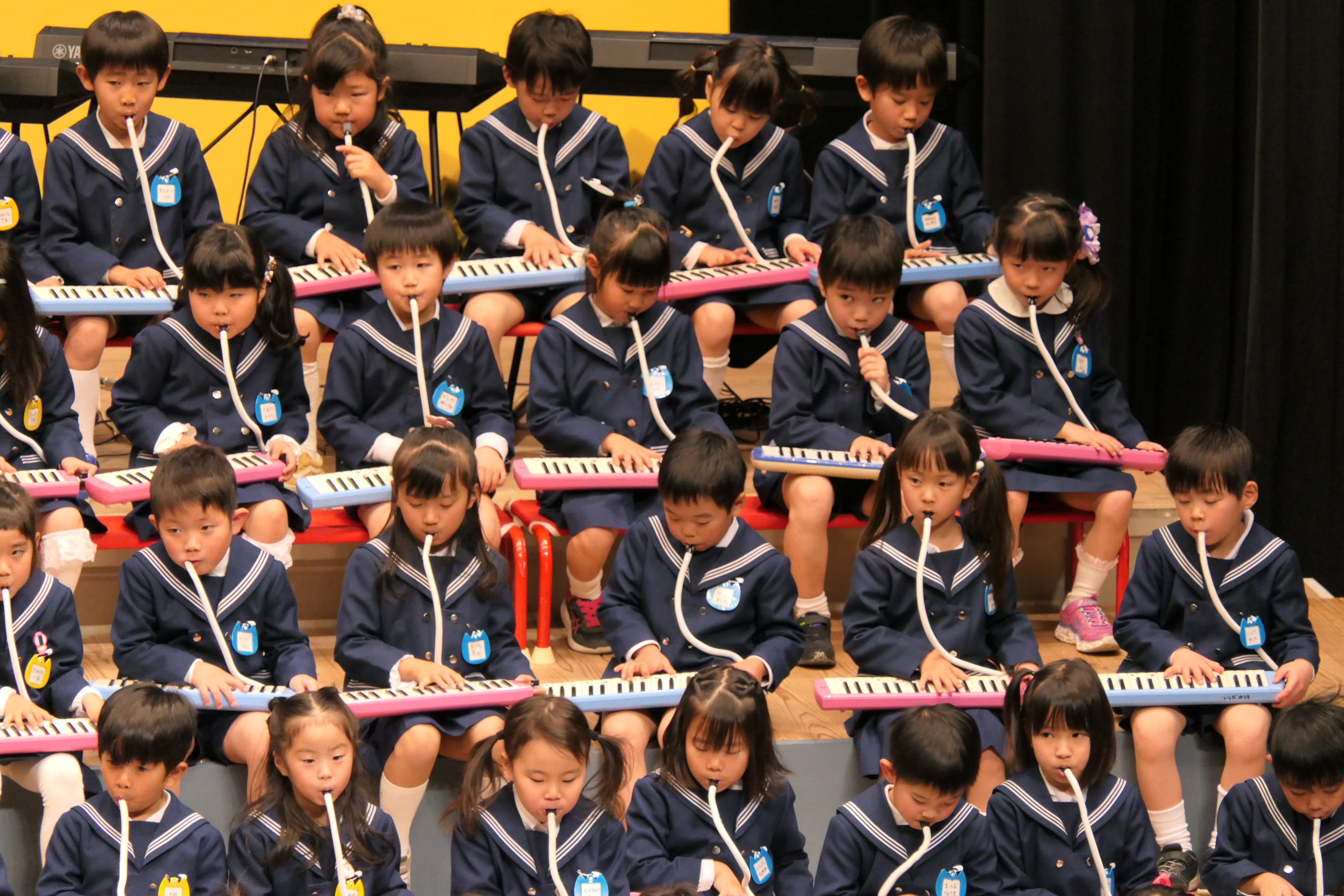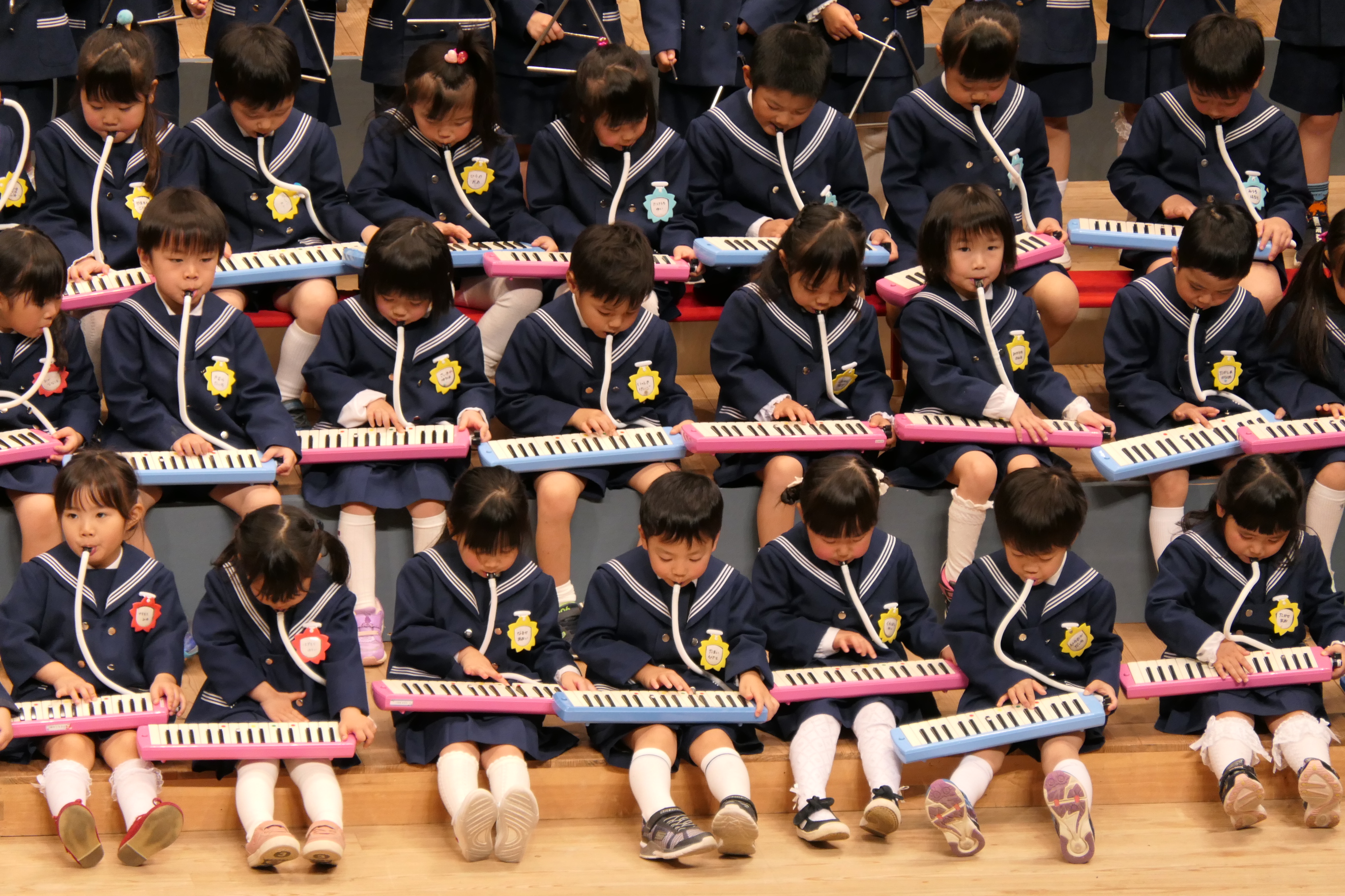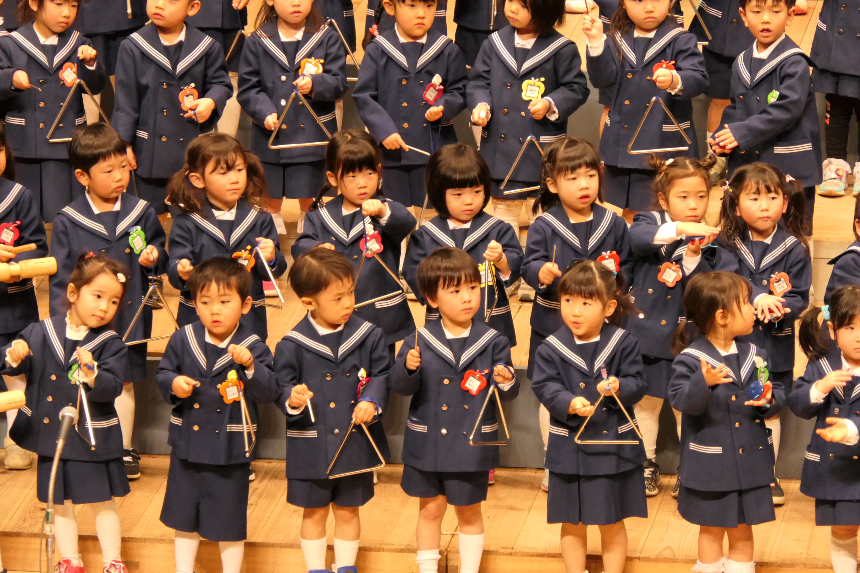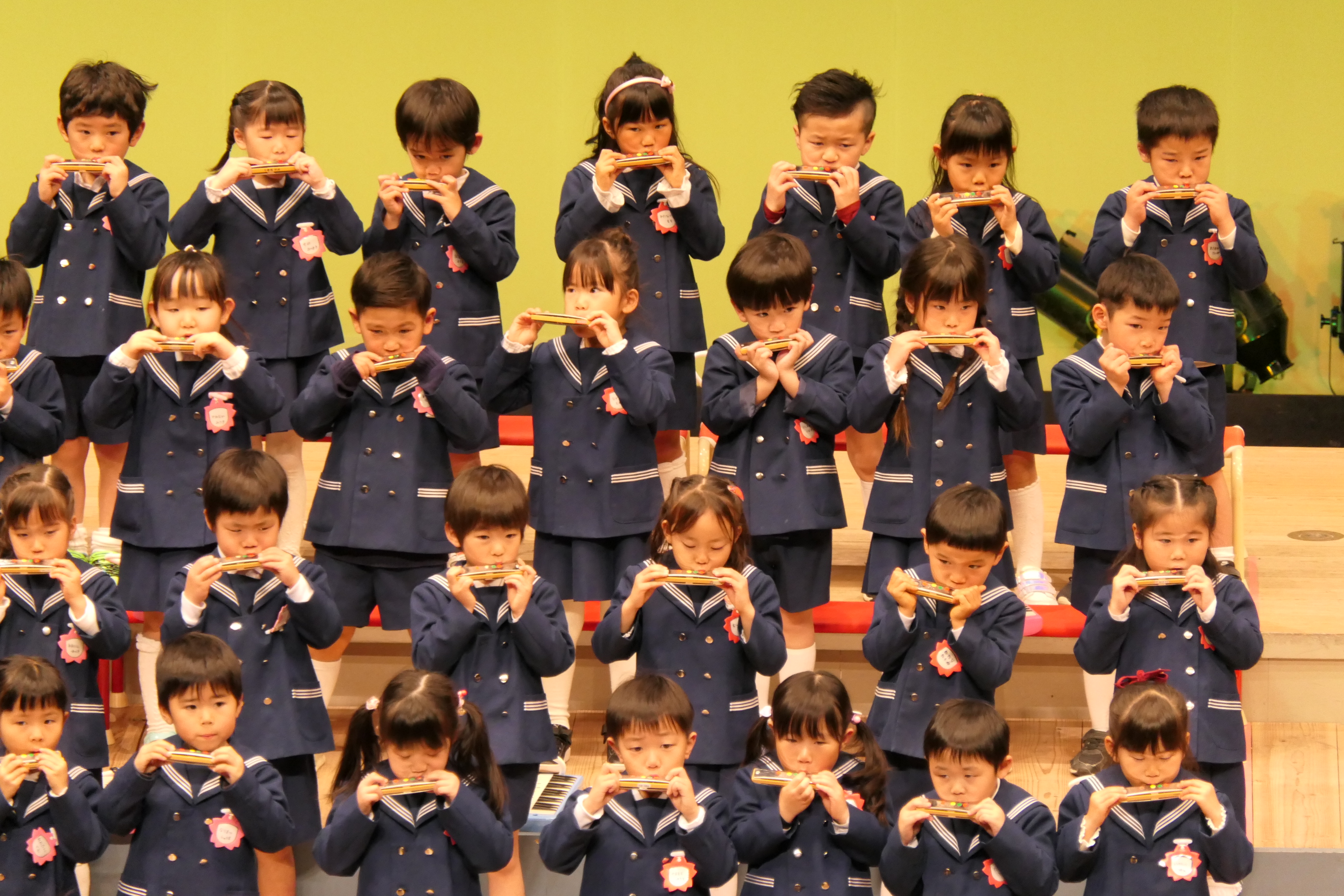 市民会館の大ホールで、みんな元気いっぱい歌い、リズムをとり、楽器を演奏しました。ちょっぴり緊張したけど、楽しかった!