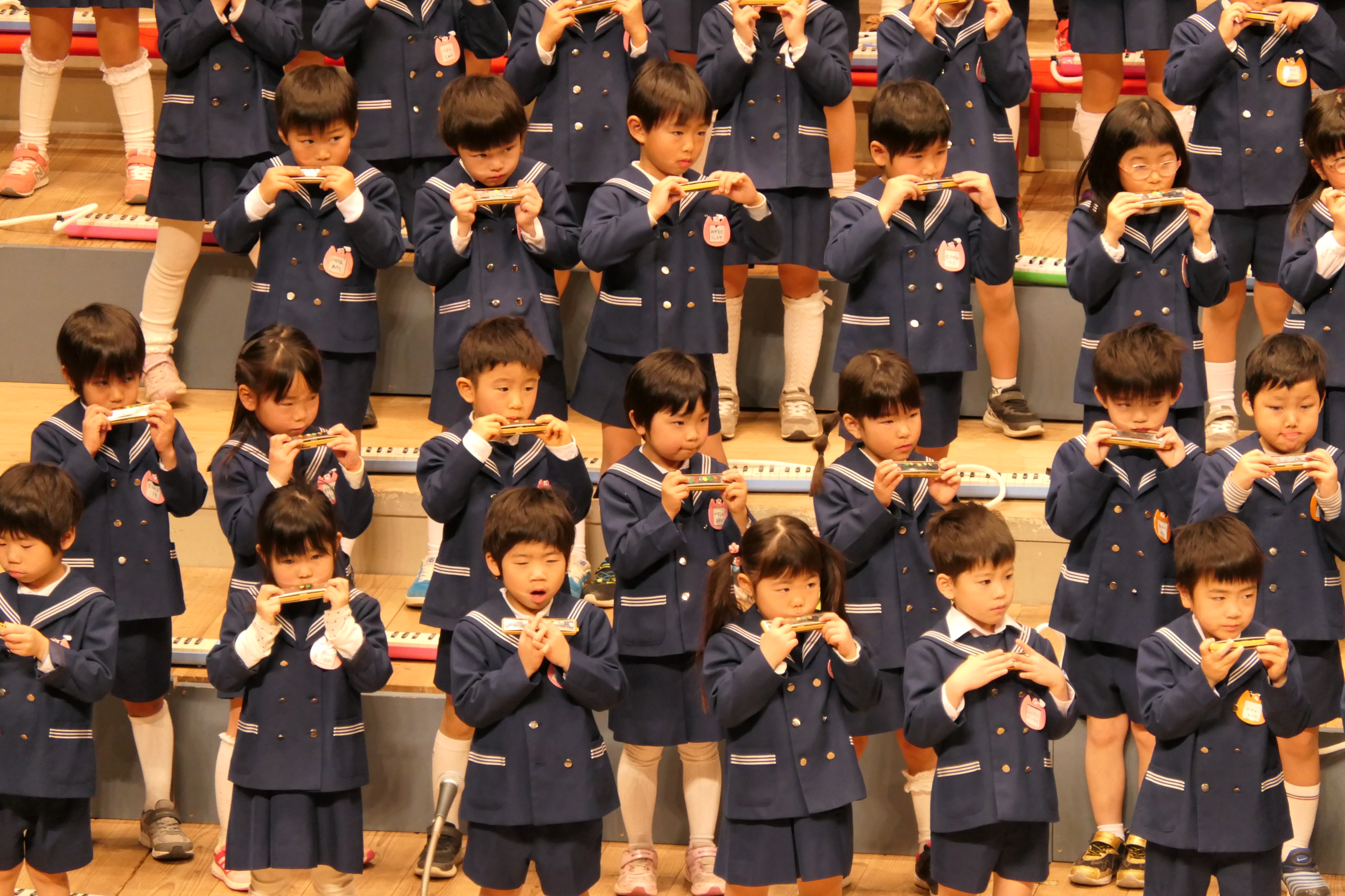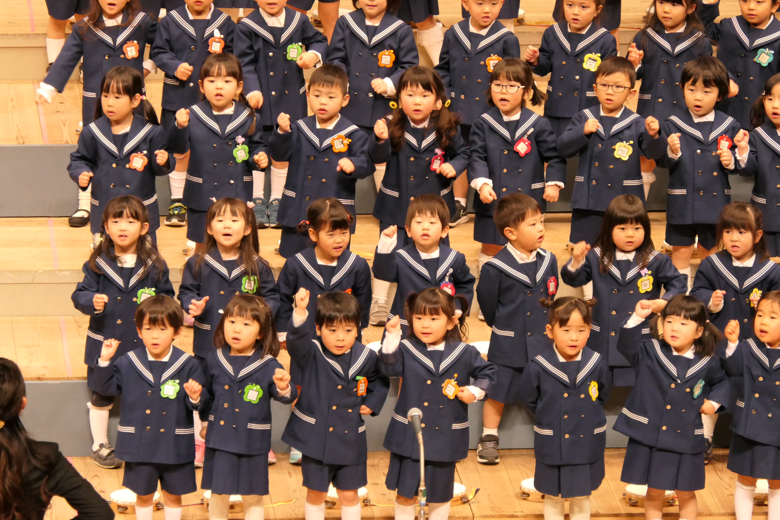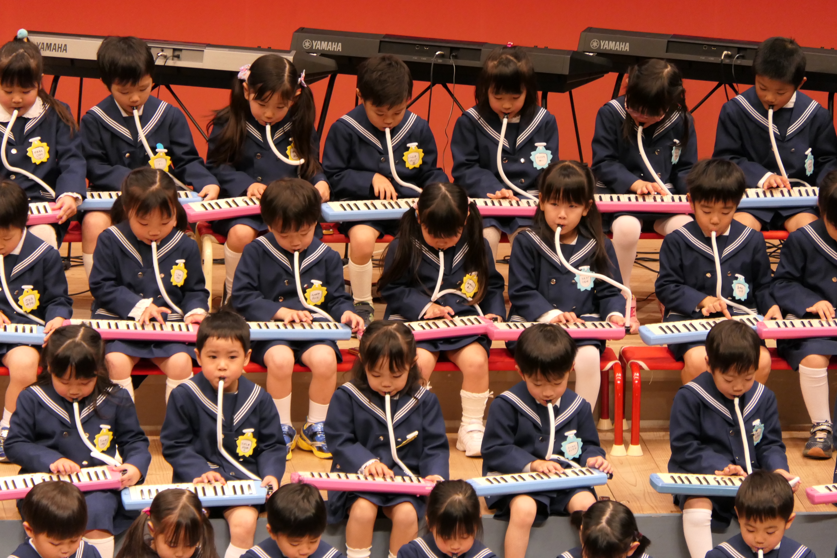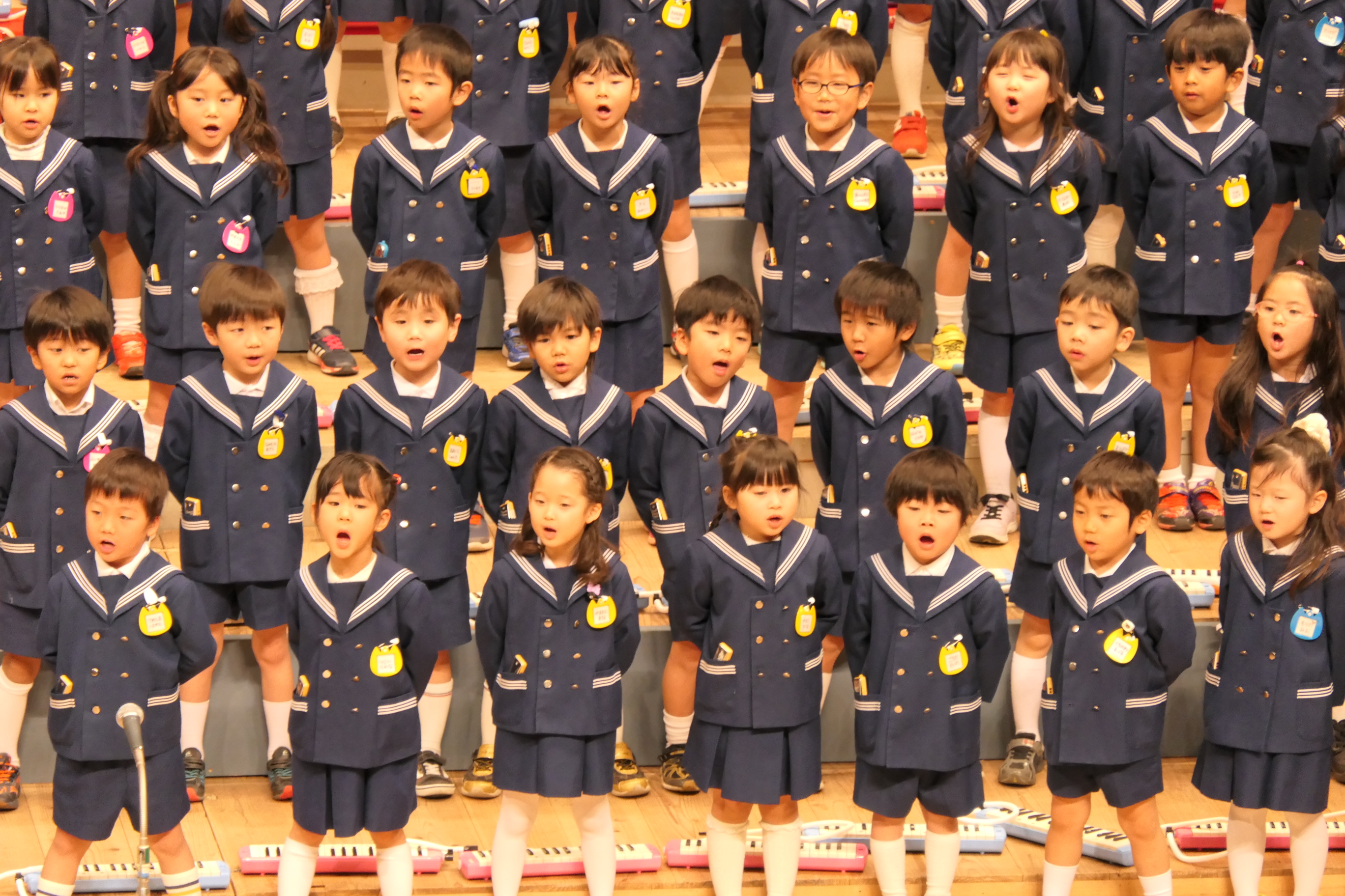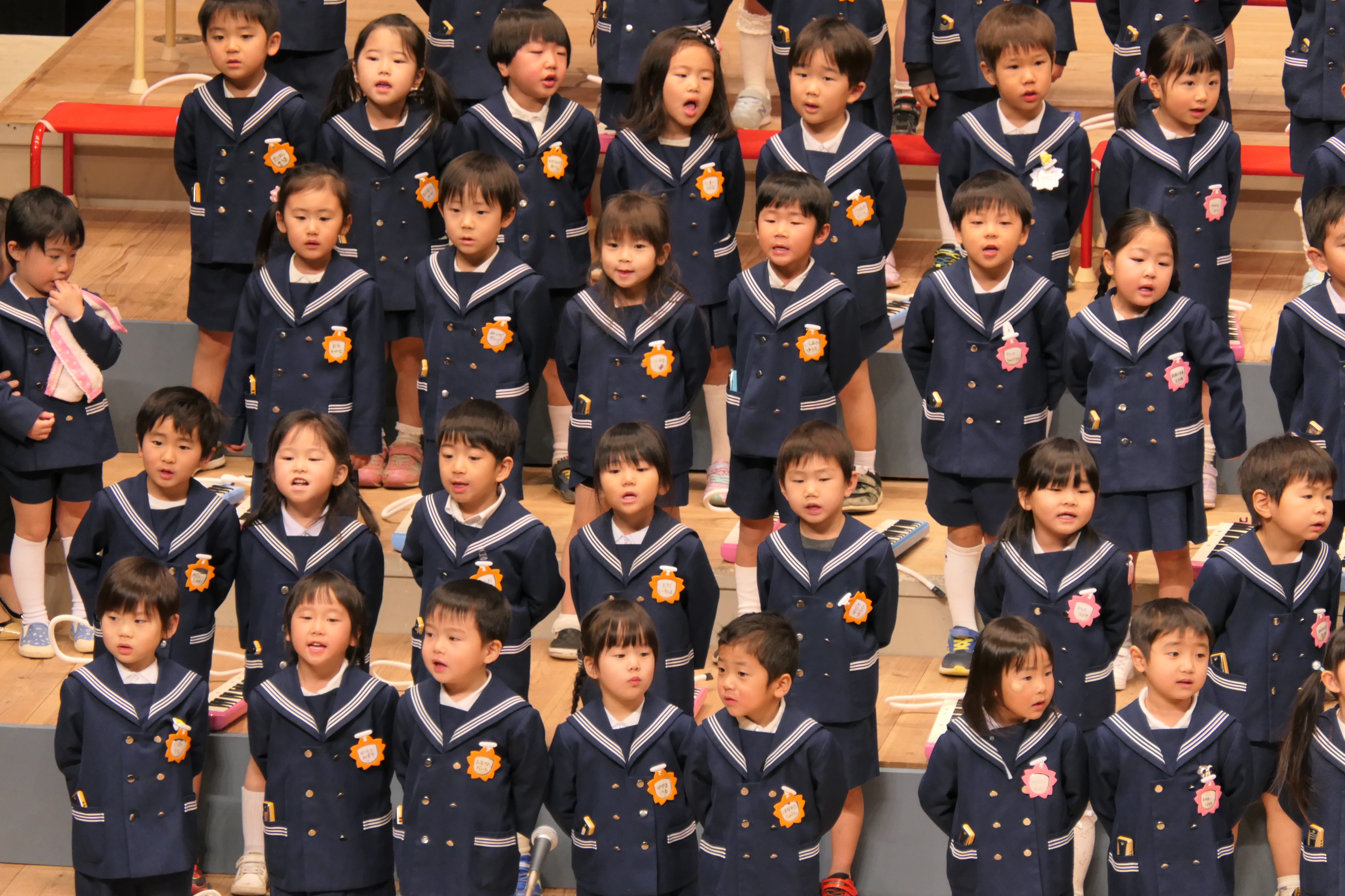 市民会館の大ホールで、みんな元気いっぱい歌い、リズムをとり、楽器を演奏しました。ちょっぴり緊張したけど、楽しかった!