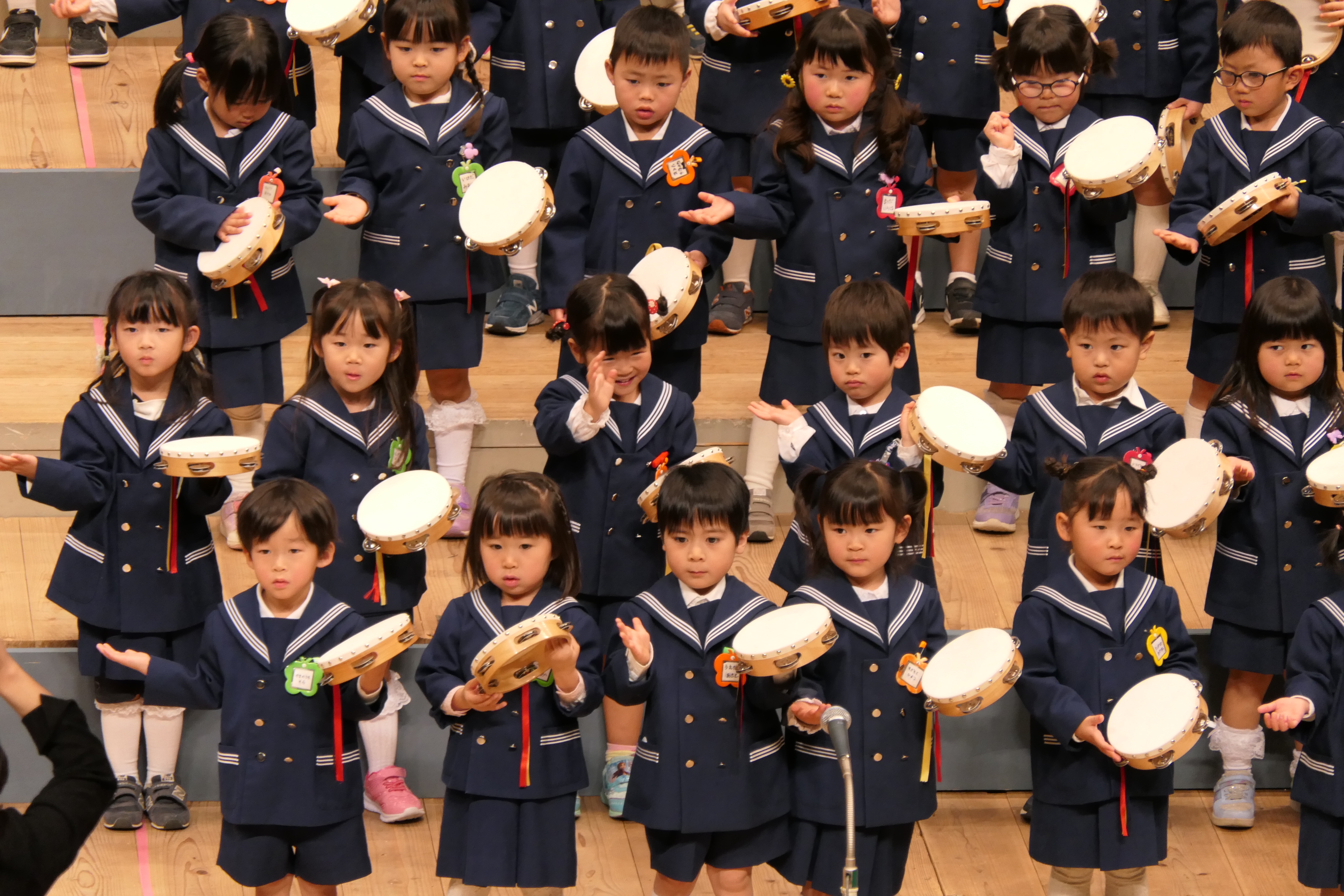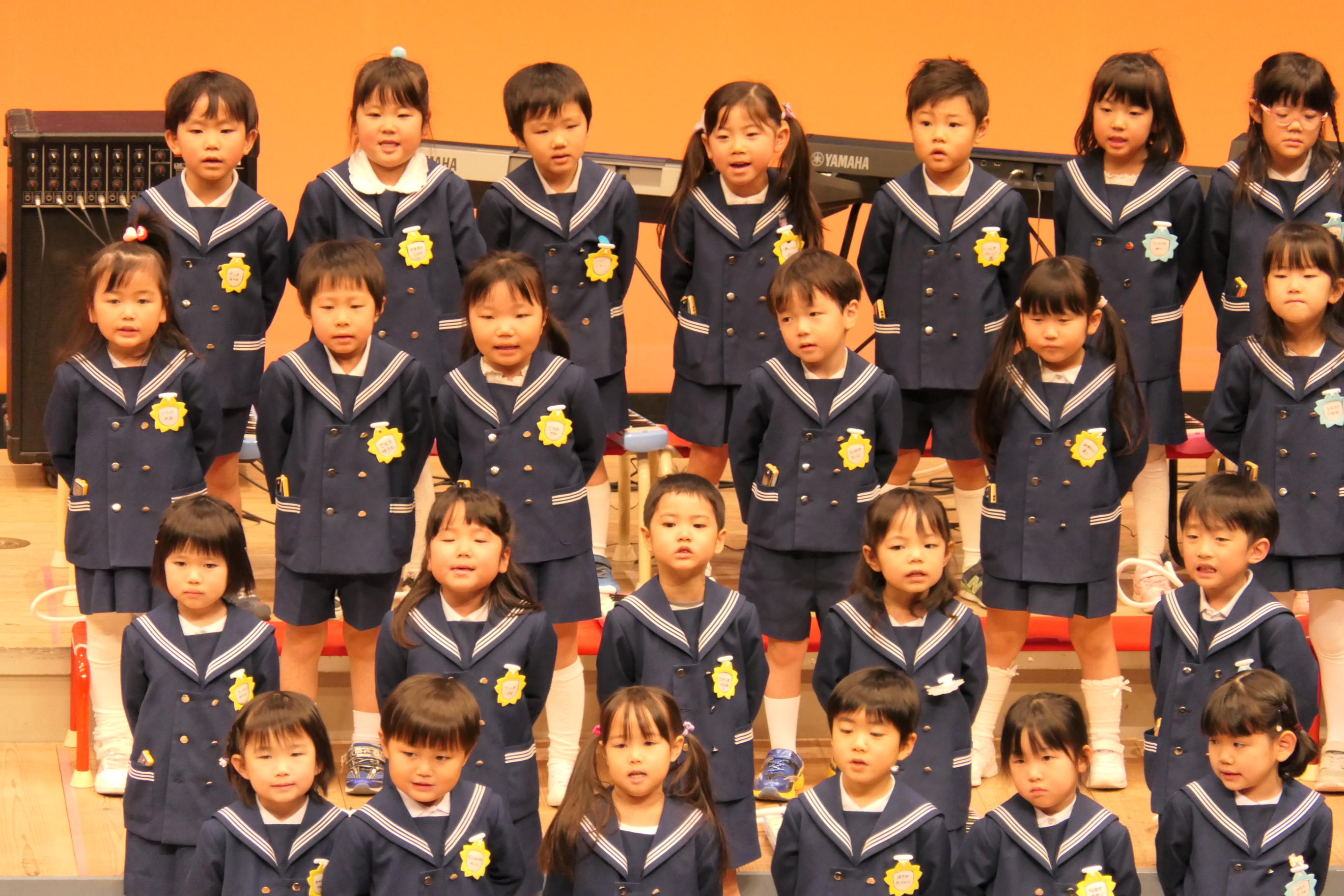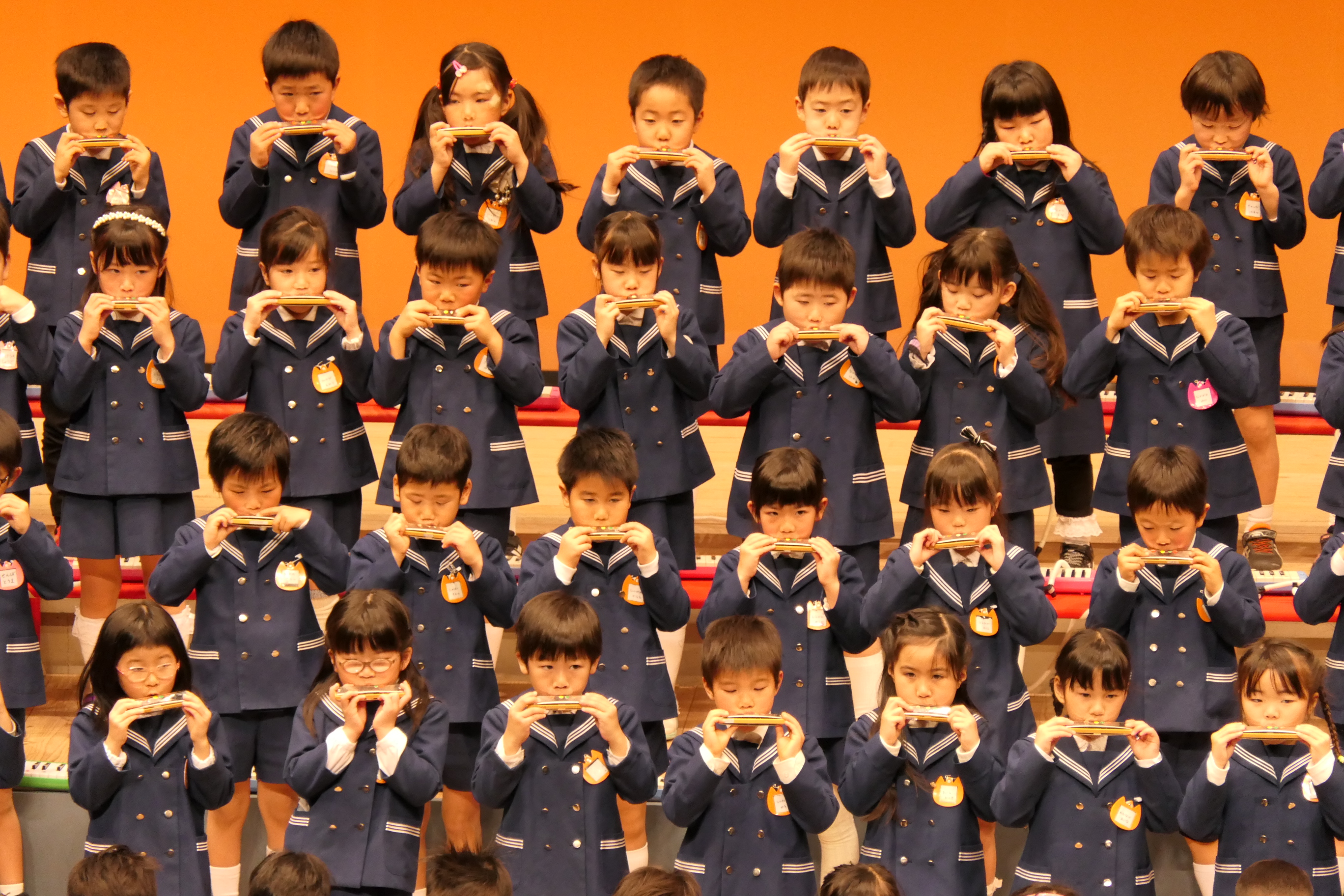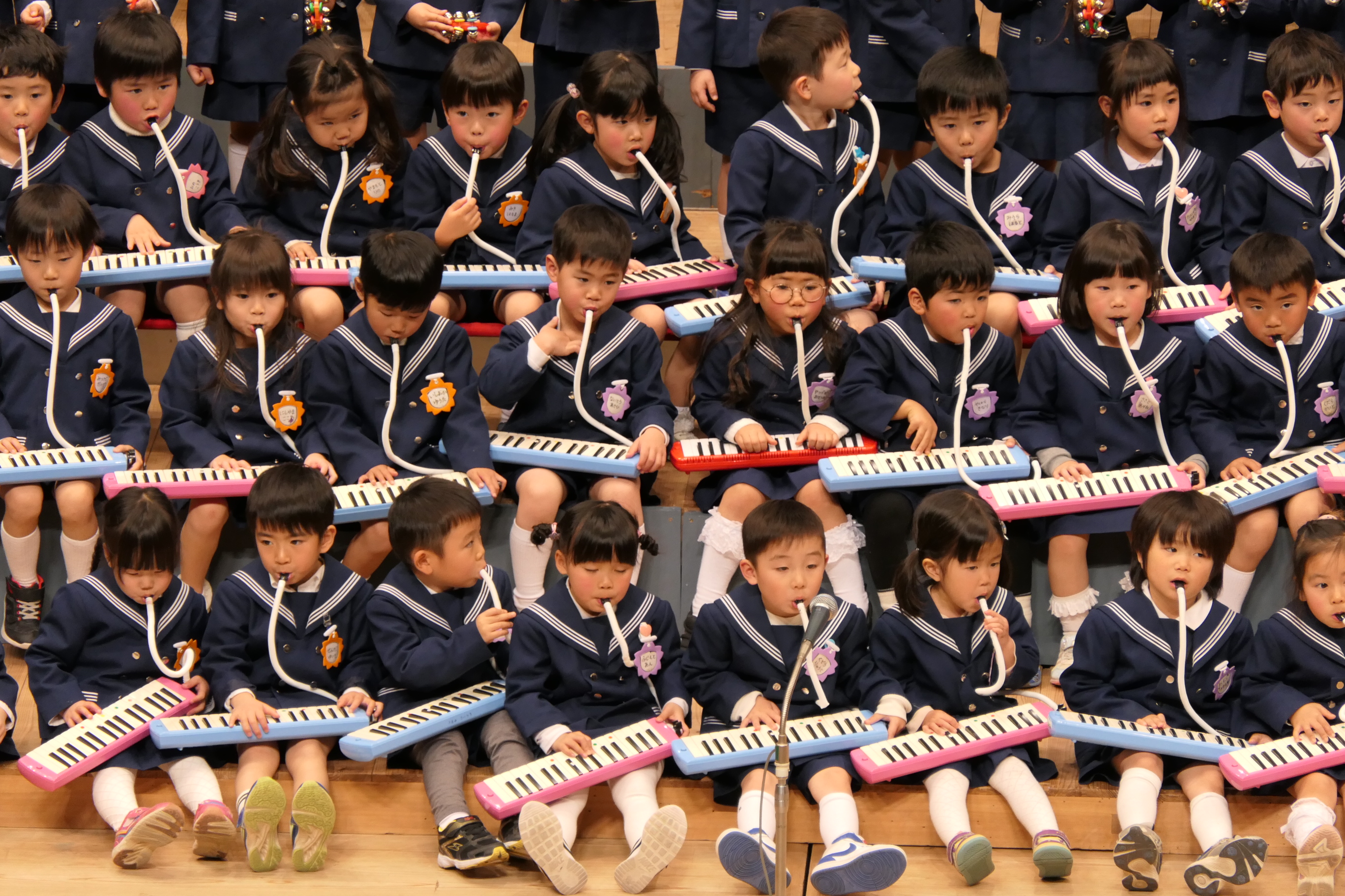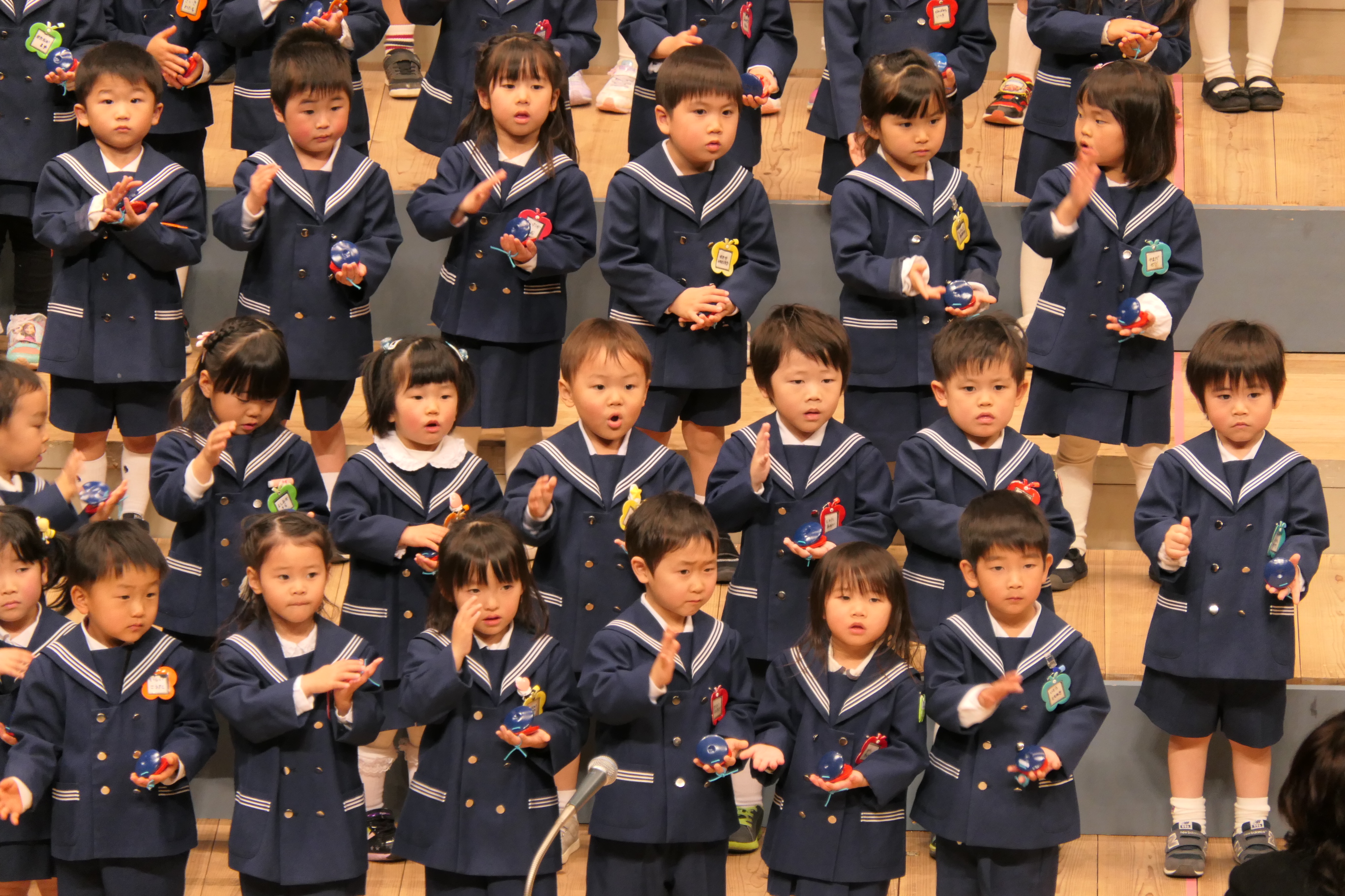 市民会館の大ホールで、みんな元気いっぱい歌い、リズムをとり、楽器を演奏しました。ちょっぴり緊張したけど、楽しかった!