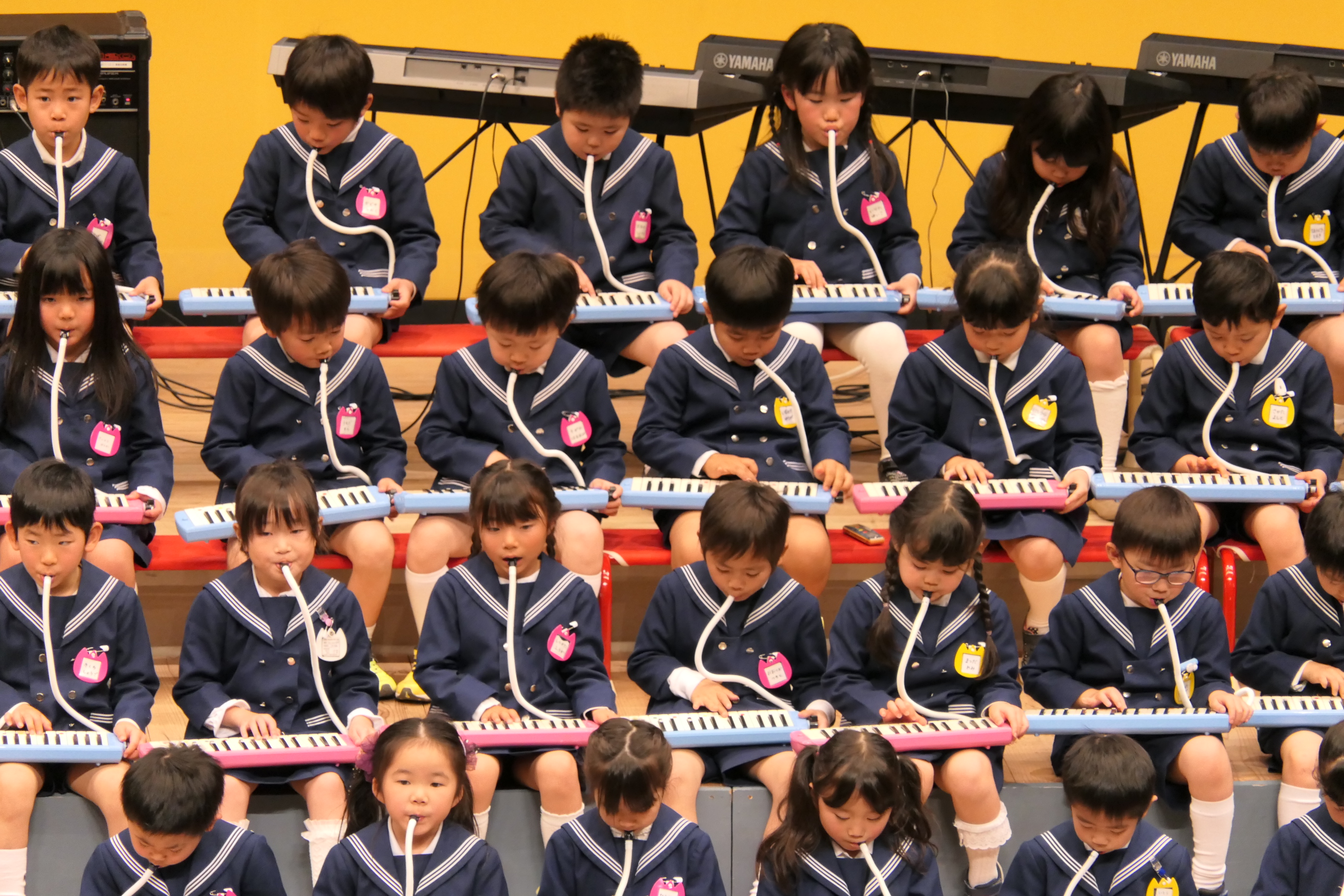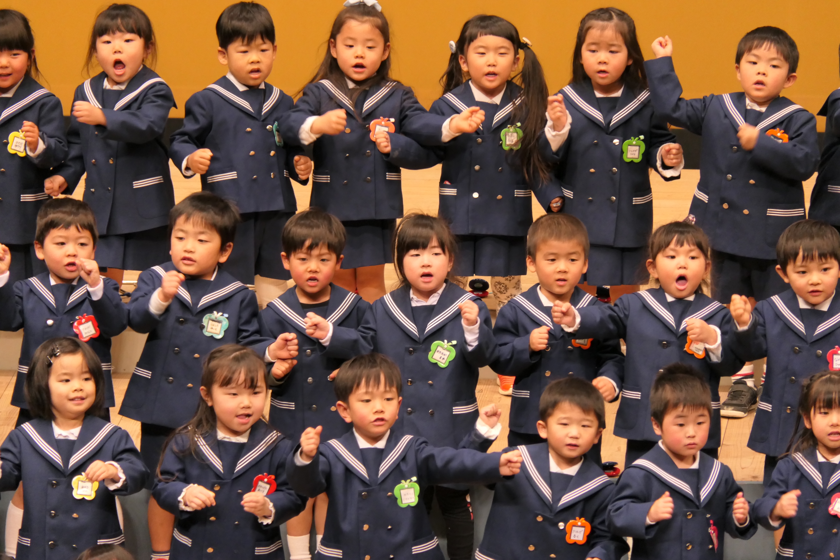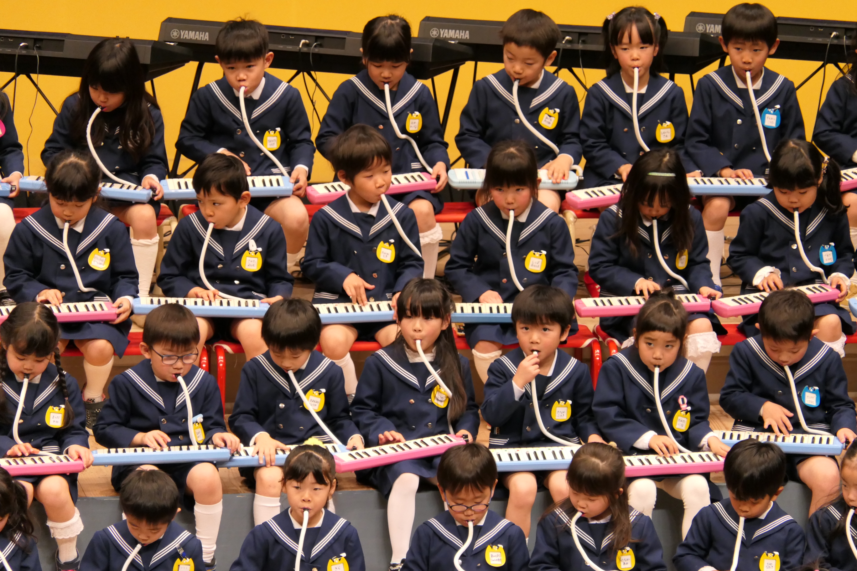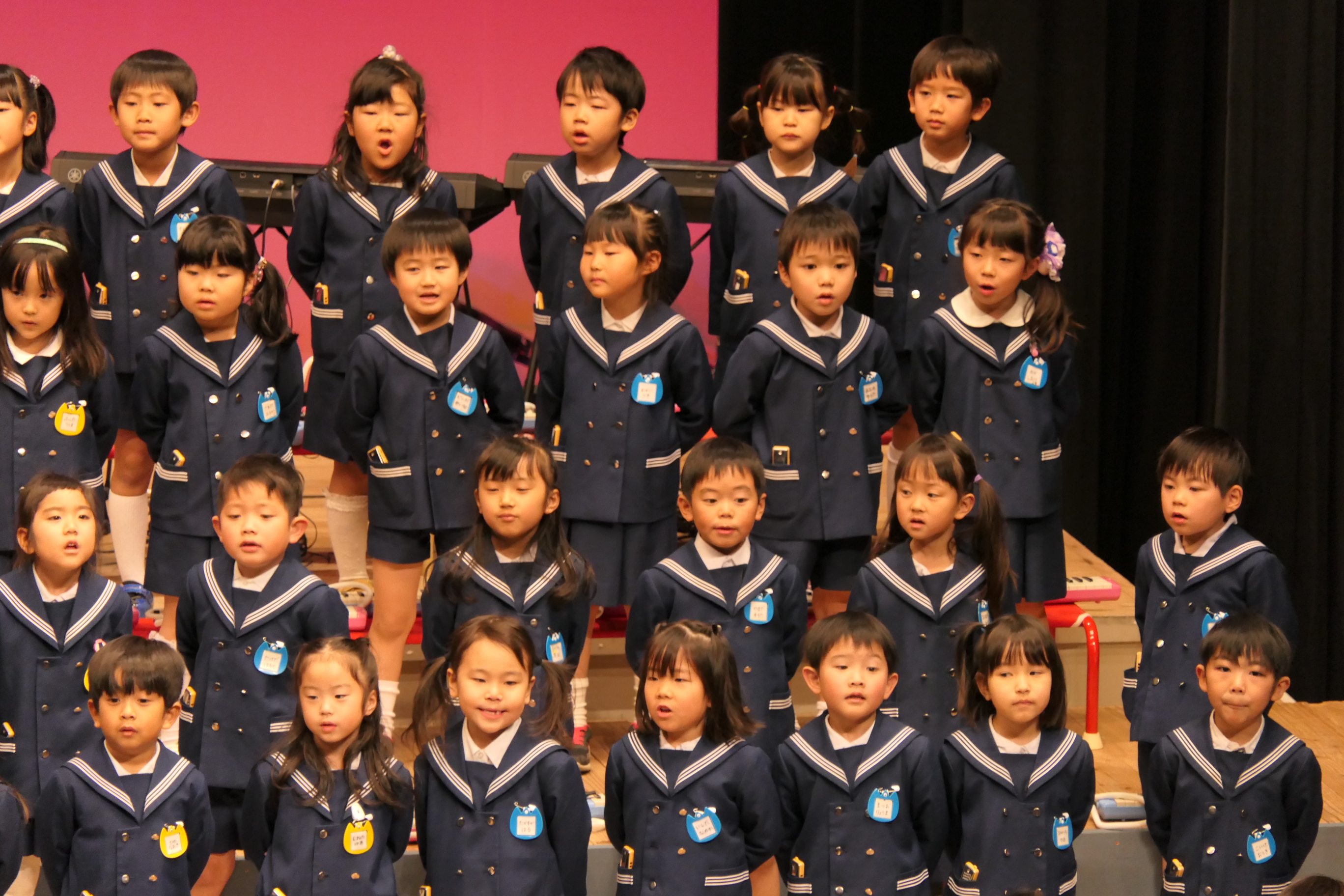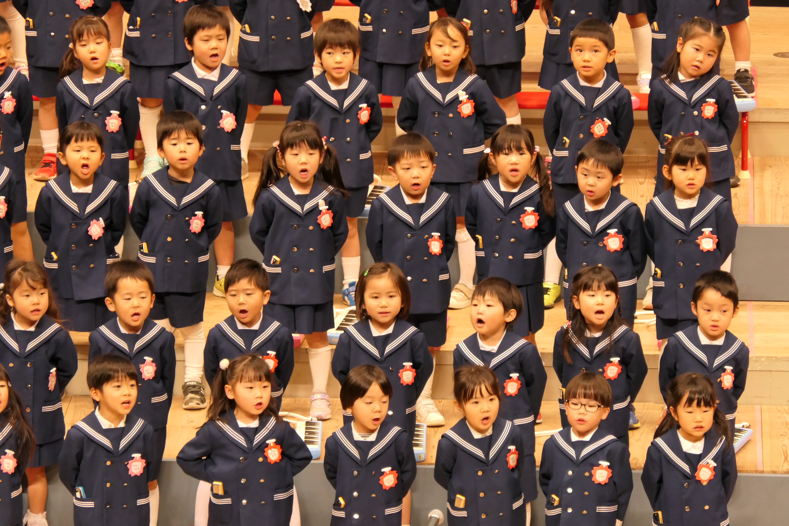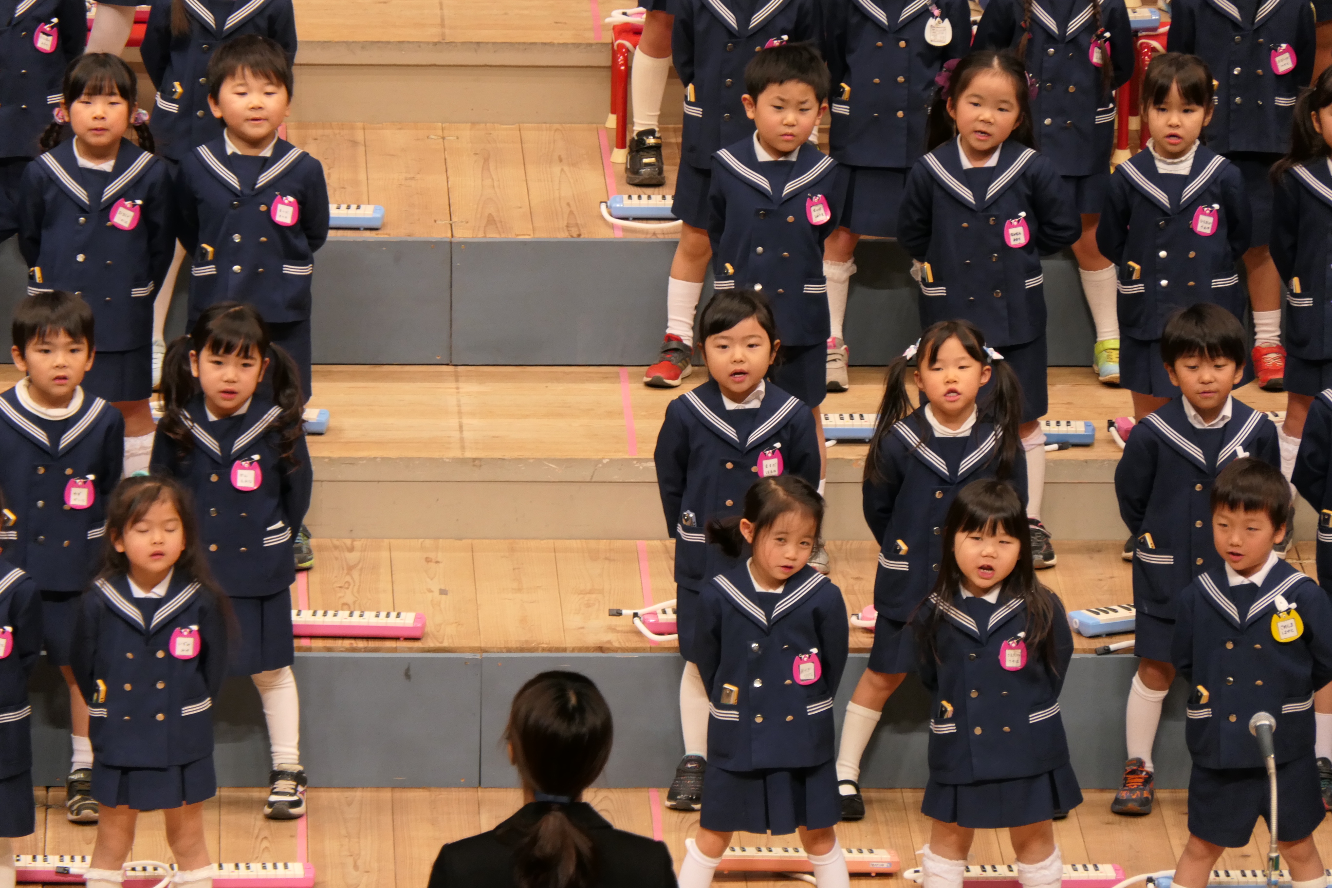 市民会館の大ホールで、みんな元気いっぱい歌い、リズムをとり、楽器を演奏しました。ちょっぴり緊張したけど、楽しかった!