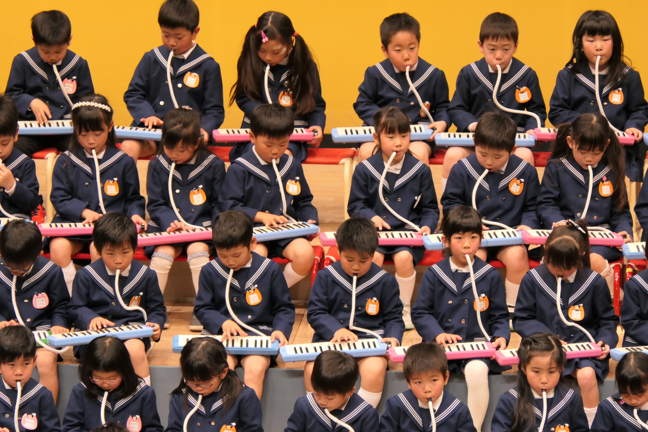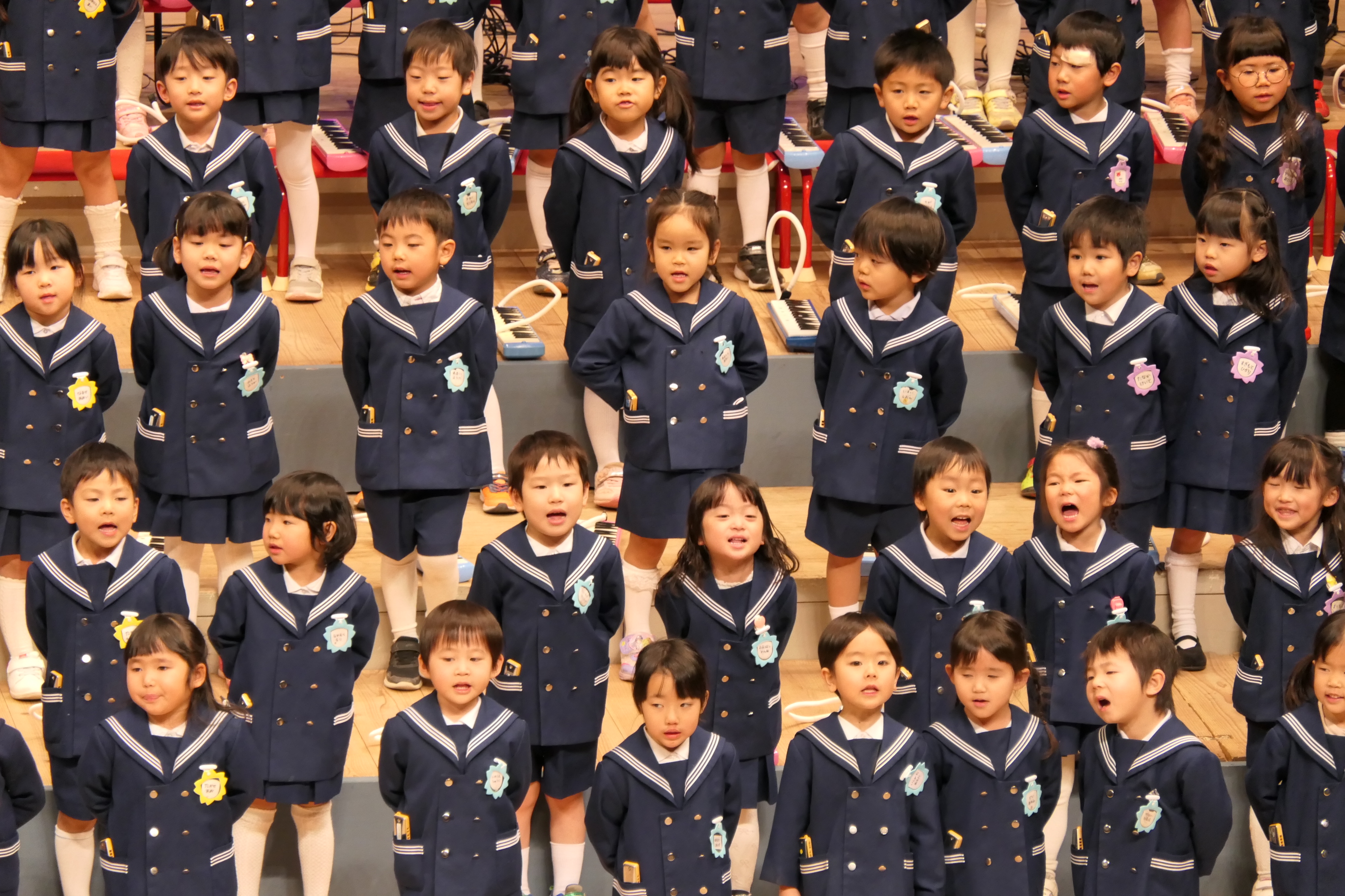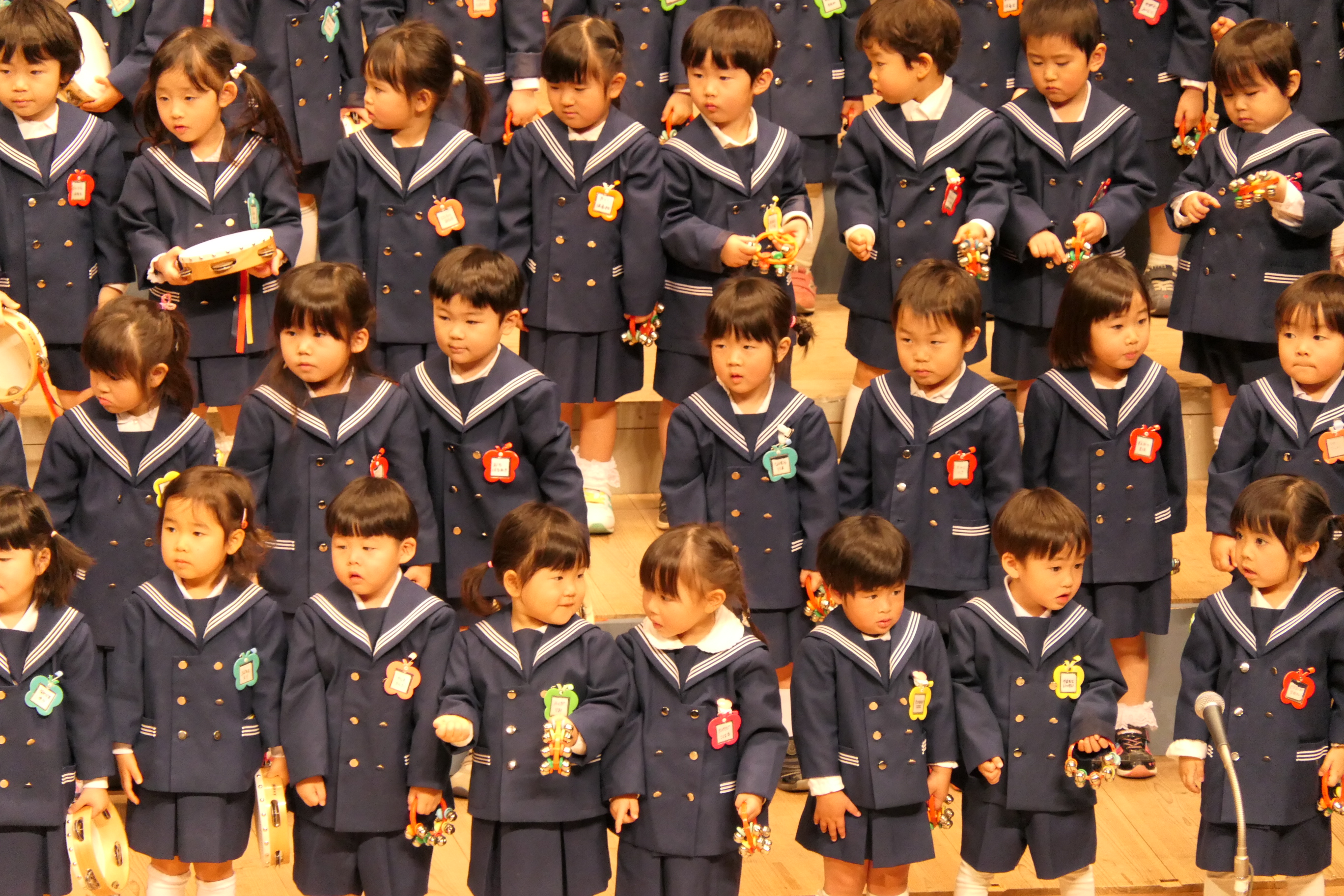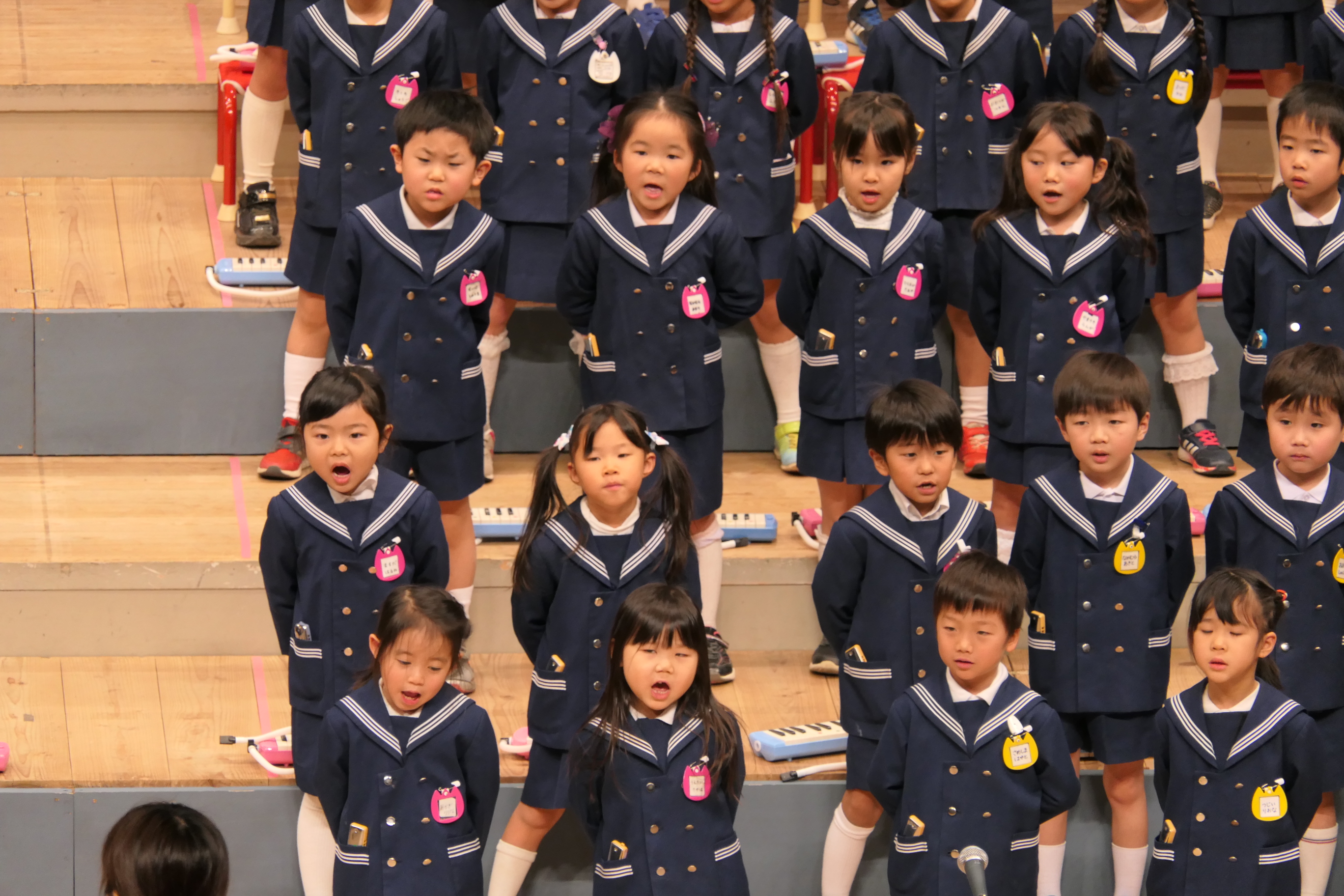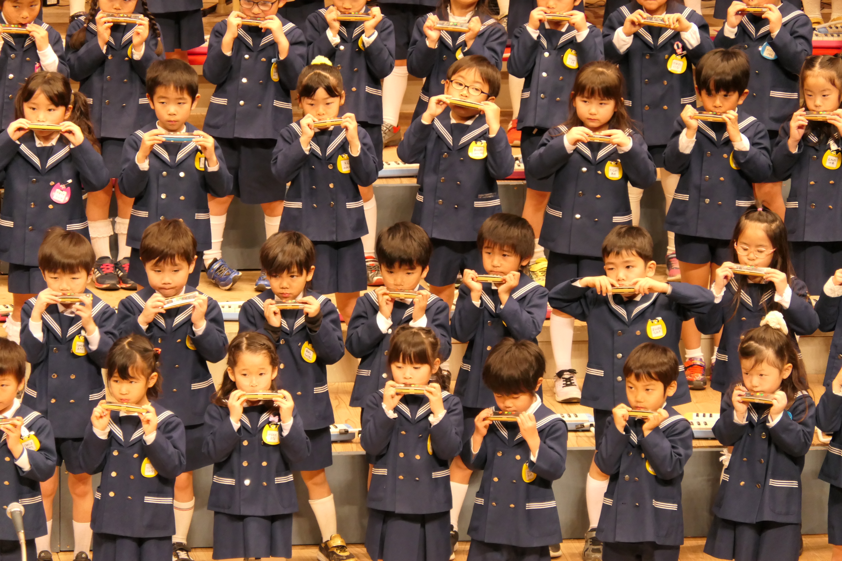 市民会館の大ホールで、みんな元気いっぱい歌い、リズムをとり、楽器を演奏しました。ちょっぴり緊張したけど、楽しかった!