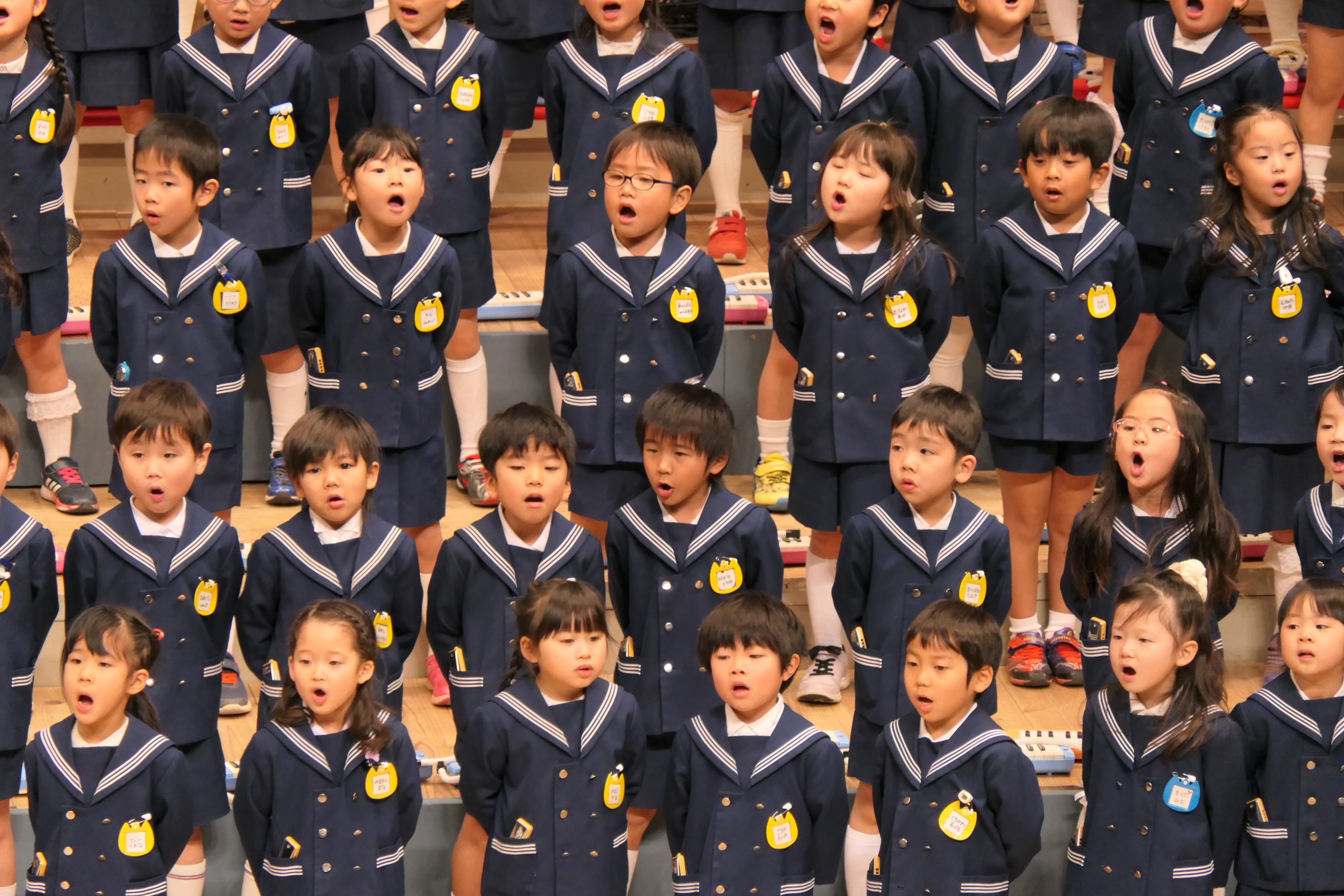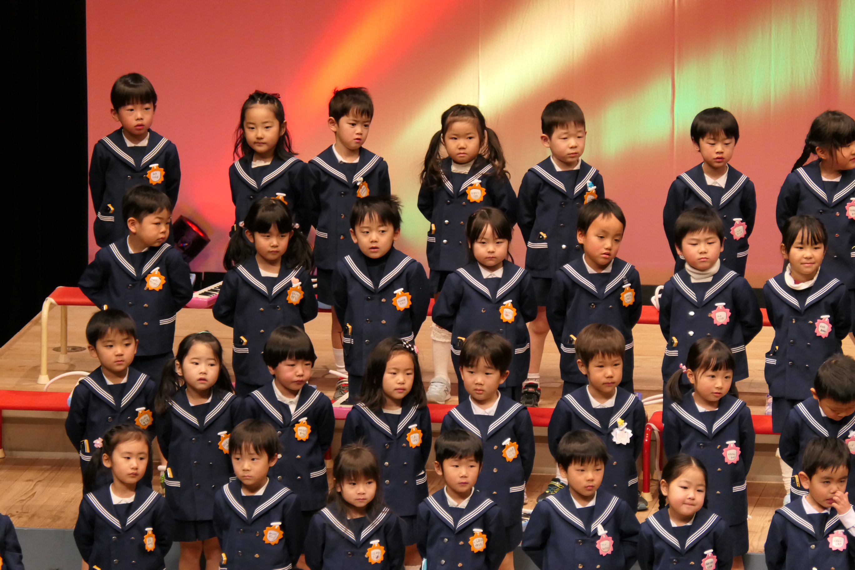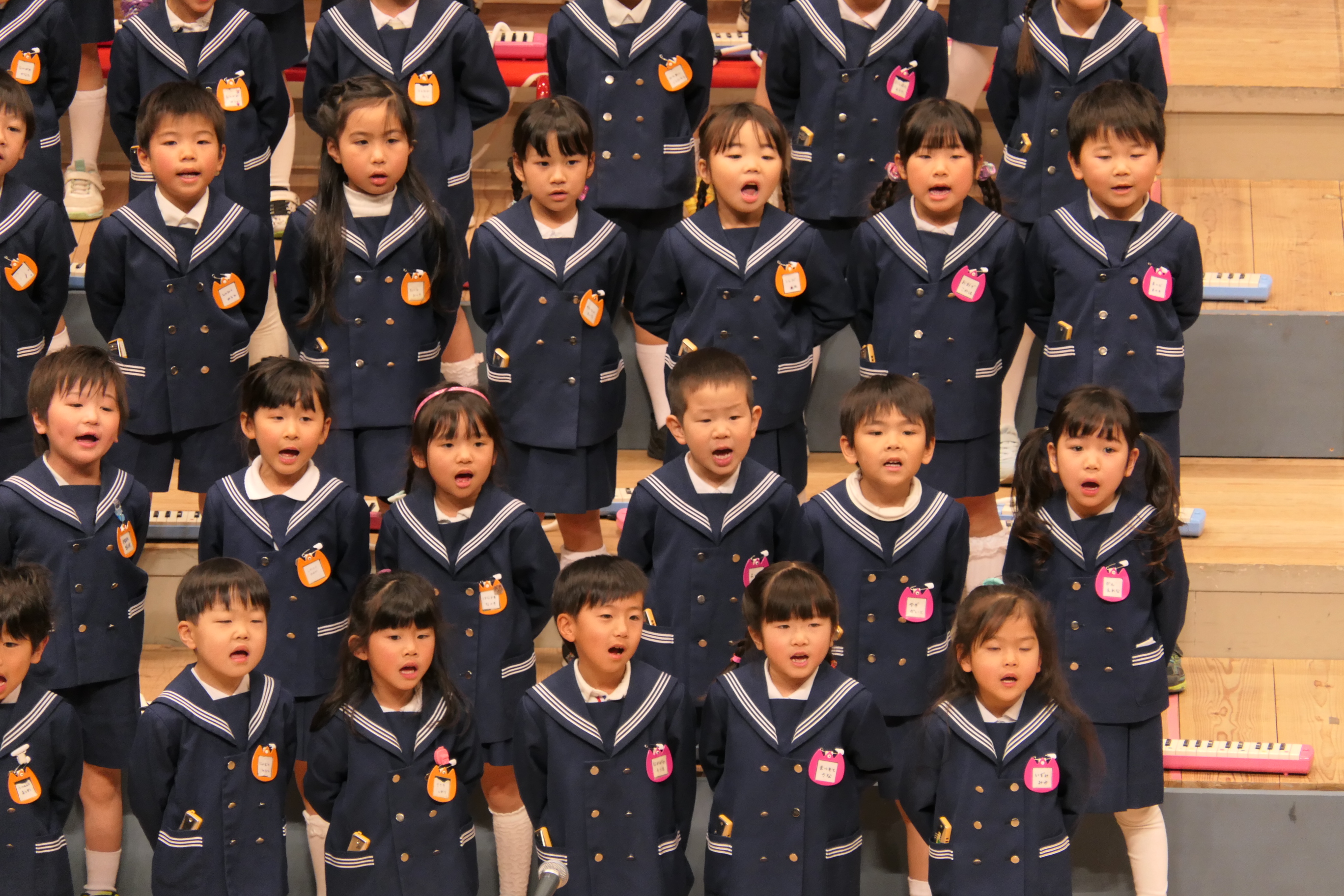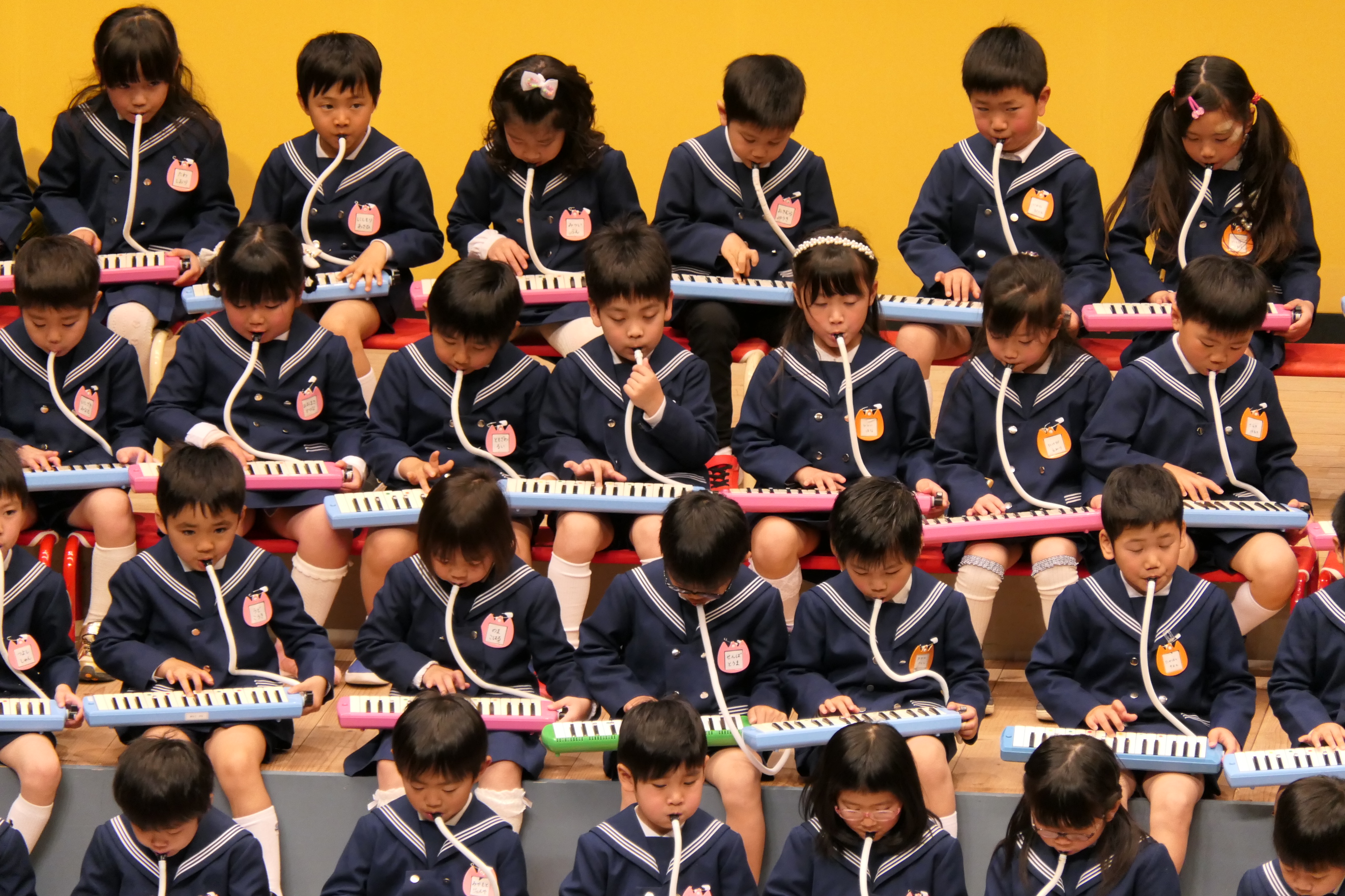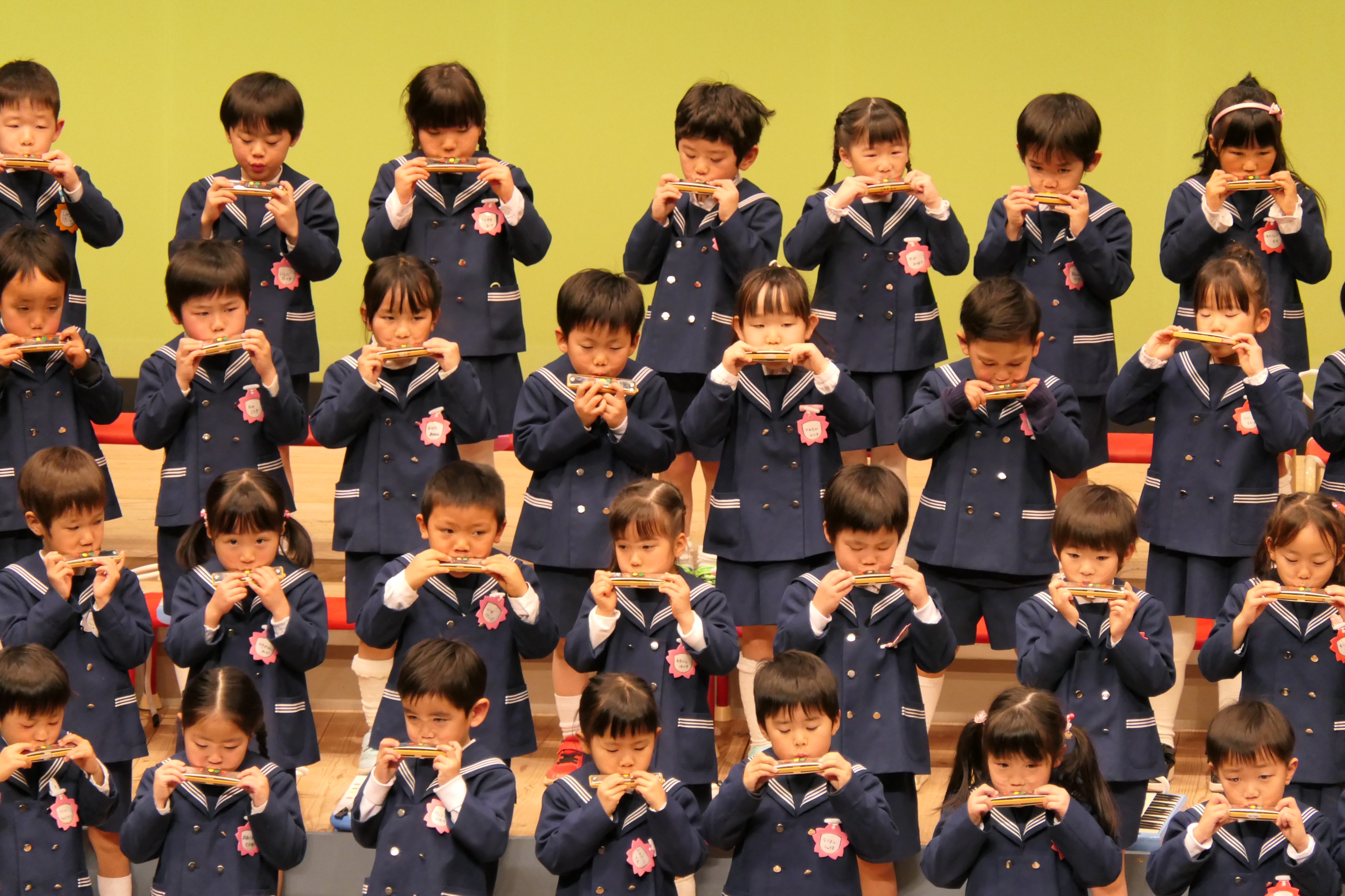 市民会館の大ホールで、みんな元気いっぱい歌い、リズムをとり、楽器を演奏しました。ちょっぴり緊張したけど、楽しかった!