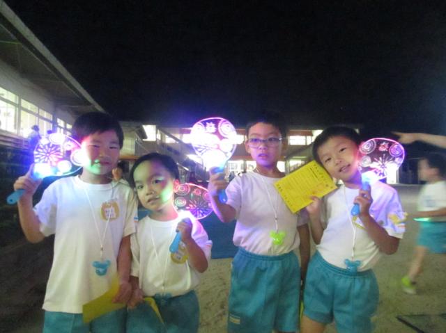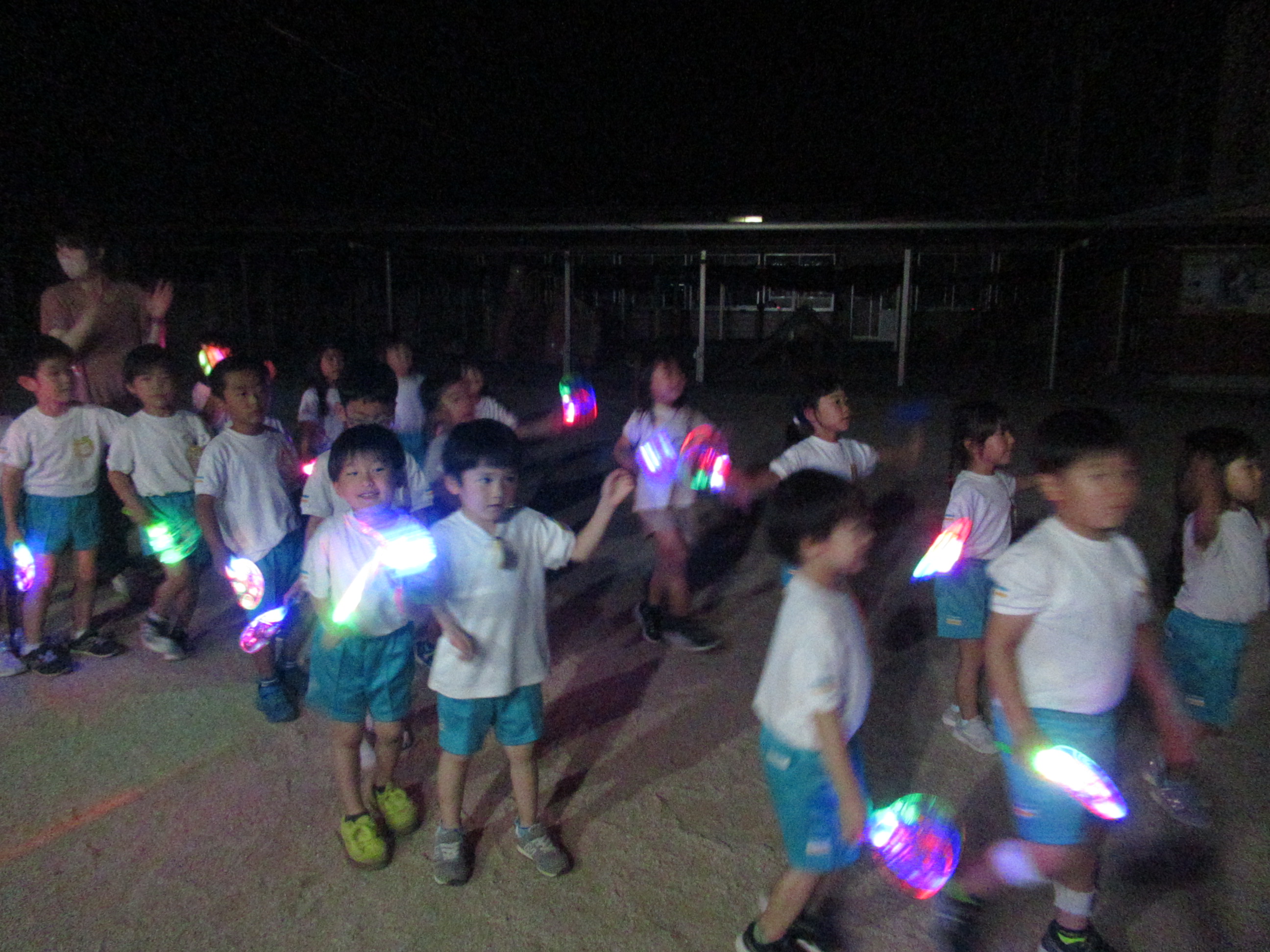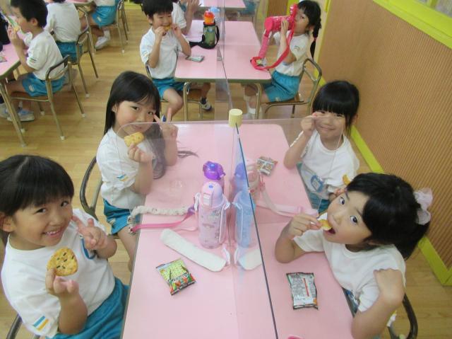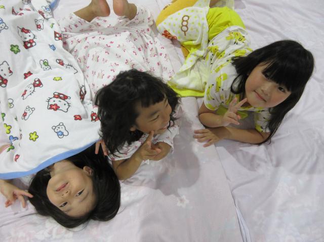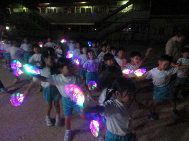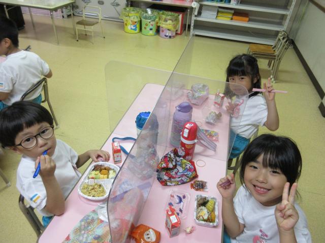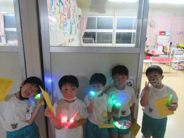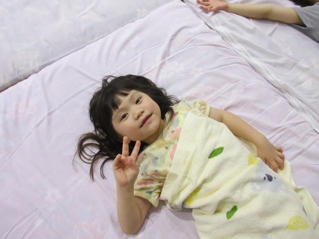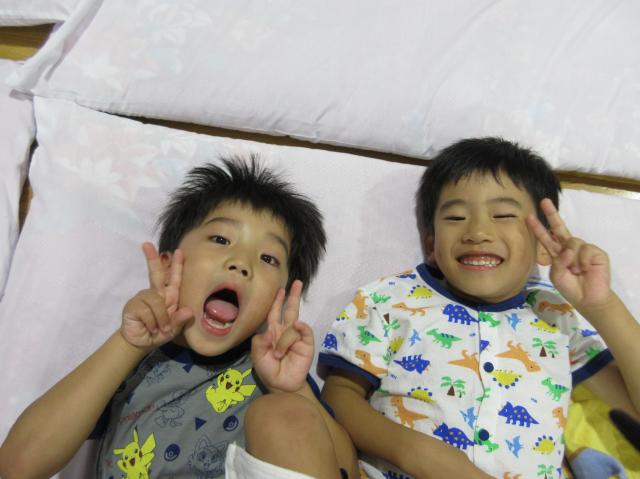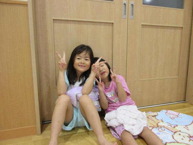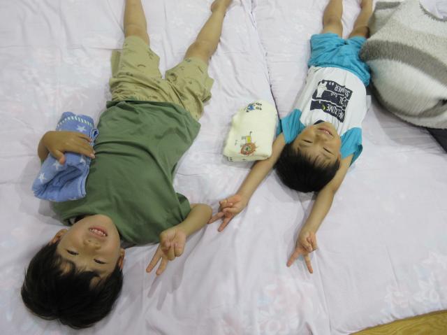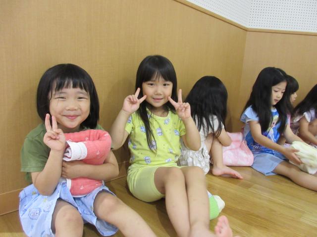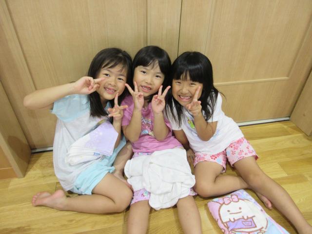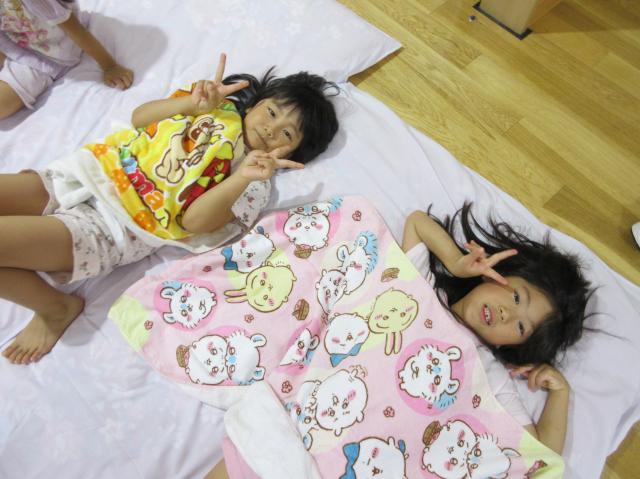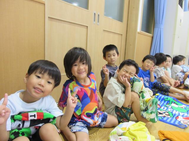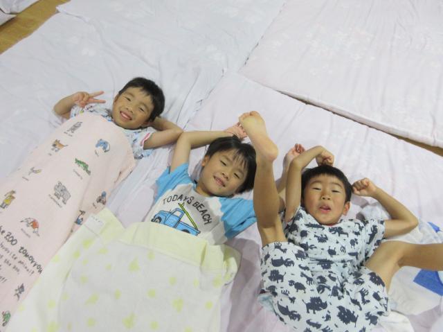 幼稚園に泊まって、みんなとご飯を食べて、寝て、遊んで、楽しかった!