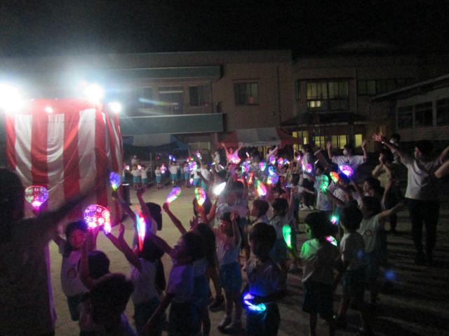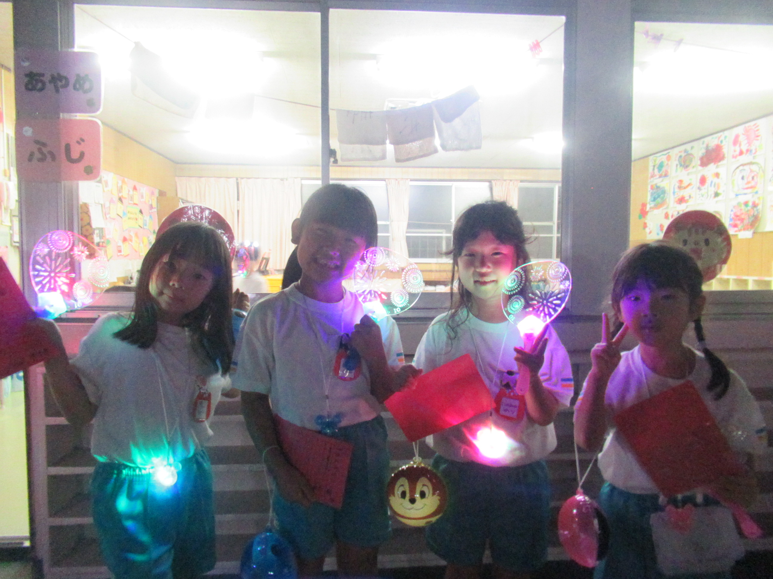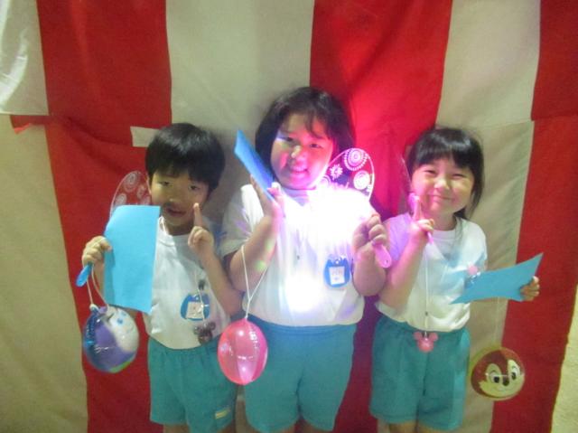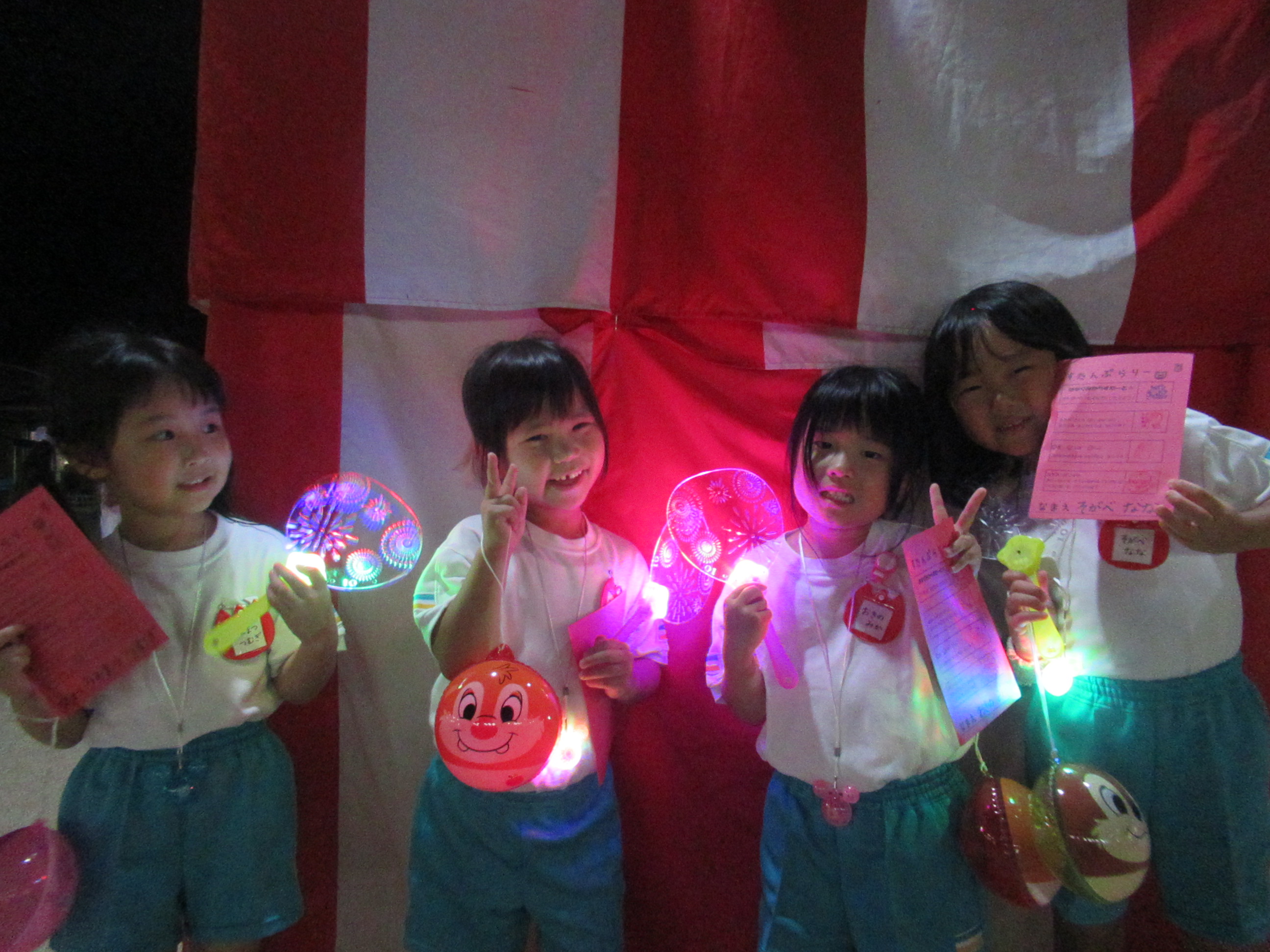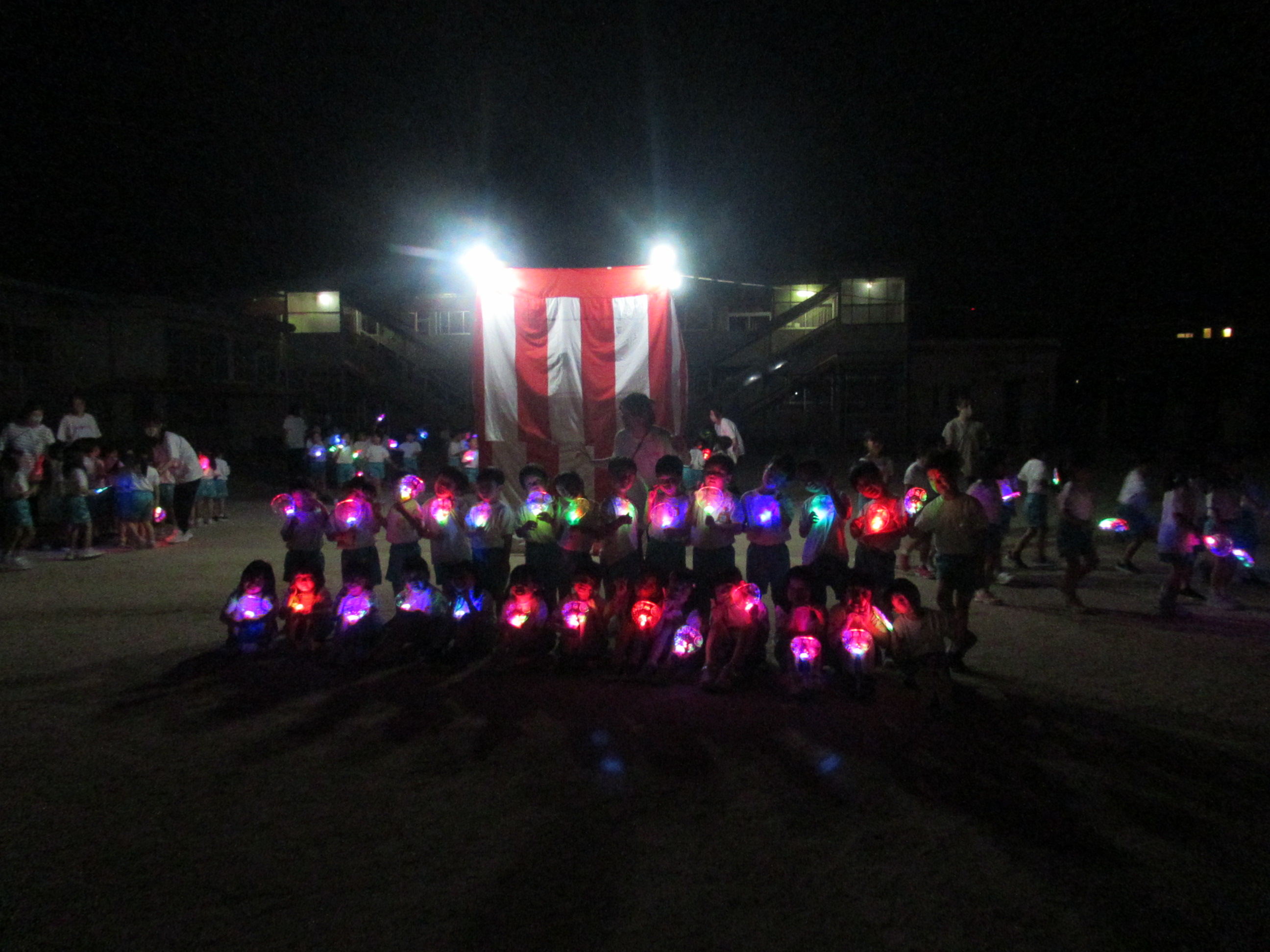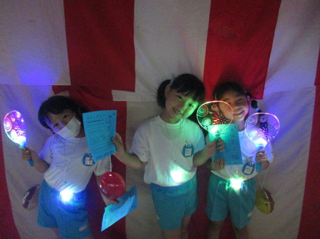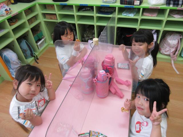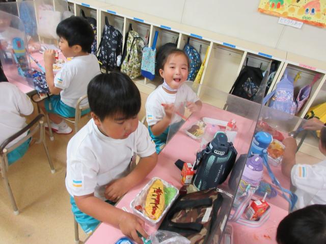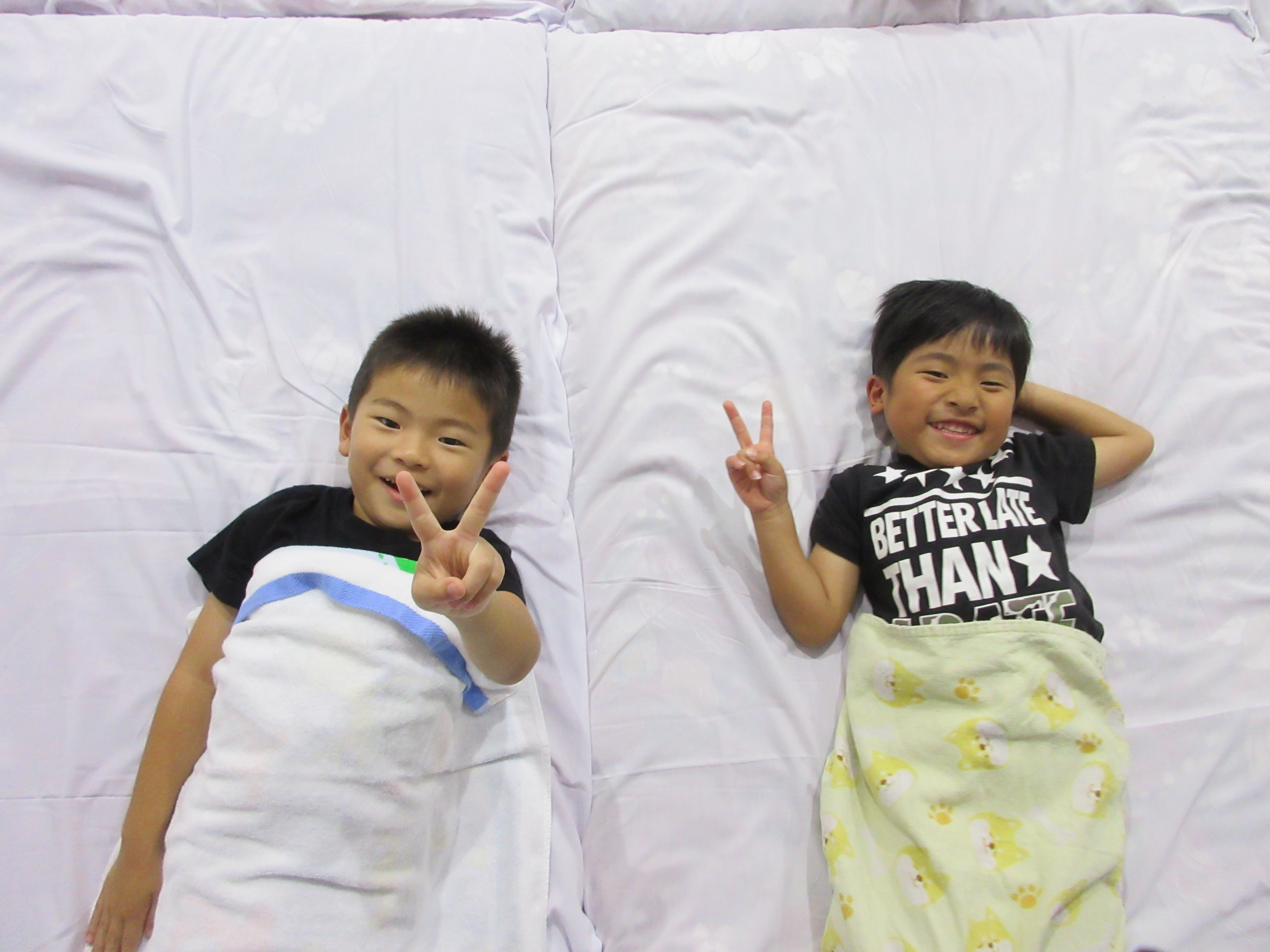 幼稚園に泊まって、みんなとご飯を食べて、寝て、遊んで、楽しかった!