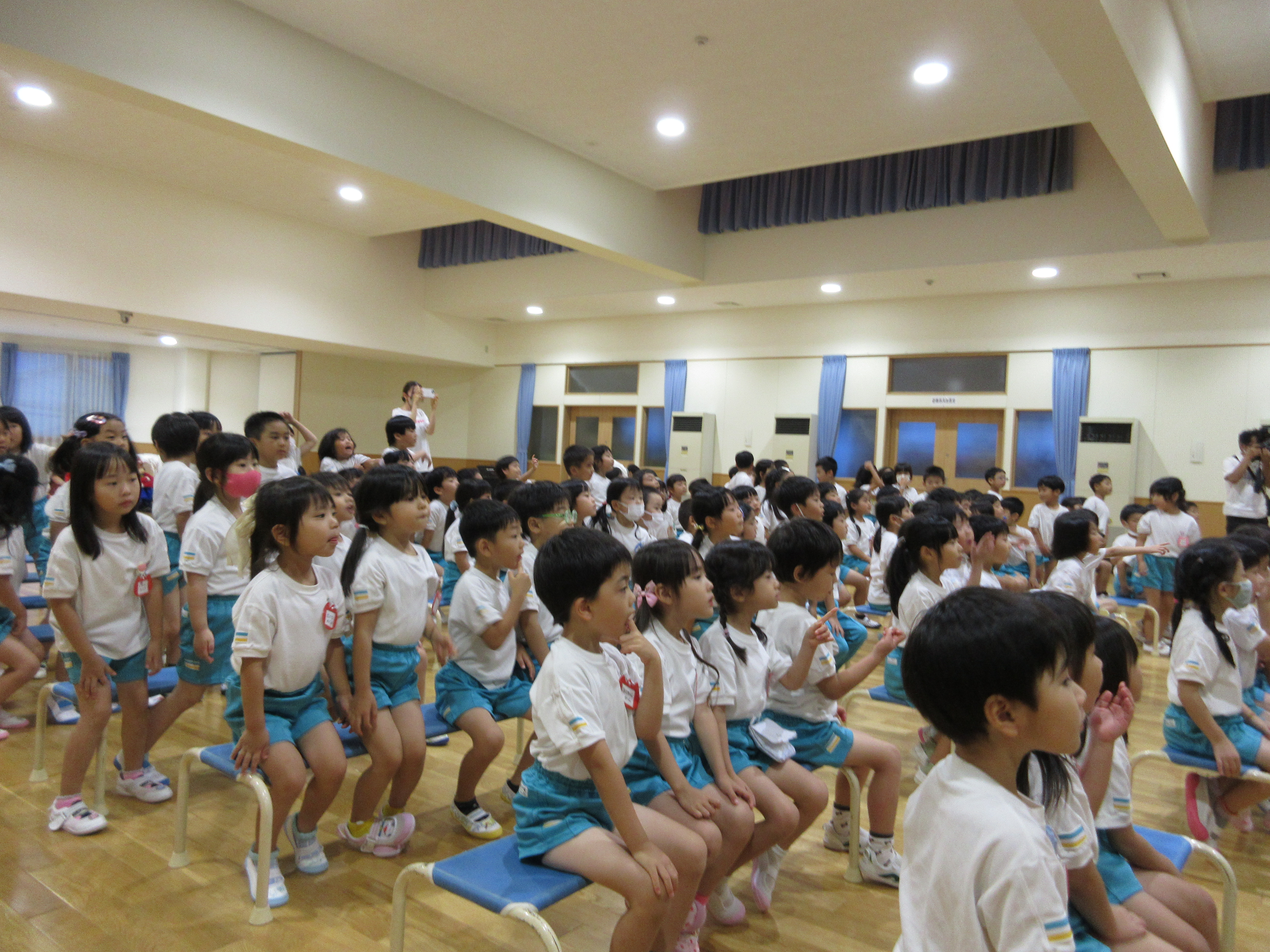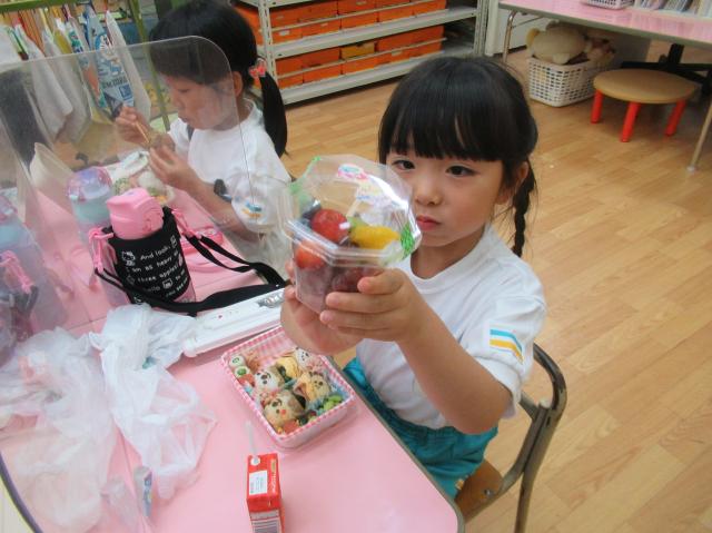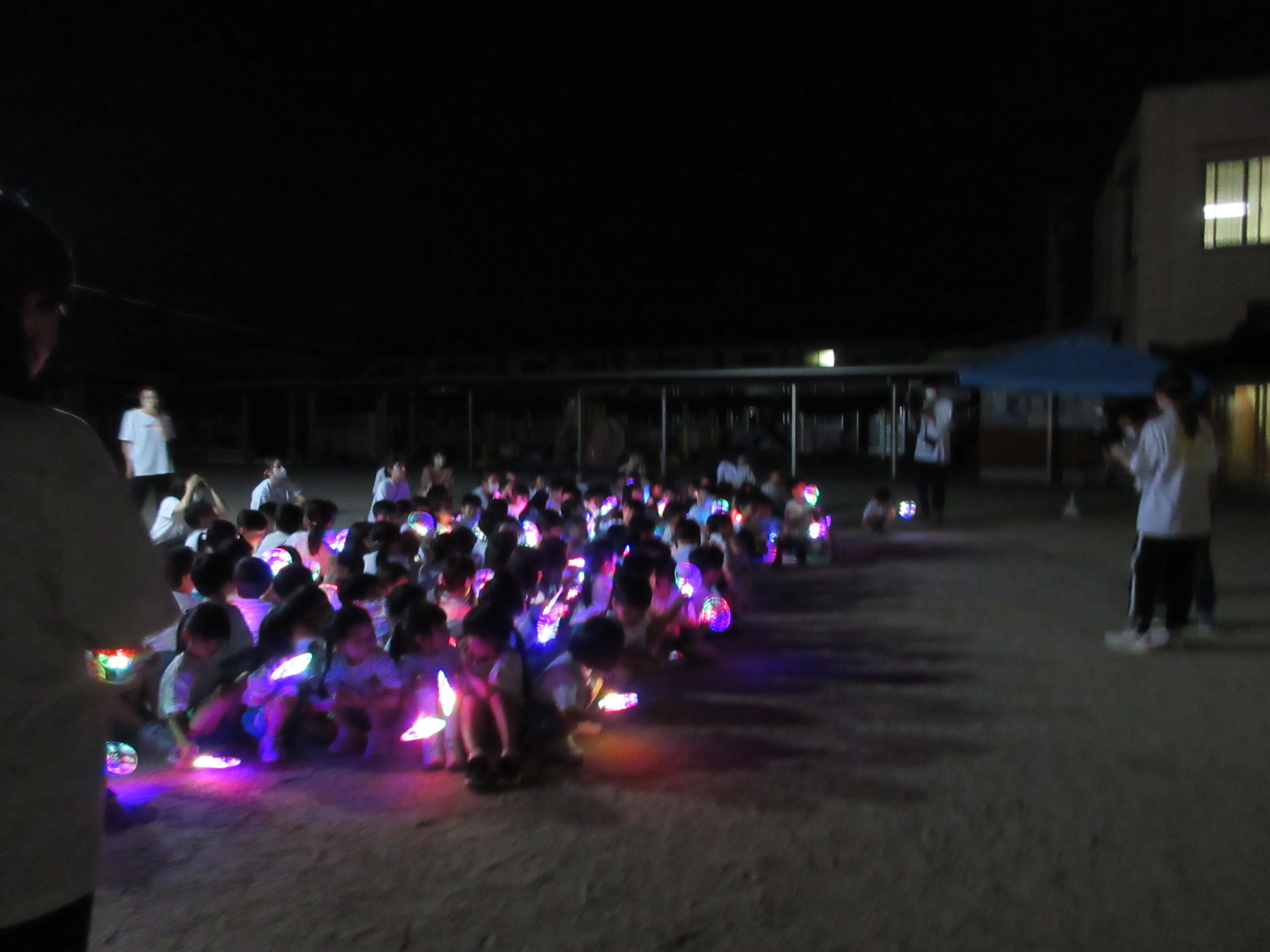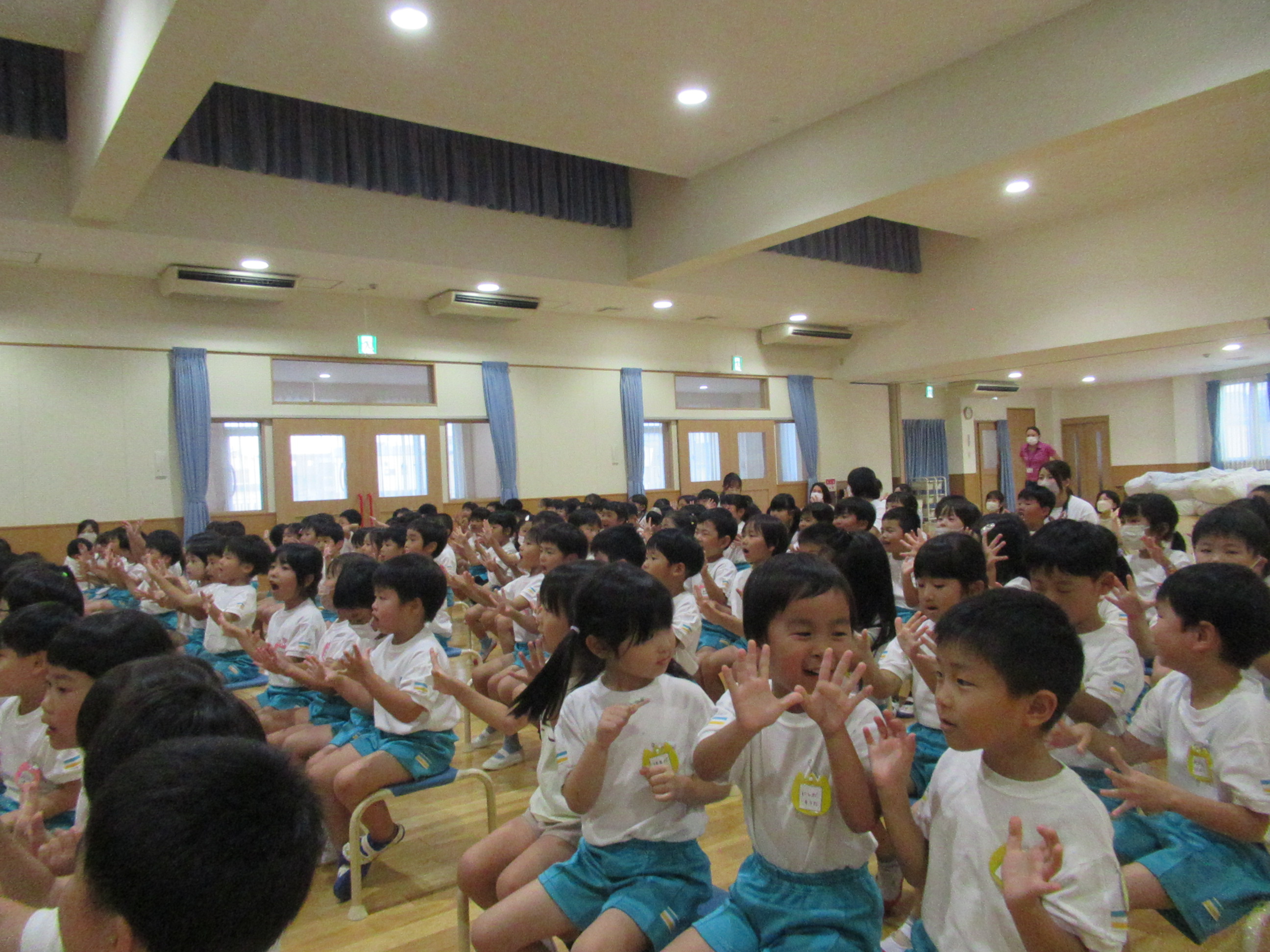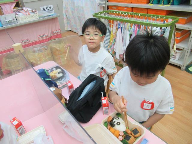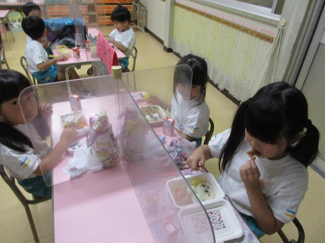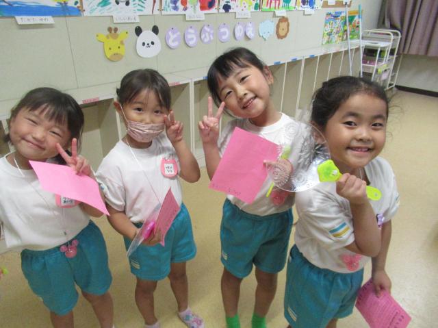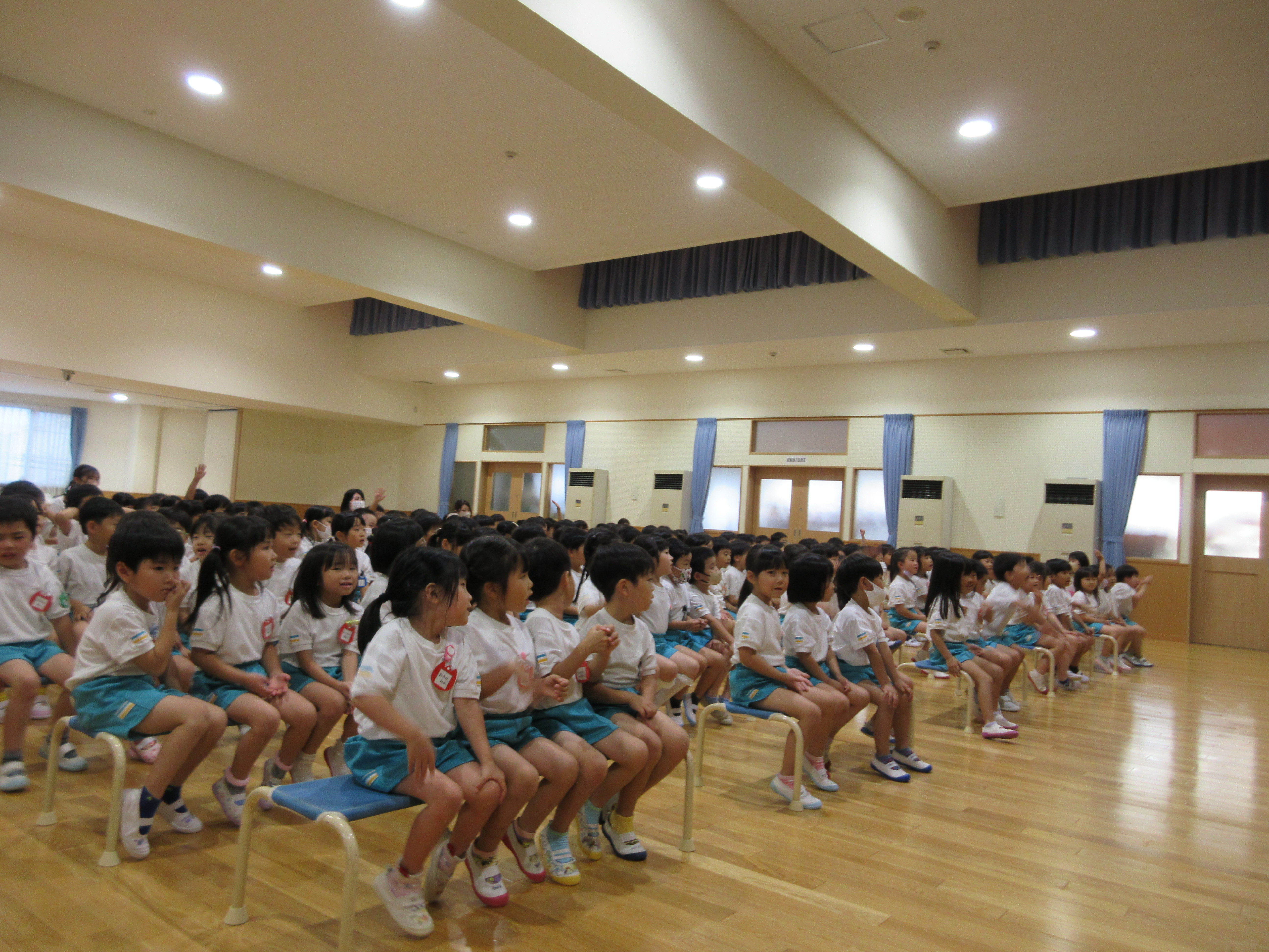 幼稚園に泊まって、みんなとご飯を食べて、寝て、遊んで、楽しかった!