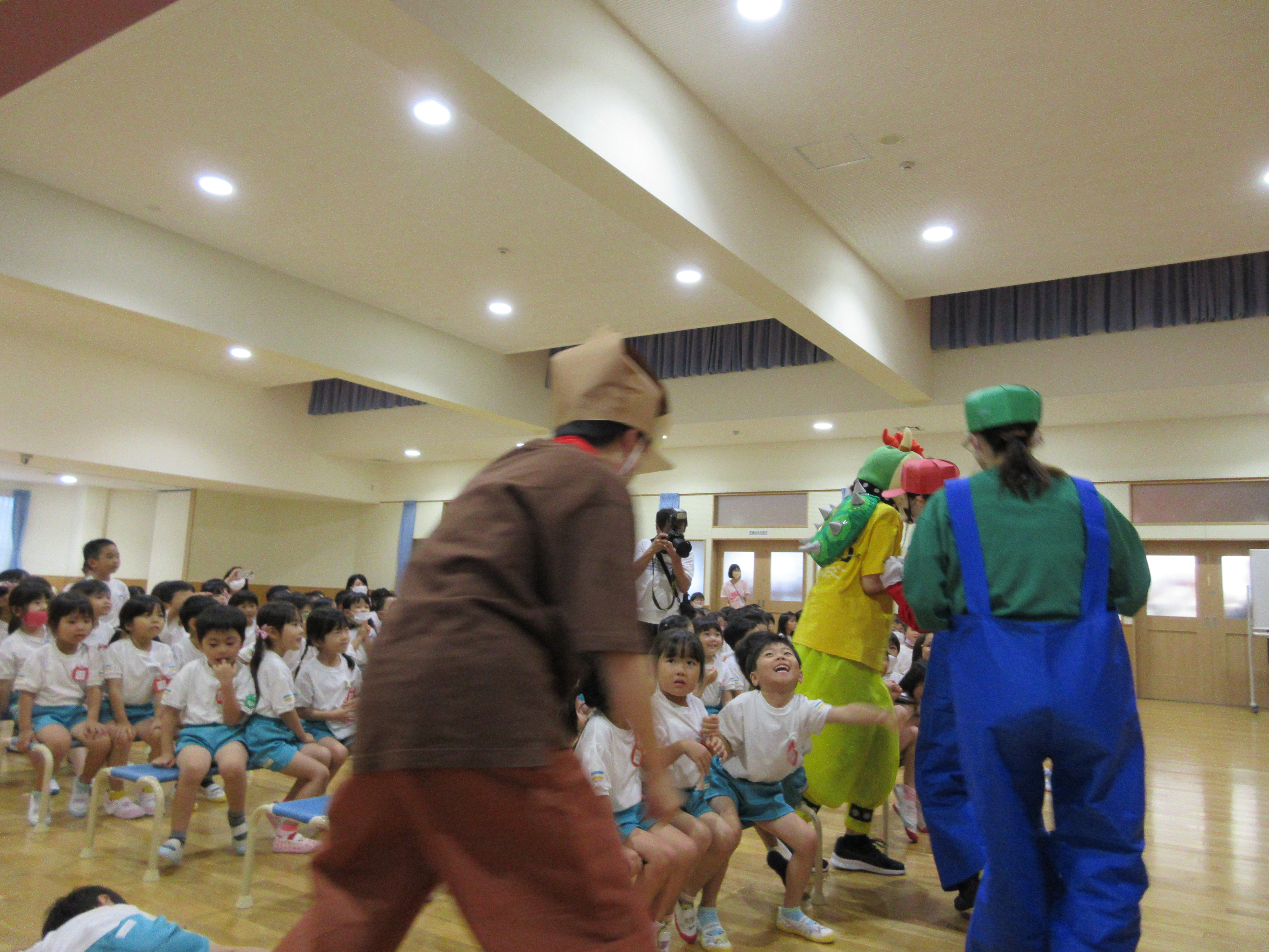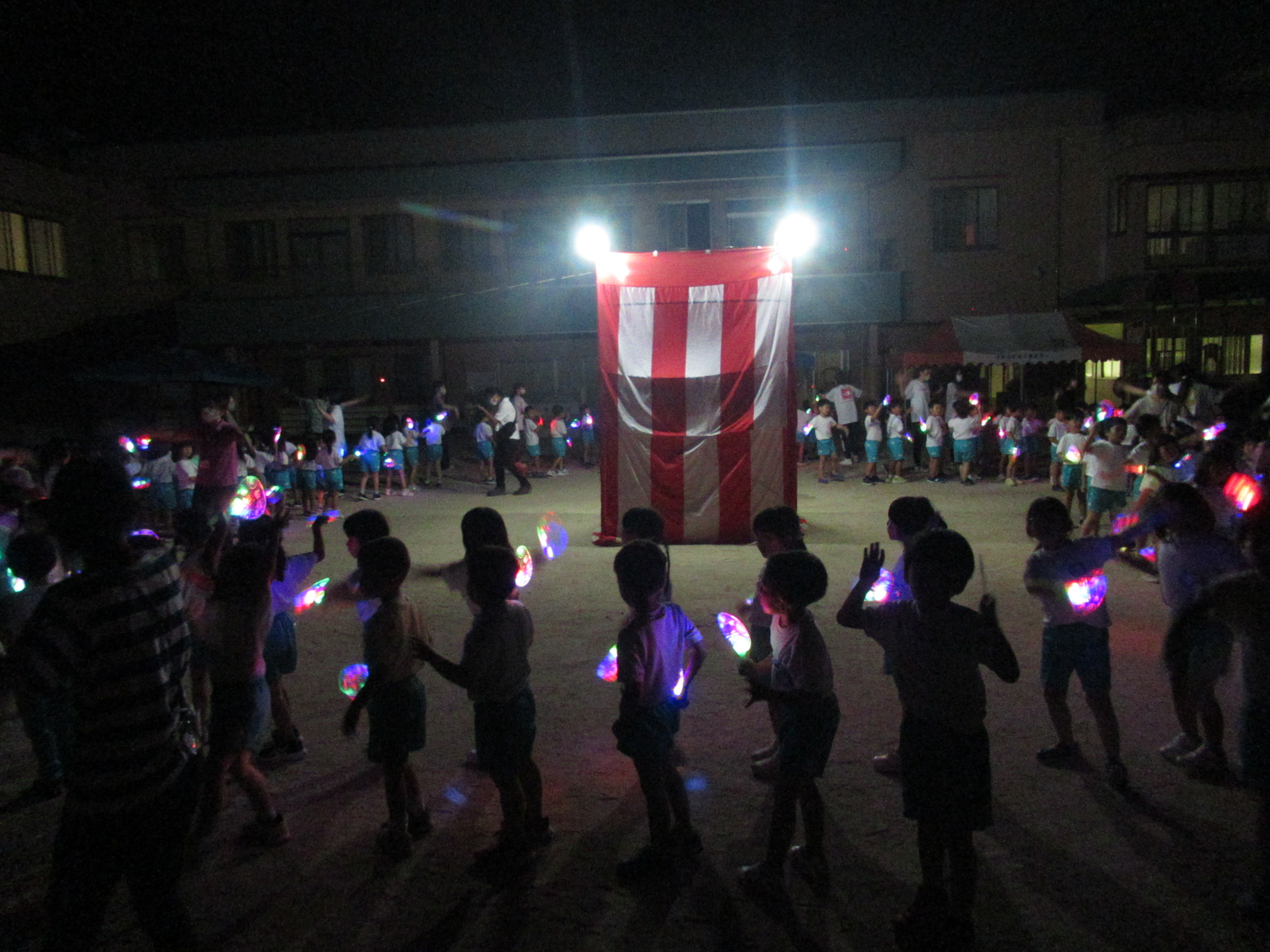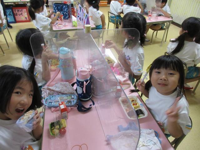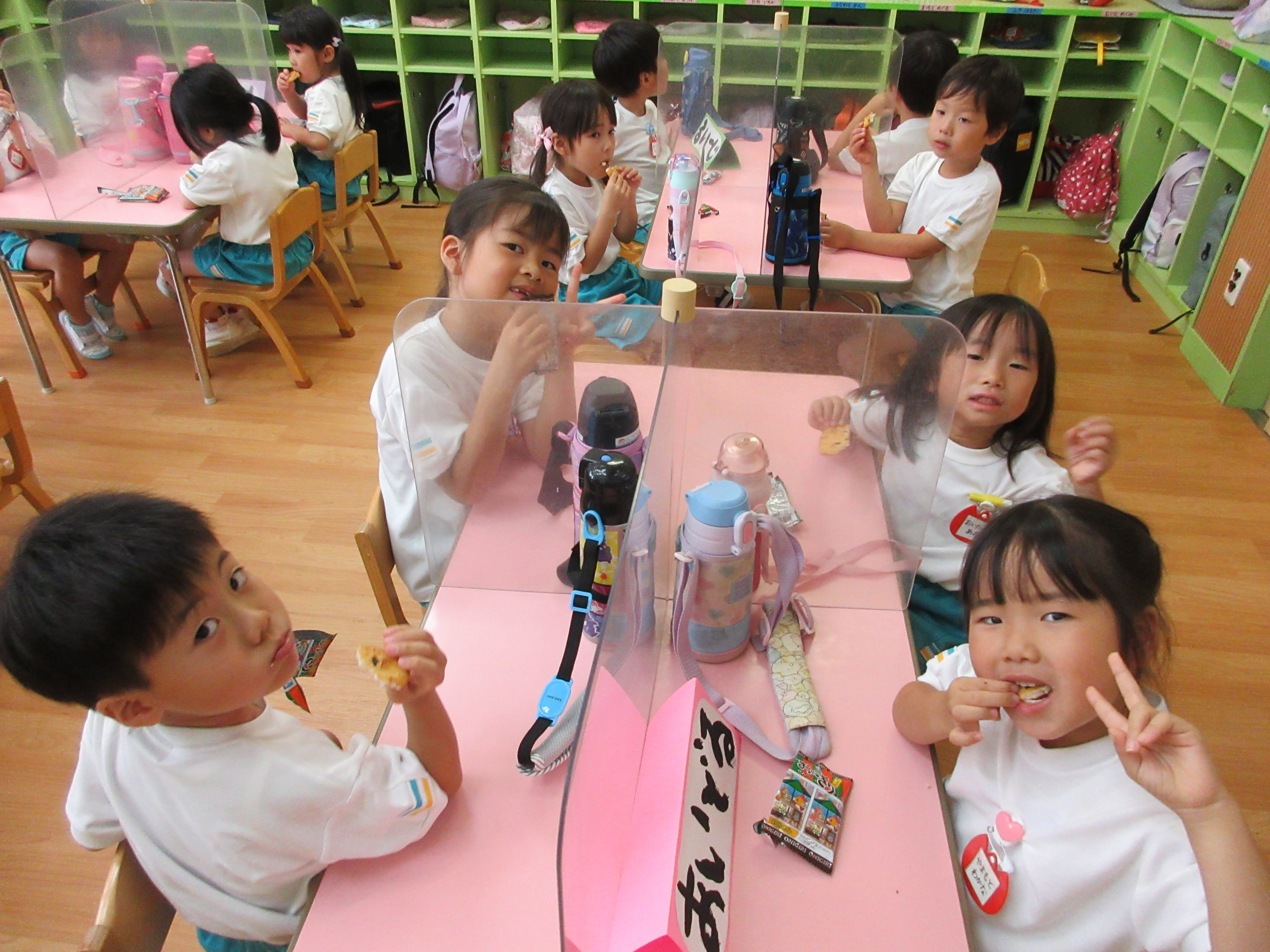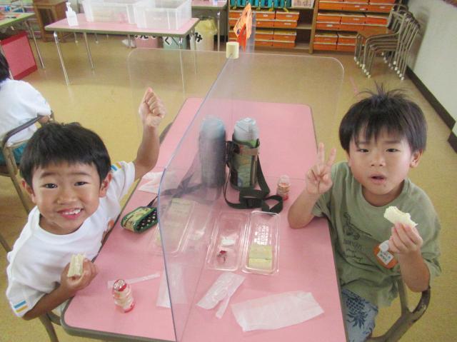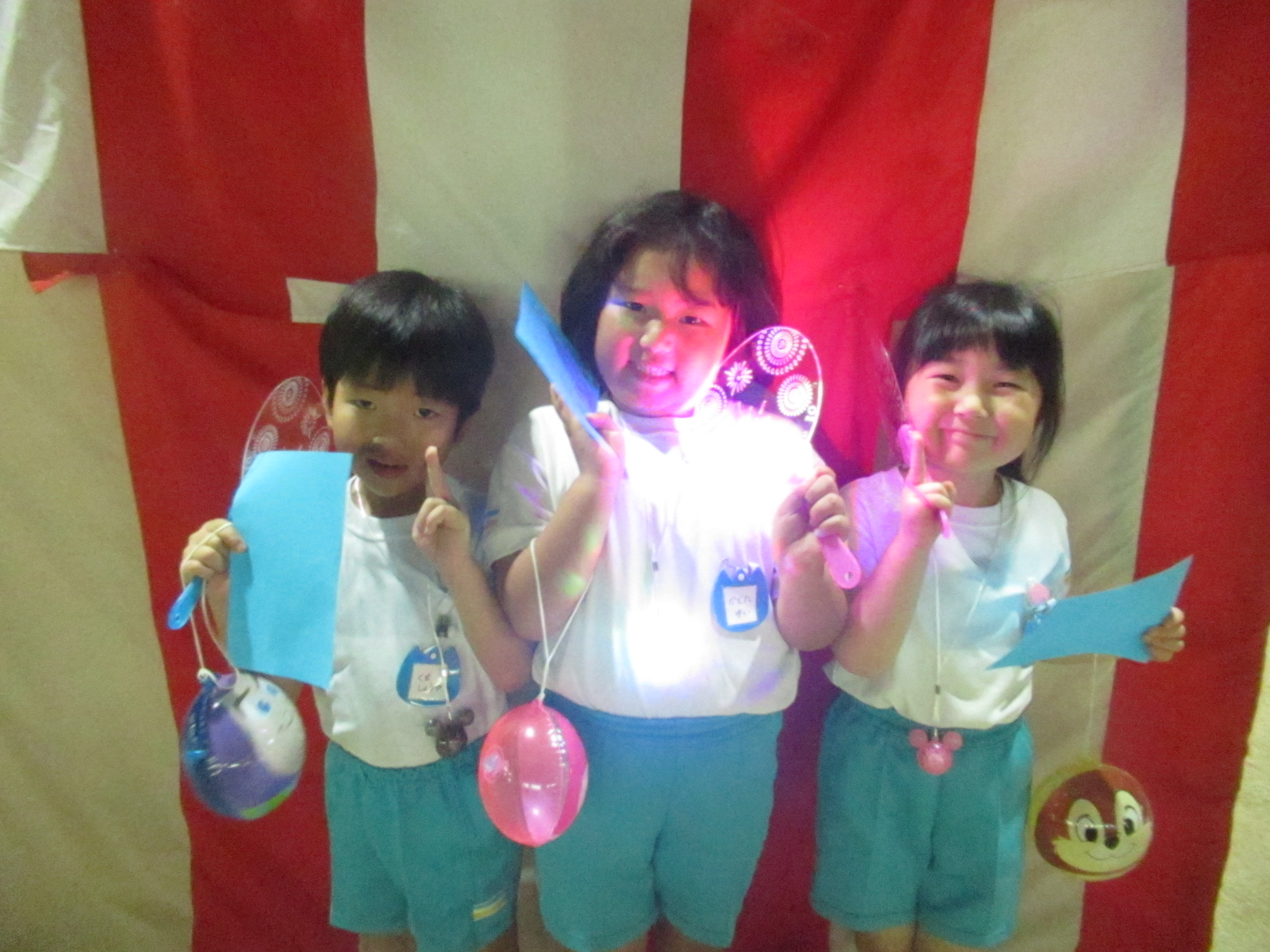 幼稚園に泊まって、みんなとご飯を食べて、寝て、遊んで、楽しかった!