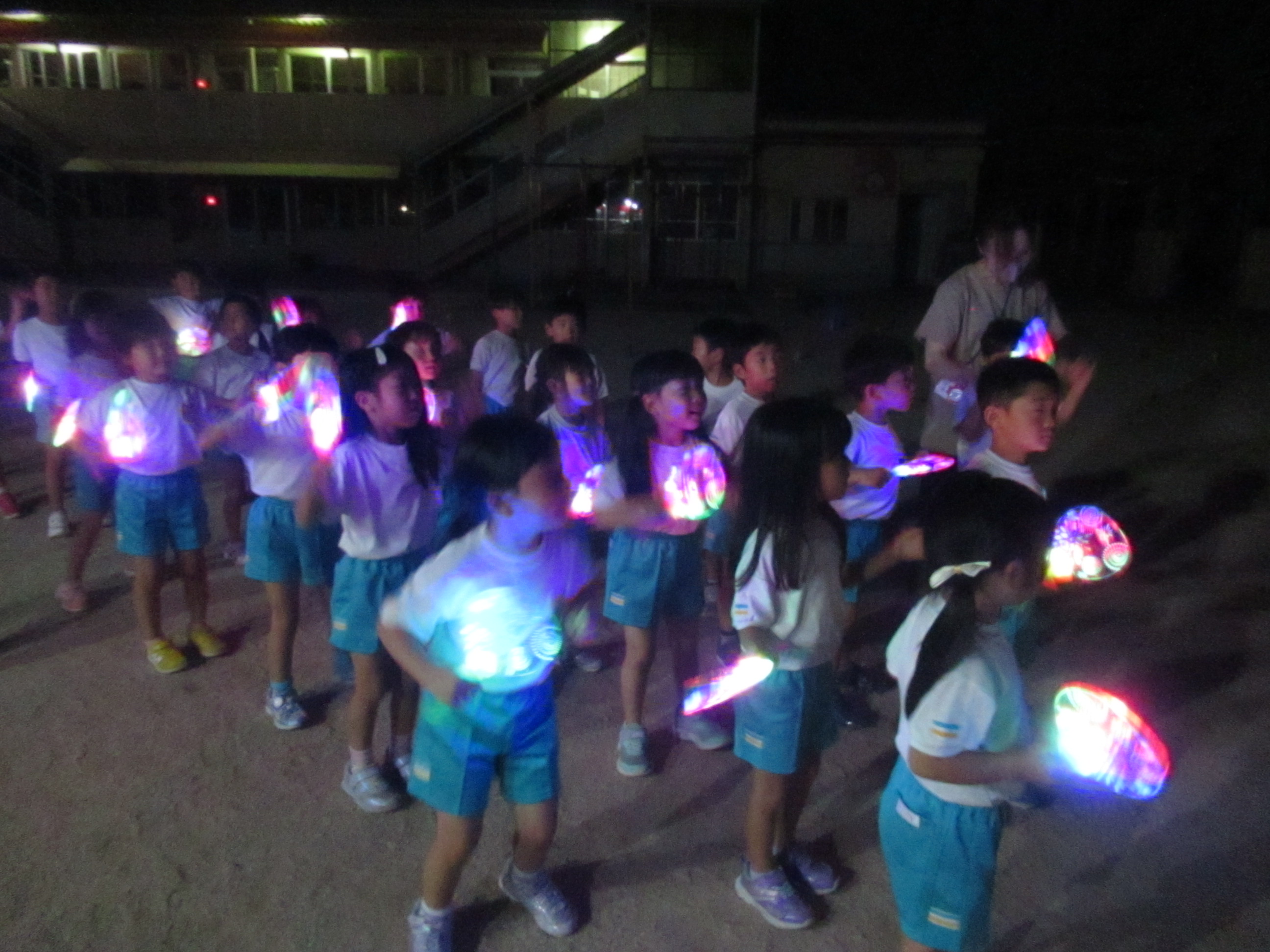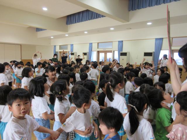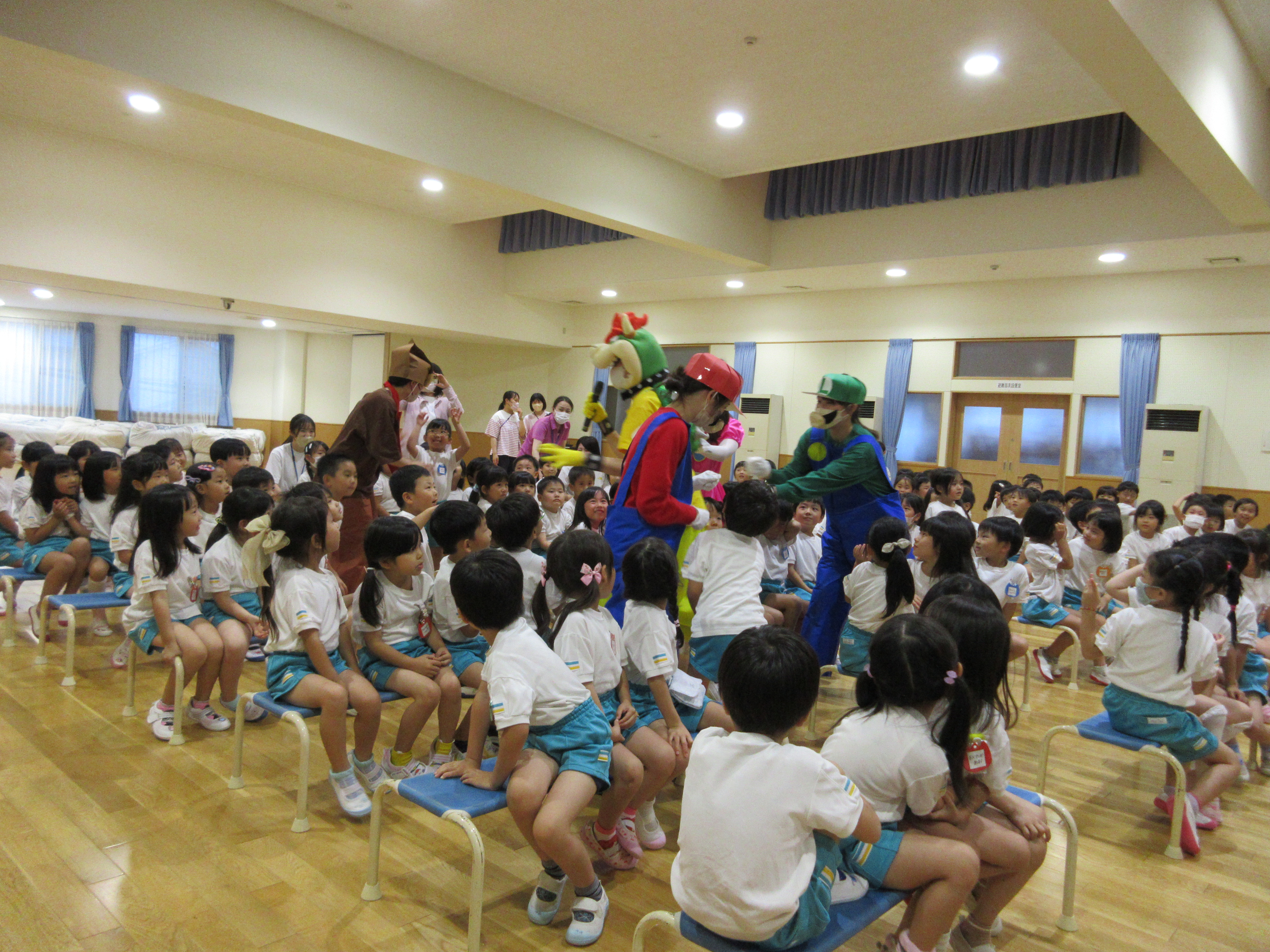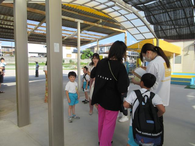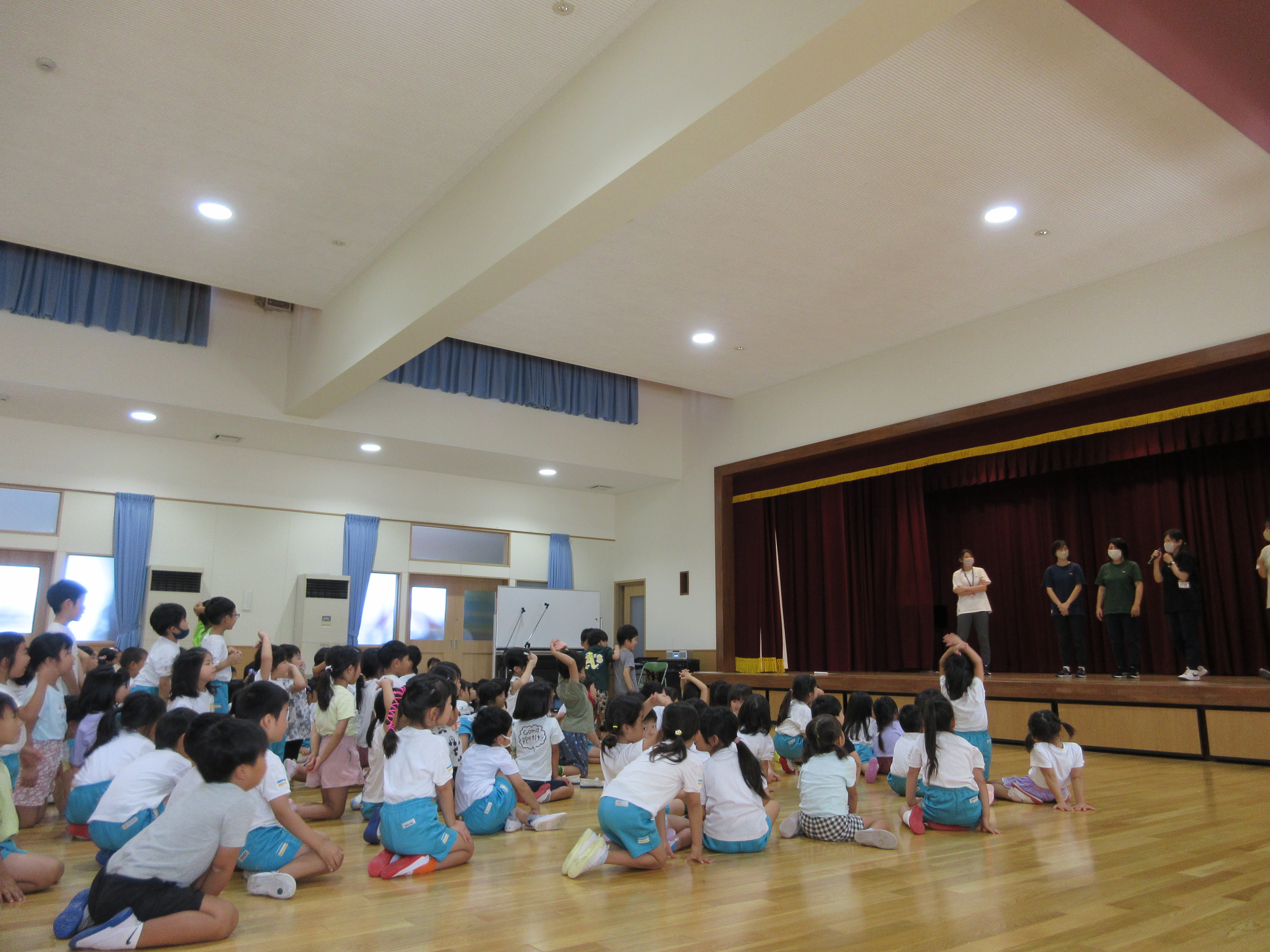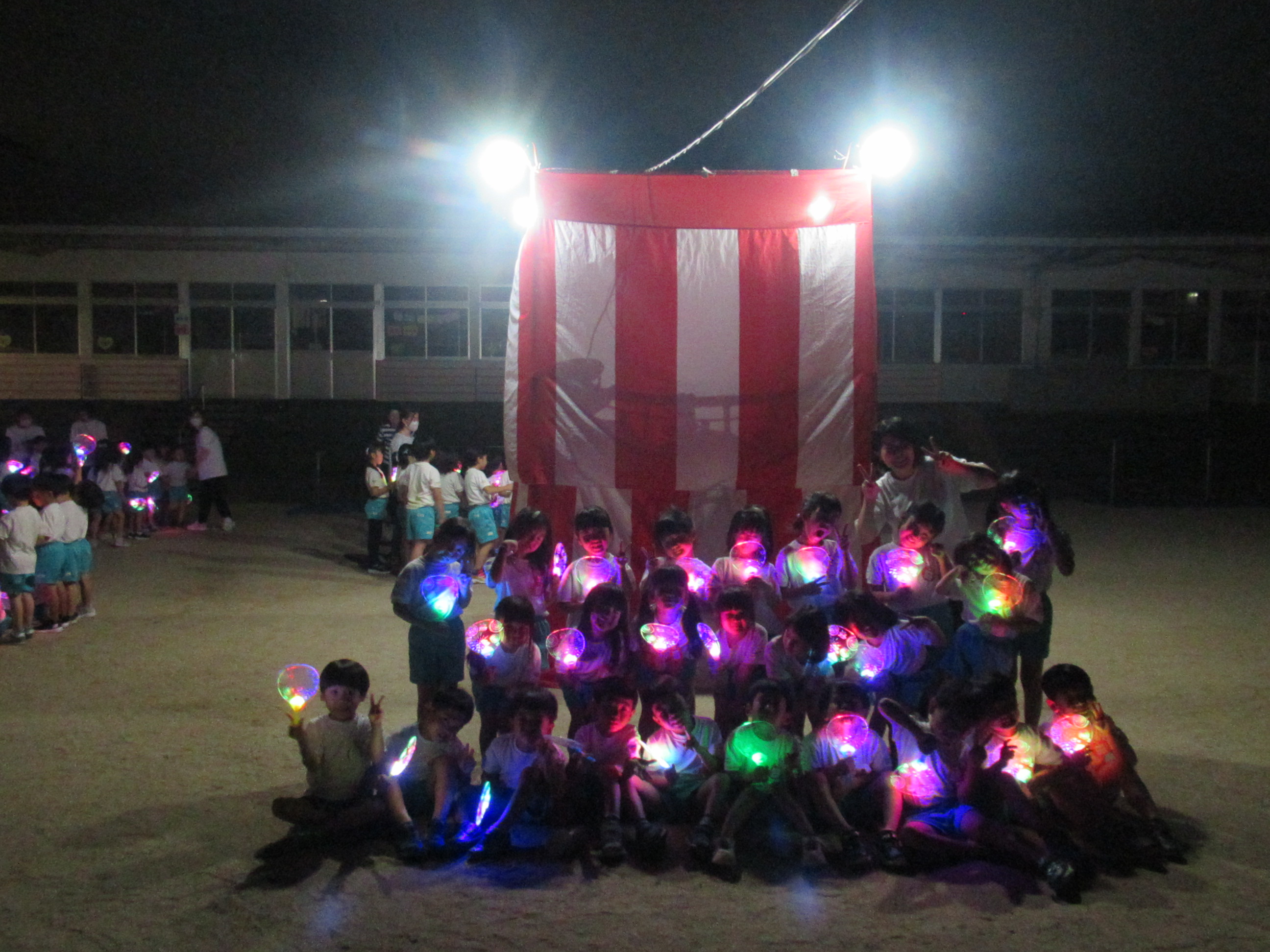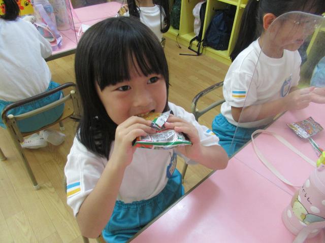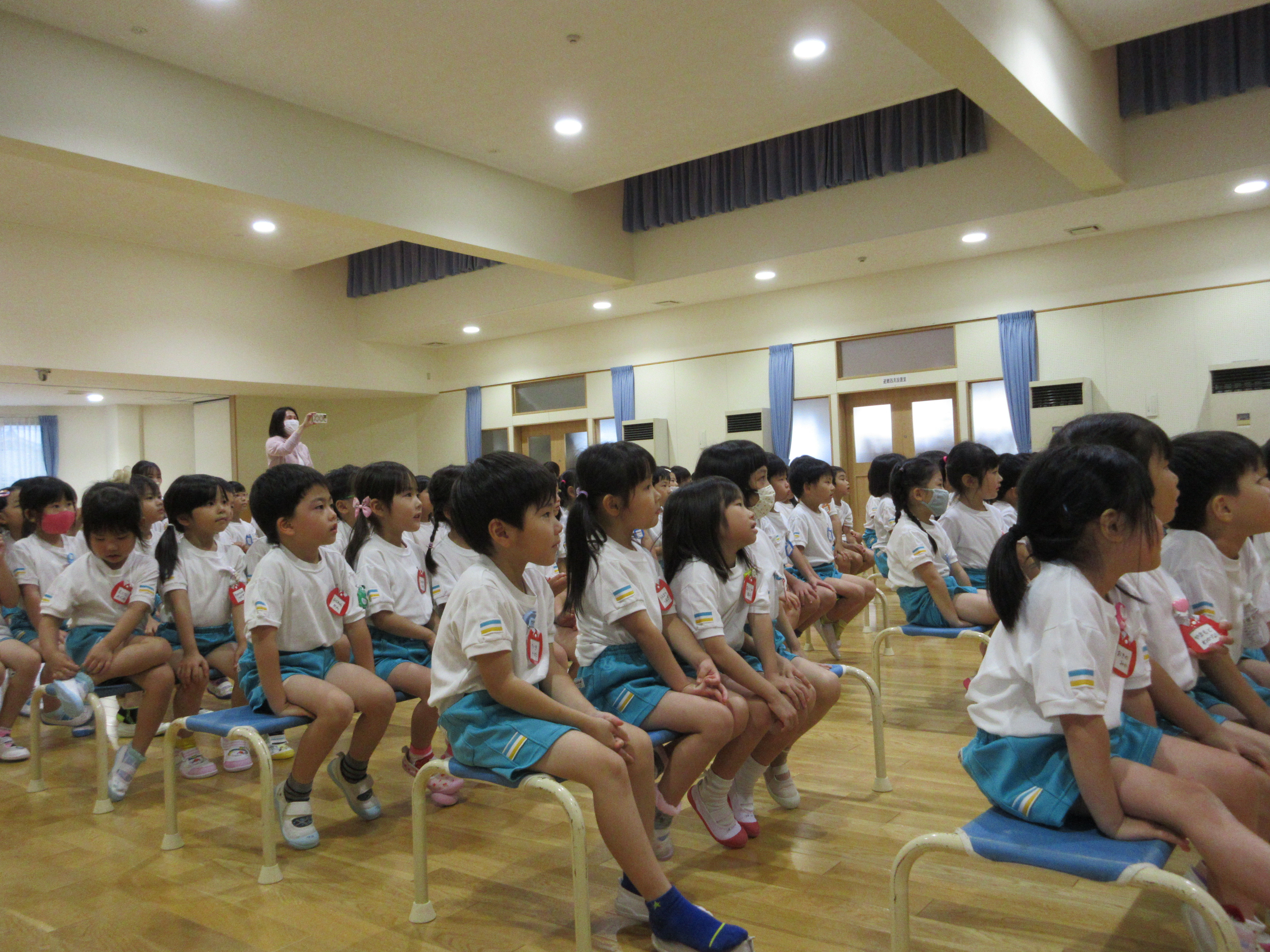 幼稚園に泊まって、みんなとご飯を食べて、寝て、遊んで、楽しかった!