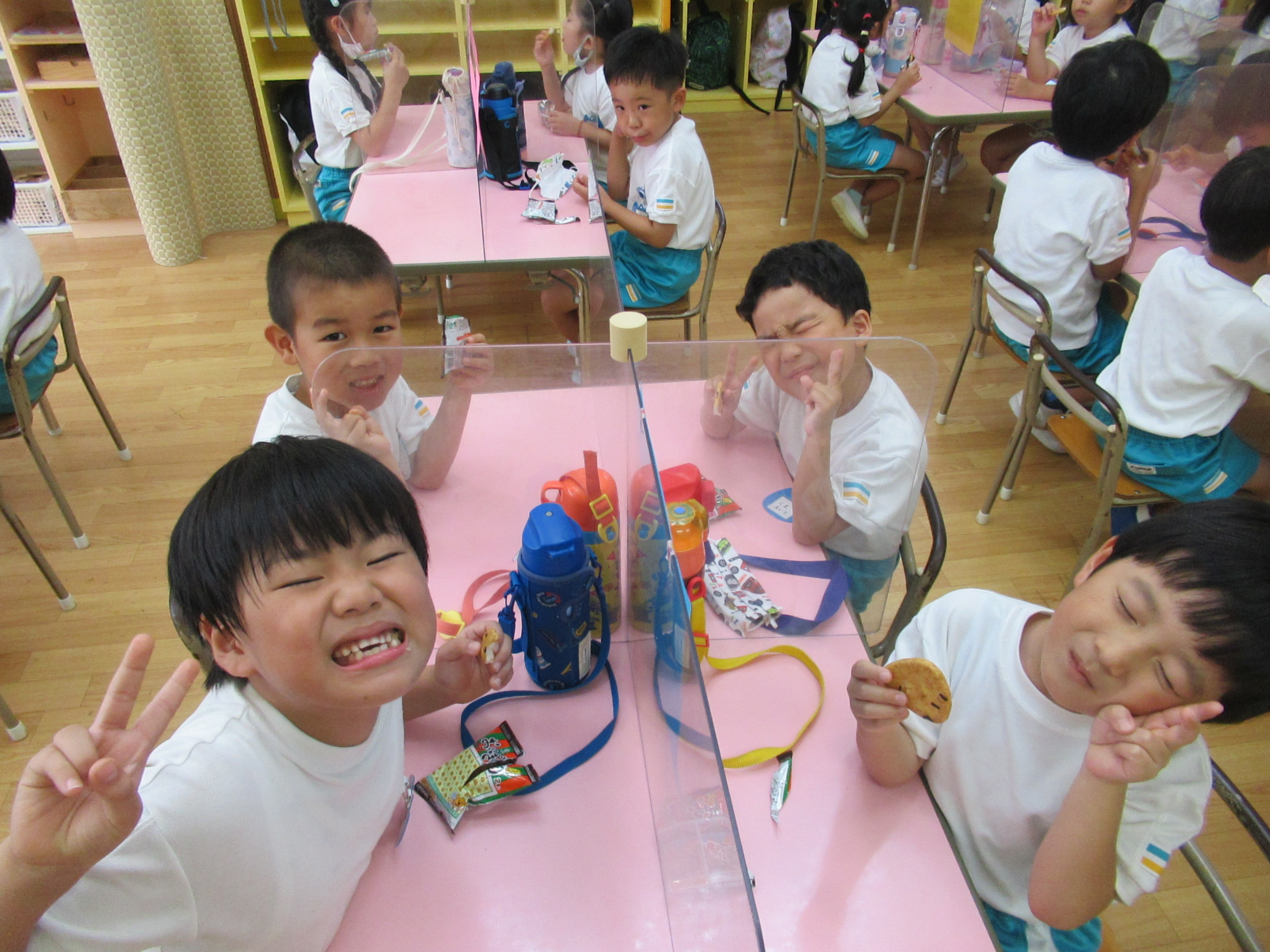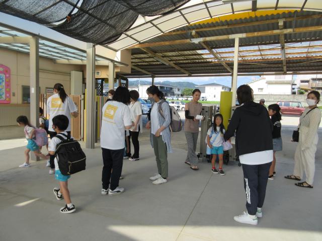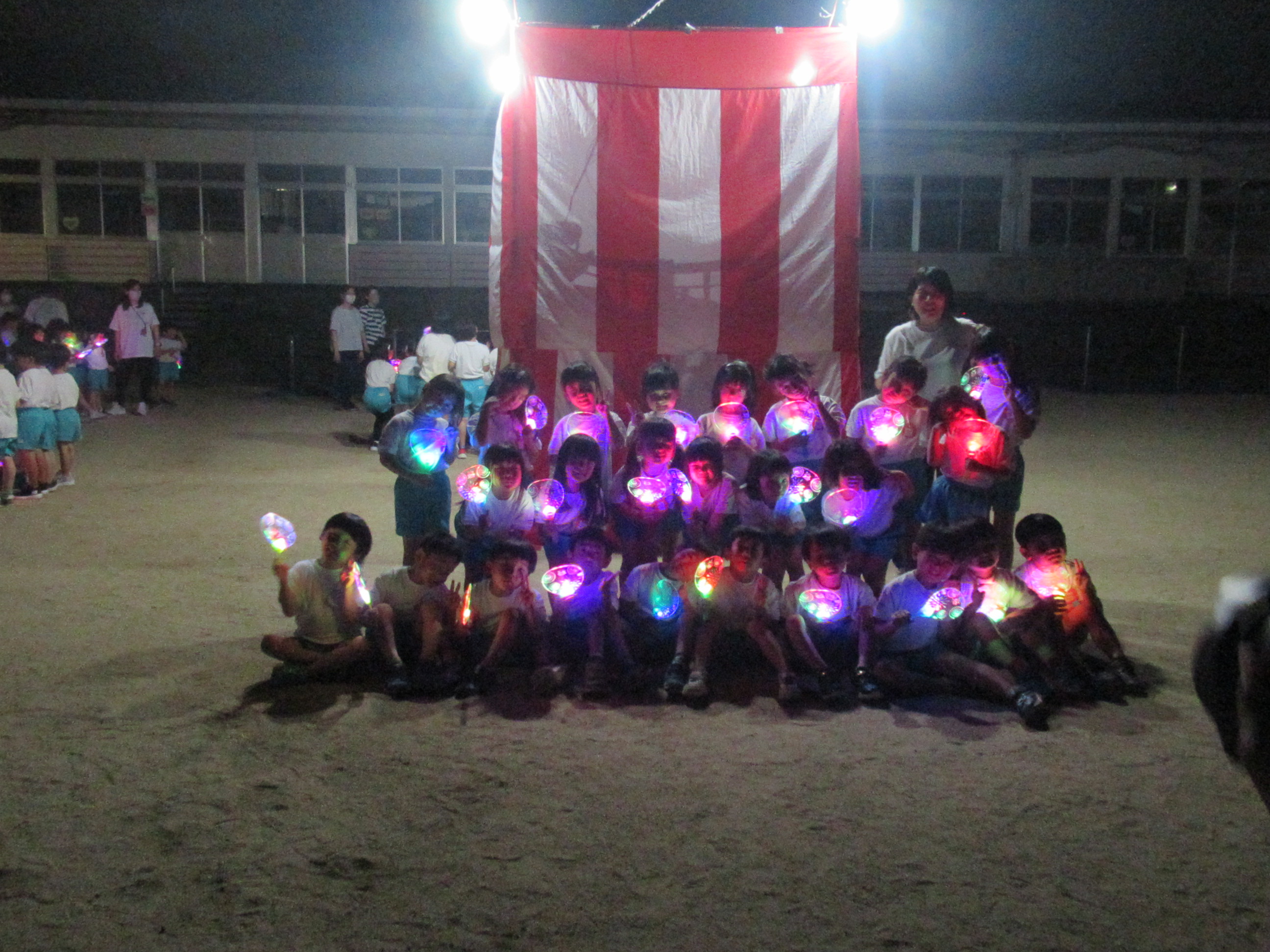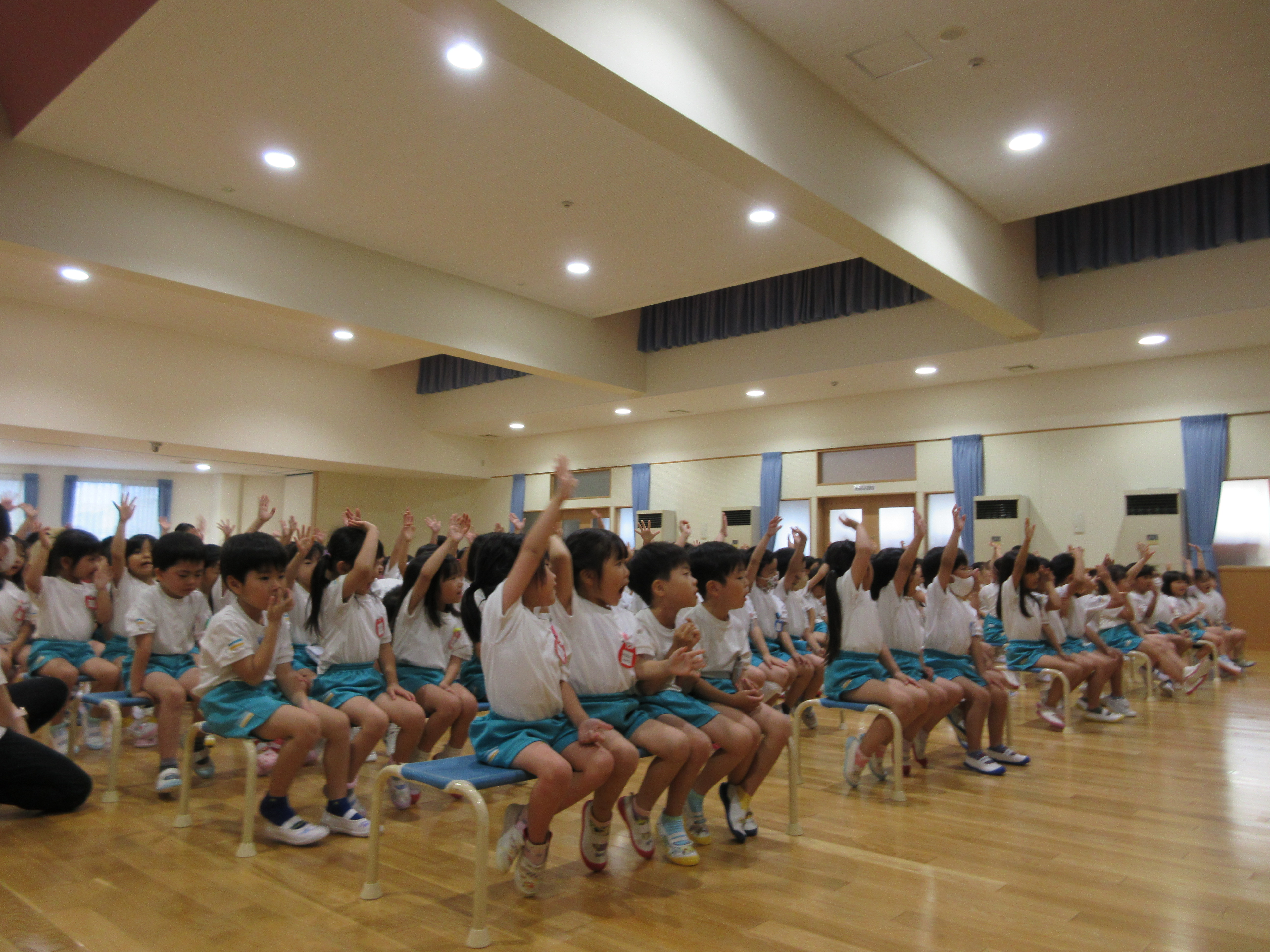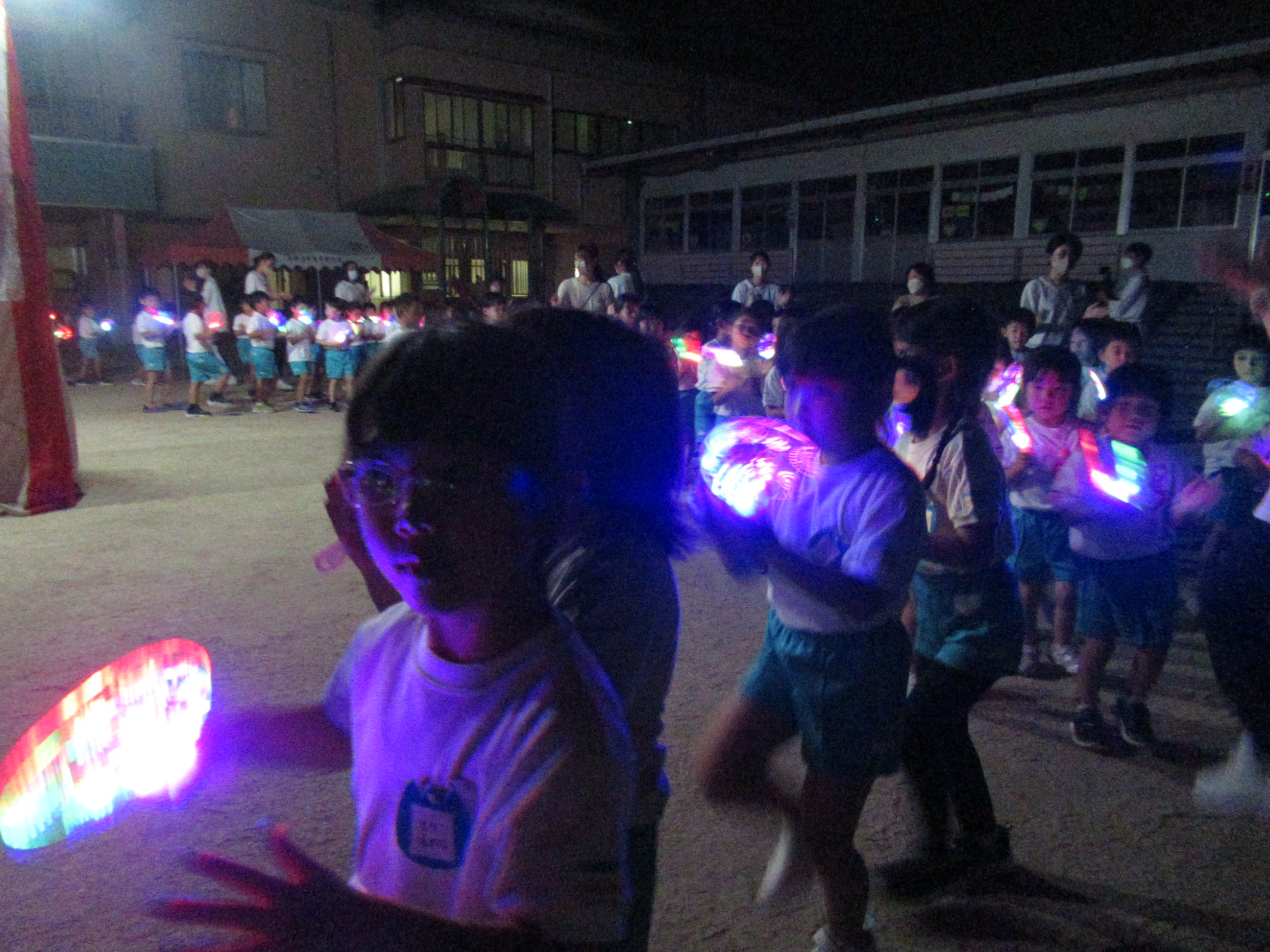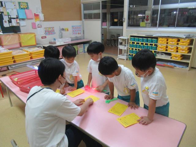 幼稚園に泊まって、みんなとご飯を食べて、寝て、遊んで、楽しかった!
