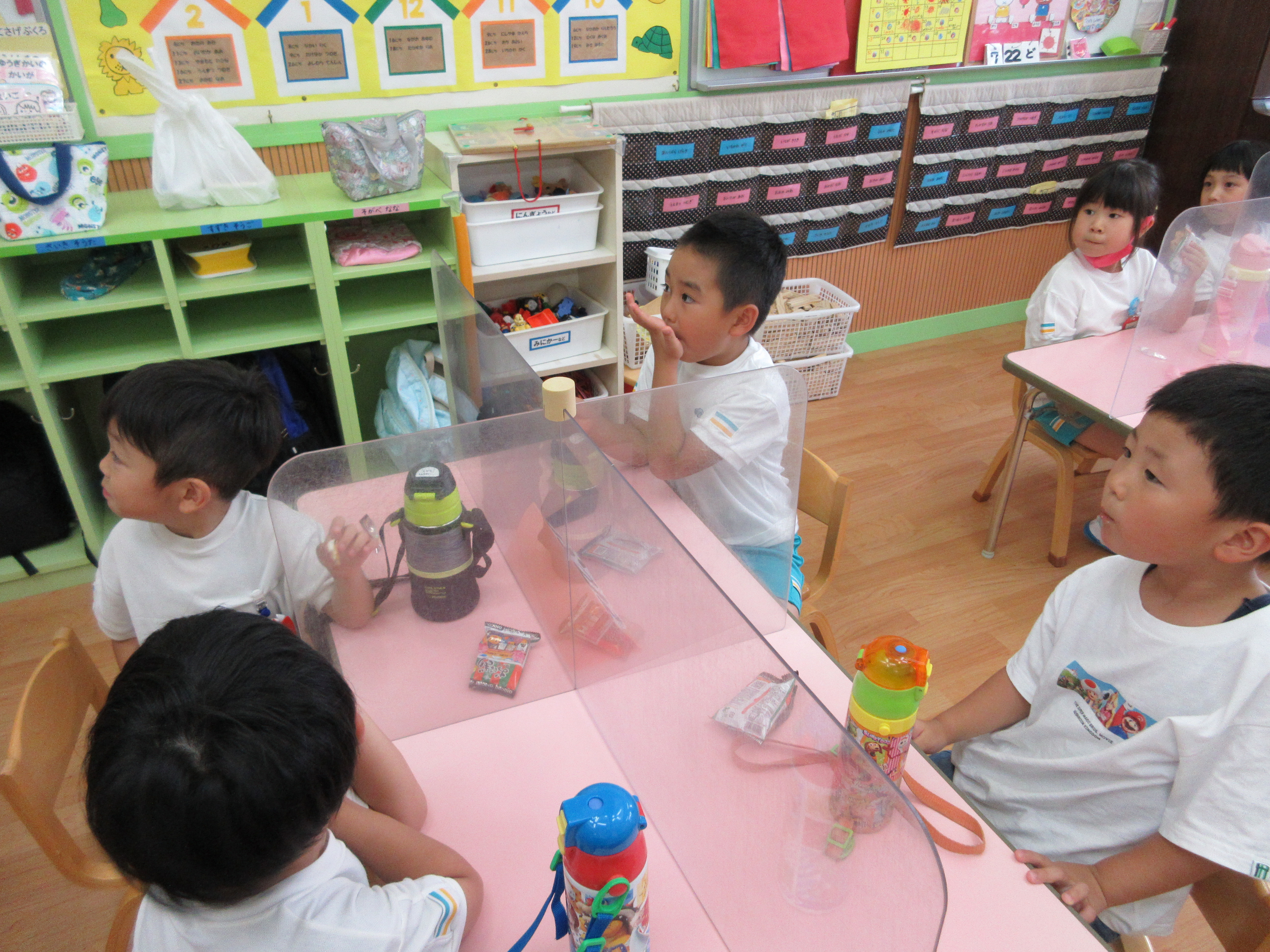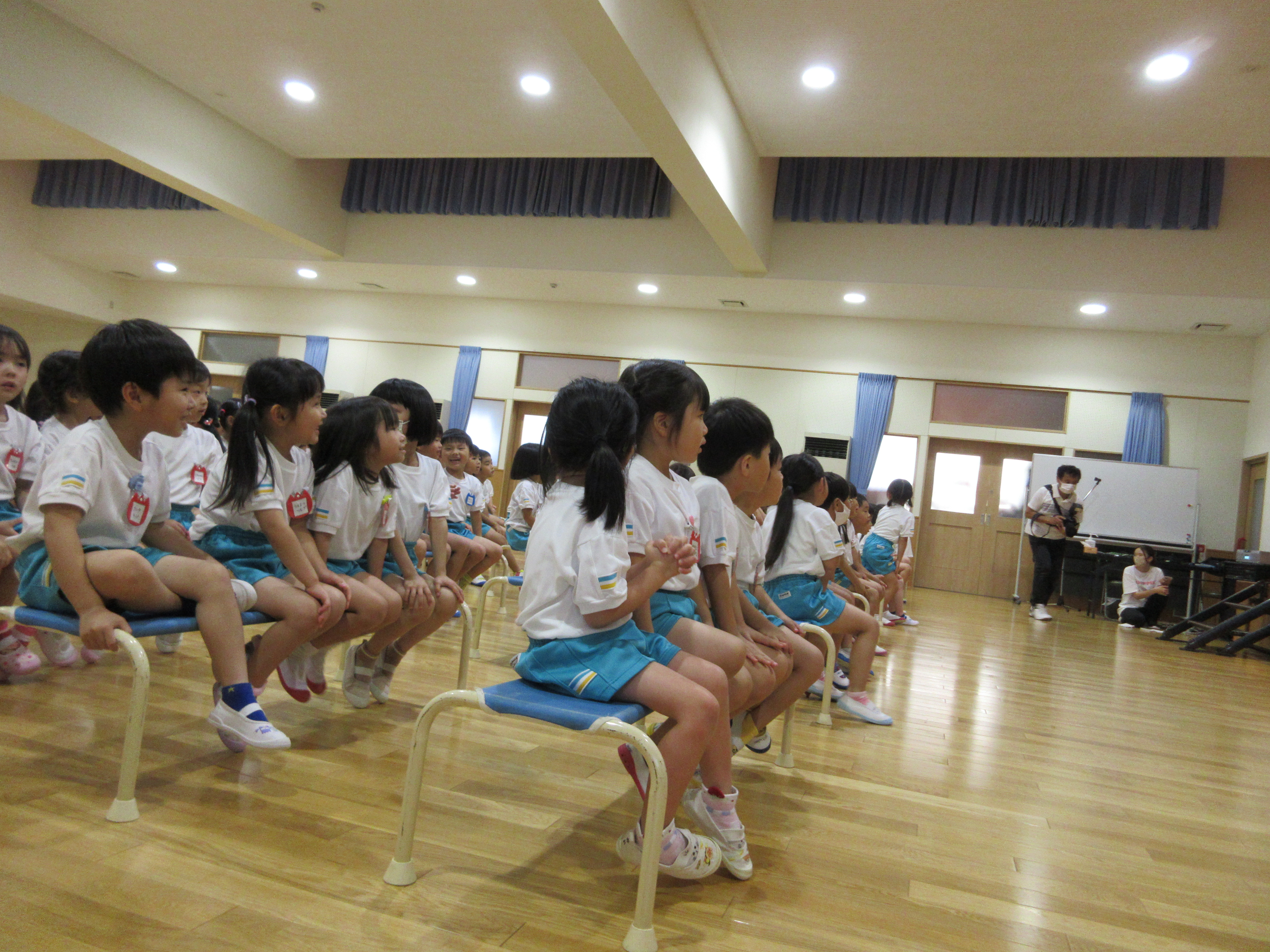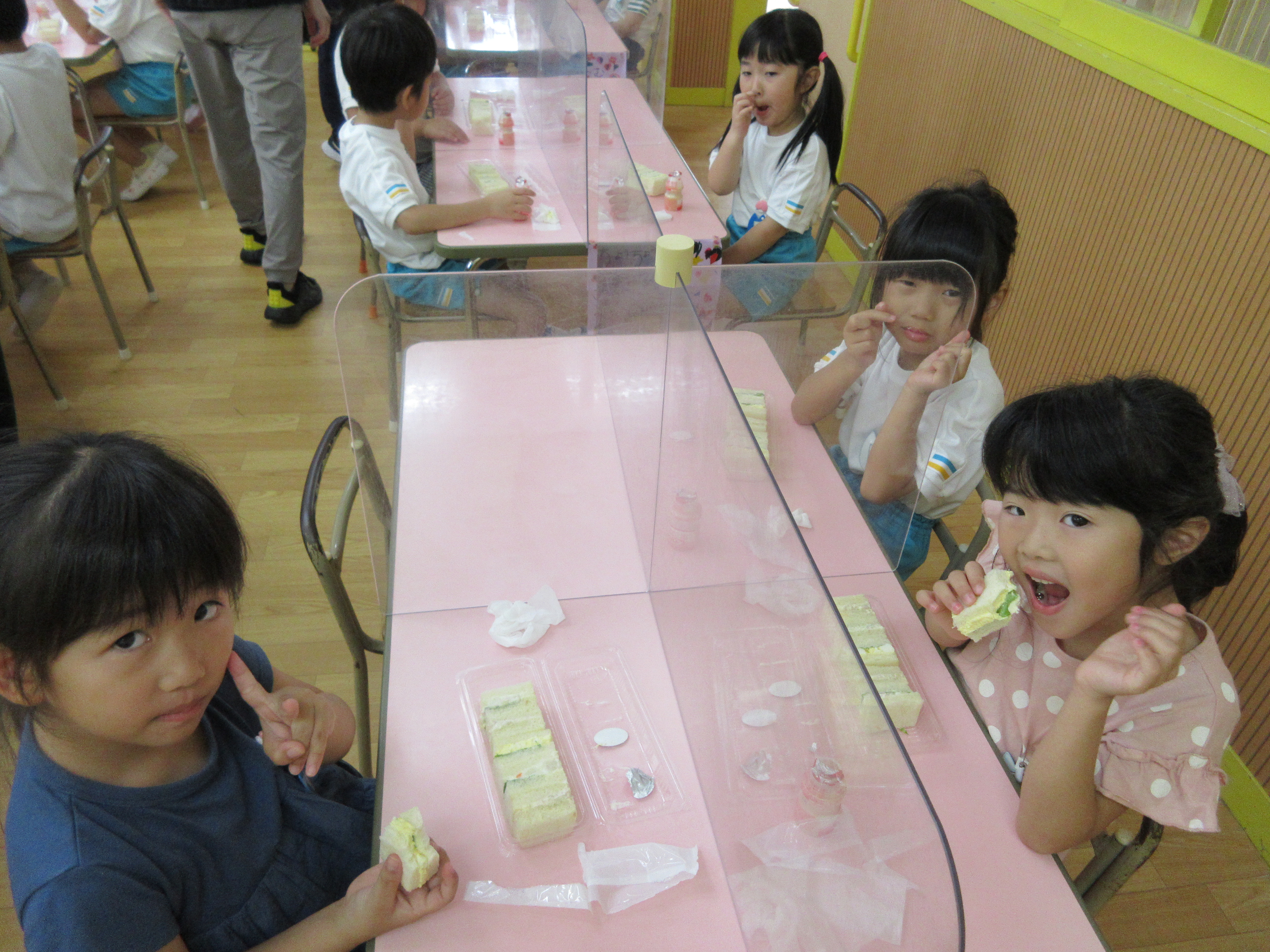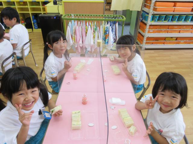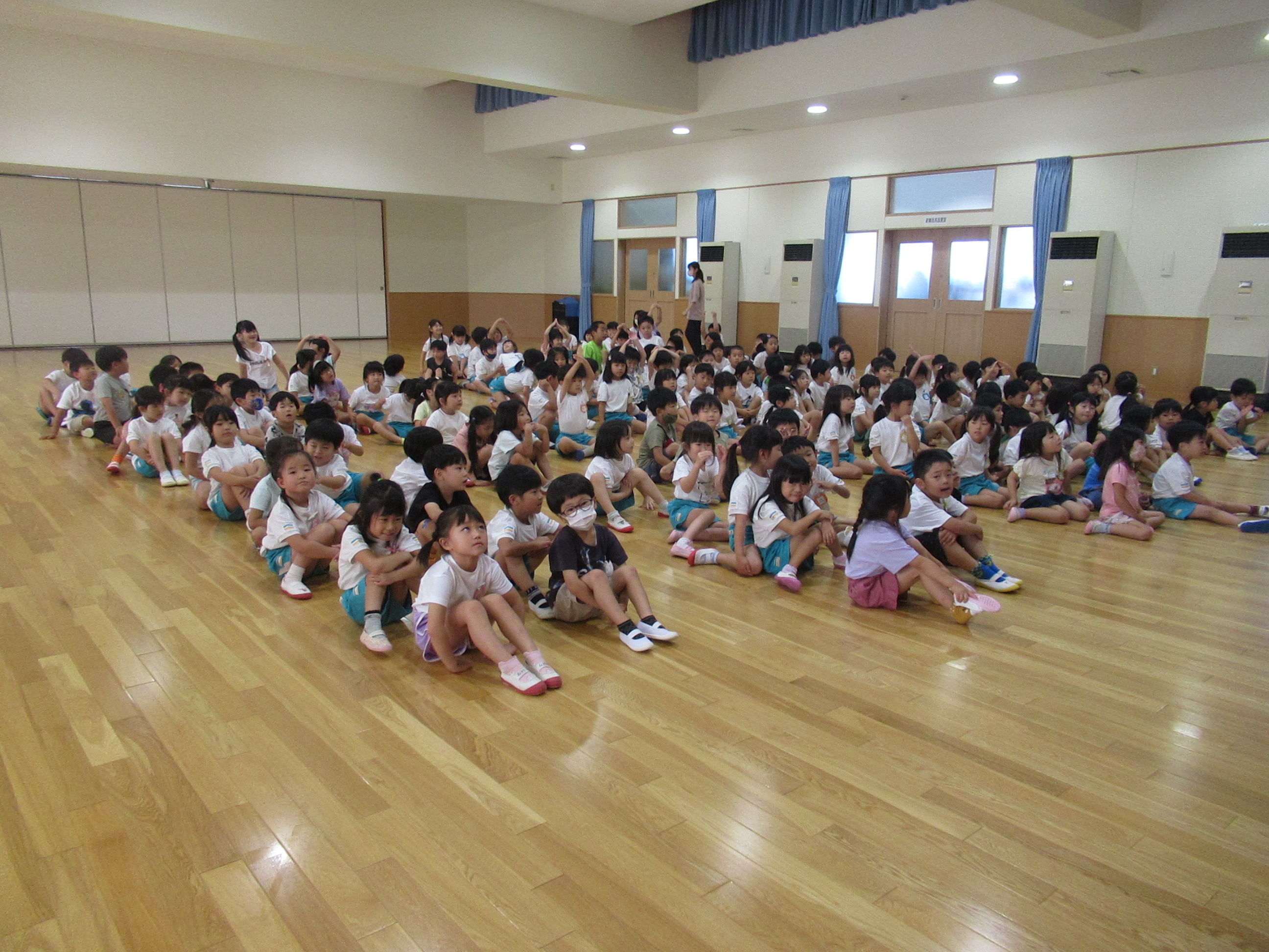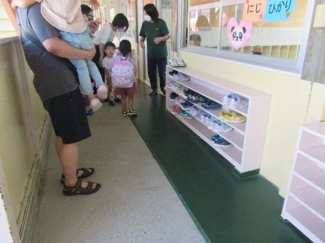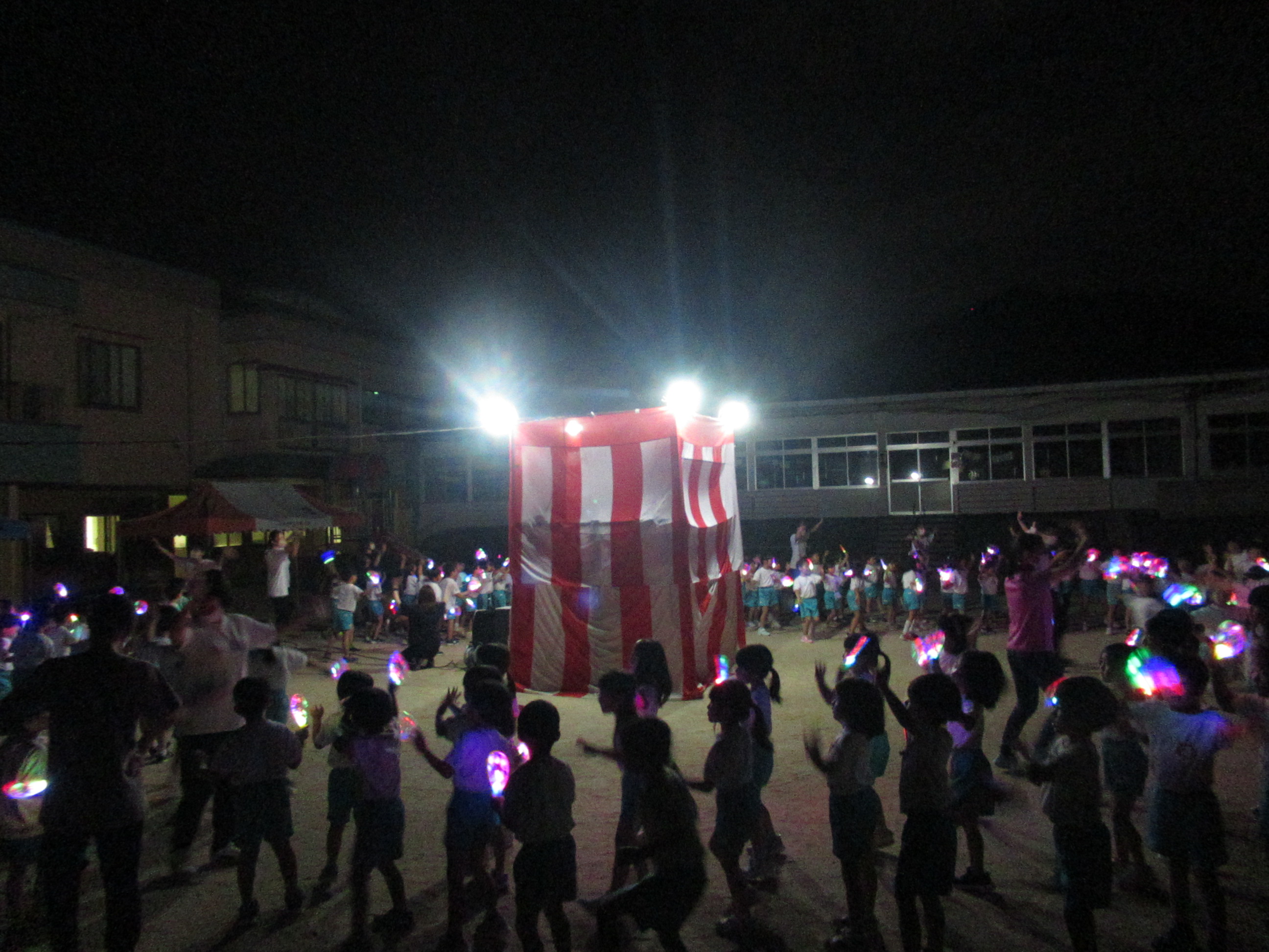 幼稚園に泊まって、みんなとご飯を食べて、寝て、遊んで、楽しかった!