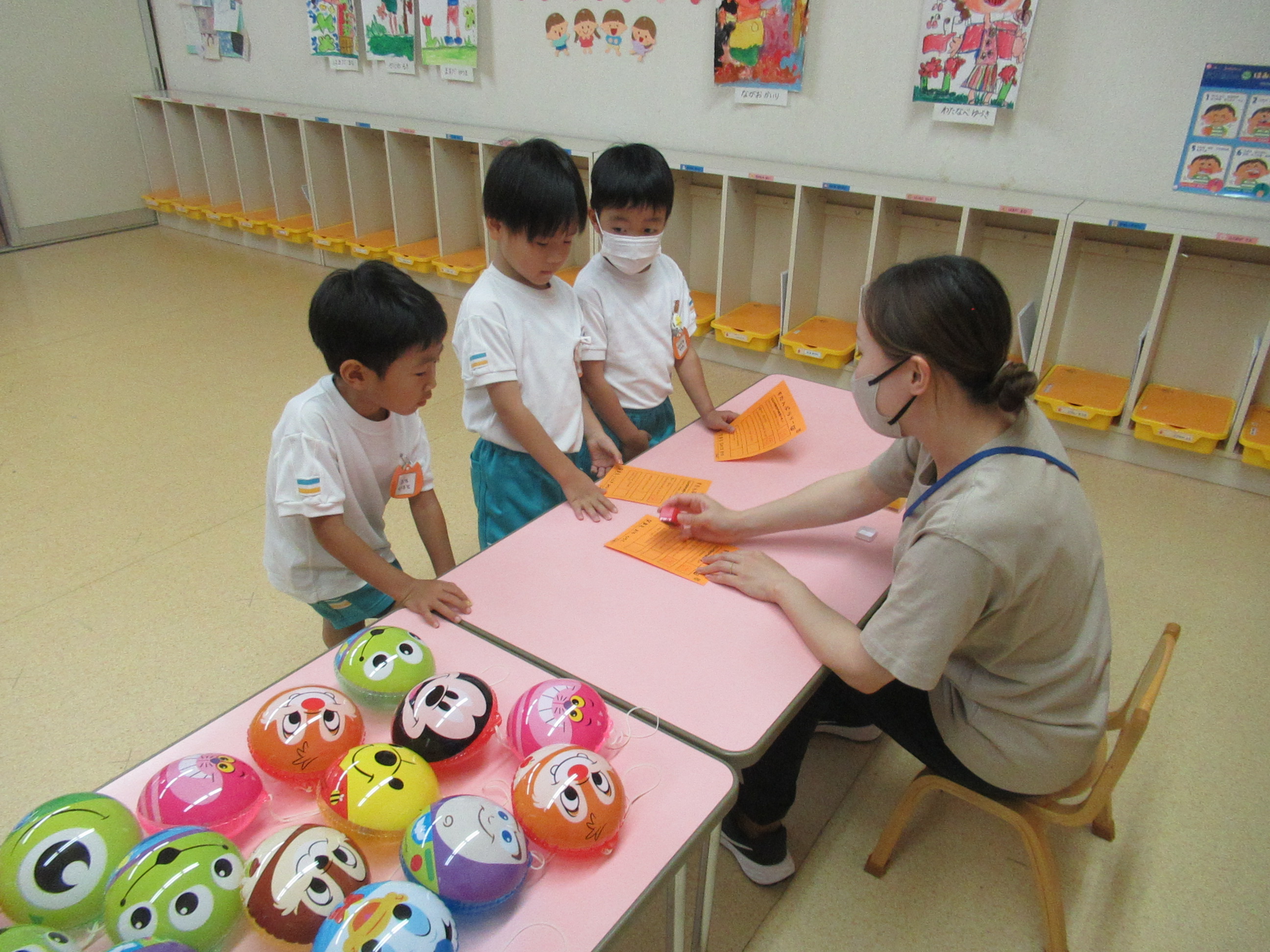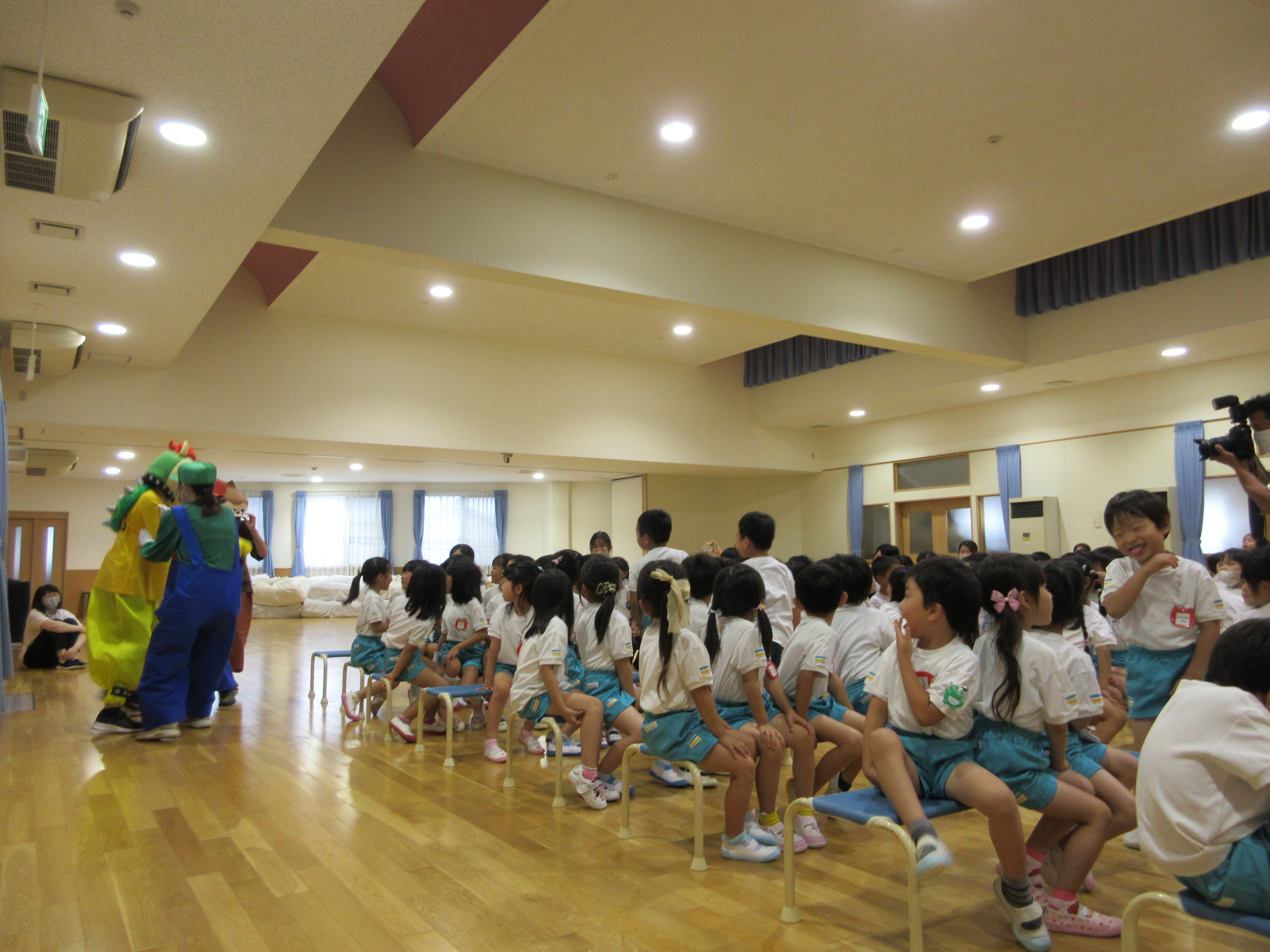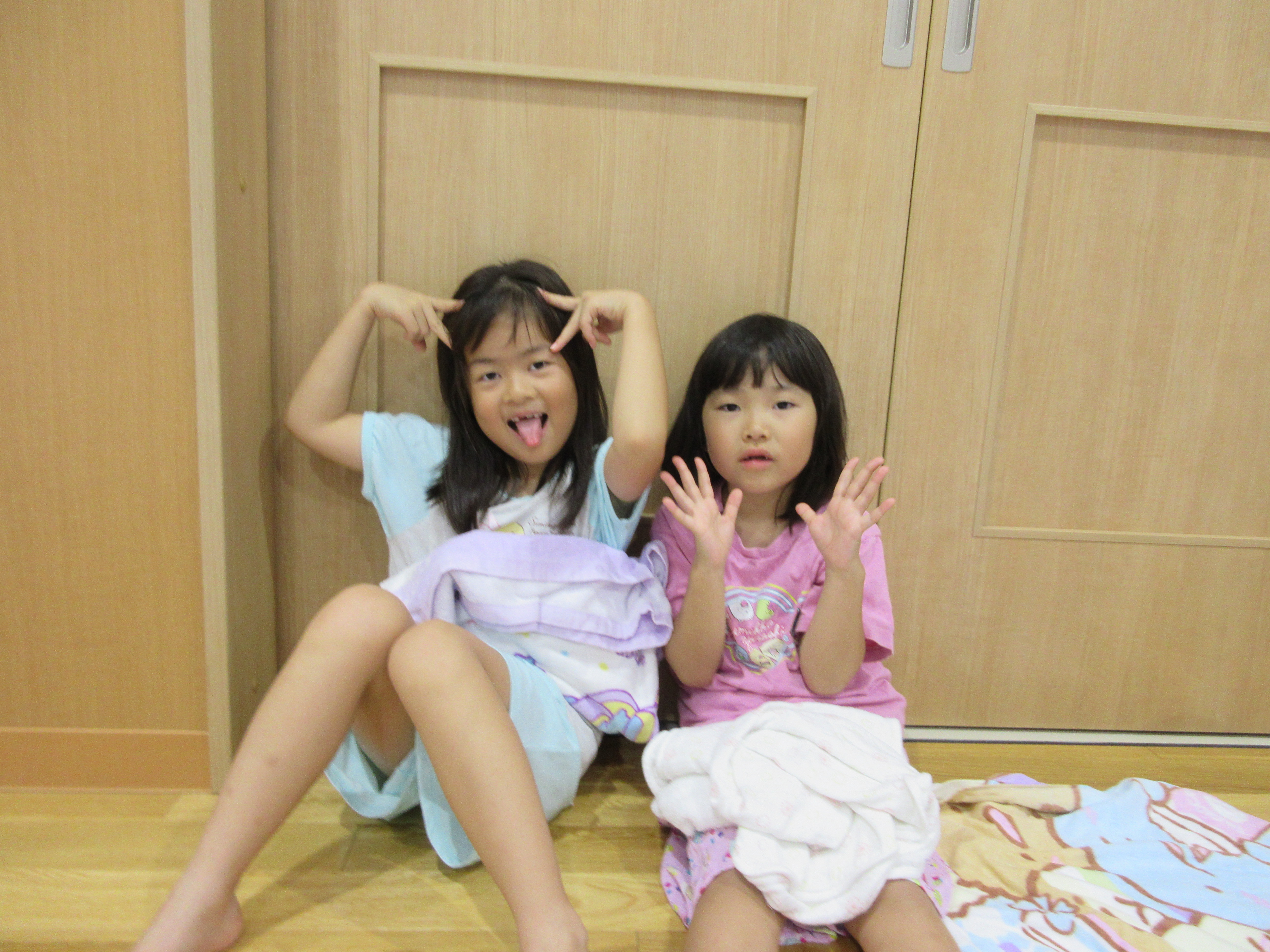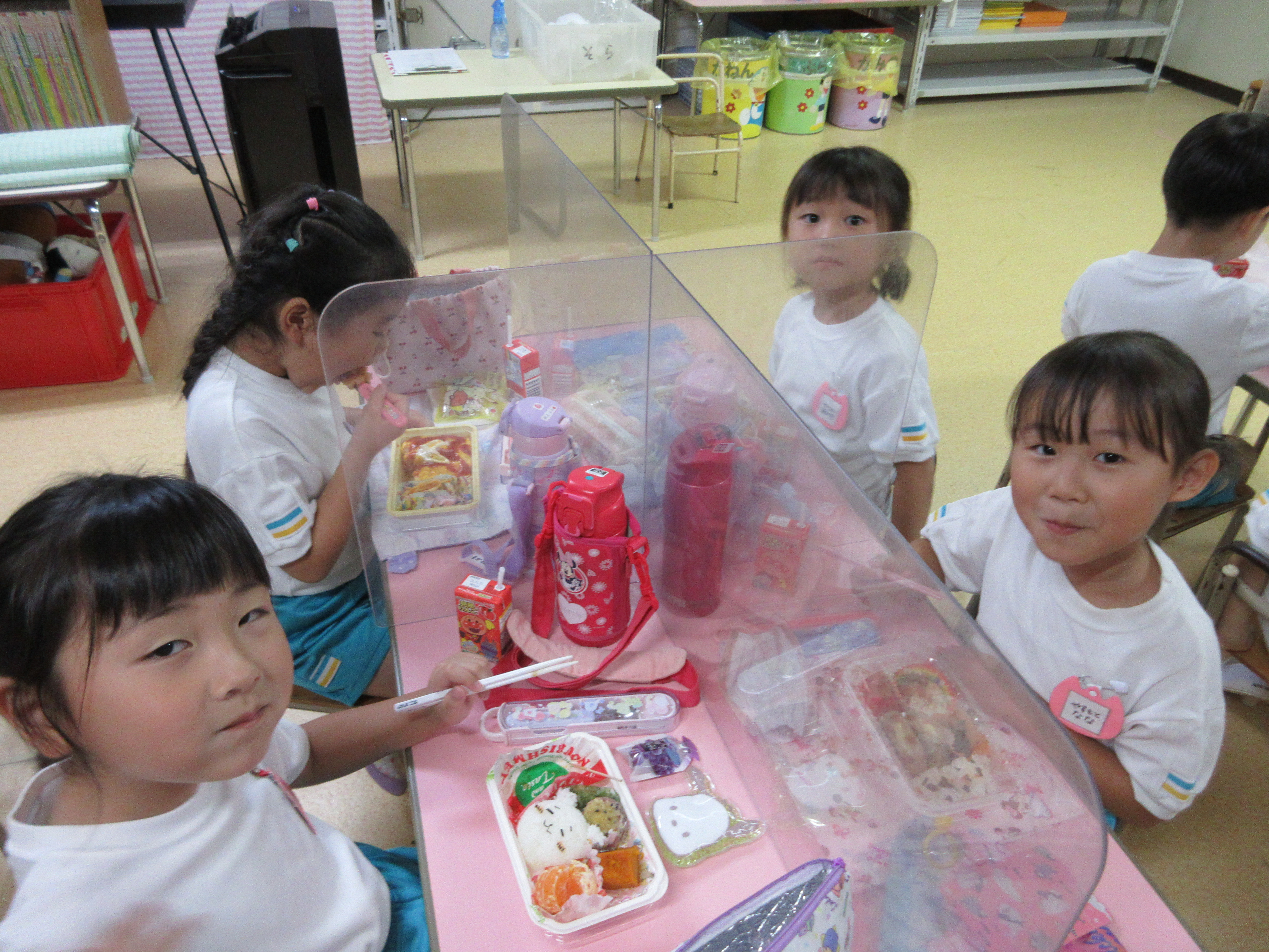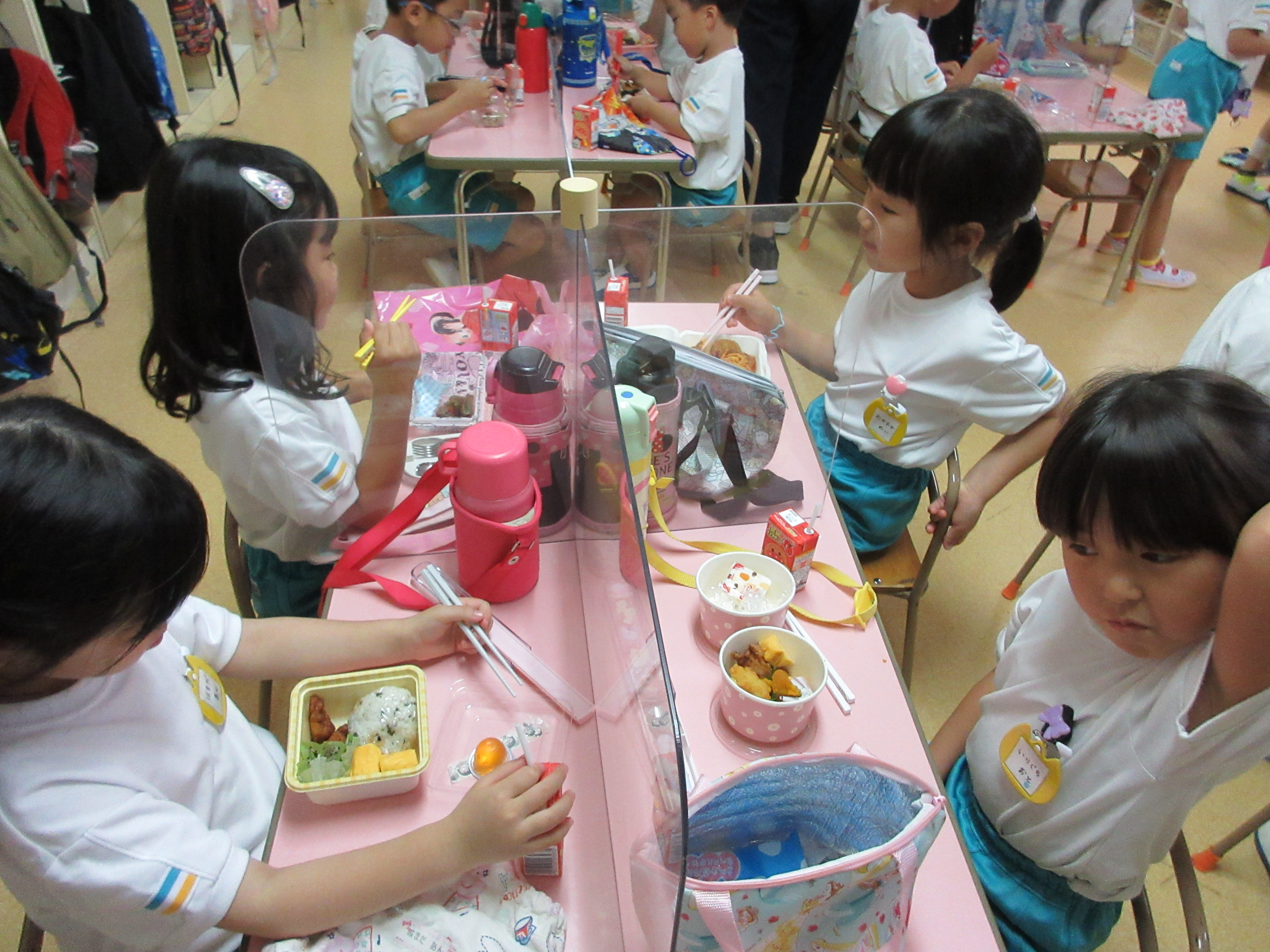 幼稚園に泊まって、みんなとご飯を食べて、寝て、遊んで、楽しかった!