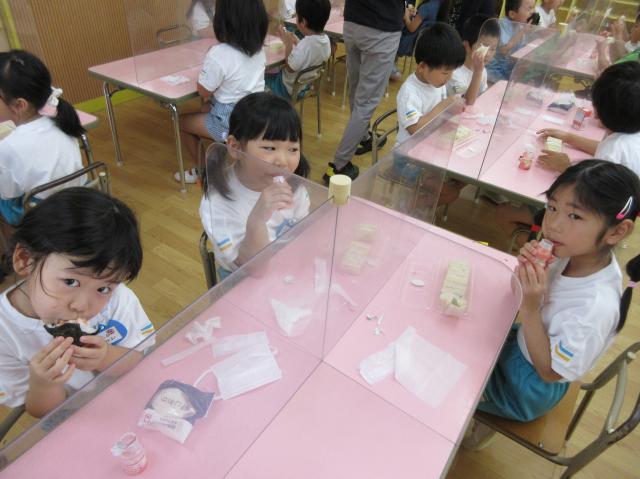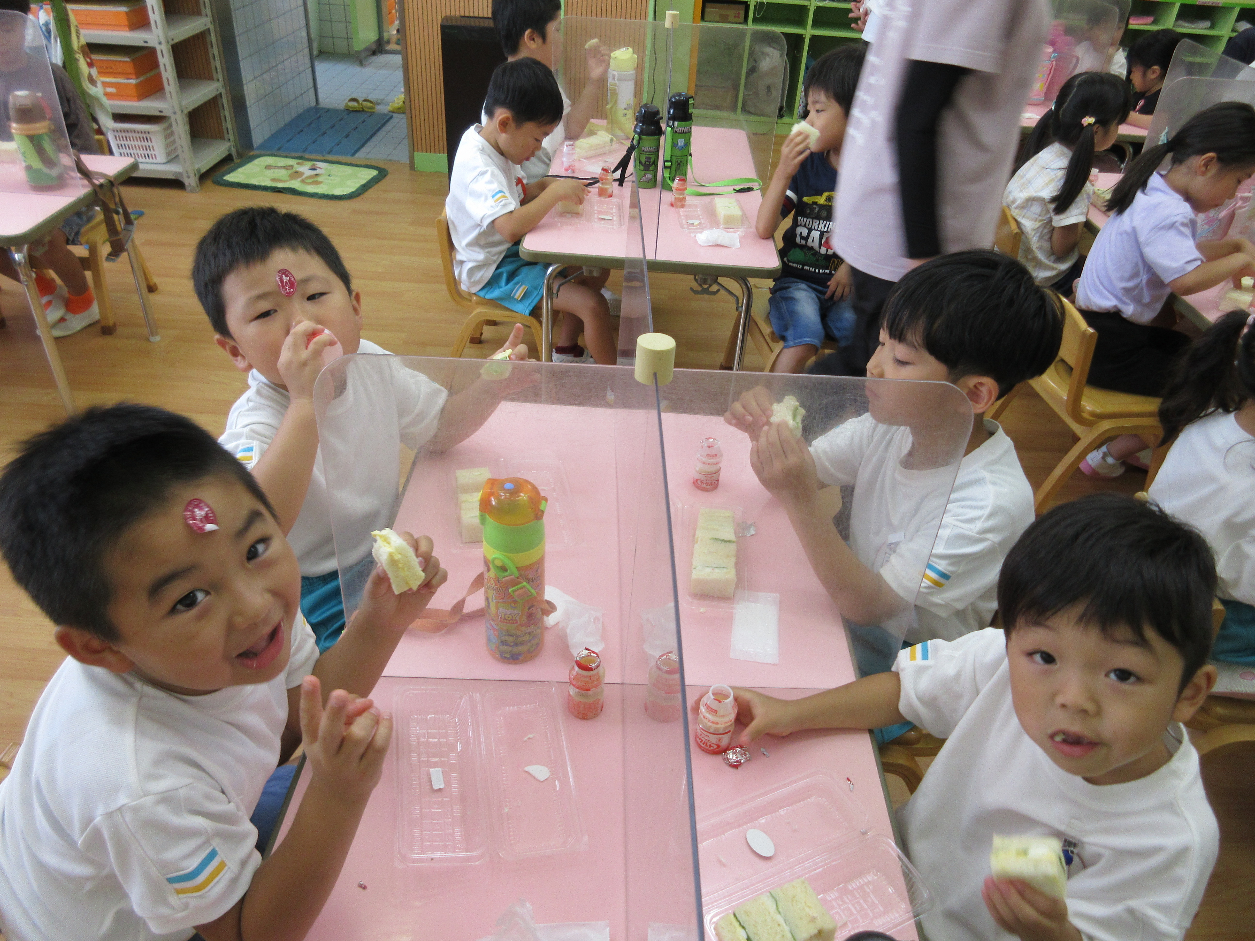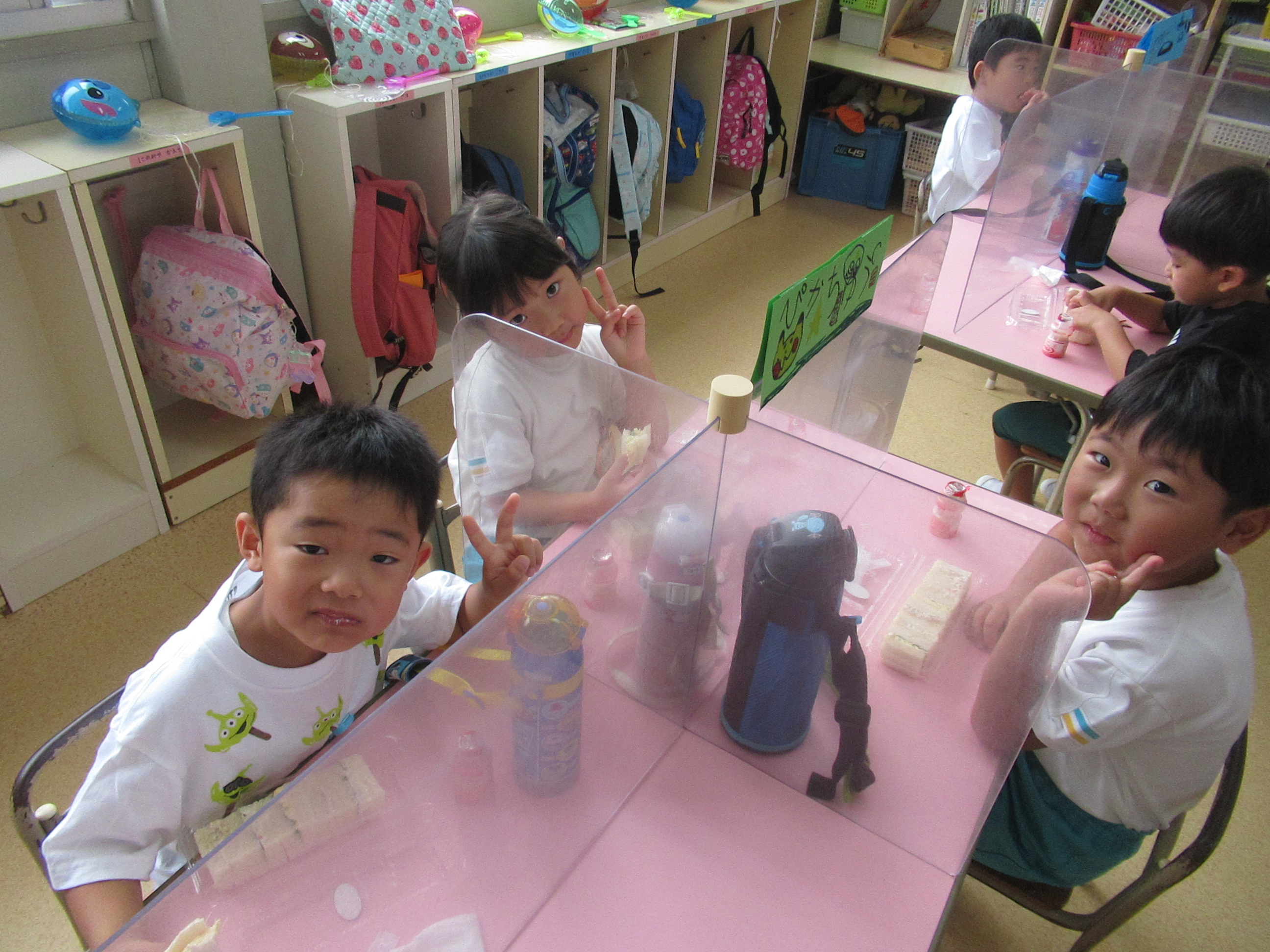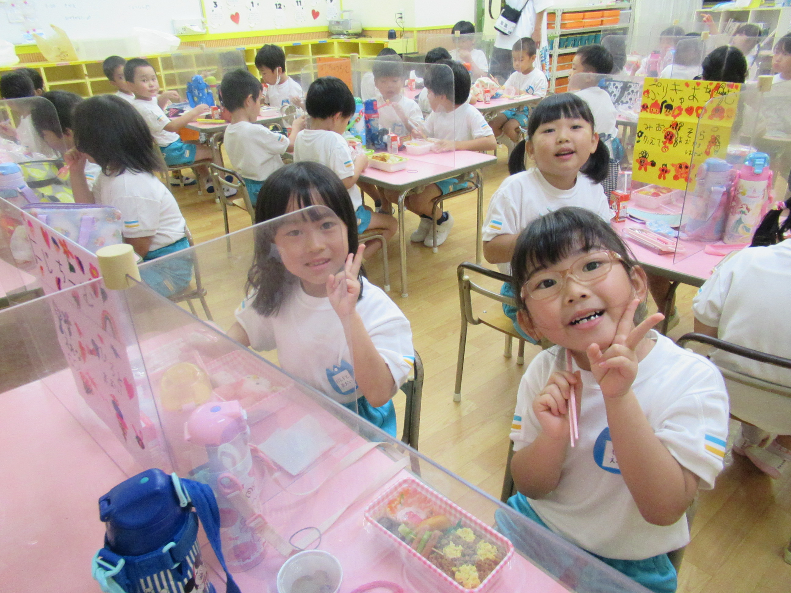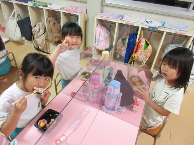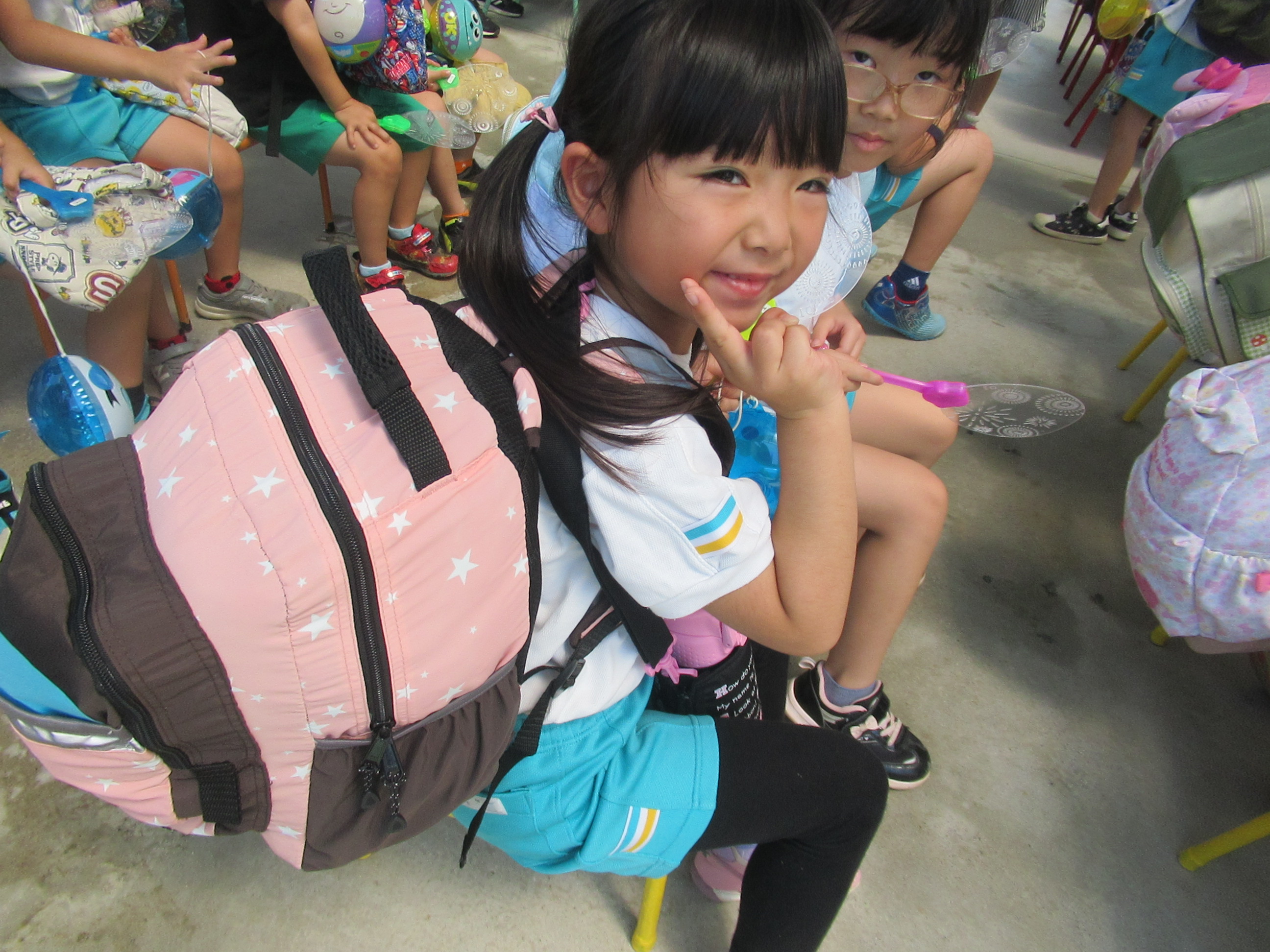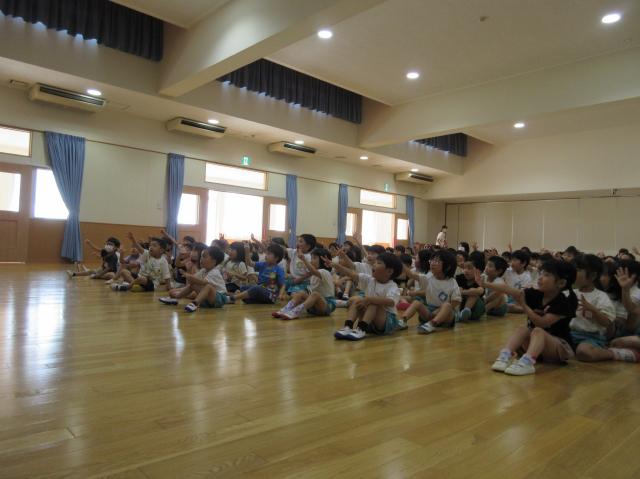 幼稚園に泊まって、みんなとご飯を食べて、寝て、遊んで、楽しかった!