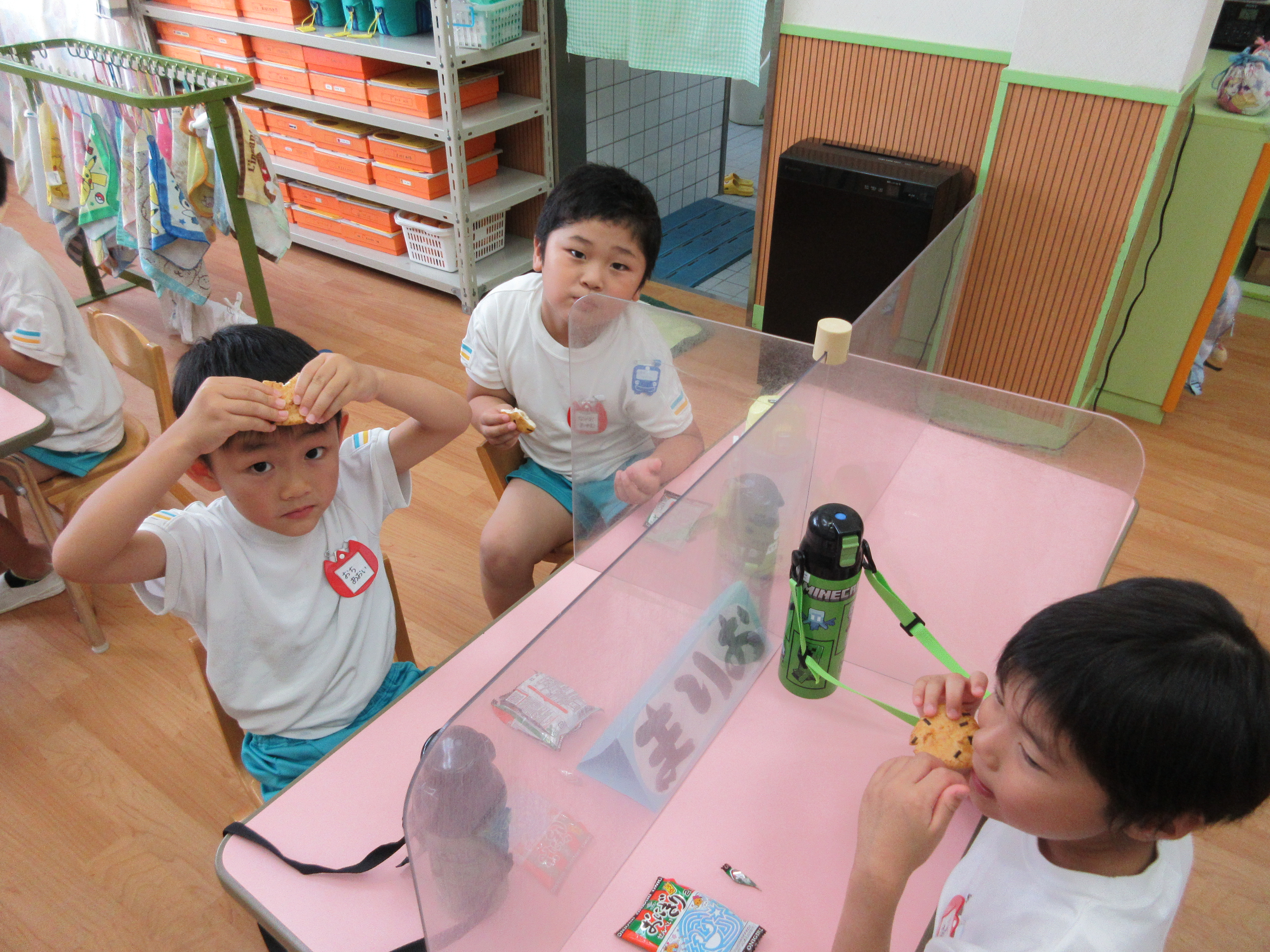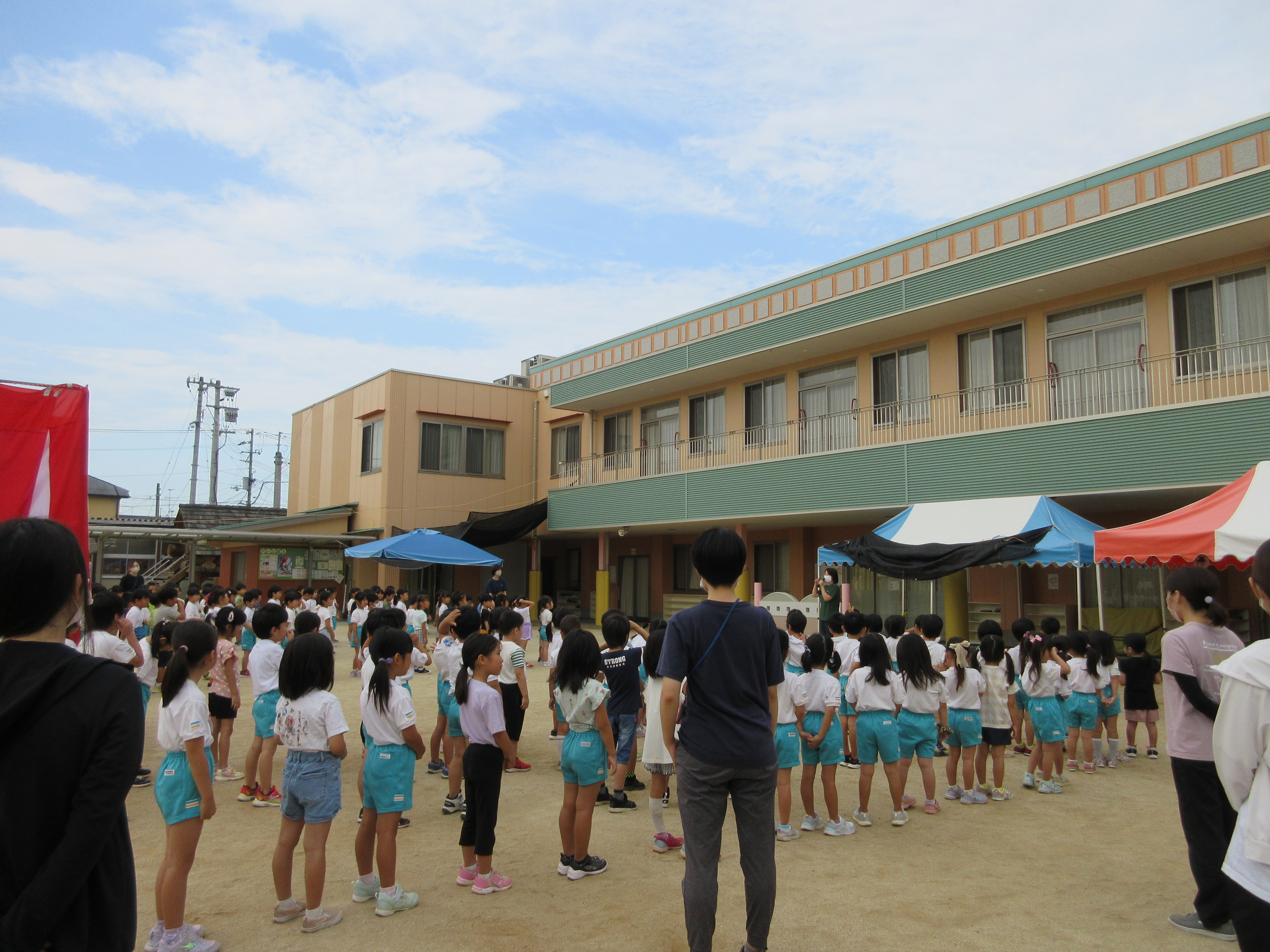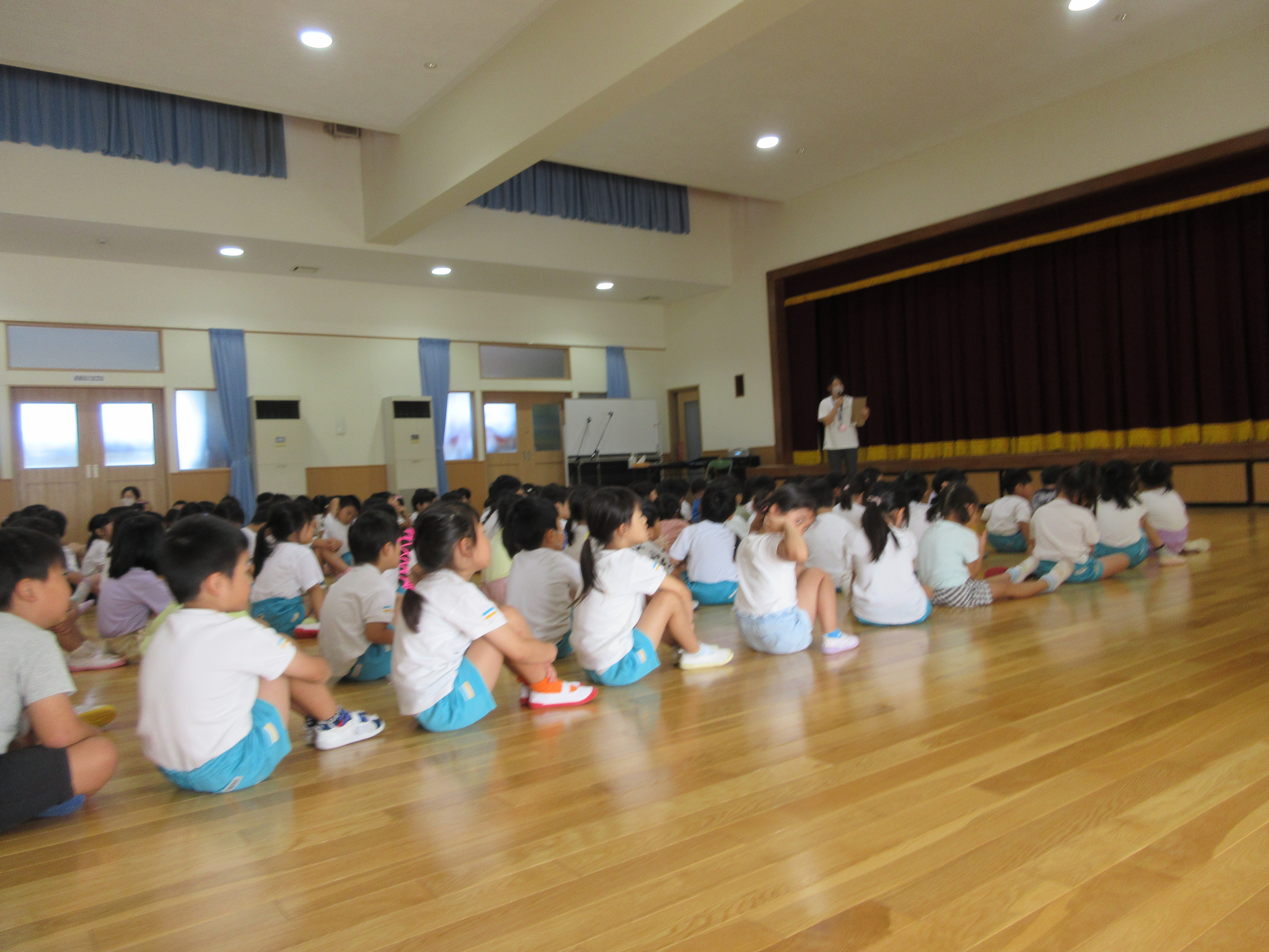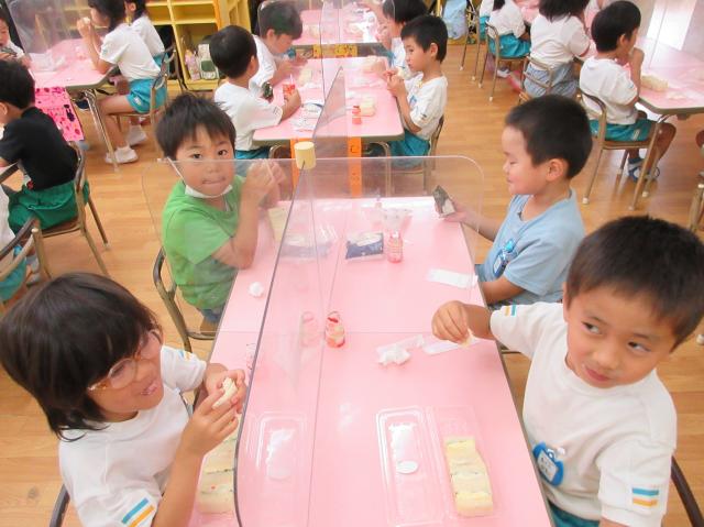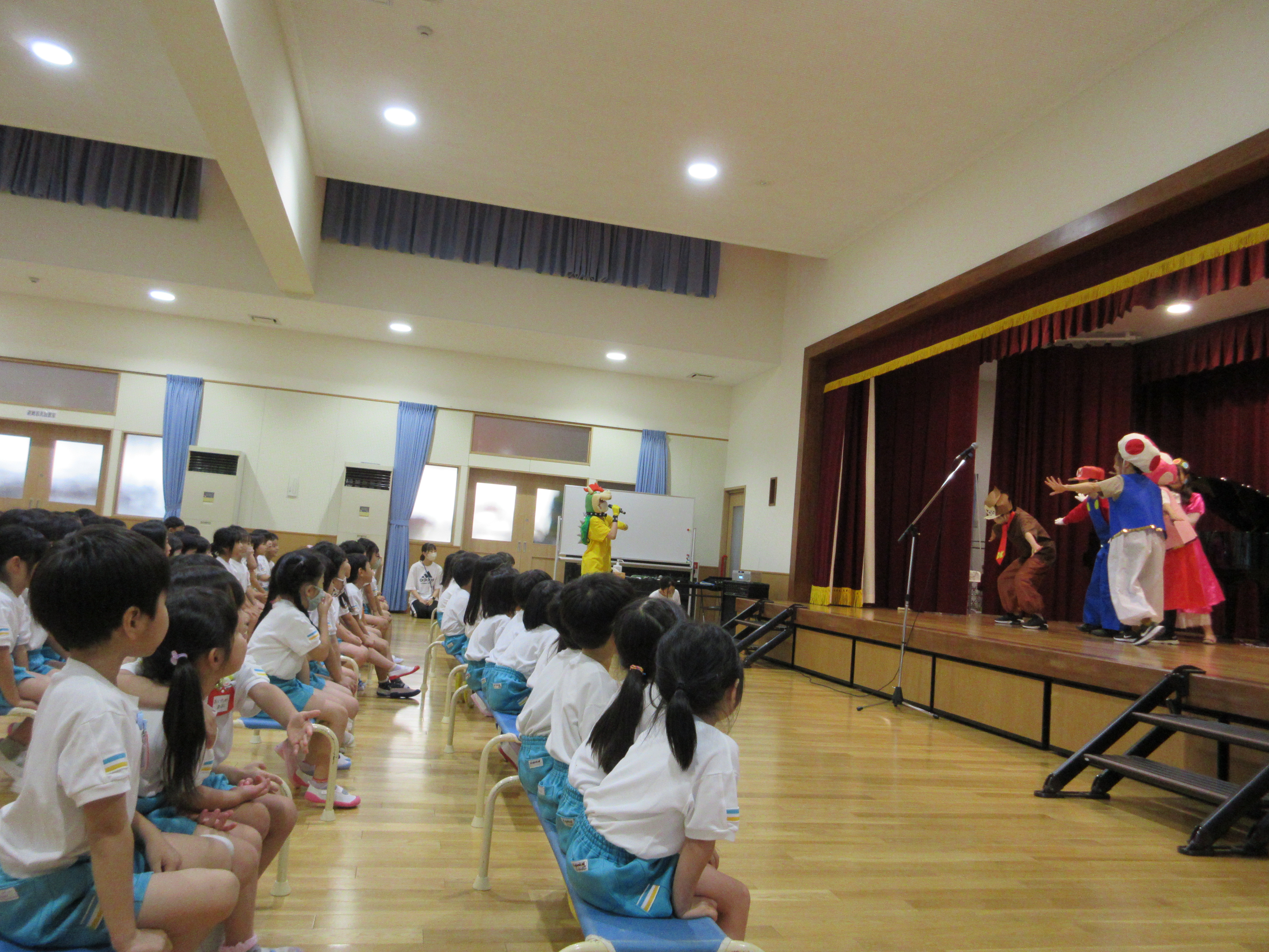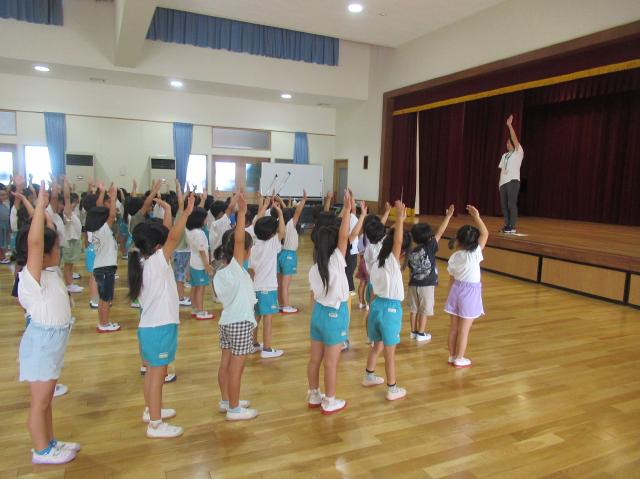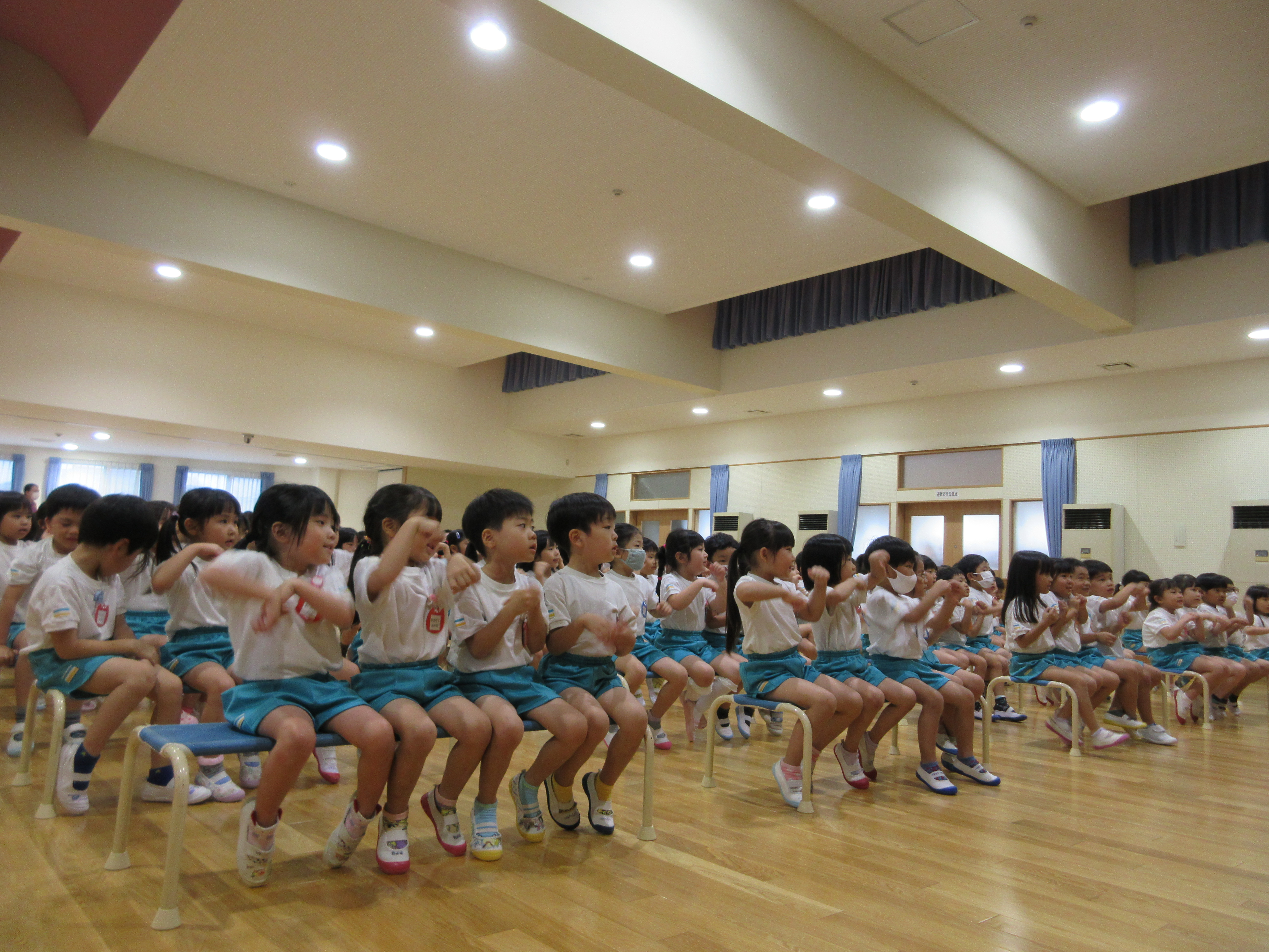幼稚園に泊まって、みんなとご飯を食べて、寝て、遊んで、楽しかった!