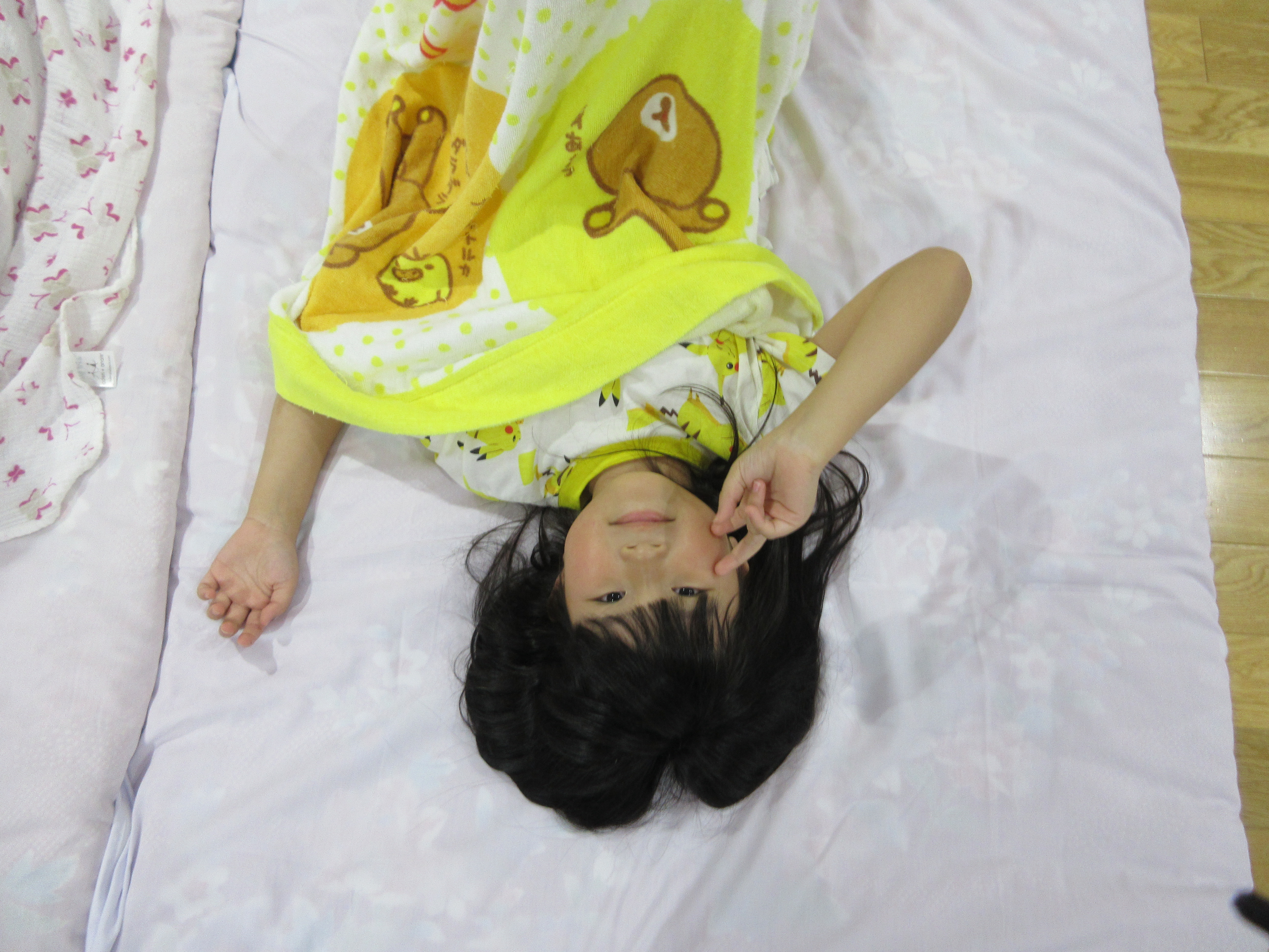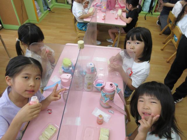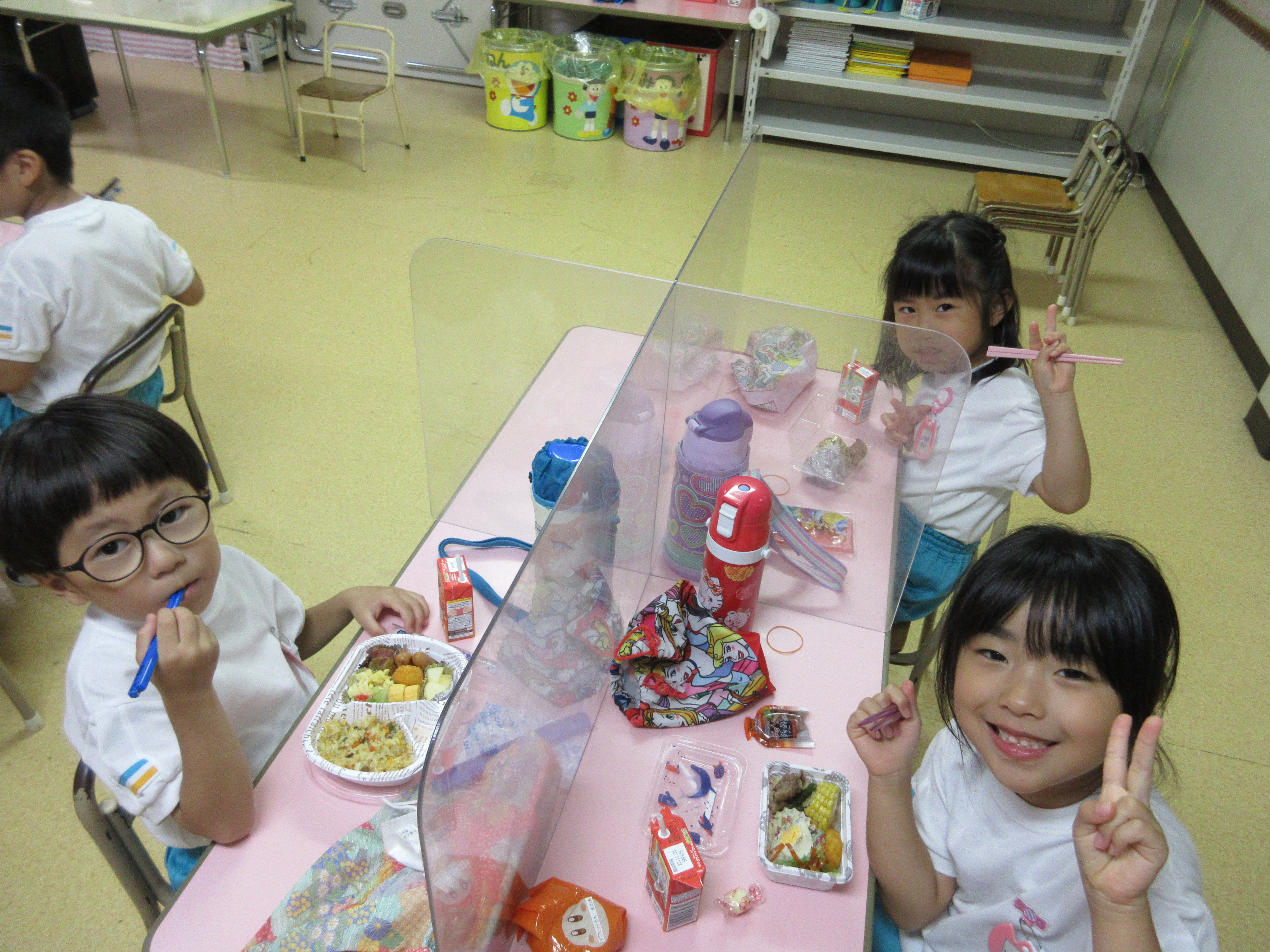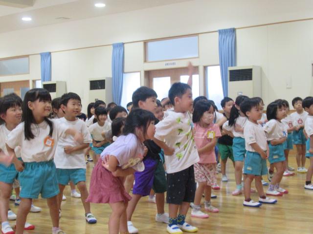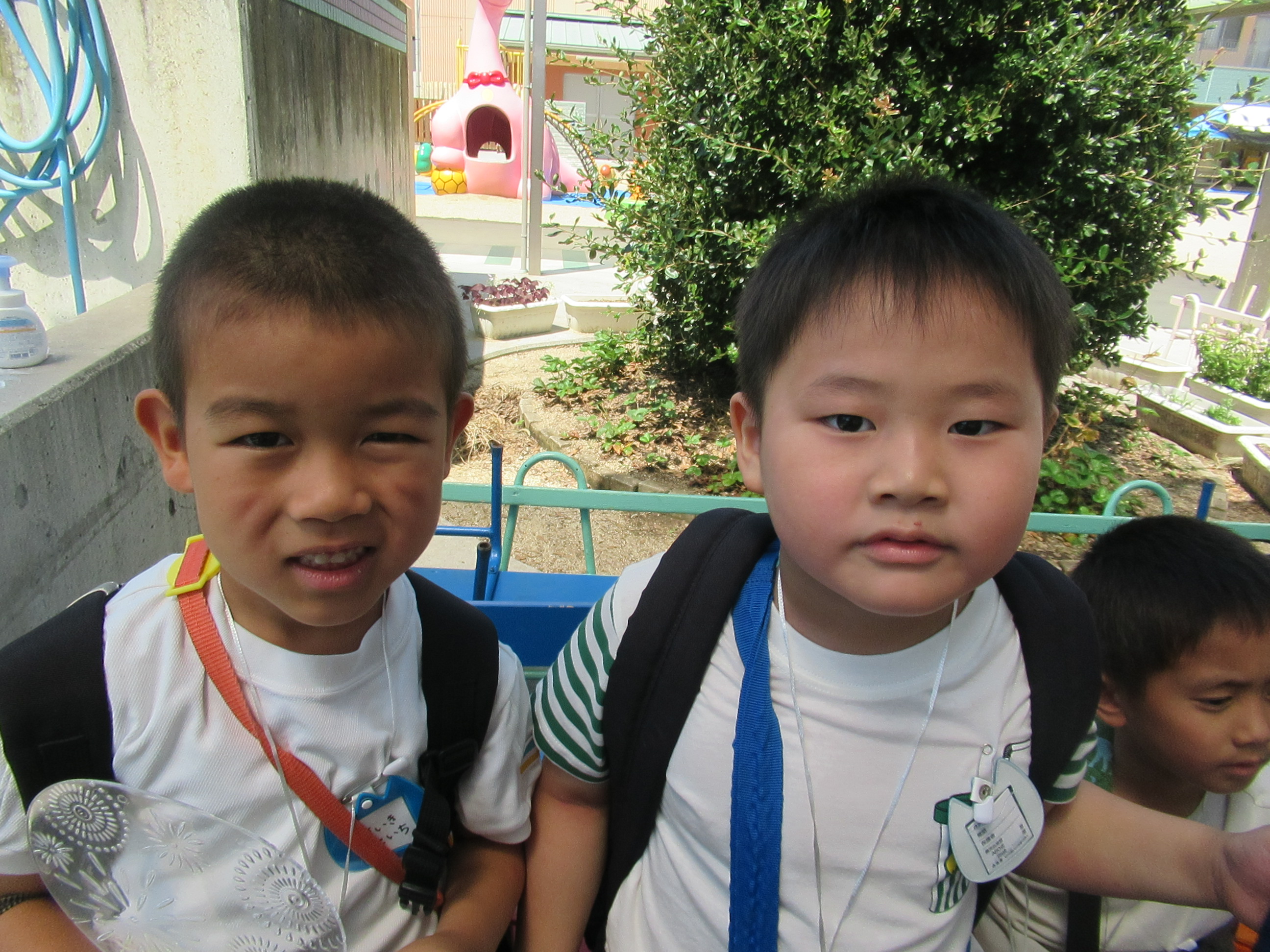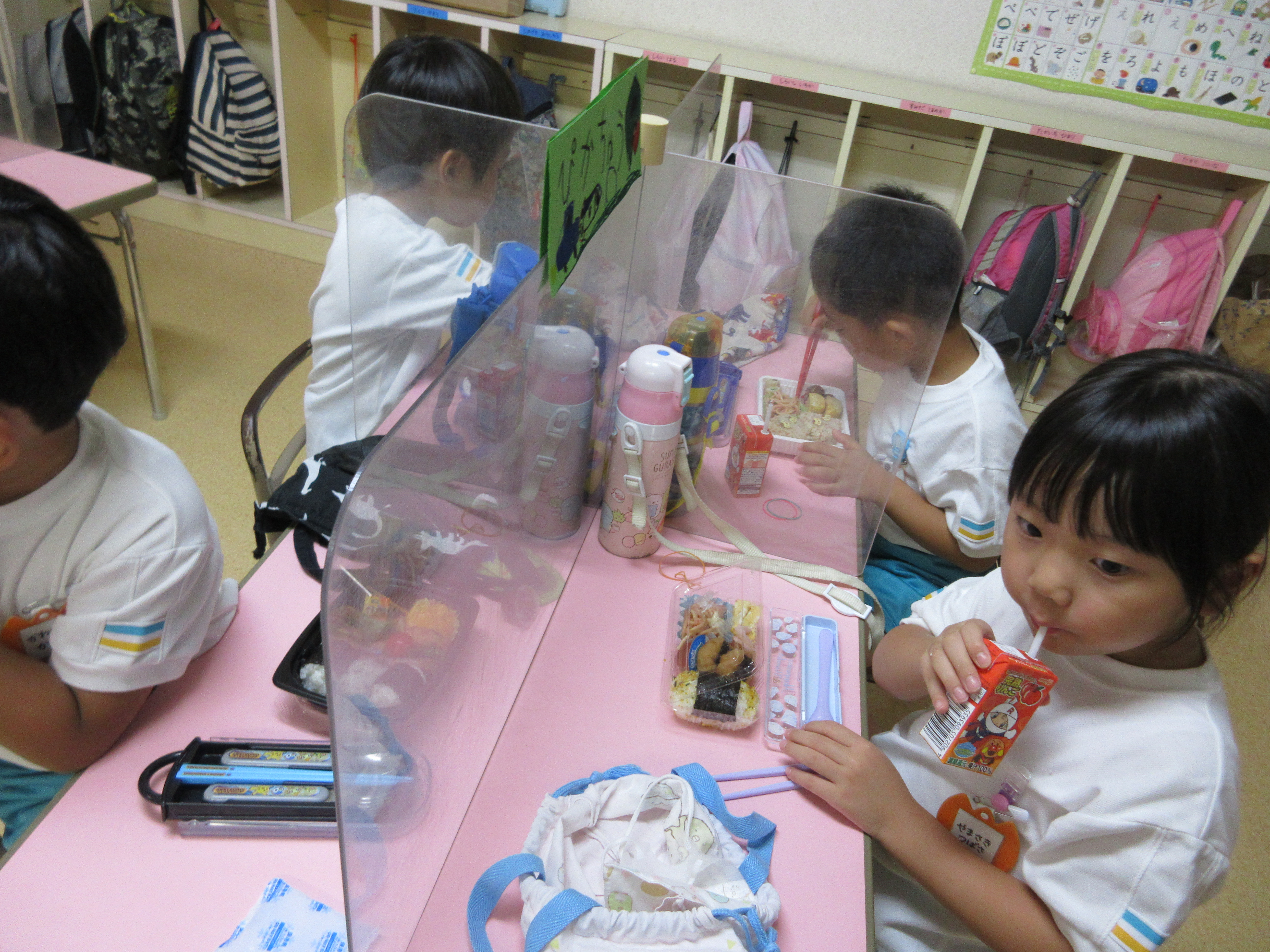 幼稚園に泊まって、みんなとご飯を食べて、寝て、遊んで、楽しかった!