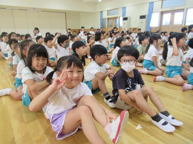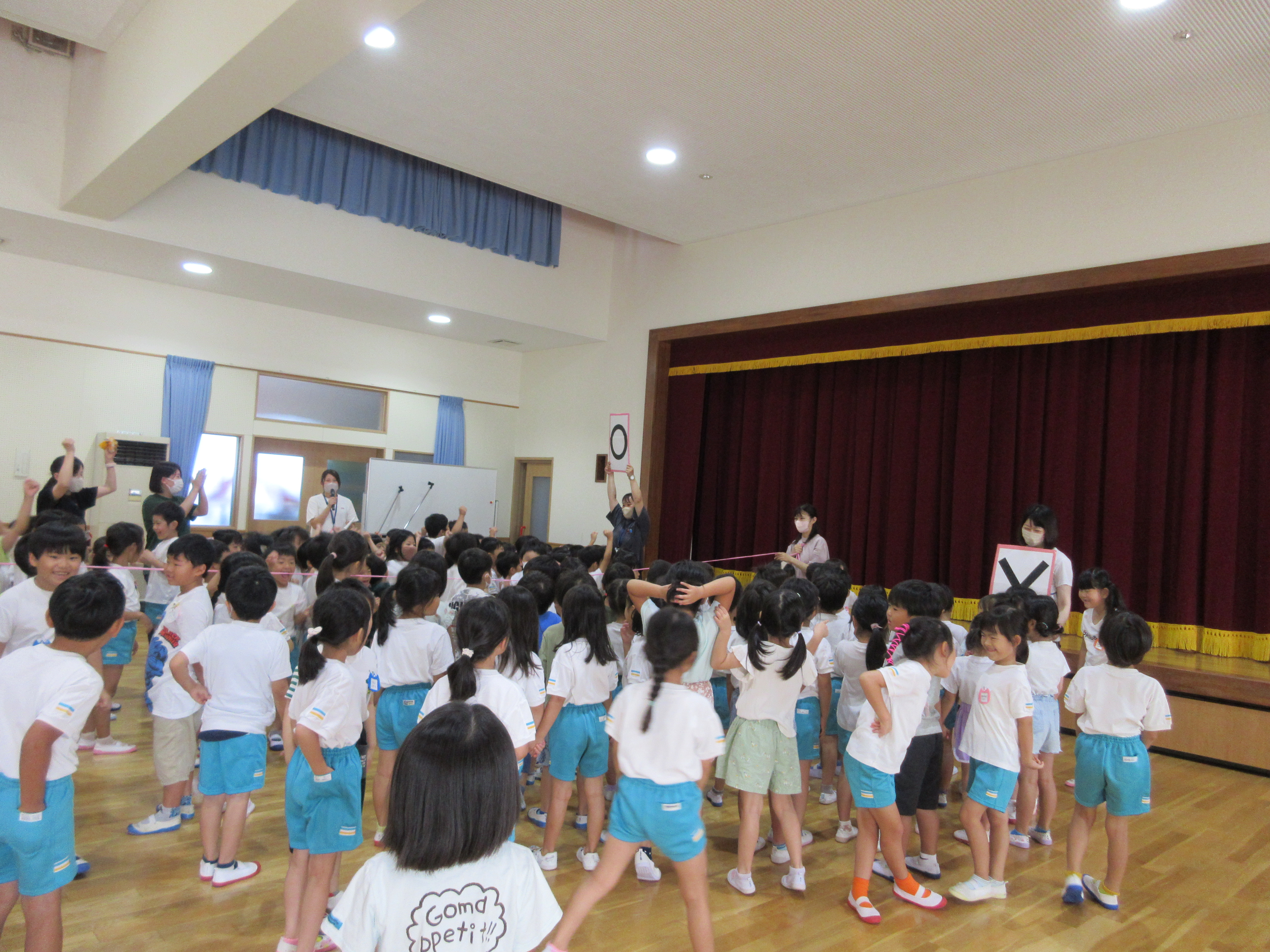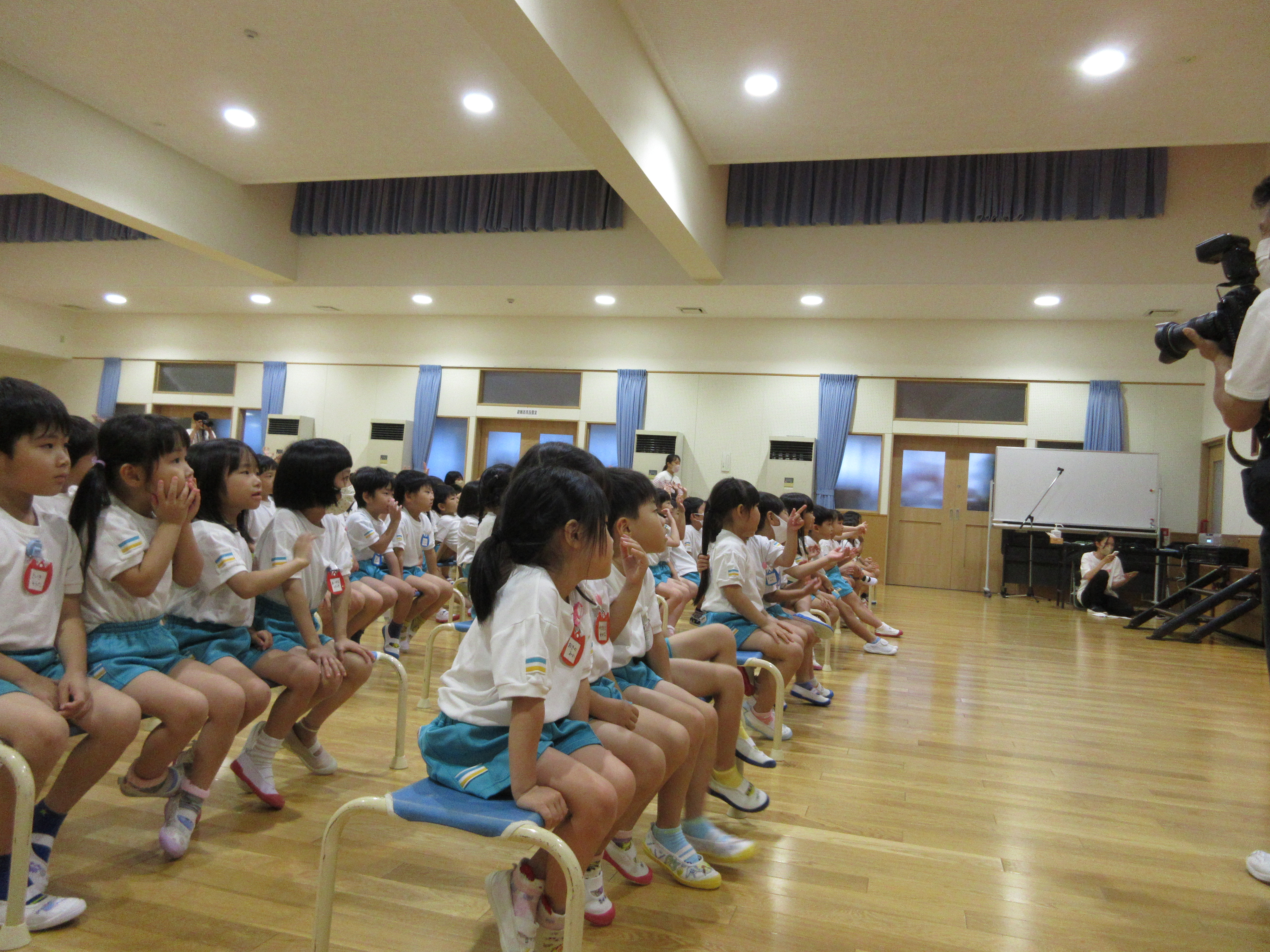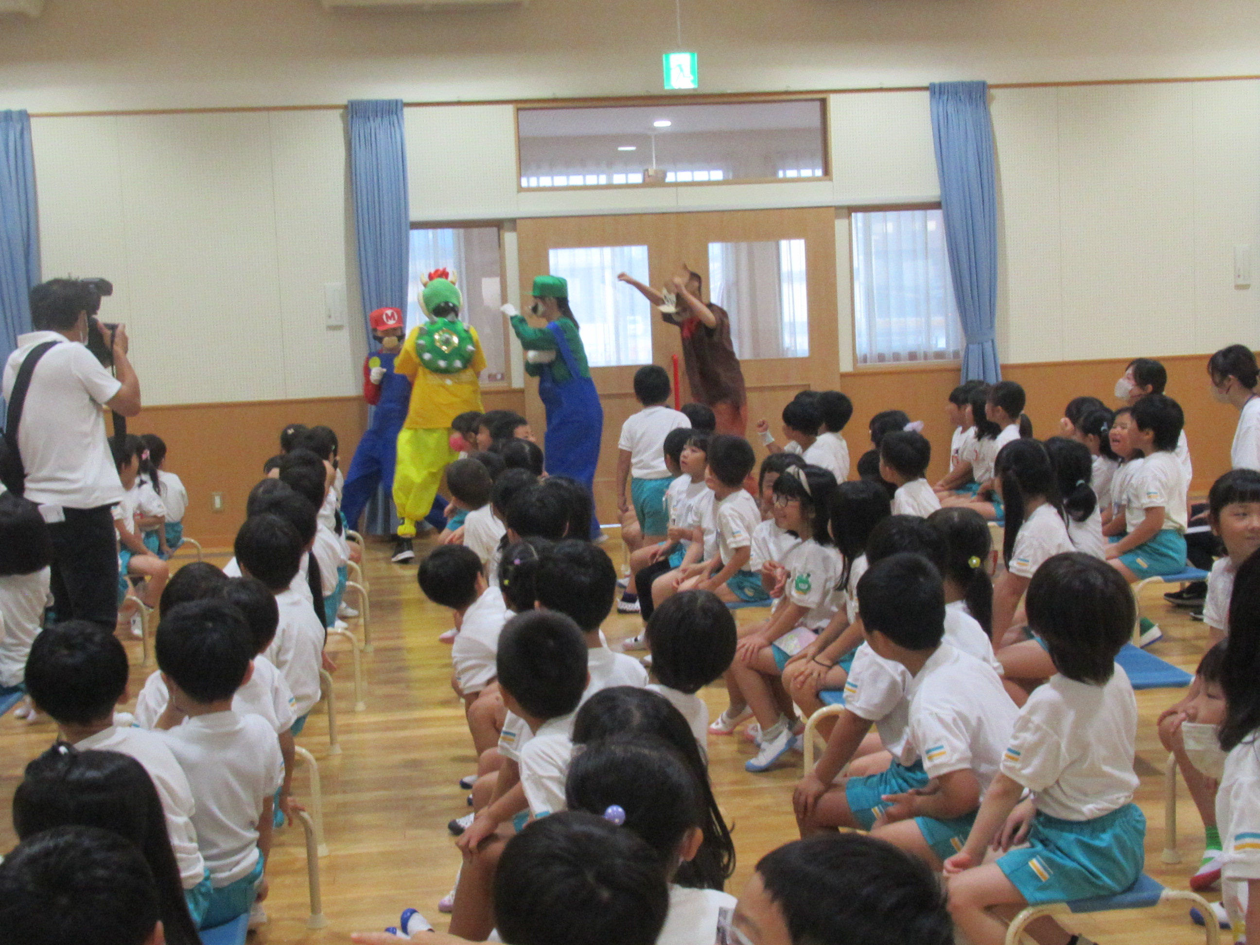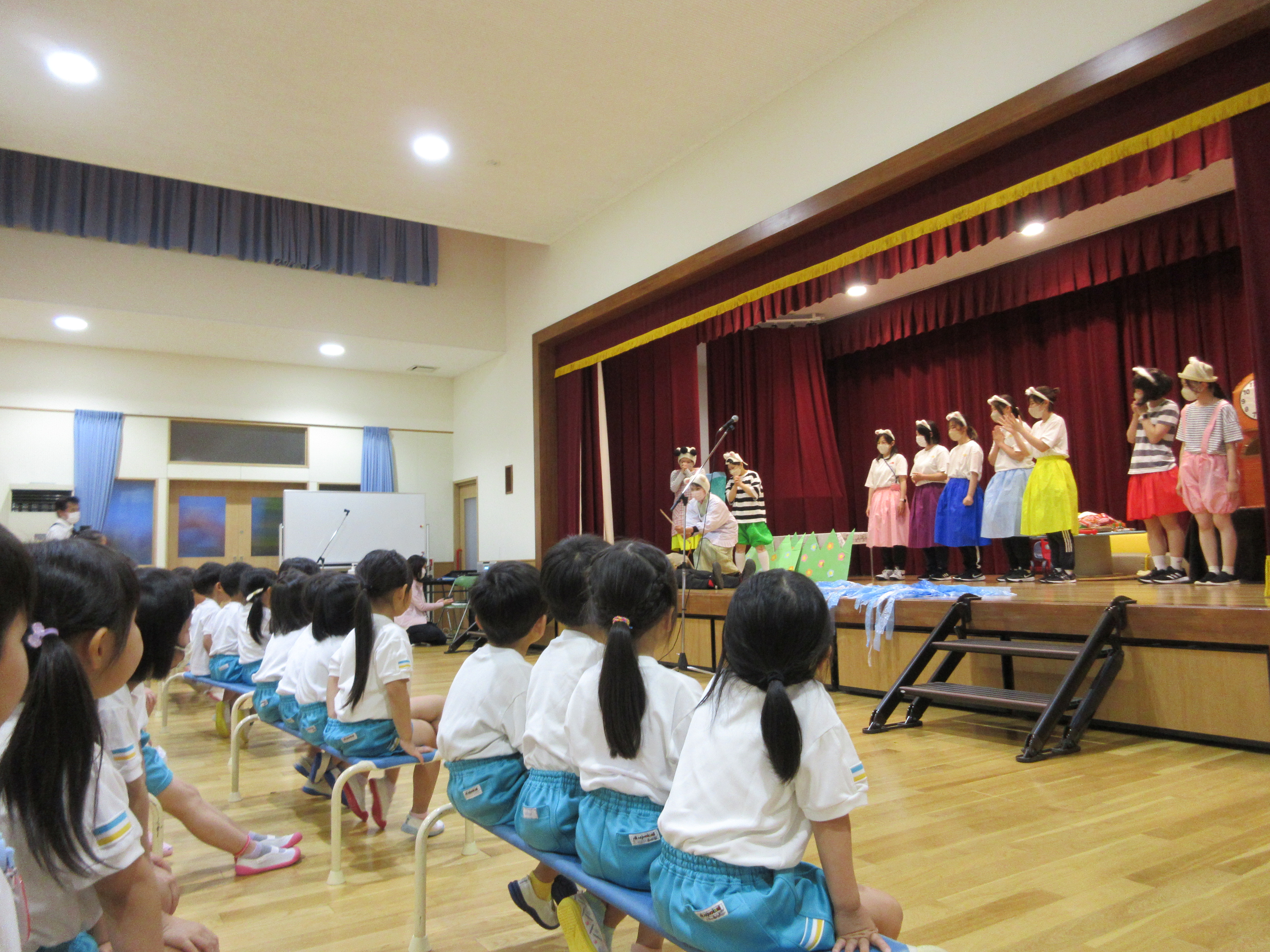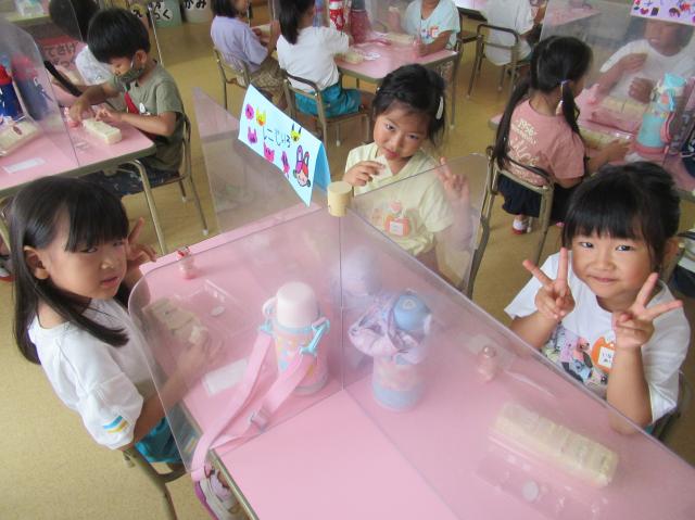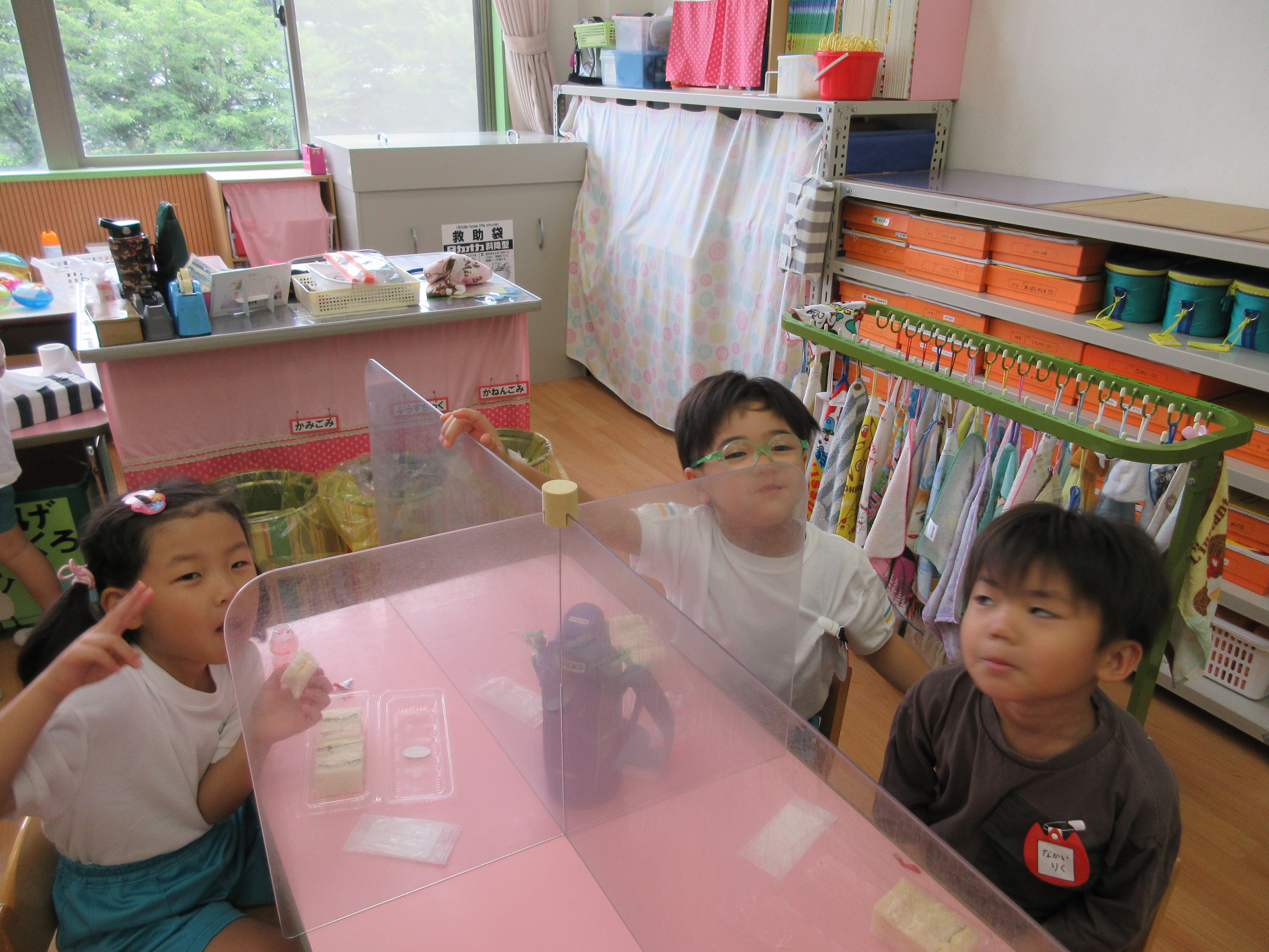 幼稚園に泊まって、みんなとご飯を食べて、寝て、遊んで、楽しかった!