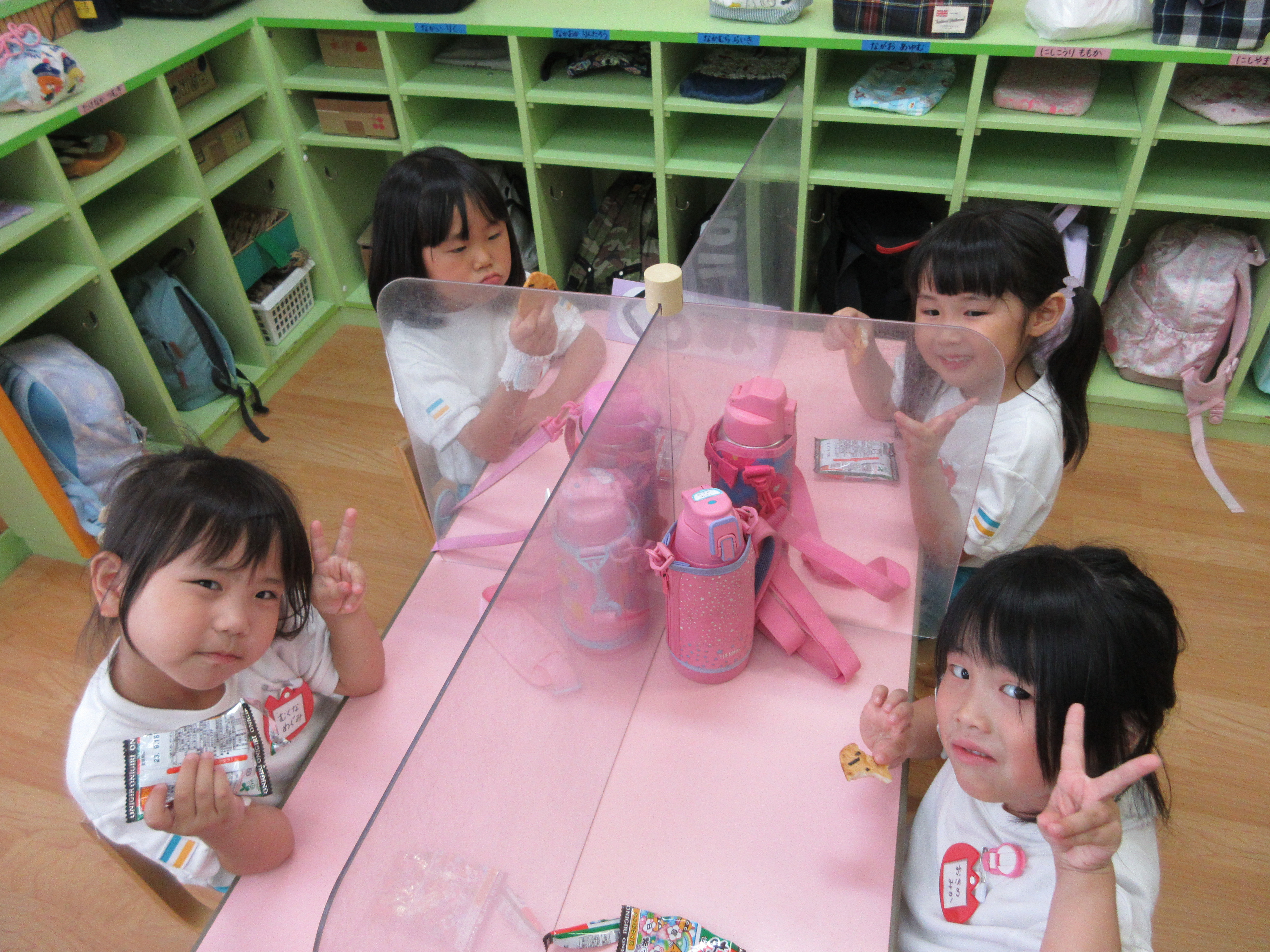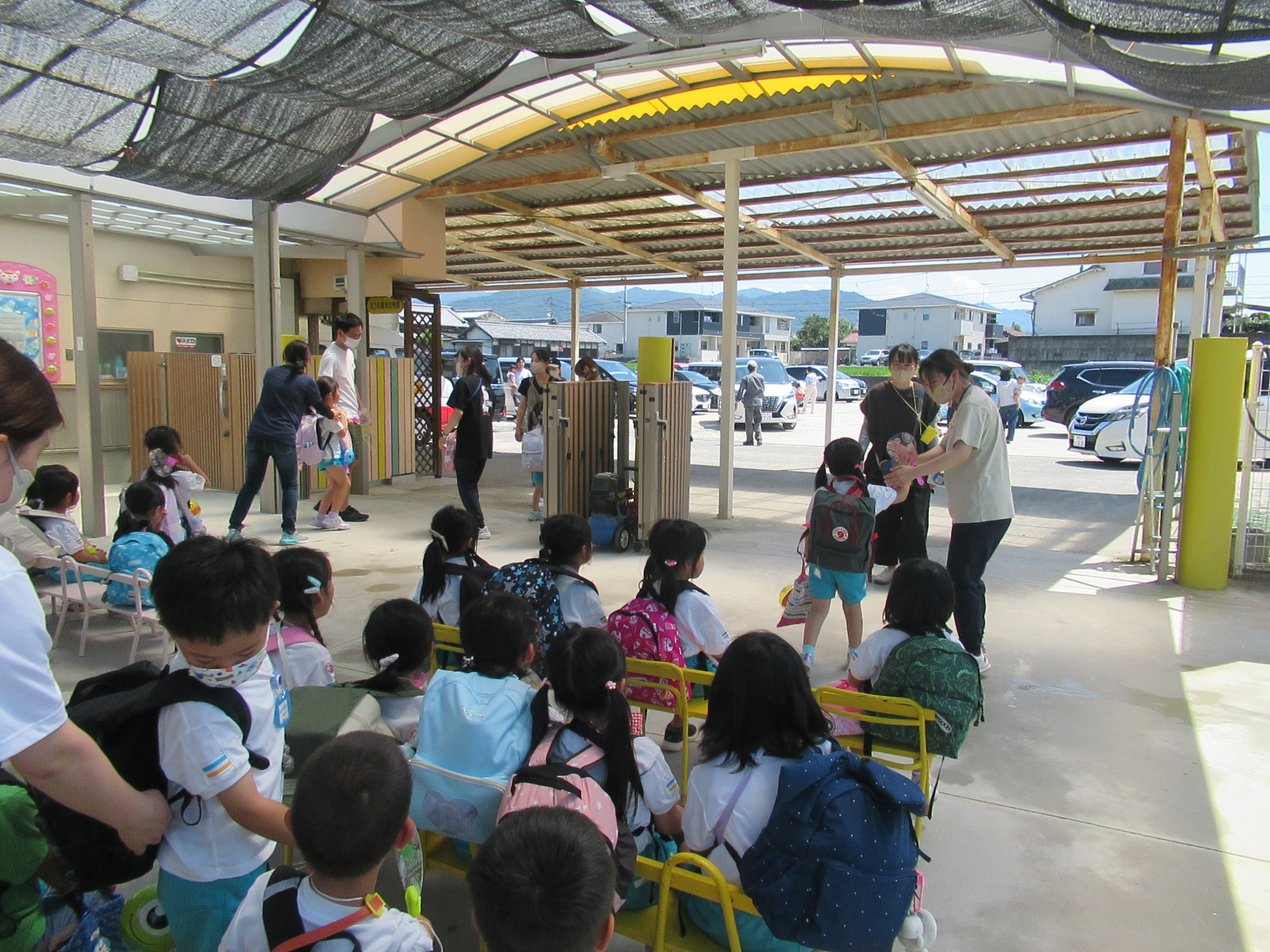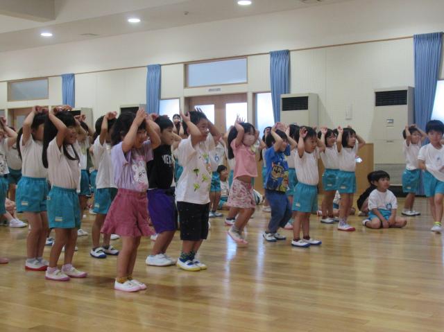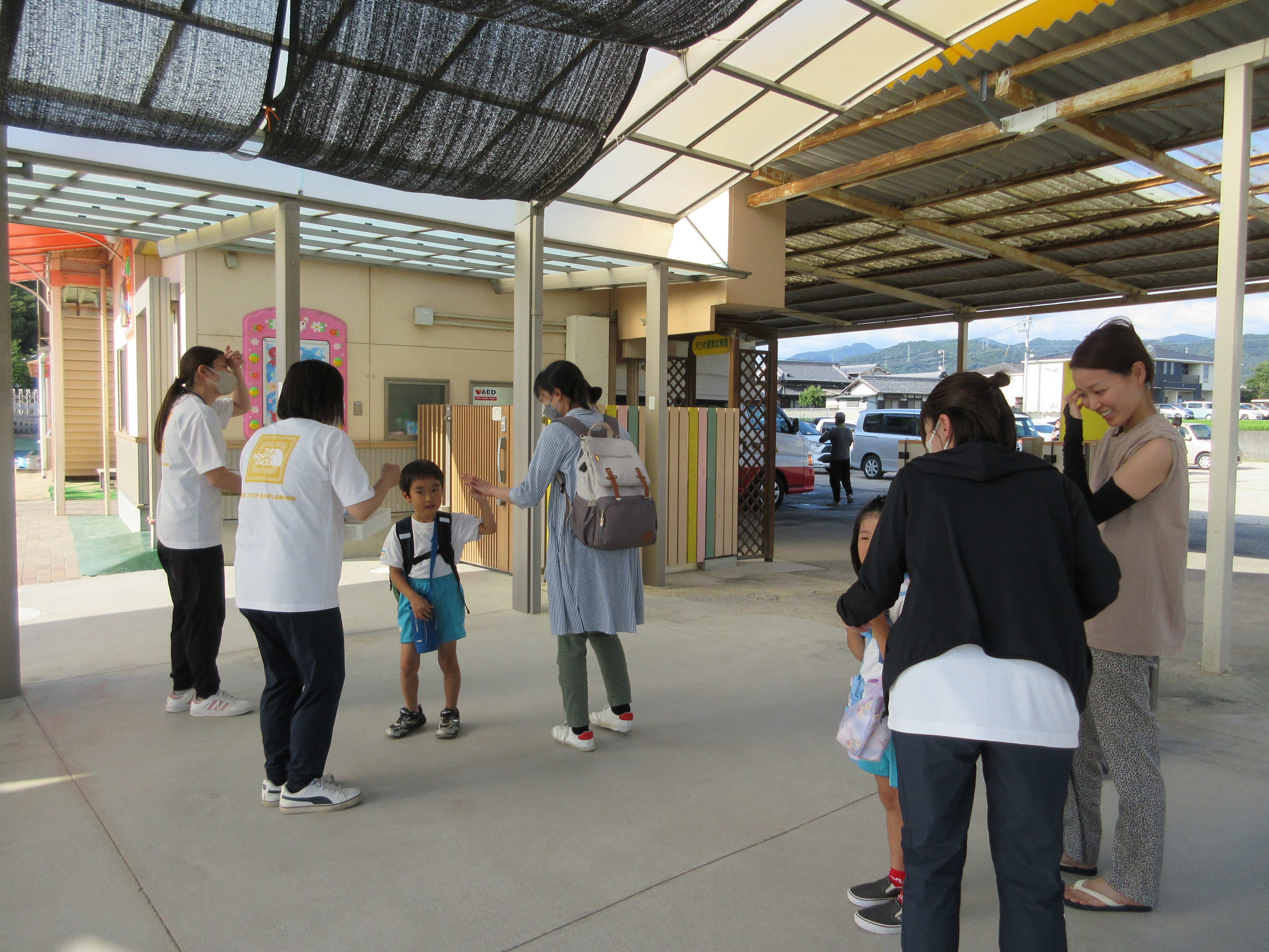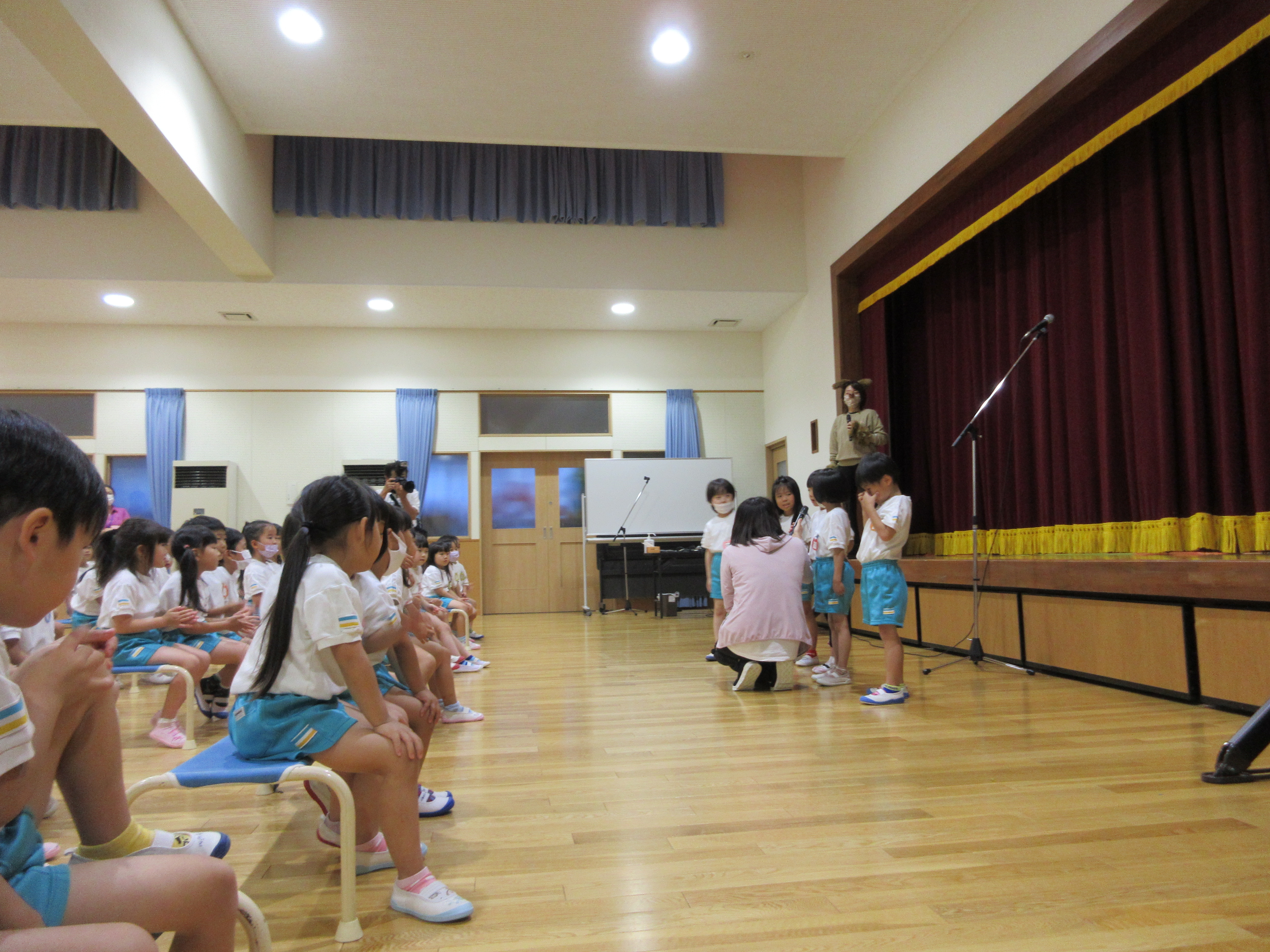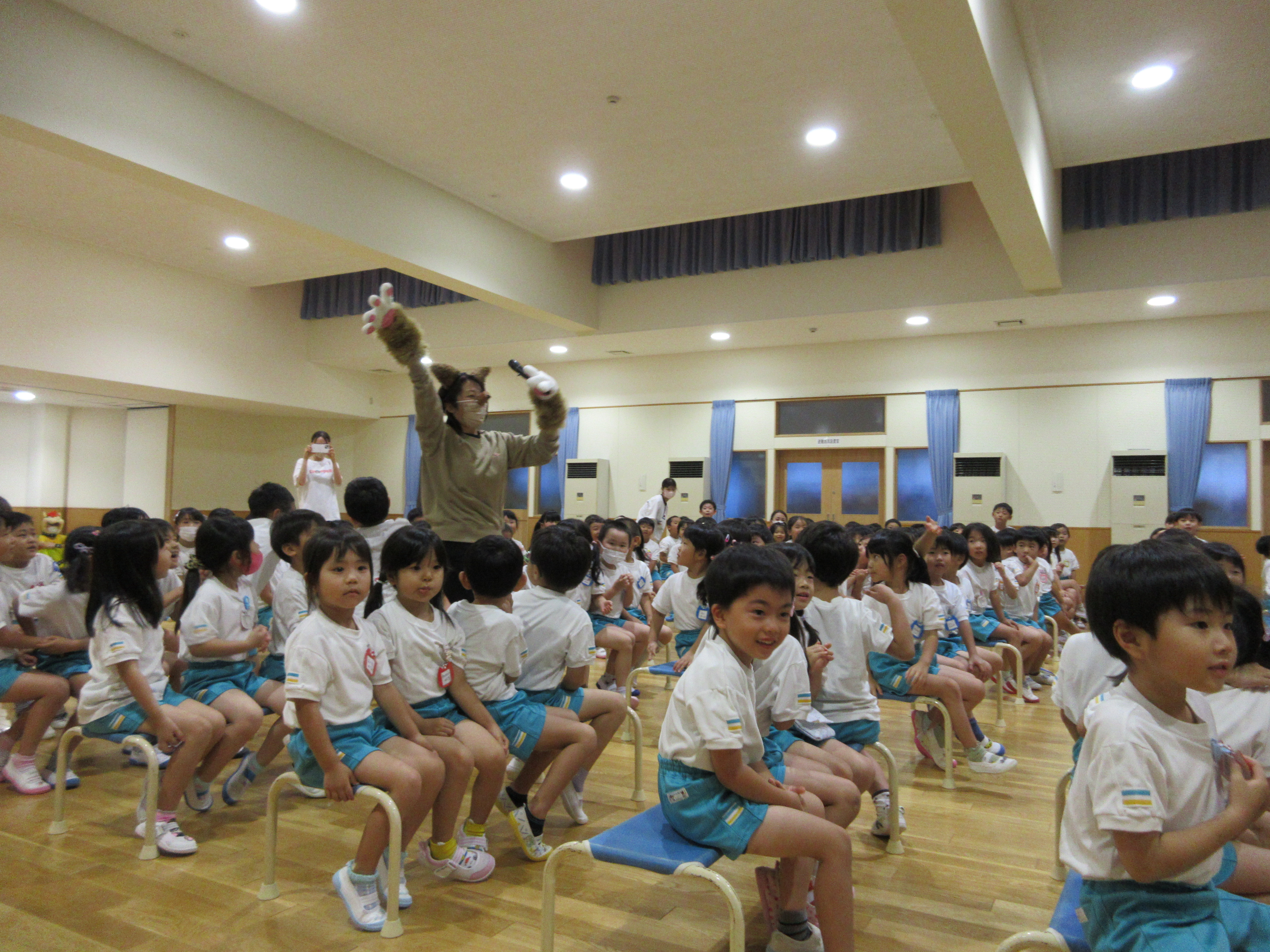 幼稚園に泊まって、みんなとご飯を食べて、寝て、遊んで、楽しかった!