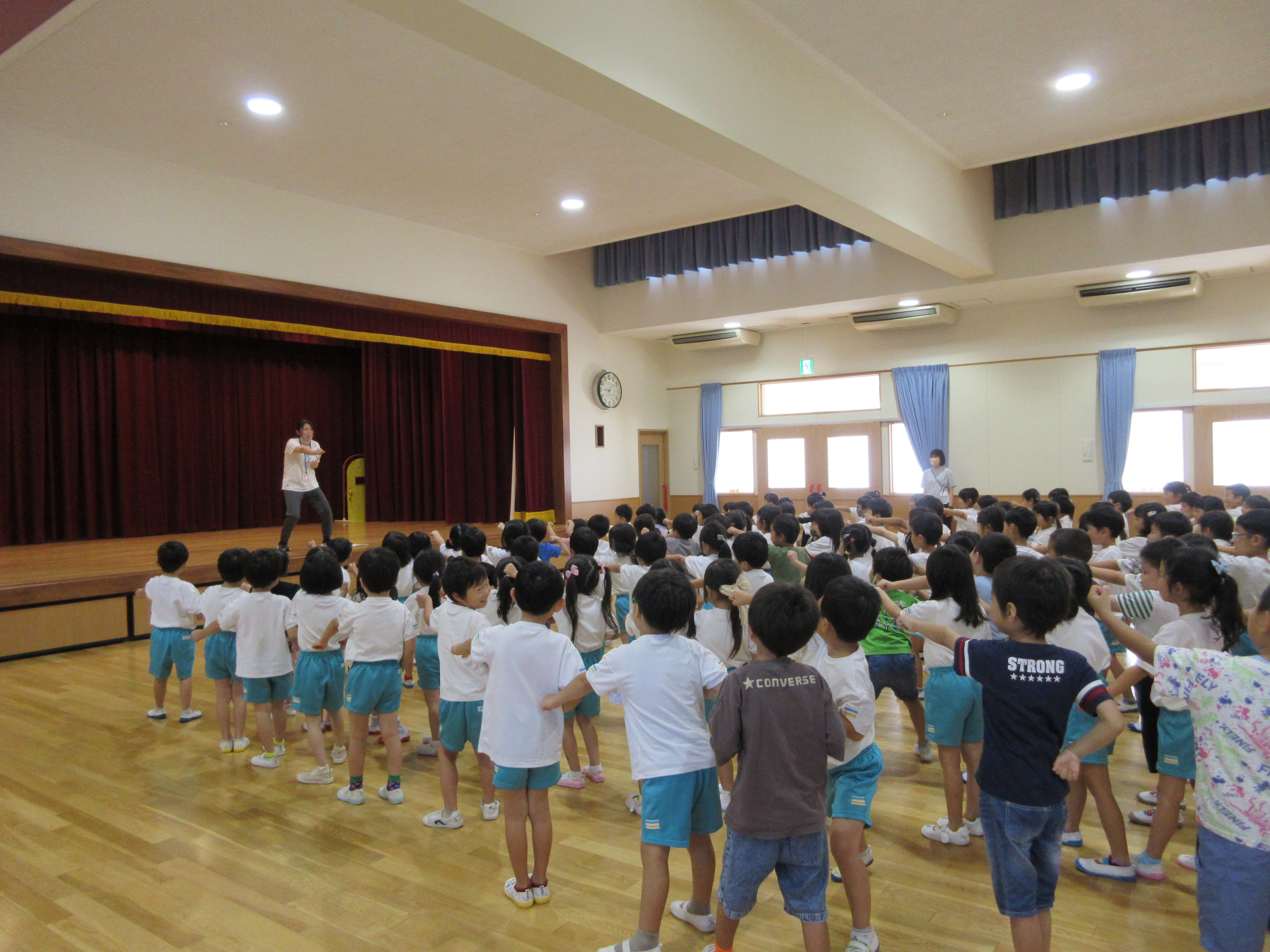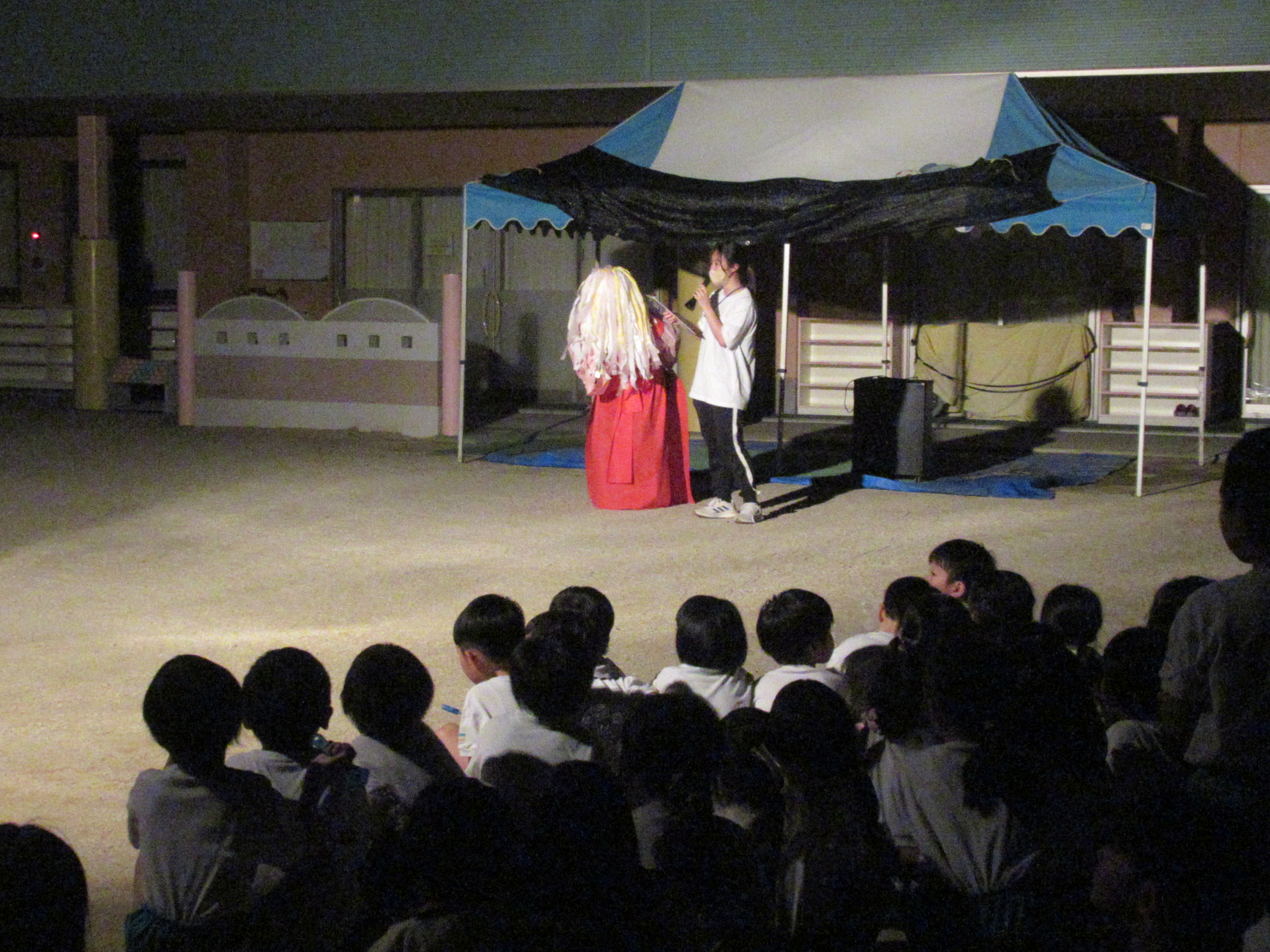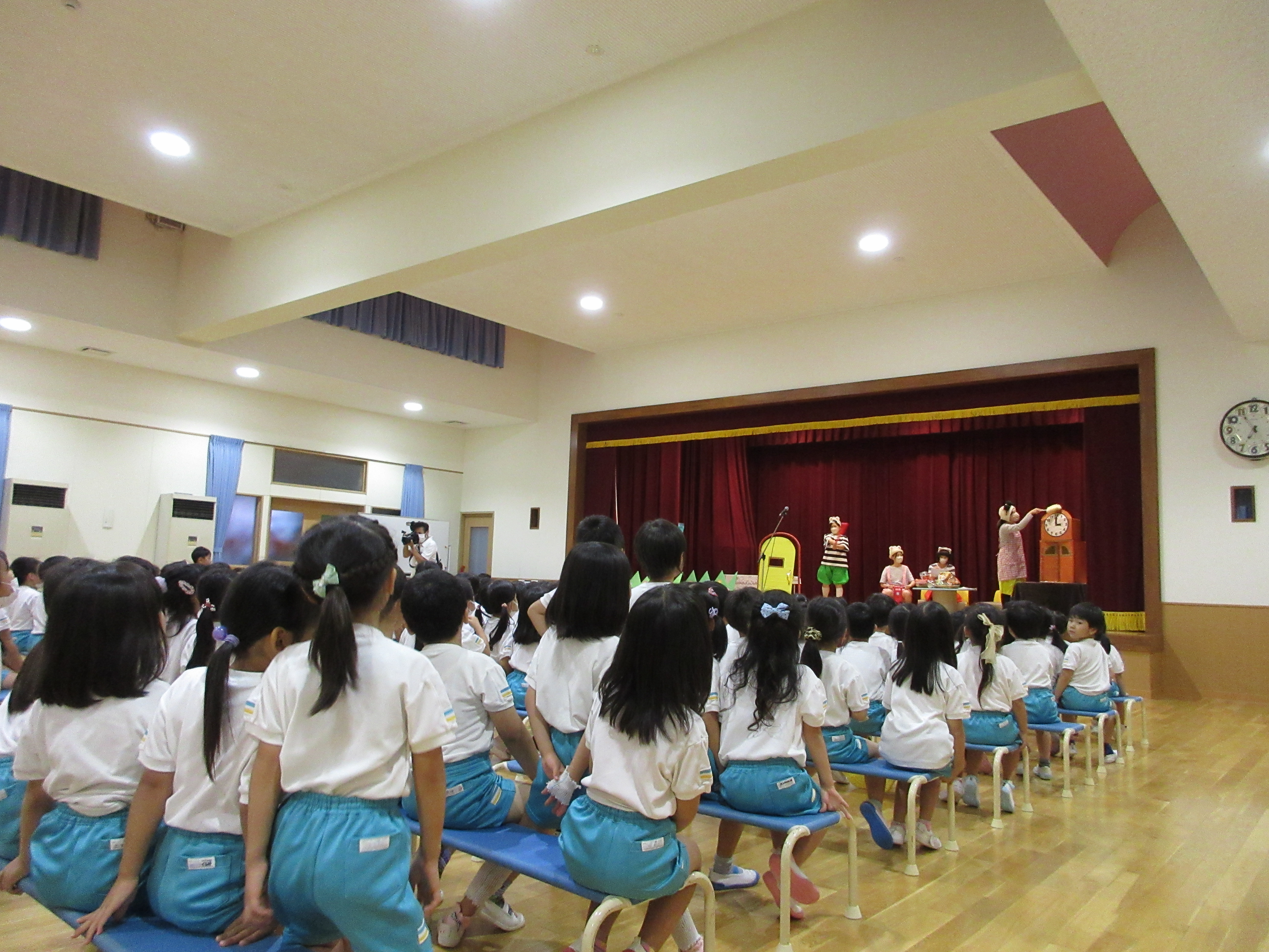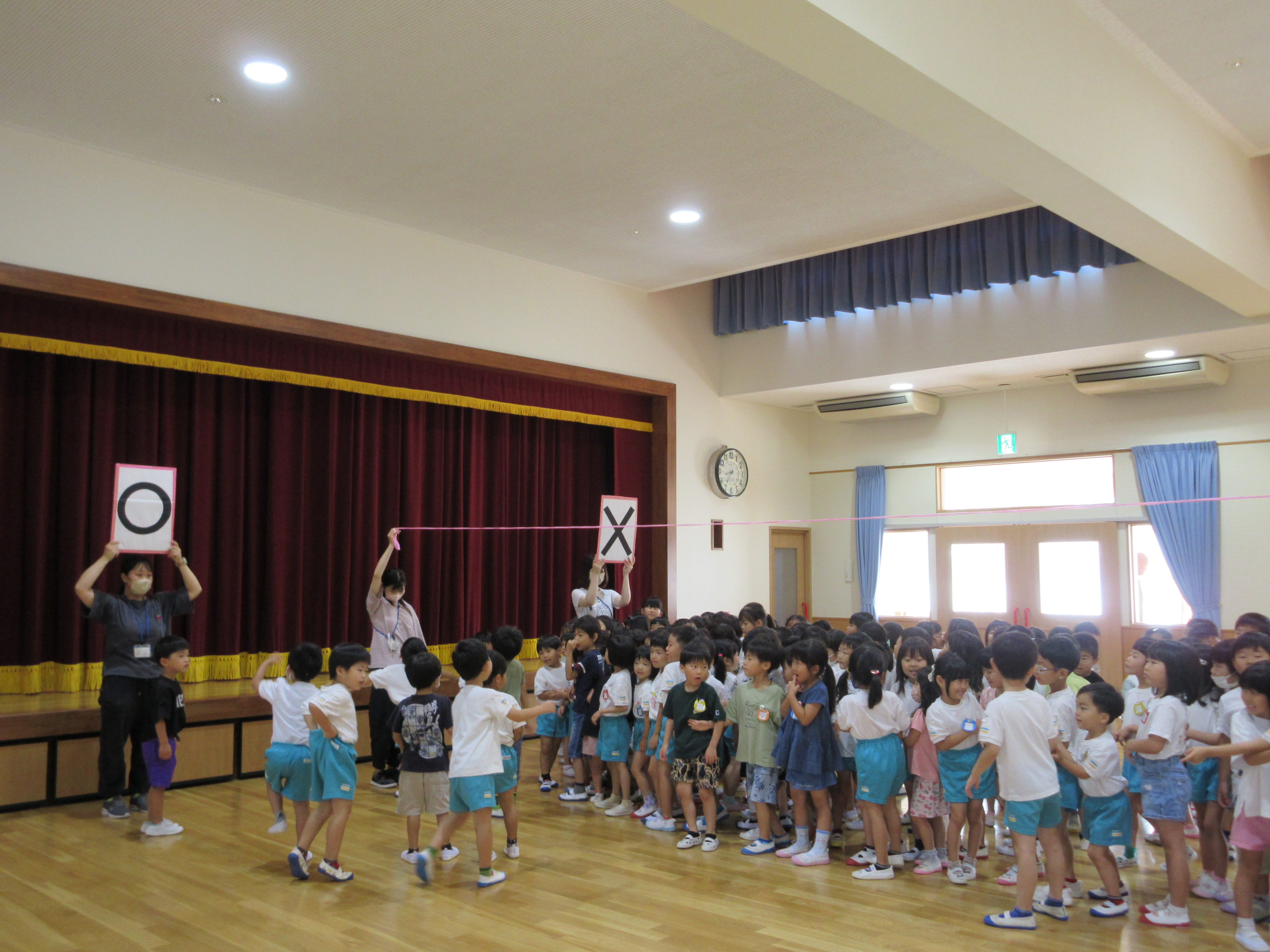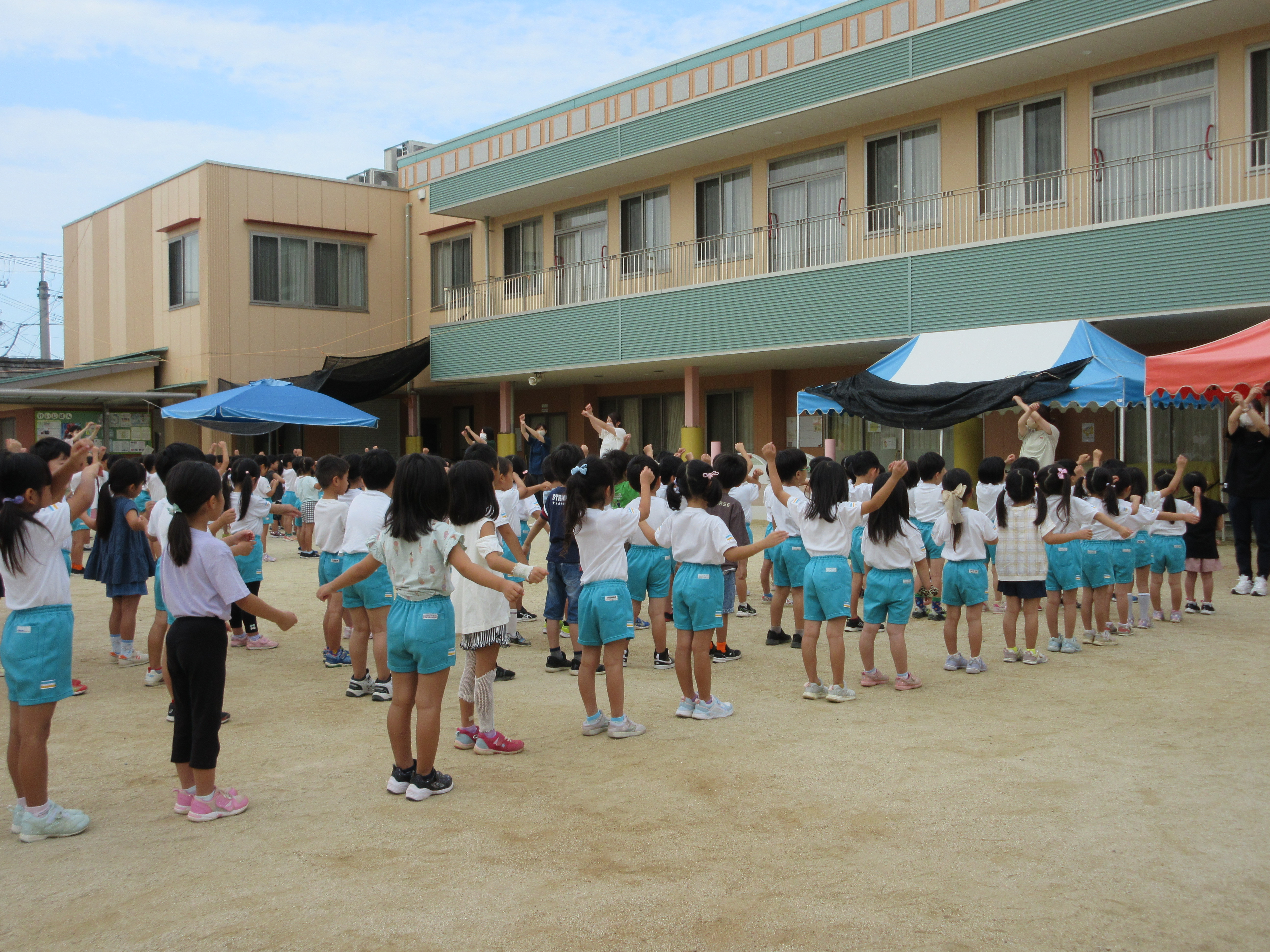 幼稚園に泊まって、みんなとご飯を食べて、寝て、遊んで、楽しかった!