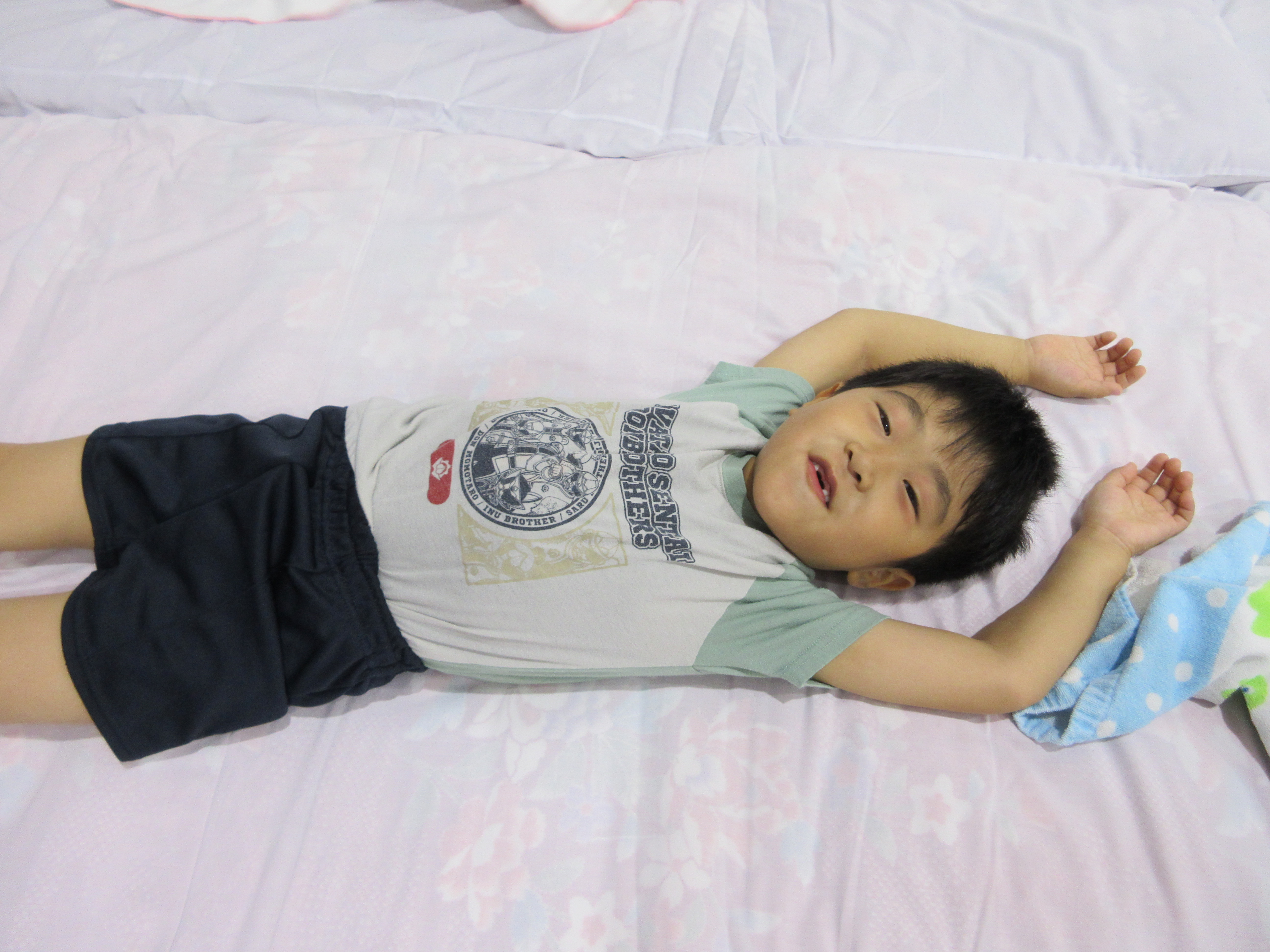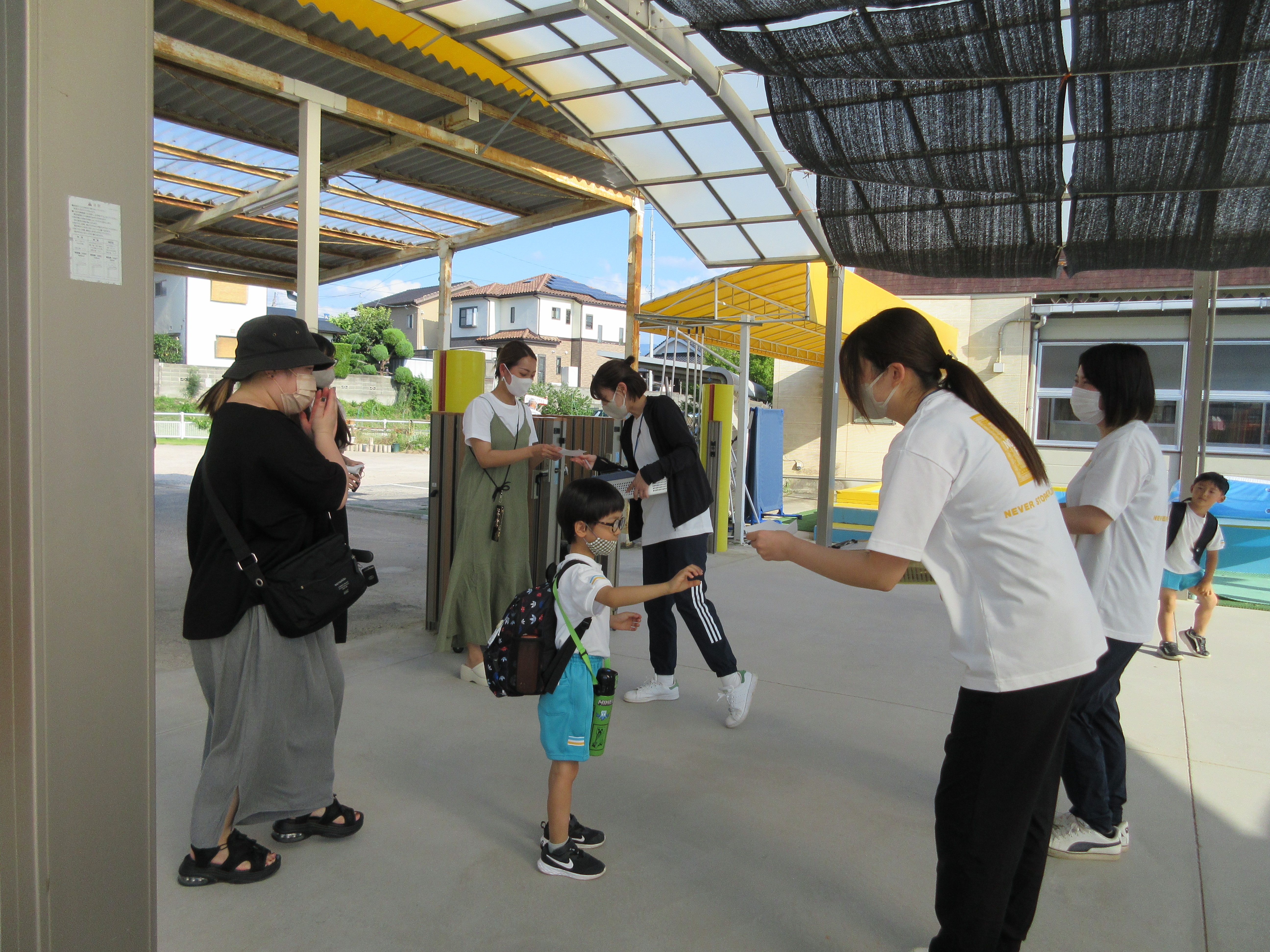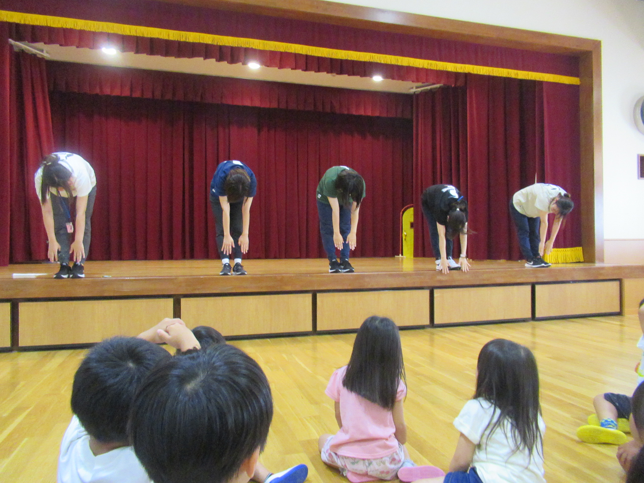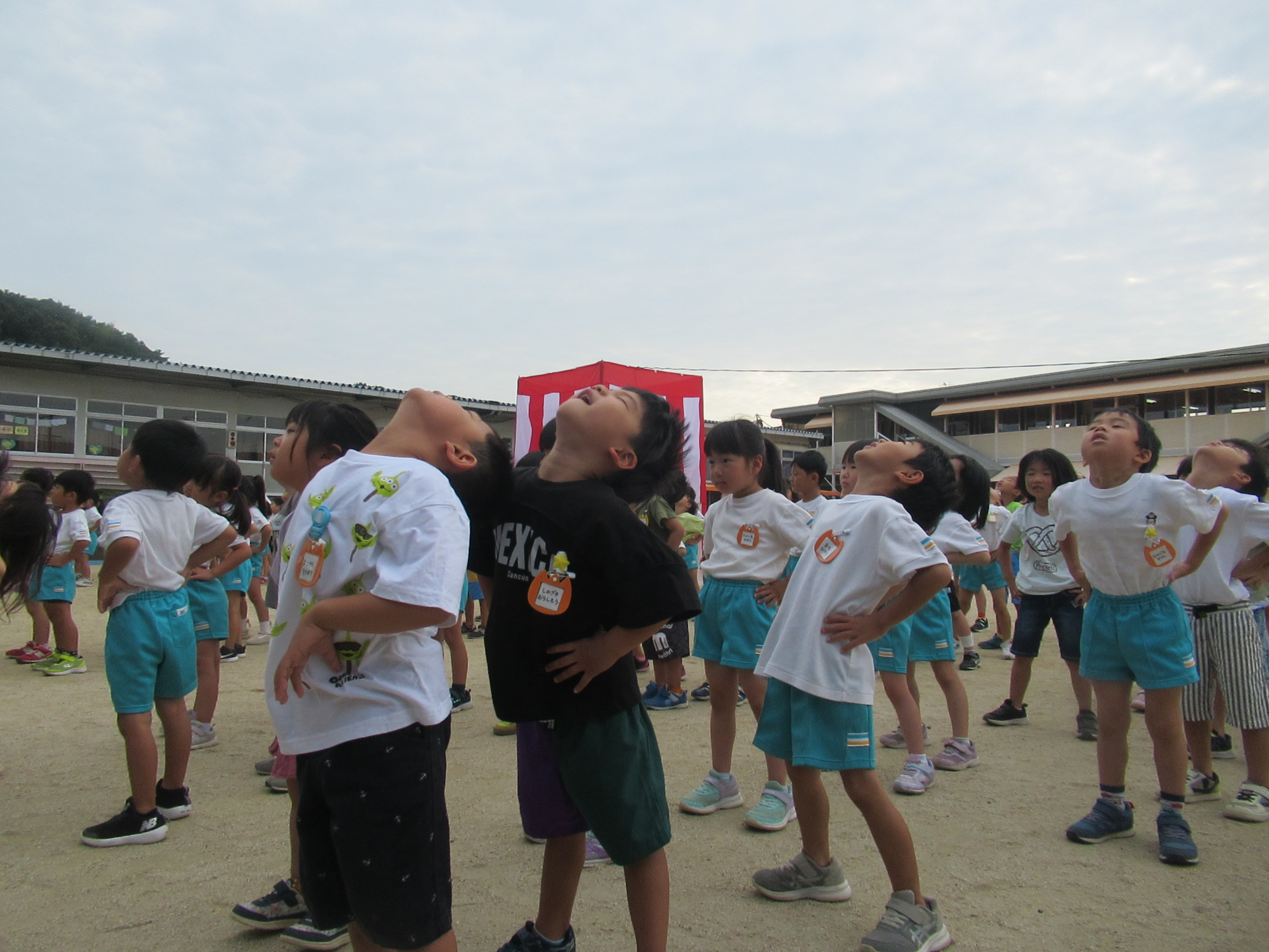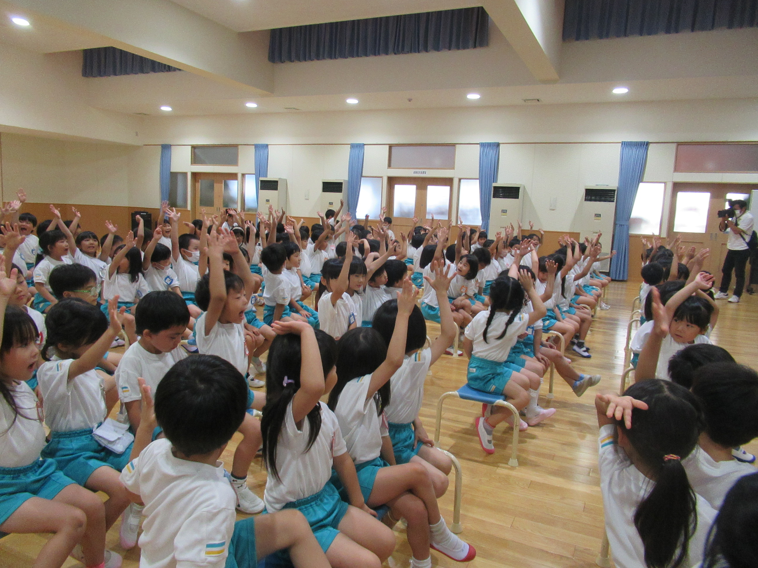 幼稚園に泊まって、みんなとご飯を食べて、寝て、遊んで、楽しかった!