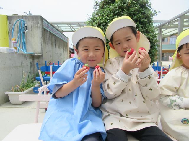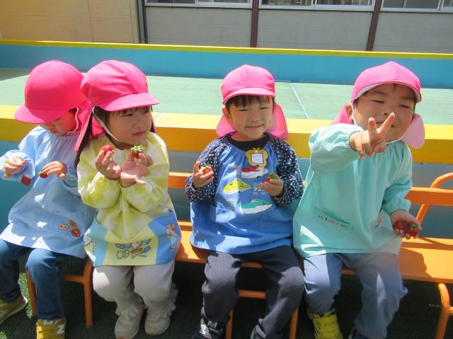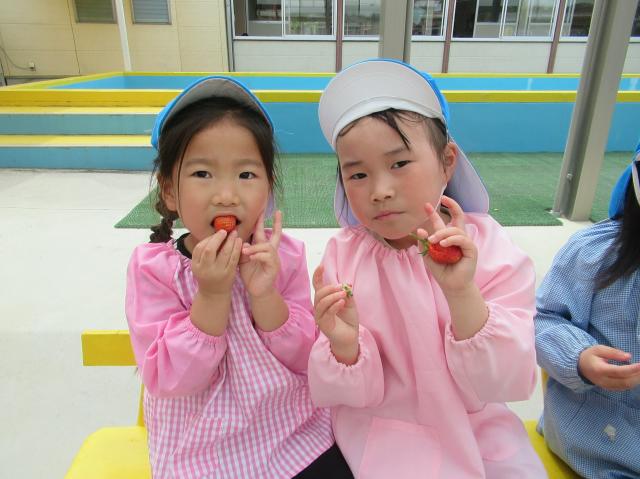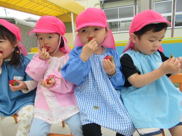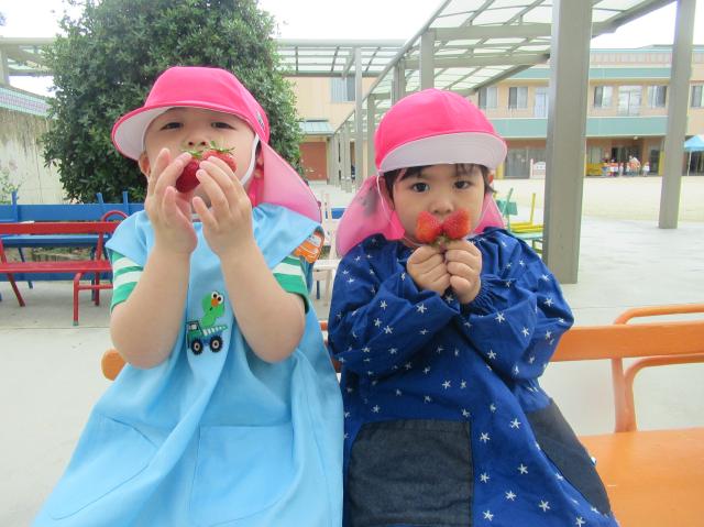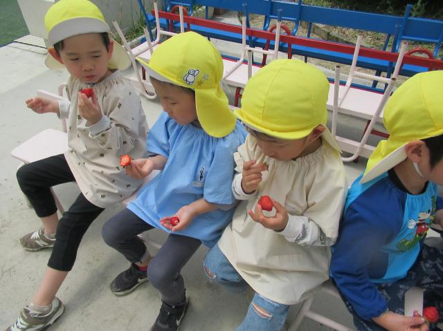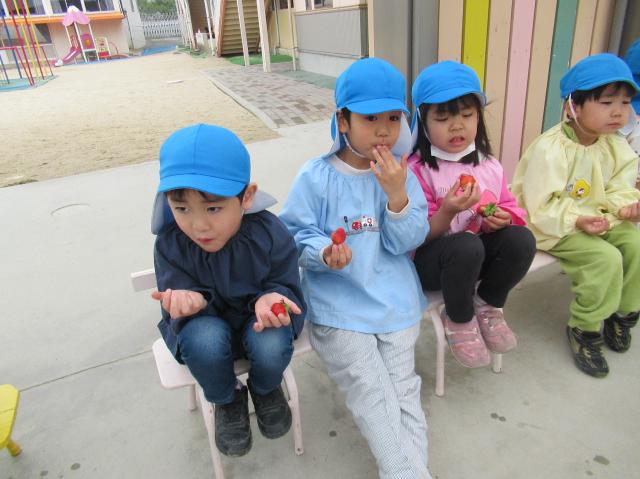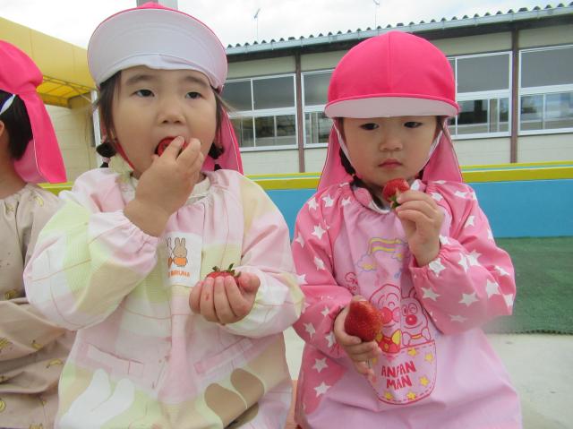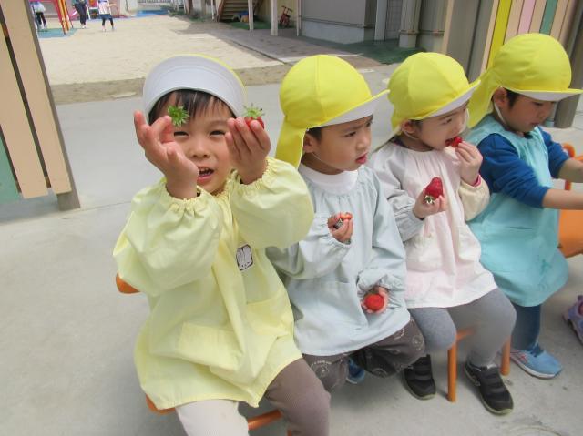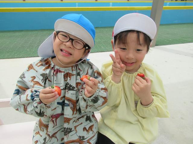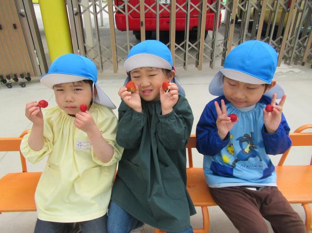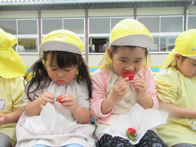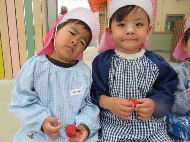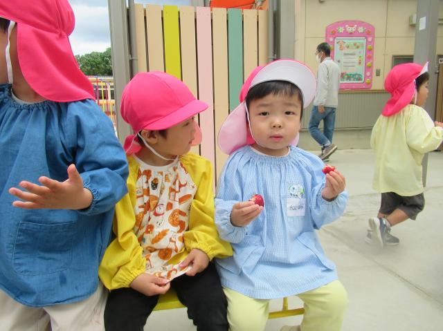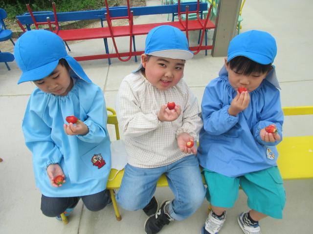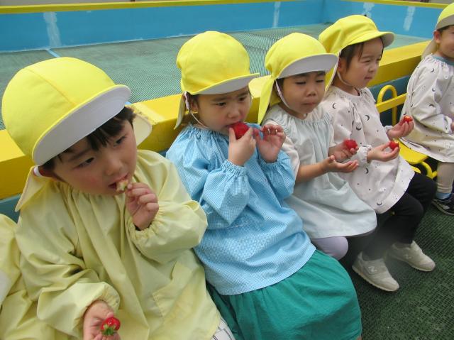 イチゴをつんだり、たべたり、楽しかった!